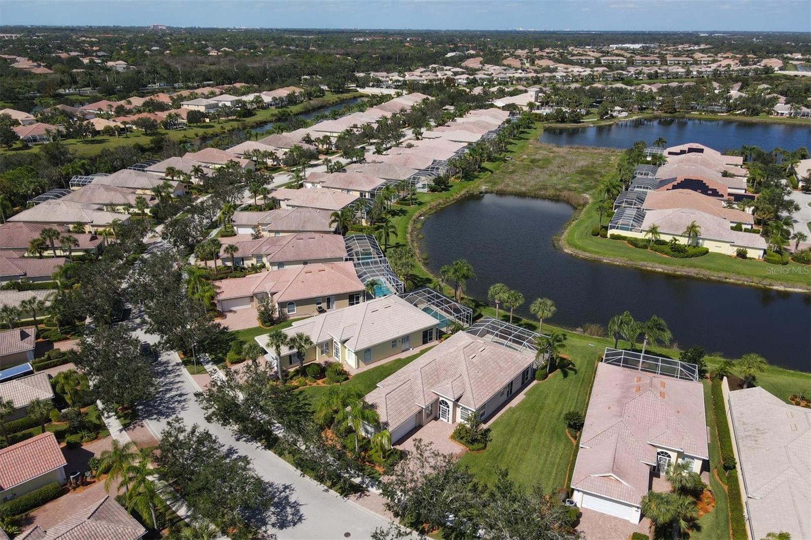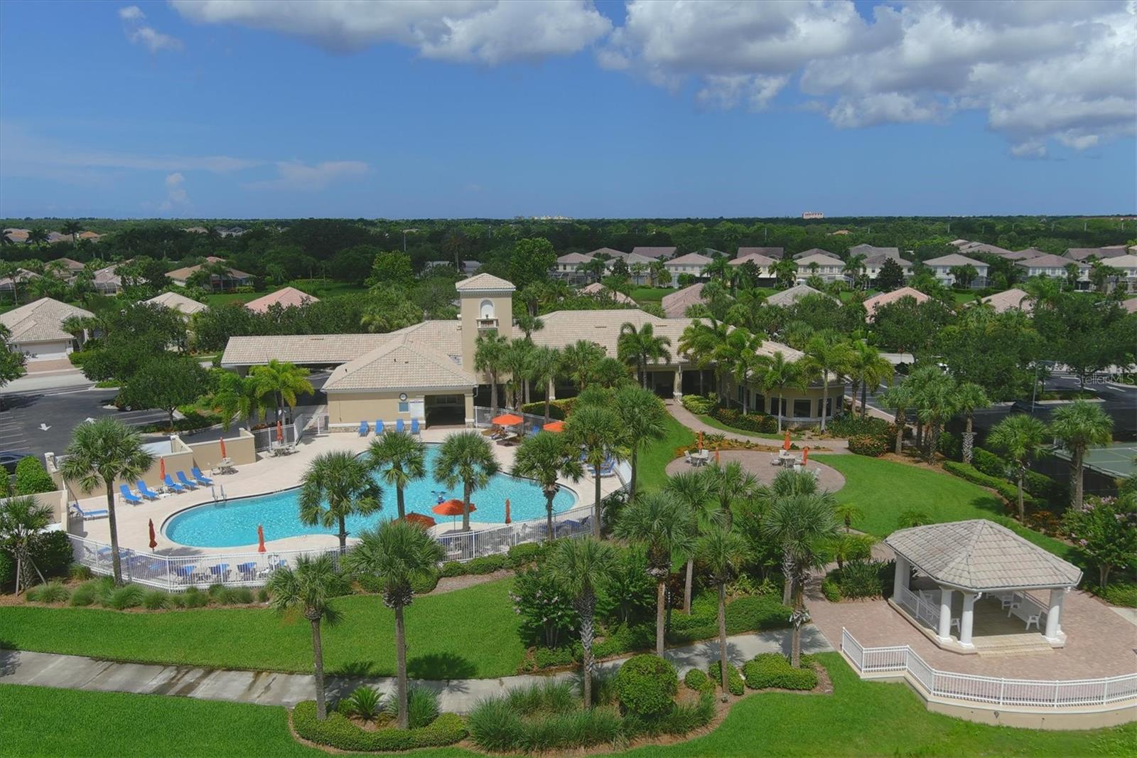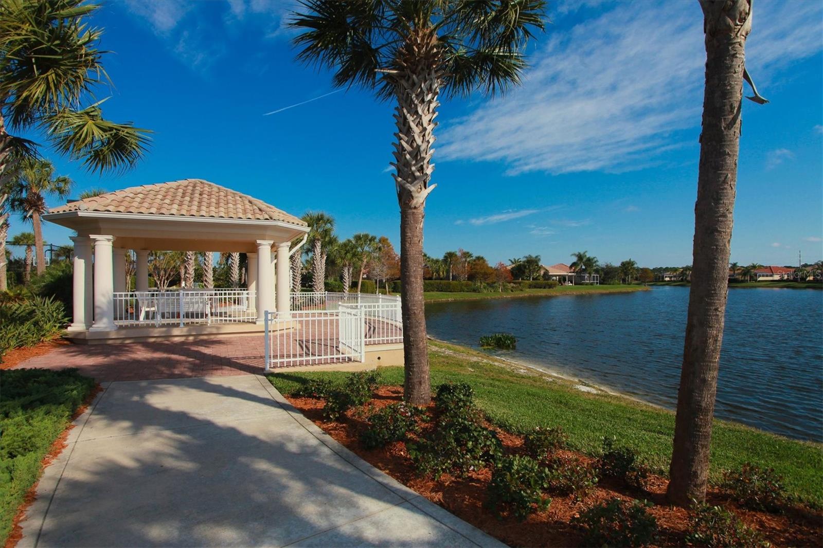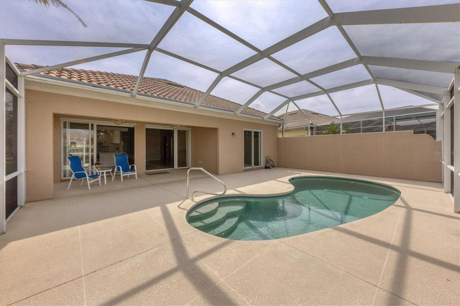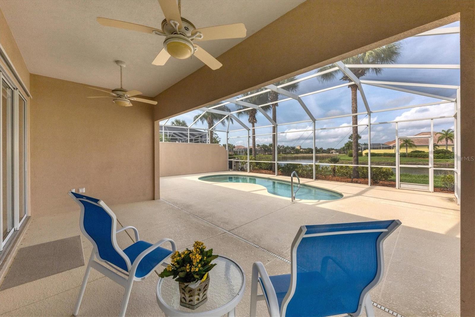 Welcome to the epitome of luxury, resort-style living in the sought after Palmer Ranch community of The Isles. This exquisite 3-bedroom, 3-bath residence, boasting an additional DEN/OFFICE, features an elegant Oakmont model design, spanning across 2008 square feet under air. This solid built home by DiVosta is secured with rebar and poured concrete making it one of the strongest builds in the area. Revel in the stunning long lake views from this PREMIUM LOT, with extra space between homes. Walk out the sliding glass doors to an impressive screened-in lanai with HEATED POOL, and sweeping tropical lake views in your own piece of private paradise to entertain and enjoy all year round. The property comes equipped with a 2-car side load garage, added security of hurricane shutters, and a pavered driveway with extra parking and walkways. The master bedroom also boasts sliding glass doors to the pool area that brings in loads of natural light, a walk-in closet and a double closet, providing generous storage space. This desirable open floor plan is tiled throughout the main living spaces, an eat-on bar in the kitchen/great room, and some of the best views in the Isles. Inside utility room has lots of cabinet space for storage, a convenient utility sink and a glass block window for more natural lighting. Home is equipped with a whole house central vacuum system. Low HOA fees include, ADT home security, cable/internet, maintenance-free grounds and the resort-like amenities, including a fitness center, heated lagoon pool, sports pavilion, tennis and pickleball courts, bocce ball, basketball court, tot lot, lakeside gazebo, and a clubhouse complete with a service kitchen and post office. Walk/bike for miles in the magnificent, landscaped grounds, of The Isles, taking in the natural beauty and wildlife in this community. Close to the Legacy Trail, and centrally located, minutes to area beaches, shopping, the arts scene, and all Sarasota and Venice has to offer! Welcome to Florida living at its finest!