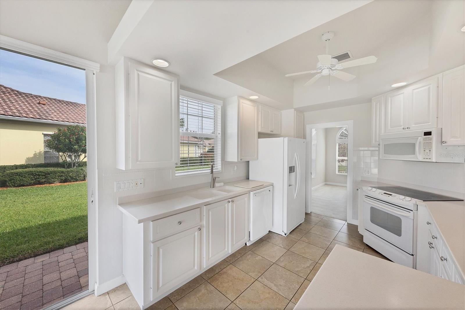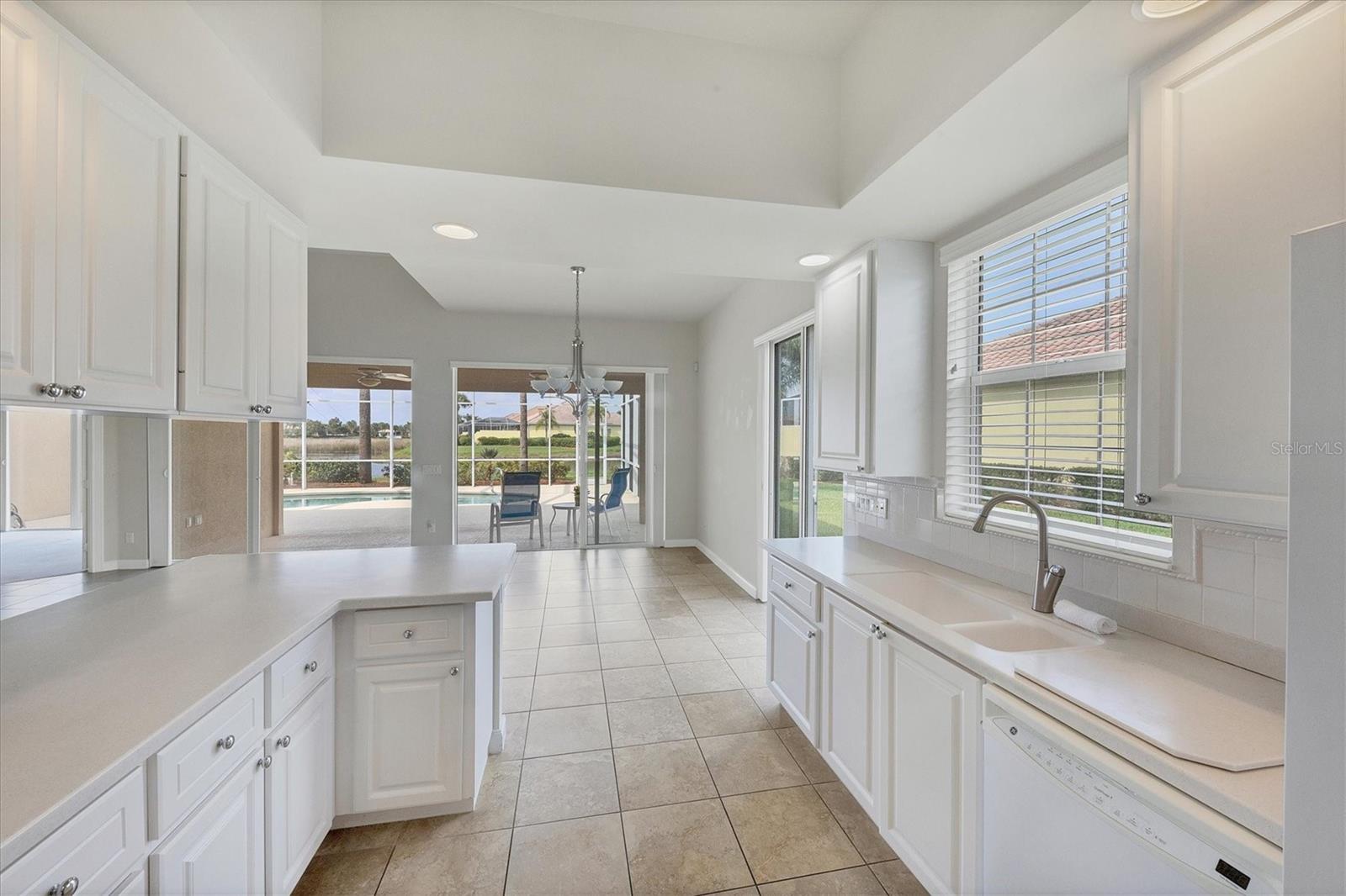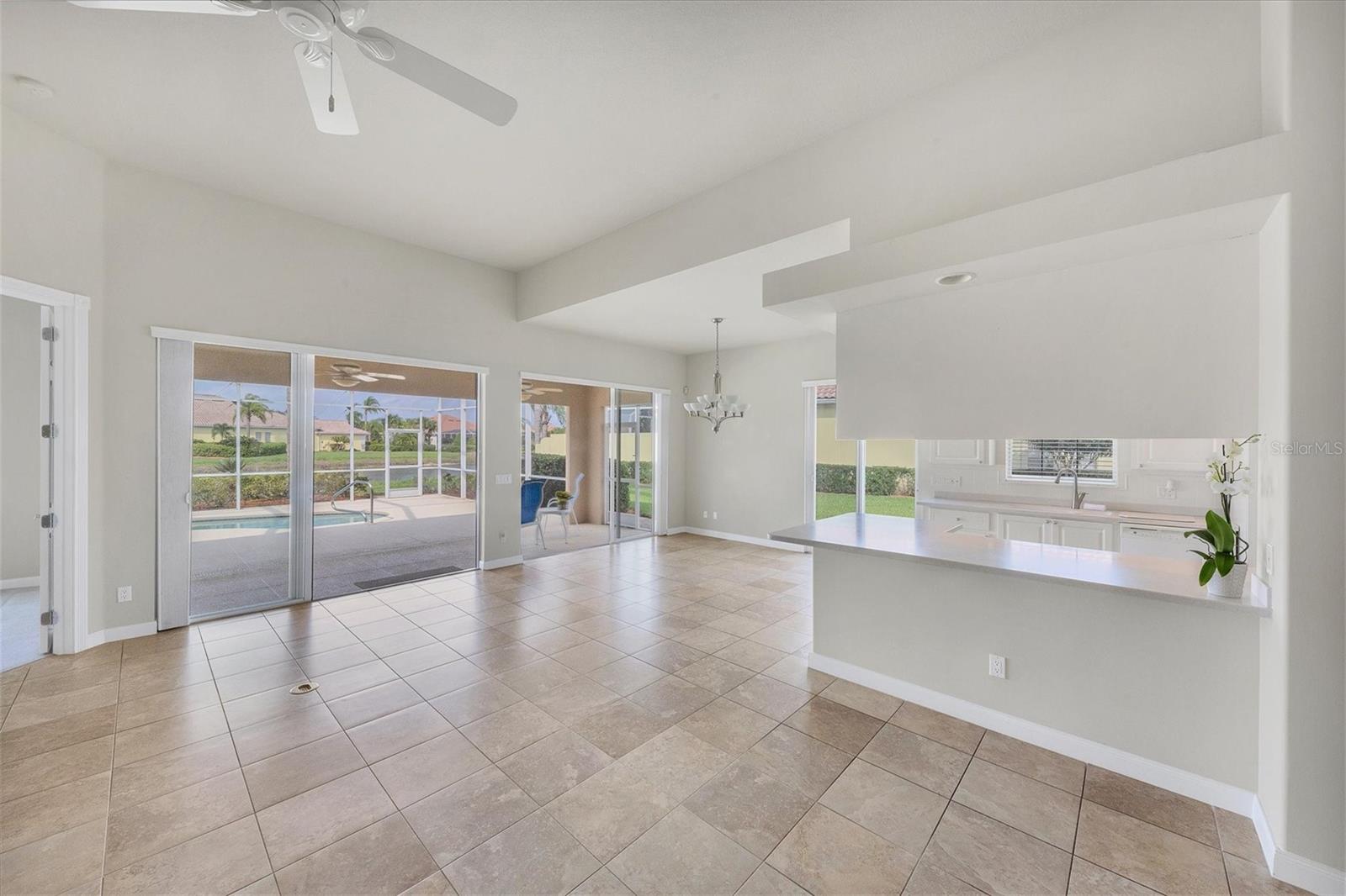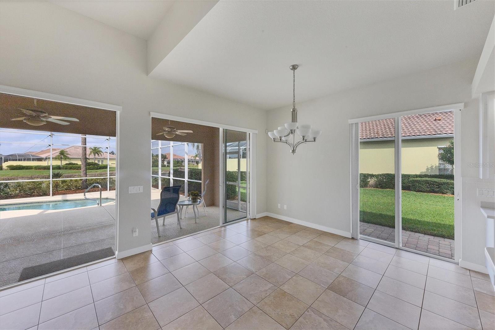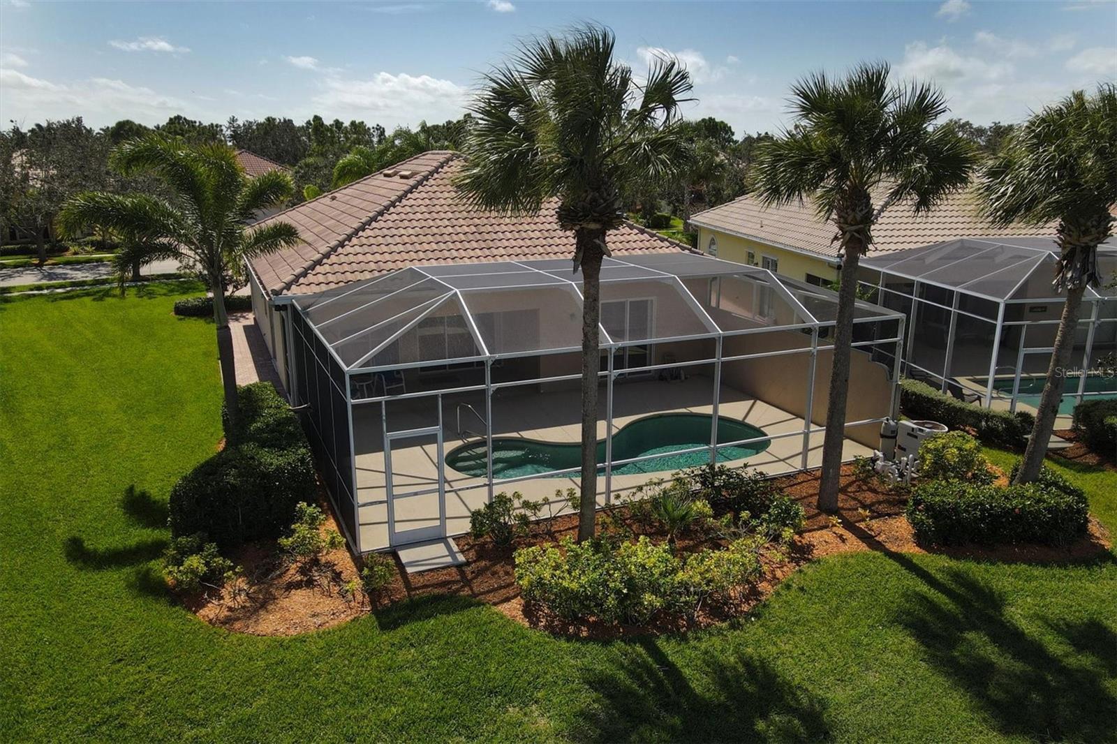 Welcome to the epitome of luxury, resort-style living in the sought after Palmer Ranch community of The Isles. This exquisite 3-bedroom, 3-bath residence, boasting an additional DEN/OFFICE, features an elegant Oakmont model design, spanning across 2008 square feet under air. This solid built home by DiVosta is secured with rebar and poured concrete making it one of the strongest builds in the area. Revel in the stunning long lake views from this PREMIUM LOT, with extra space between homes. Walk out the sliding glass doors to an impressive screened-in lanai with HEATED POOL, and sweeping tropical lake views in your own piece of private paradise to entertain and enjoy all year round. The property comes equipped with a 2-car side load garage, added security of hurricane shutters, and a pavered driveway with extra parking and walkways. The master bedroom also boasts sliding glass doors to the pool area that brings in loads of natural light, a walk-in closet and a double closet, providing generous storage space. This desirable open floor plan is tiled throughout the main living spaces, an eat-on bar in the kitchen/great room, and some of the best views in the Isles. Inside utility room has lots of cabinet space for storage, a convenient utility sink and a glass block window for more natural lighting. Home is equipped with a whole house central vacuum system. Low HOA fees include, ADT home security, cable/internet, maintenance-free grounds and the resort-like amenities, including a fitness center, heated lagoon pool, sports pavilion, tennis and pickleball courts, bocce ball, basketball court, tot lot, lakeside gazebo, and a clubhouse complete with a service kitchen and post office. Walk/bike for miles in the magnificent, landscaped grounds, of The Isles, taking in the natural beauty and wildlife in this community. Close to the Legacy Trail, and centrally located, minutes to area beaches, shopping, the arts scene, and all Sarasota and Venice has to offer! Welcome to Florida living at its finest!