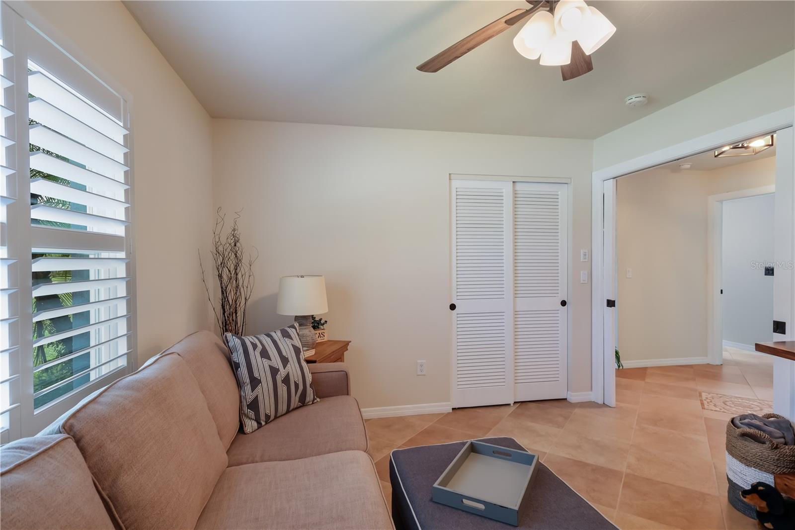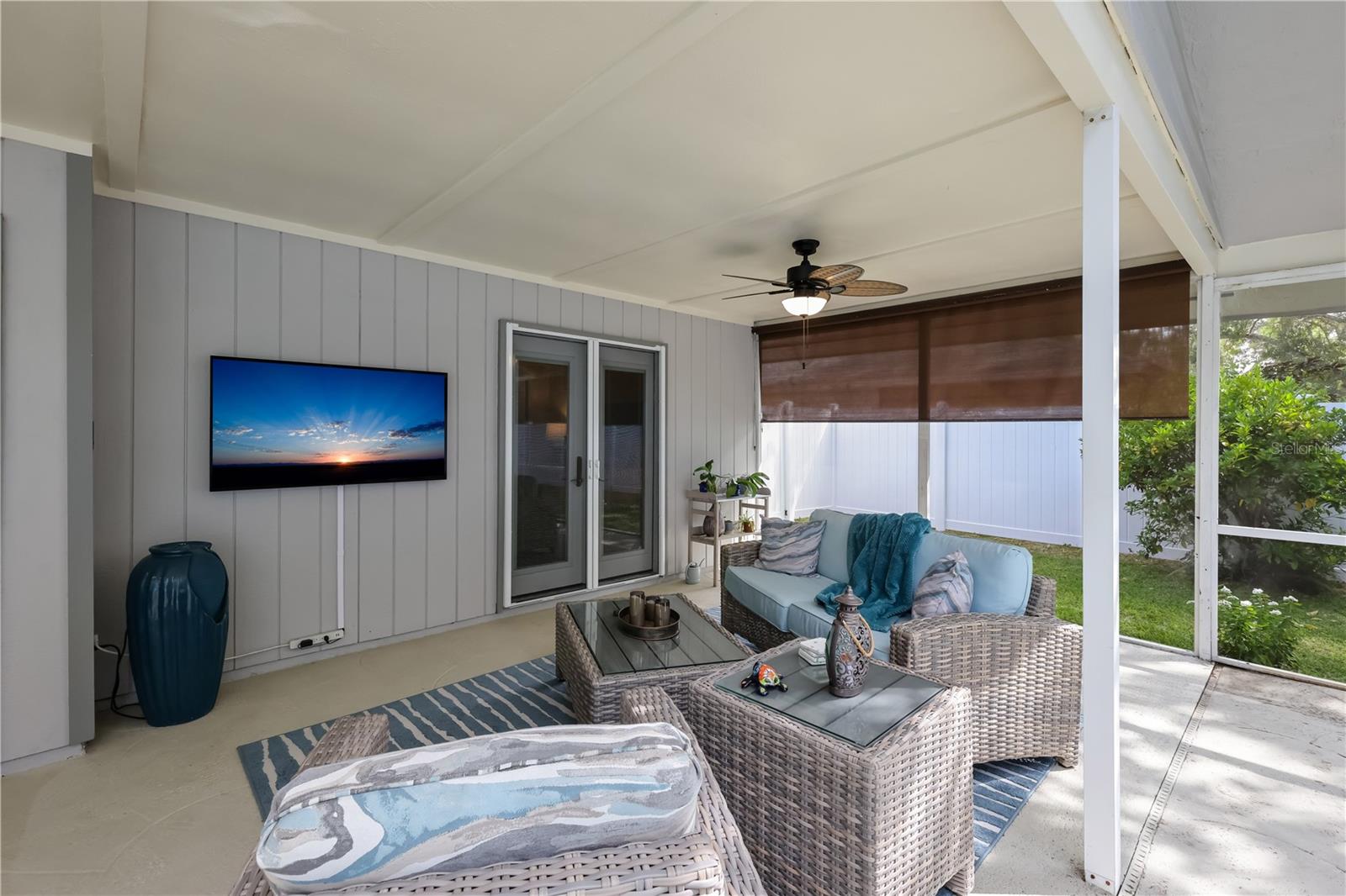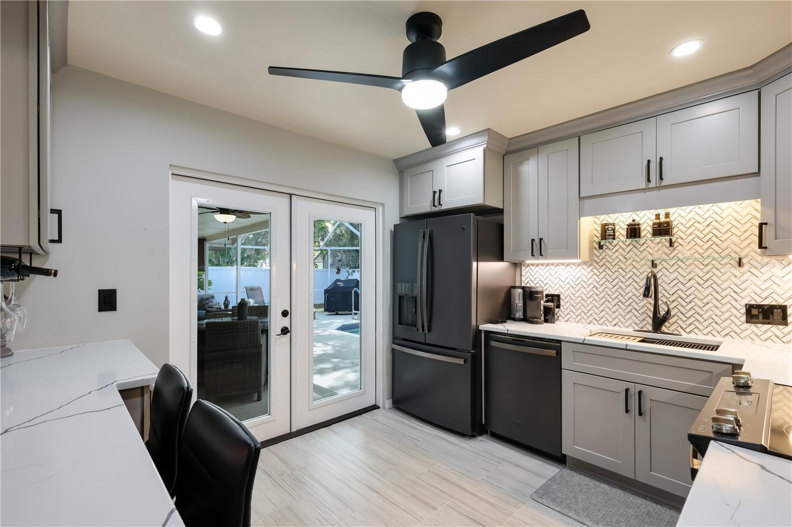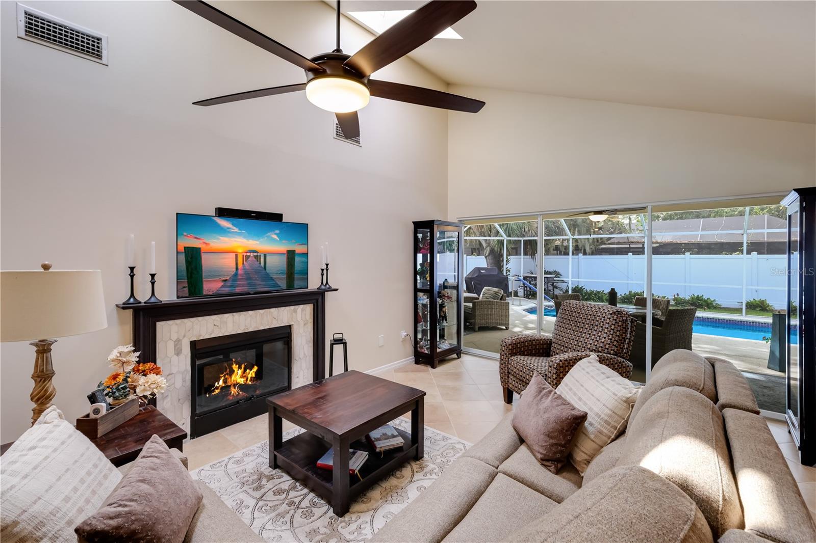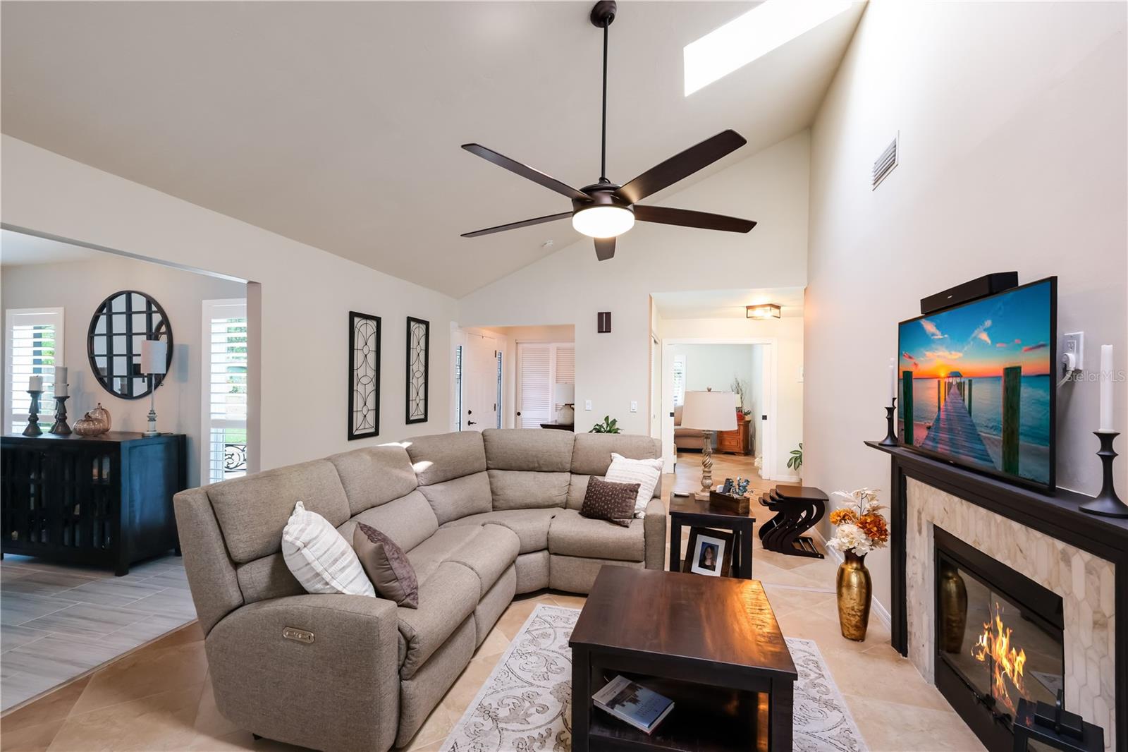One or more photo(s) has been virtually staged. This beautiful, fully-updated 3-bedroom pool home is located in The Meadows, one of Sarasota's most established and desirable golf course communities with numerous amenities, and it's just a 15-minute drive from downtown Sarasota. The residence has been completely renovated inside and out. It truly is move-in-ready. Upon entering the home, you are immediately drawn to the abundance of light, which is enhanced by two living room skylights. This area features 13' vaulted ceiling, a marble-faced double-sided wood burning fireplace and access to the large pool and deck area. From there, step into the dining area with porcelain tiled floors, a decorative chandelier, impact windows and plantation shutters. Adjacent to that is the designer kitchen with plank tile floors, GE profile Fingerprint Resistant appliances, under-cabinet lighting and impact-rated French doors that opens out to the lanai. The other wing of the house features a spacious vestibule with access to three bedrooms. Both guest bedrooms are generous in size. The primary bedroom with ensuite bathroom has glass paneled doors with internal shades that open up to the lanai area, plus there's a 12-foot long expansive wardrobe closet, a double-sided wood burning stove and a completely renovated bathroom with new cabinetry, plumbing fixtures, hammered copper vanity bowls and a walk-in shower. Access the large covered lanai and caged pool area via three access points. There is plenty of space for a dining area as well as a lounge area. The 46' x 10' lap pool will delight avid swimmers. The backyard is very private and it's protected with 6' high maintenance-free vinyl fencing. There's all new lighting throughout the house, new floors, updated bathrooms and more. A complete list of upgrades is available. The location is close to everything Sarasota has to offer including The Mall at University Town Center and its shopping districts, which are only minutes away. All the stores you need and all the restaurants you can ask for are close by. Nathan Benderson Park is right around the corner with all its activities, events and rowing competitions. The Meadows community is situated on 1,650 acres, and there's over 80 lakes, plus walking trails amidst the beauty of nature and wildlife. The development offers numerous community amenities including miles of biking and hiking trails, a playground, active sports, a fitness center, game and card room, billiards, social events and so much more. Optional membership to the Meadows Country Club is available with 54 holes of golf on 3 courses, 17 Har-Tru tennis courts with tennis instruction, 2 pickleball courts, a Junior Olympic Pool Complex, a fitness club with classes, a restaurant with food and bar services, a member only lounge and a variety of dining choices for both members and non-members. There is also the Renaissance Access Plan, which gives residents access to some of the Country Club's amenities. The community has a shopping village, convenience store, beauty salon, dental office, village pub and a restaurant. This is a wonderful opportunity to live in one of the most desirable communities in Sarasota, and truly a slice of paradise.