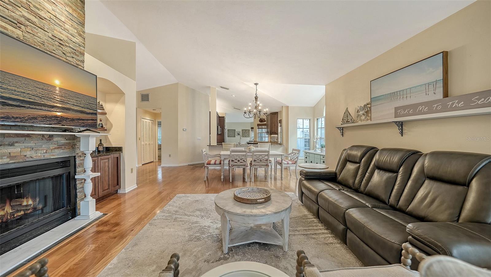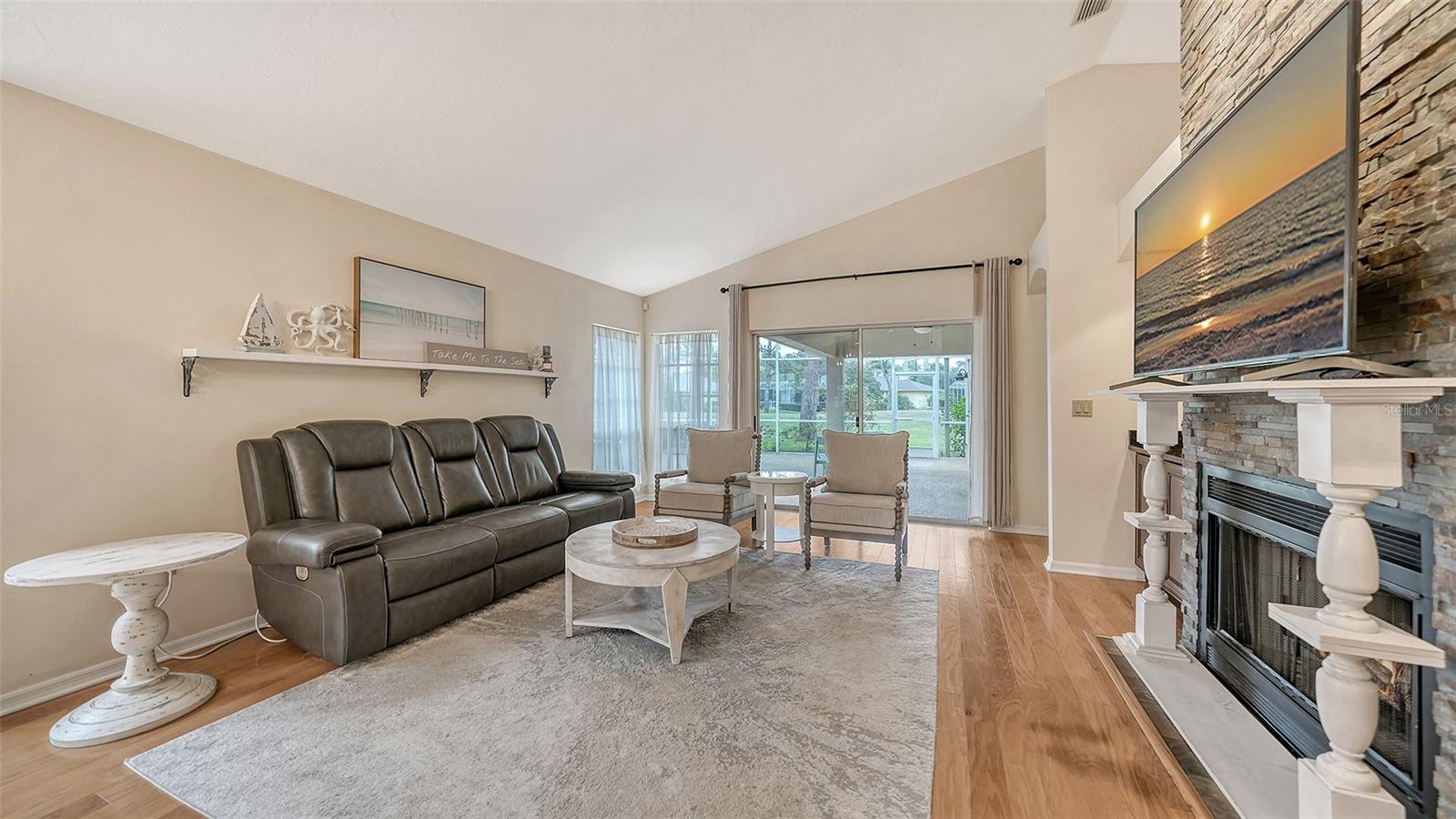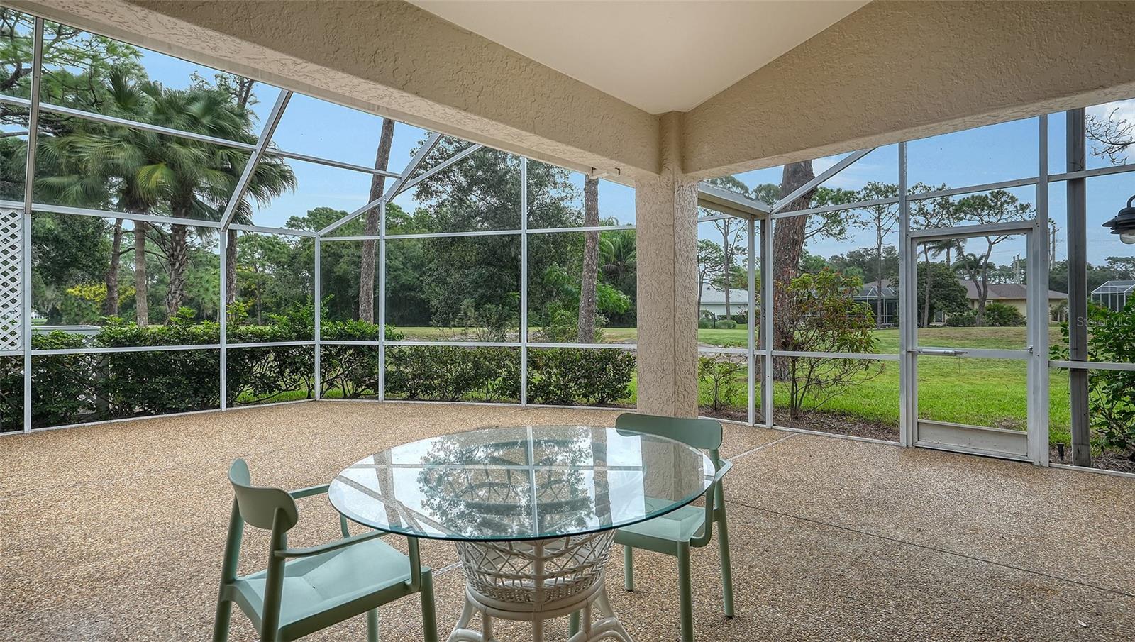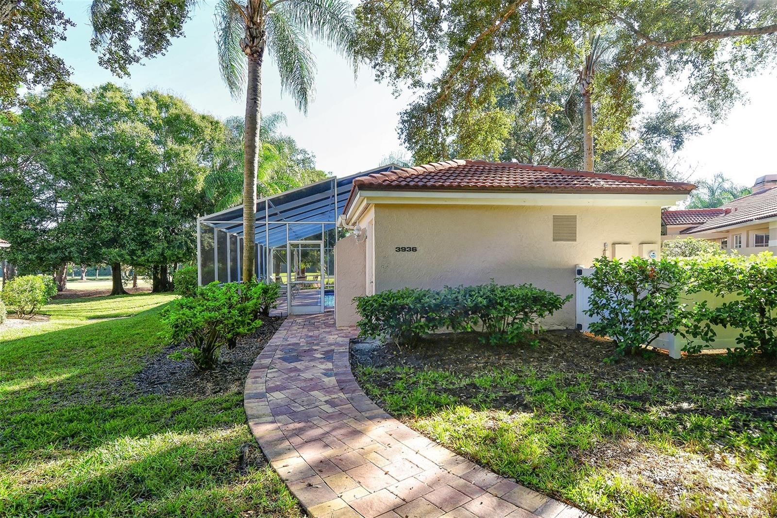 Rarely available MAINTENANCE FREE single family home in the Lyndhurst enclave within the sought-after resort style community of The Meadows. Excellent great room floor plan with vaulted ceilings in the main living area that creates an open and airy interior that pulls together the kitchen, dining and living space. 42" kitchen cabinets, self-closing drawers, granite counter tops with separate breakfast nook, kitchen side door with easy access to your grill, stainless appliances and additional seating at a breakfast bar. This homes lives larger than it's sq. footage and is great for entertaining. Spacious bedrooms, large primary suite with updated bathroom, walk-in closet and separate water closet. The wood burning fireplace is accented with contemporary stacked stone that creates a beautiful center piece of the living room. A unique feature of the home is the private oversized screened lanai (32'x24') that allows you to create an outdoor living and dining space and still have room for a hot tub. A/C (2021), HW tank (2018) and roof (2012). Beautiful greenspace at the rear of the property and the 11th hole of the Meadows golf course in the distance. With a five-star location and 1,650 park-like acres, the Meadows is one of Sarasota's premier communities that has recently undergone a revitalization and has everything you're looking for with optional membership. A brand new fitness and meeting center is free to residents. 54 holes of golf, a tennis complex featuring 17 lighted Har-tru courts, a swimming pool, restaurant and clubhouse with dining and banquet facilities. A recently introduced "Renaissance Access Plan" allows residents an ala carte menu of amenities with preferred rates and special access to activities. All of this amidst 330 acres of beautifully landscaped land that will not be sold to developers and is just minutes away from downtown Sarasota, great shopping/dining at University Town Center (UTC), beautiful Nathan Benderson Park and the fabulous beaches of Lido and Siesta Keys.