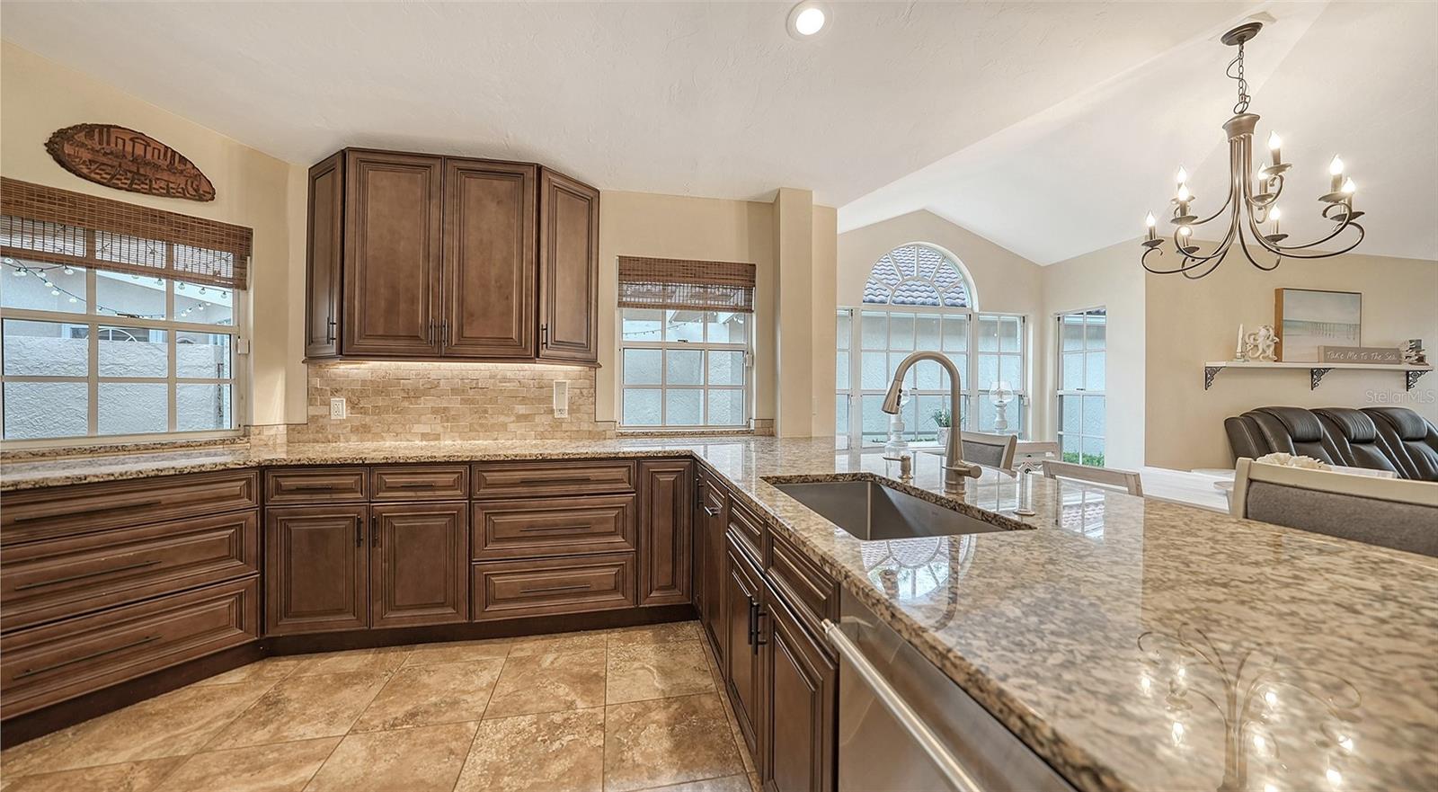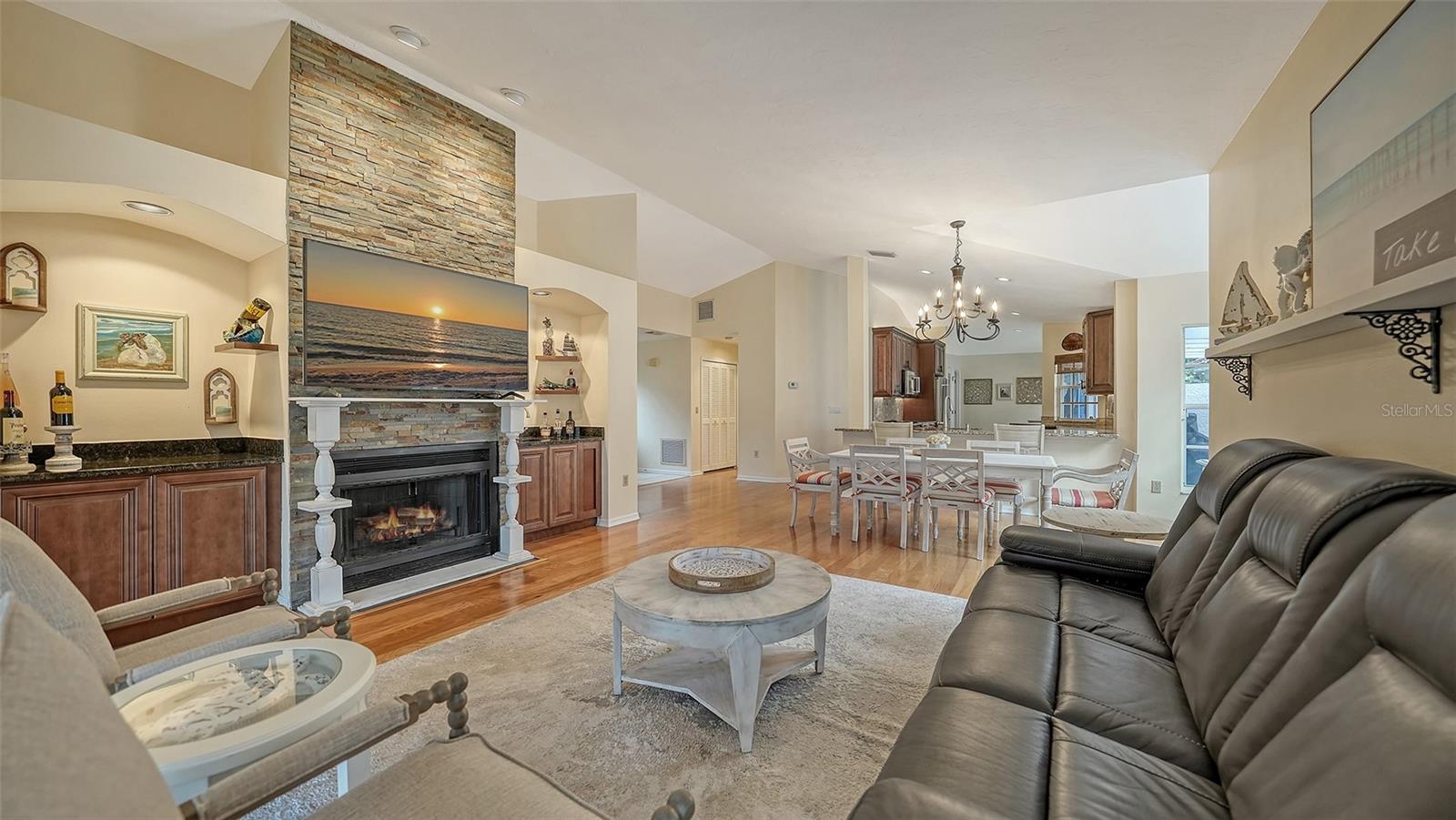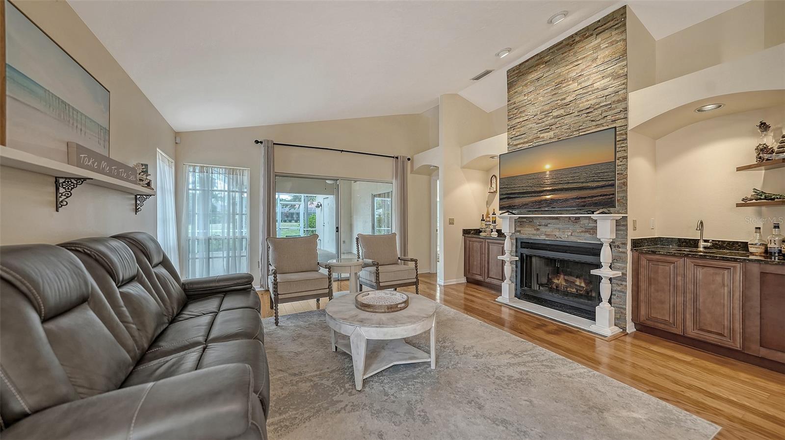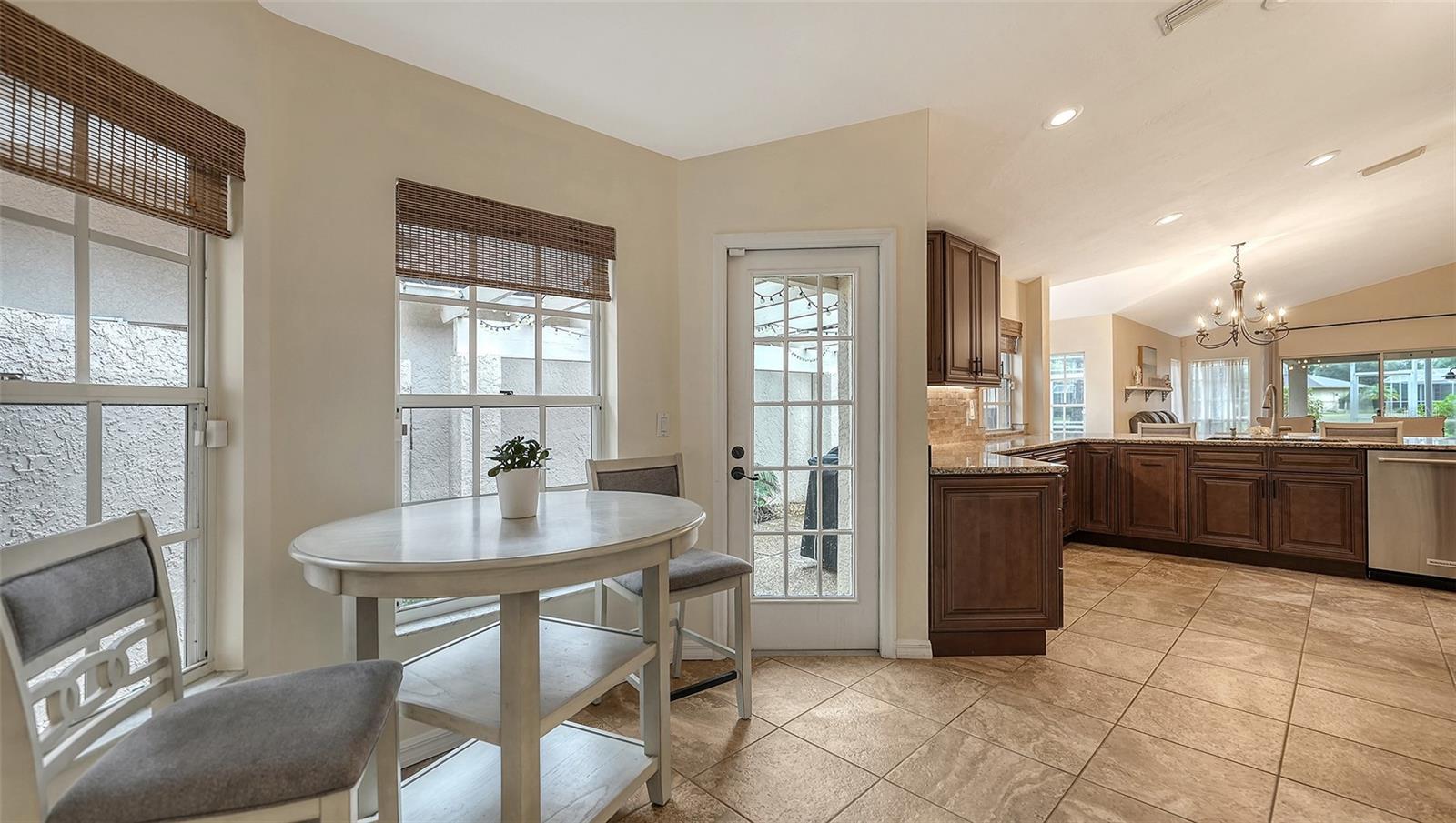 Rarely available MAINTENANCE FREE single family home in the Lyndhurst enclave within the sought-after resort style community of The Meadows. Excellent great room floor plan with vaulted ceilings in the main living area that creates an open and airy interior that pulls together the kitchen, dining and living space. 42" kitchen cabinets, self-closing drawers, granite counter tops with separate breakfast nook, kitchen side door with easy access to your grill, stainless appliances and additional seating at a breakfast bar. This homes lives larger than it's sq. footage and is great for entertaining. Spacious bedrooms, large primary suite with updated bathroom, walk-in closet and separate water closet. The wood burning fireplace is accented with contemporary stacked stone that creates a beautiful center piece of the living room. A unique feature of the home is the private oversized screened lanai (32'x24') that allows you to create an outdoor living and dining space and still have room for a hot tub. A/C (2021), HW tank (2018) and roof (2012). Beautiful greenspace at the rear of the property and the 11th hole of the Meadows golf course in the distance. With a five-star location and 1,650 park-like acres, the Meadows is one of Sarasota's premier communities that has recently undergone a revitalization and has everything you're looking for with optional membership. A brand new fitness and meeting center is free to residents. 54 holes of golf, a tennis complex featuring 17 lighted Har-tru courts, a swimming pool, restaurant and clubhouse with dining and banquet facilities. A recently introduced "Renaissance Access Plan" allows residents an ala carte menu of amenities with preferred rates and special access to activities. All of this amidst 330 acres of beautifully landscaped land that will not be sold to developers and is just minutes away from downtown Sarasota, great shopping/dining at University Town Center (UTC), beautiful Nathan Benderson Park and the fabulous beaches of Lido and Siesta Keys.