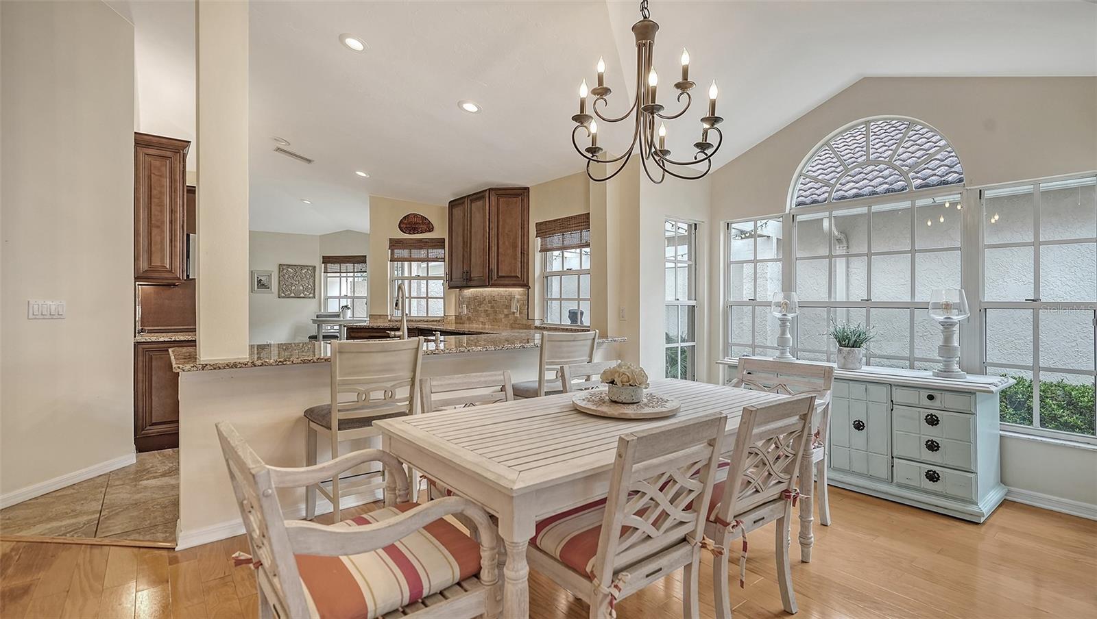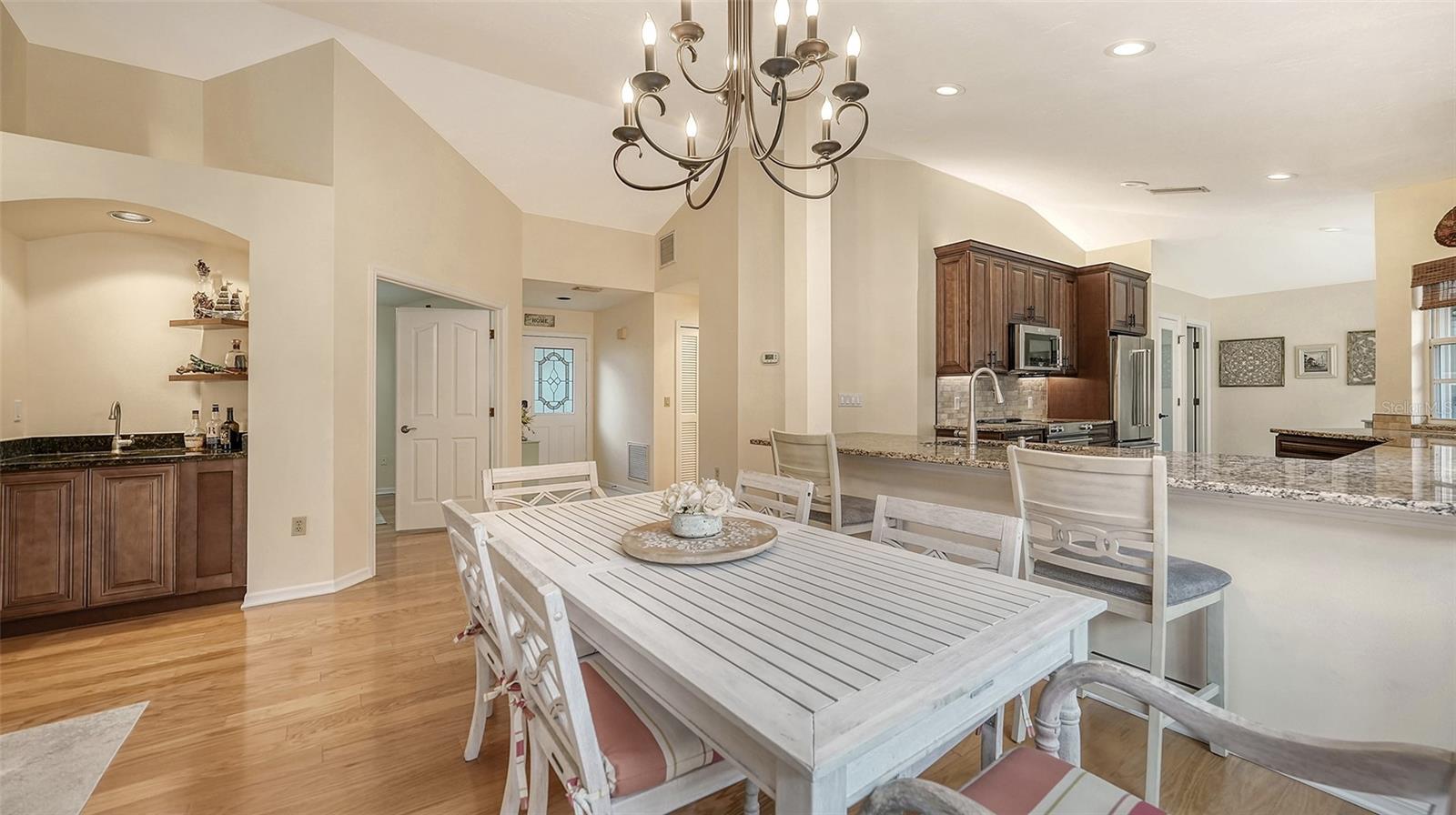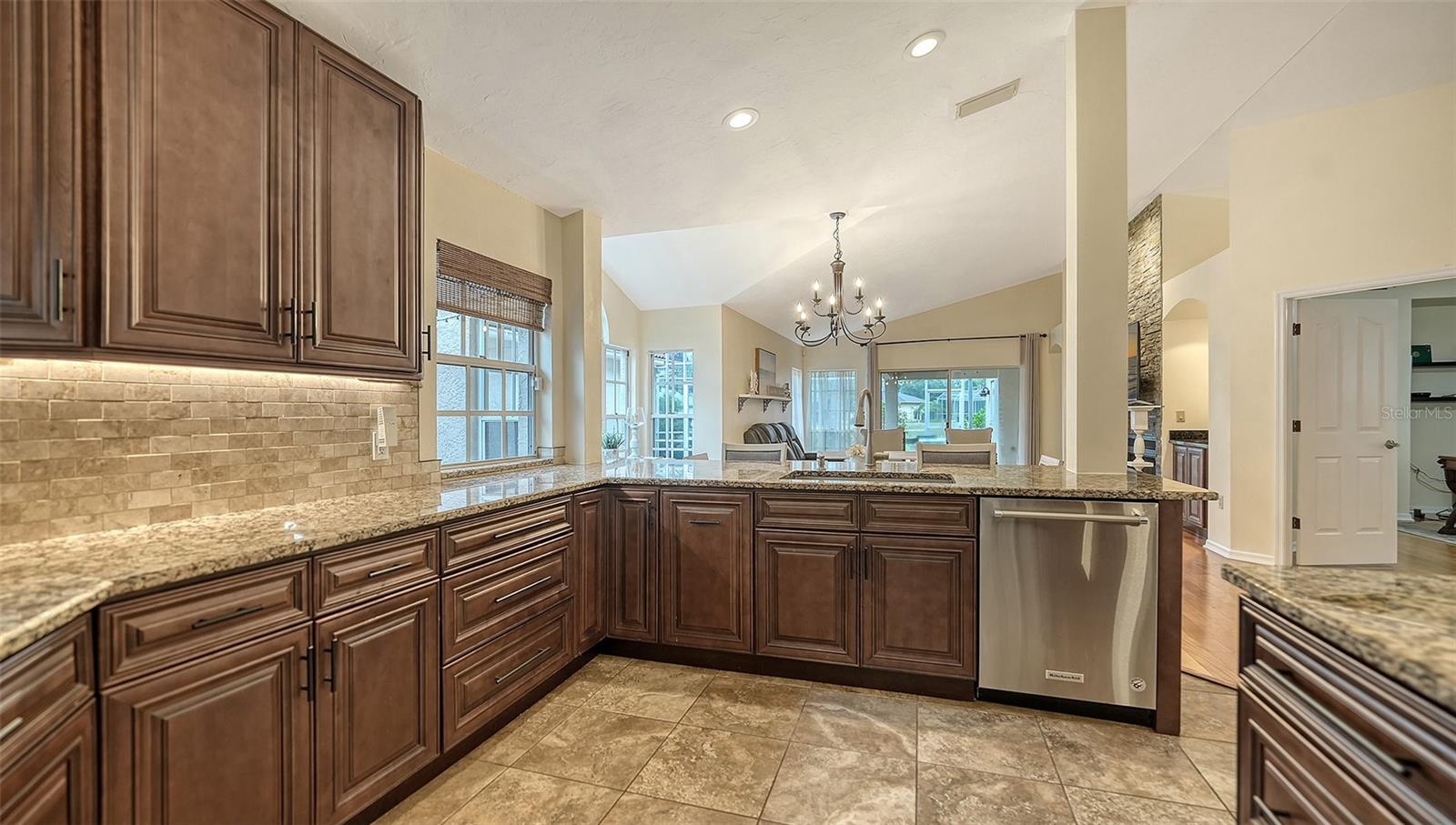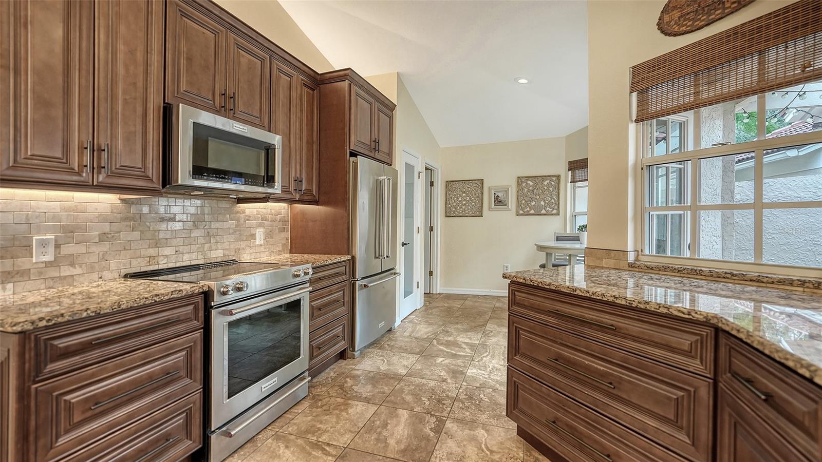 Rarely available MAINTENANCE FREE single family home in the Lyndhurst enclave within the sought-after resort style community of The Meadows. Excellent great room floor plan with vaulted ceilings in the main living area that creates an open and airy interior that pulls together the kitchen, dining and living space. 42" kitchen cabinets, self-closing drawers, granite counter tops with separate breakfast nook, kitchen side door with easy access to your grill, stainless appliances and additional seating at a breakfast bar. This homes lives larger than it's sq. footage and is great for entertaining. Spacious bedrooms, large primary suite with updated bathroom, walk-in closet and separate water closet. The wood burning fireplace is accented with contemporary stacked stone that creates a beautiful center piece of the living room. A unique feature of the home is the private oversized screened lanai (32'x24') that allows you to create an outdoor living and dining space and still have room for a hot tub. A/C (2021), HW tank (2018) and roof (2012). Beautiful greenspace at the rear of the property and the 11th hole of the Meadows golf course in the distance. With a five-star location and 1,650 park-like acres, the Meadows is one of Sarasota's premier communities that has recently undergone a revitalization and has everything you're looking for with optional membership. A brand new fitness and meeting center is free to residents. 54 holes of golf, a tennis complex featuring 17 lighted Har-tru courts, a swimming pool, restaurant and clubhouse with dining and banquet facilities. A recently introduced "Renaissance Access Plan" allows residents an ala carte menu of amenities with preferred rates and special access to activities. All of this amidst 330 acres of beautifully landscaped land that will not be sold to developers and is just minutes away from downtown Sarasota, great shopping/dining at University Town Center (UTC), beautiful Nathan Benderson Park and the fabulous beaches of Lido and Siesta Keys.