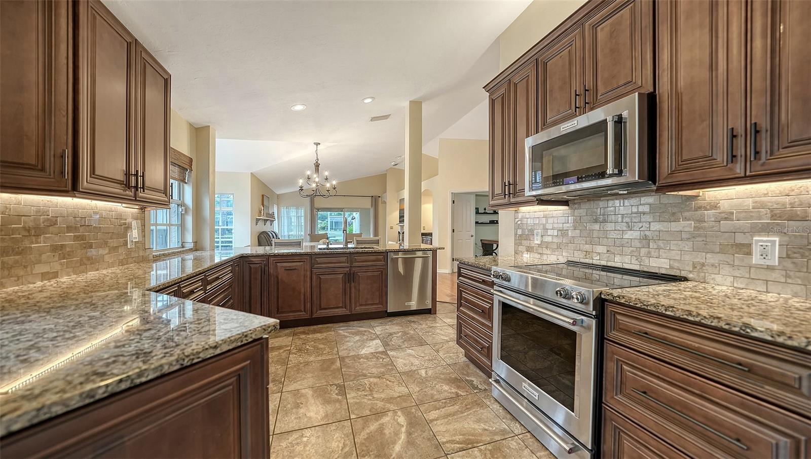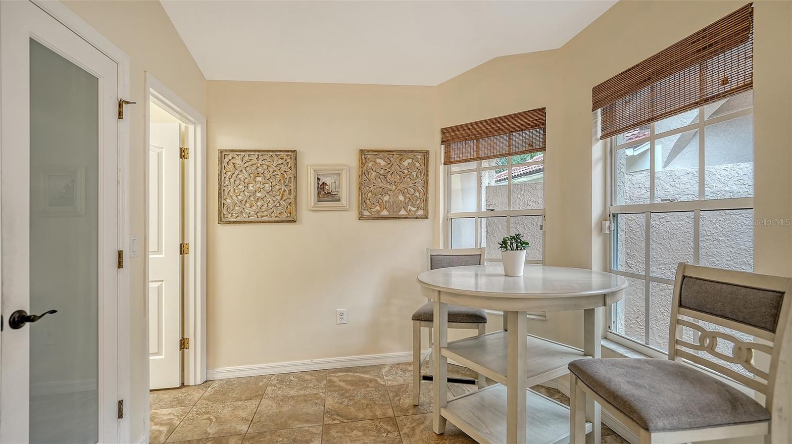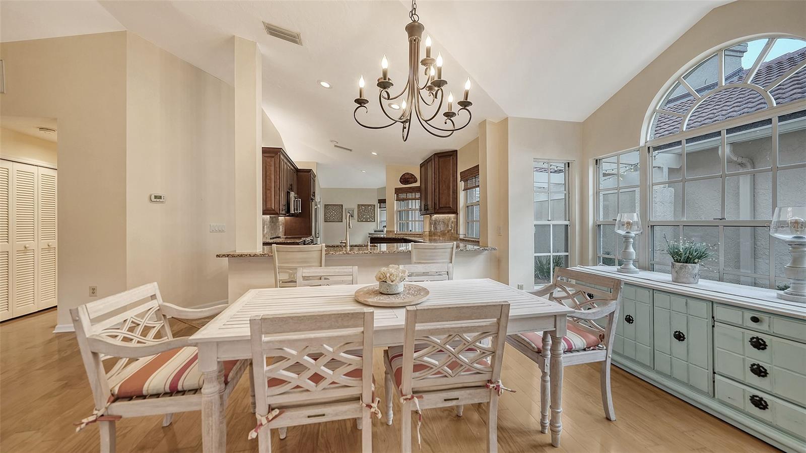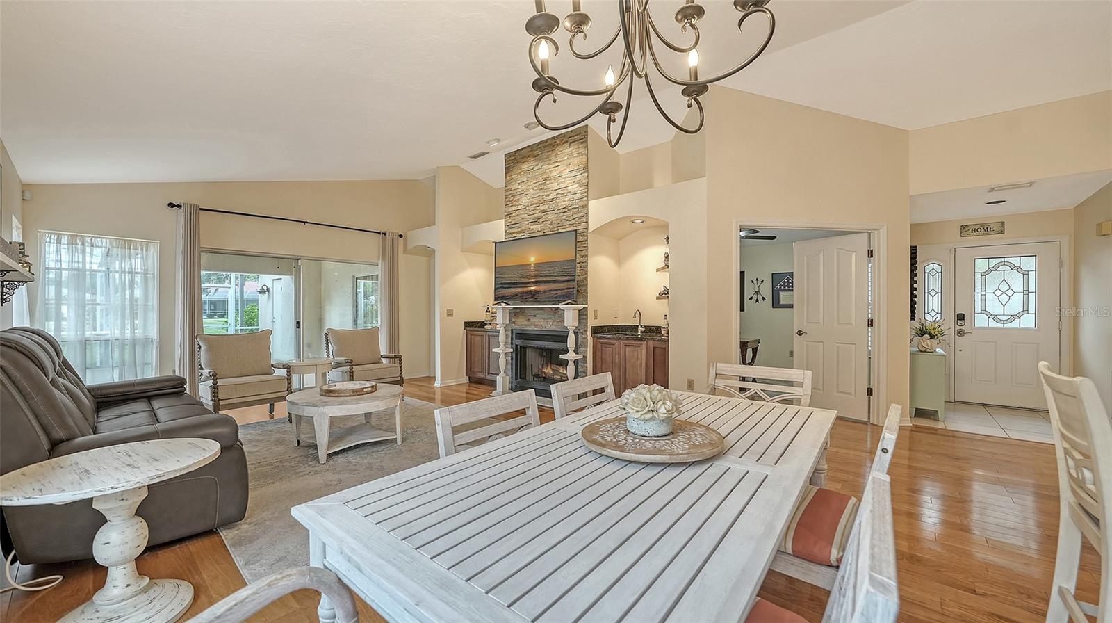 Rarely available MAINTENANCE FREE single family home in the Lyndhurst enclave within the sought-after resort style community of The Meadows. Excellent great room floor plan with vaulted ceilings in the main living area that creates an open and airy interior that pulls together the kitchen, dining and living space. 42" kitchen cabinets, self-closing drawers, granite counter tops with separate breakfast nook, kitchen side door with easy access to your grill, stainless appliances and additional seating at a breakfast bar. This homes lives larger than it's sq. footage and is great for entertaining. Spacious bedrooms, large primary suite with updated bathroom, walk-in closet and separate water closet. The wood burning fireplace is accented with contemporary stacked stone that creates a beautiful center piece of the living room. A unique feature of the home is the private oversized screened lanai (32'x24') that allows you to create an outdoor living and dining space and still have room for a hot tub. A/C (2021), HW tank (2018) and roof (2012). Beautiful greenspace at the rear of the property and the 11th hole of the Meadows golf course in the distance. With a five-star location and 1,650 park-like acres, the Meadows is one of Sarasota's premier communities that has recently undergone a revitalization and has everything you're looking for with optional membership. A brand new fitness and meeting center is free to residents. 54 holes of golf, a tennis complex featuring 17 lighted Har-tru courts, a swimming pool, restaurant and clubhouse with dining and banquet facilities. A recently introduced "Renaissance Access Plan" allows residents an ala carte menu of amenities with preferred rates and special access to activities. All of this amidst 330 acres of beautifully landscaped land that will not be sold to developers and is just minutes away from downtown Sarasota, great shopping/dining at University Town Center (UTC), beautiful Nathan Benderson Park and the fabulous beaches of Lido and Siesta Keys.