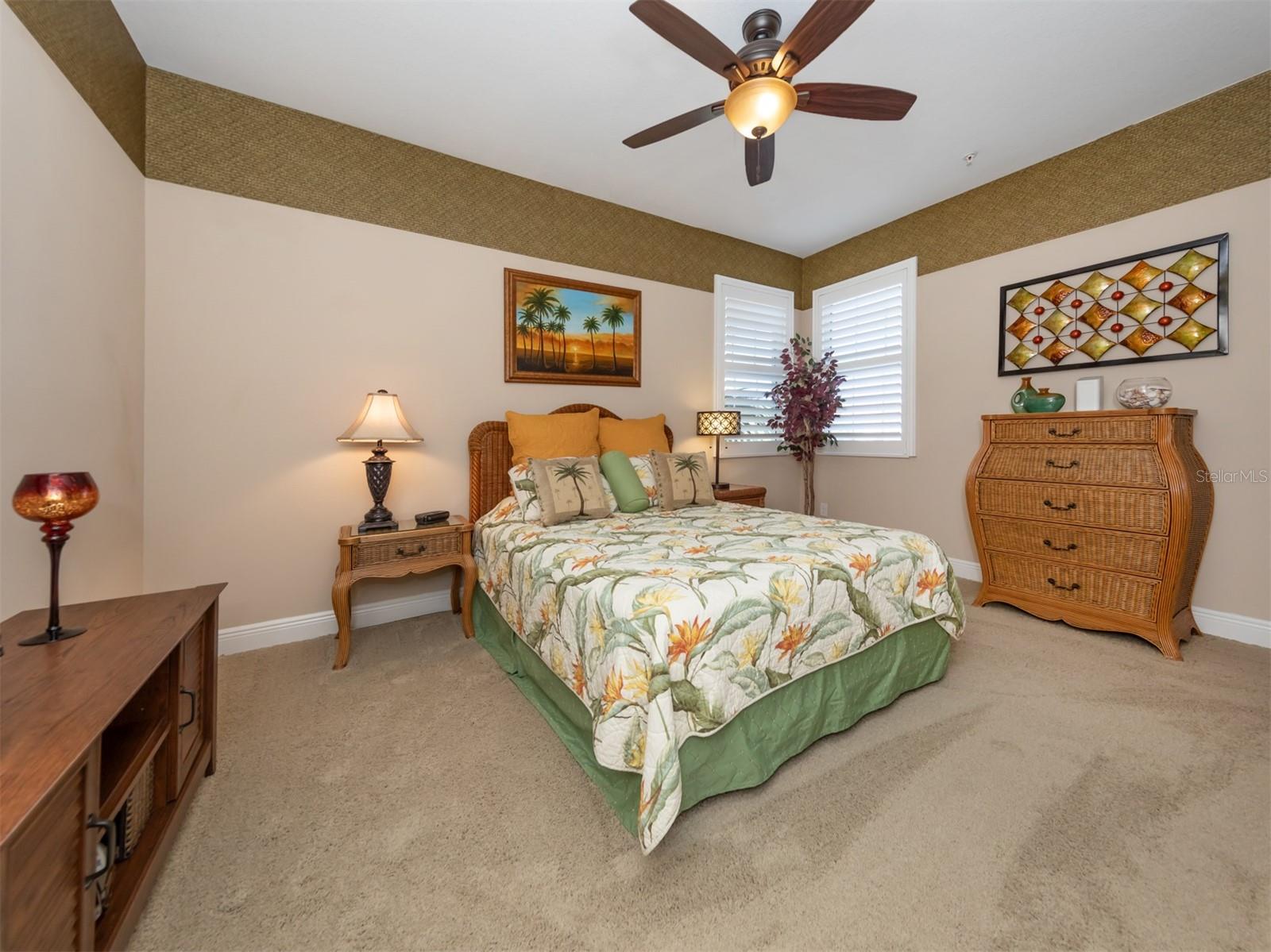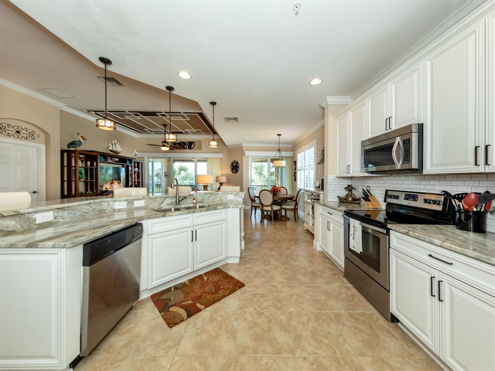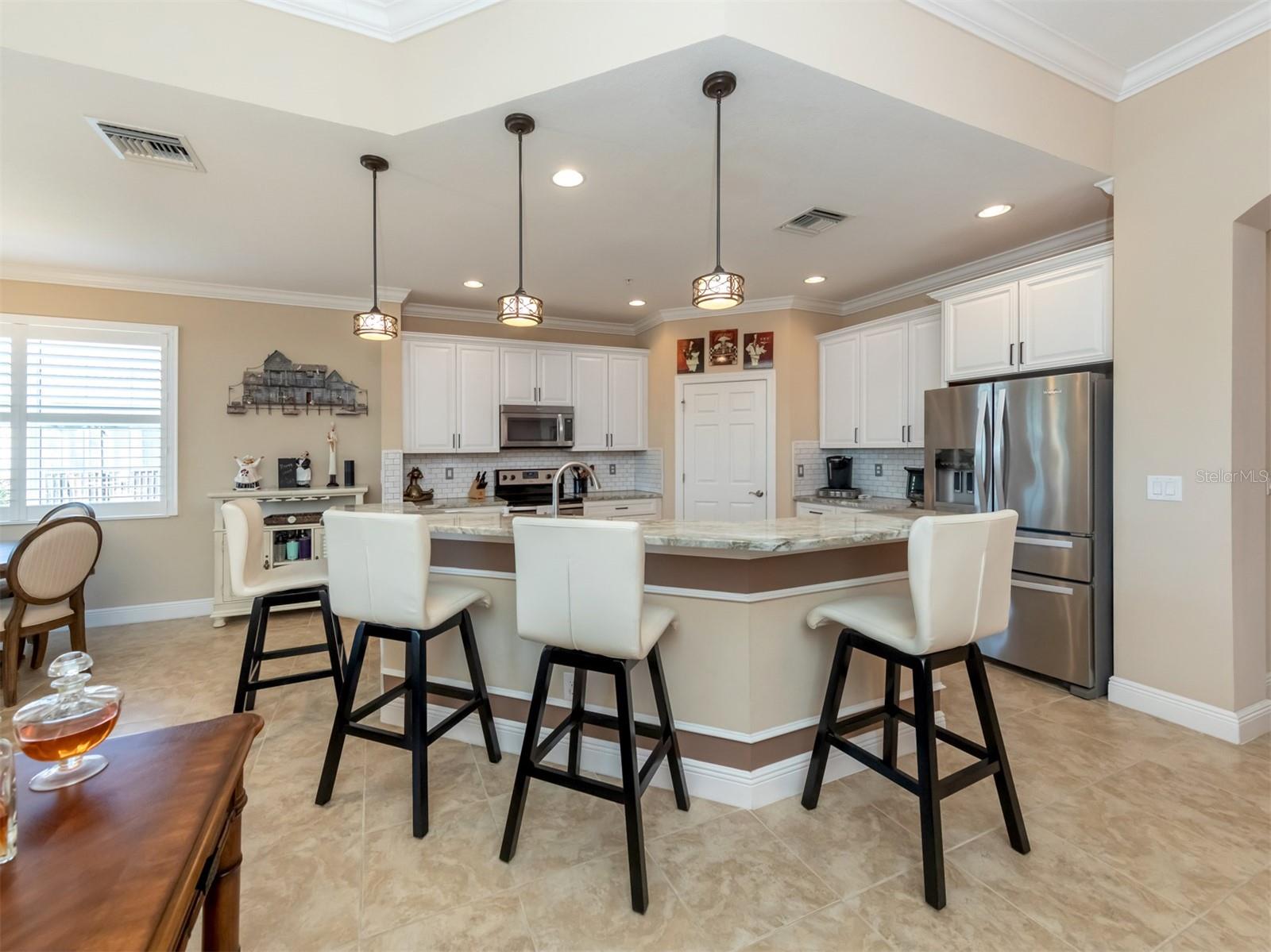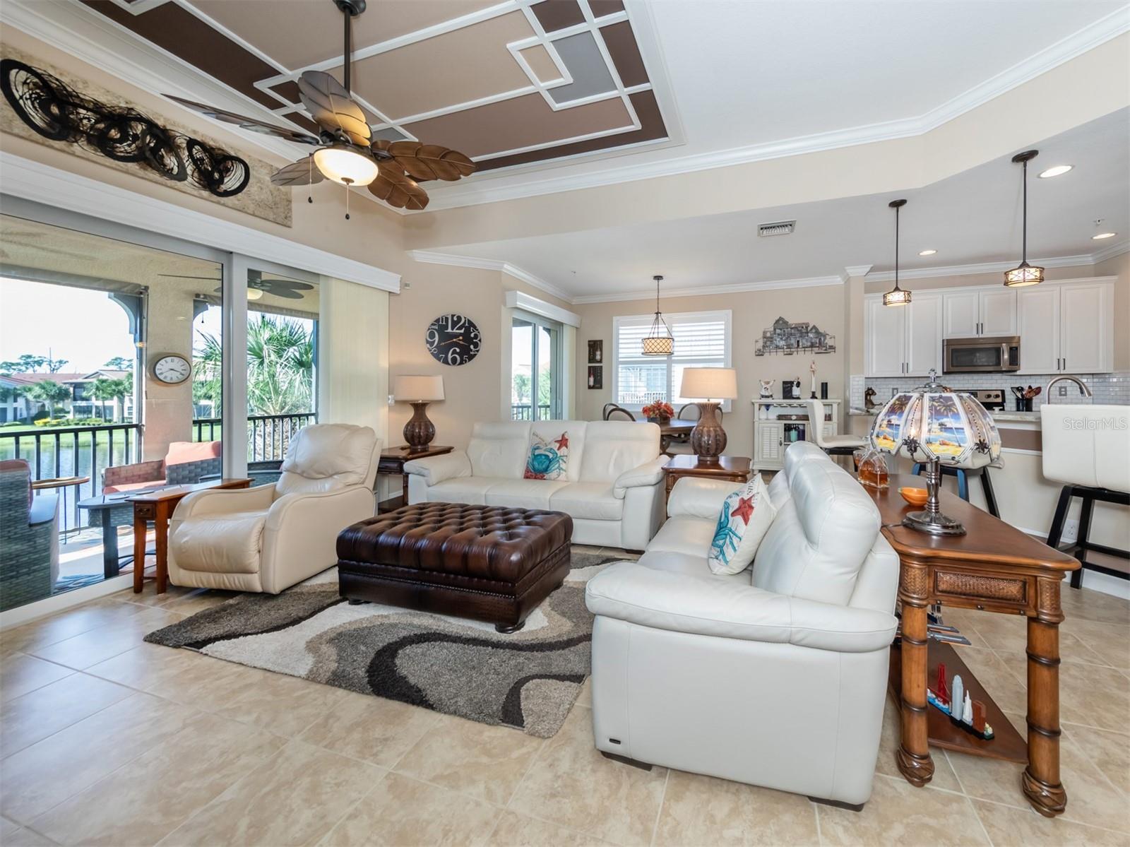Are you concerned about rising HOA fees, insurance premiums, and interest rates? Look no further! This beautiful 2nd floor carriage home/condo, with an ELEVATOR, is located within the gates of the desirable Venetian Golf & River Club. These original owners, have updated and upgraded since closing in 2014 with a recent renovation to the kitchen cabinets, counter tops, and appliances. This unit comes equipped with impact glass windows and hurricane sliders to add that peace of mind when storm season rolls in. You'll have all the updated touches to include beautiful plantation shutters and window treatment throughout complimented by carpet in all beds, tile through the halls, baths, laundry room, and main living area, and engineered hardwood in the den/office. This lovely 3 bed/2 bath unit offers beautiful, custom moldings throughout and lives very comfortably offering nearly 2400 sq ft. Overlooking a pond, water spray feature, and providing stunning western setting sunsets, you will surely embrace living your best life living here! A topic on most buyers minds is the strength and costs of the HOA's. This HOA has solid financials, and NO HOA DUES FOR 2024! And, this seller is offering SPECIAL FINANCING, if needed. For nature lovers, you will enjoy the serene 70-acre nature park snuggled along the Myakka River. Additional amenities include a full restaurant and bar, fitness center, lap pool, resort-style pool, outdoor Tiki Bar at poolside, six Tru-Har tennis courts (and a competitive tennis league), and recently added pickle ball courts. Golf membership to Venetian Golf, owned by the prestigious Heritage Group, is optional. Beaches and shopping are just minutes away. This is a true lock and go so why not call me today to schedule your private tour!