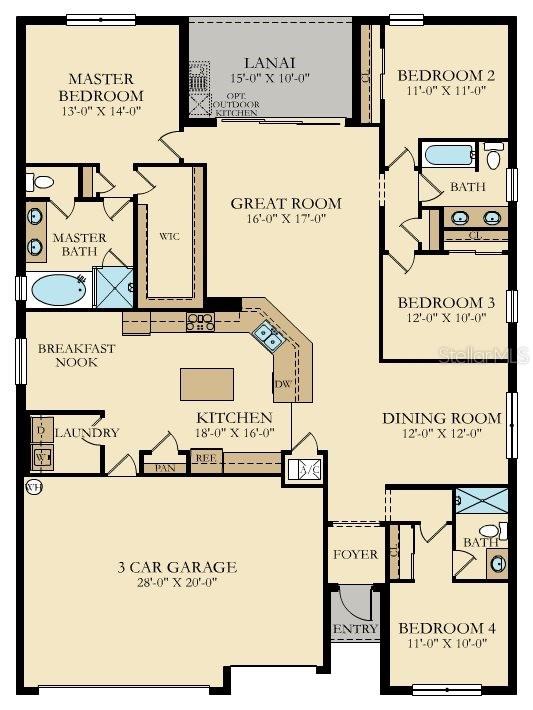 - Exterior: Irrigation System, Lighting, Outdoor Kitchen, Sliding Doors