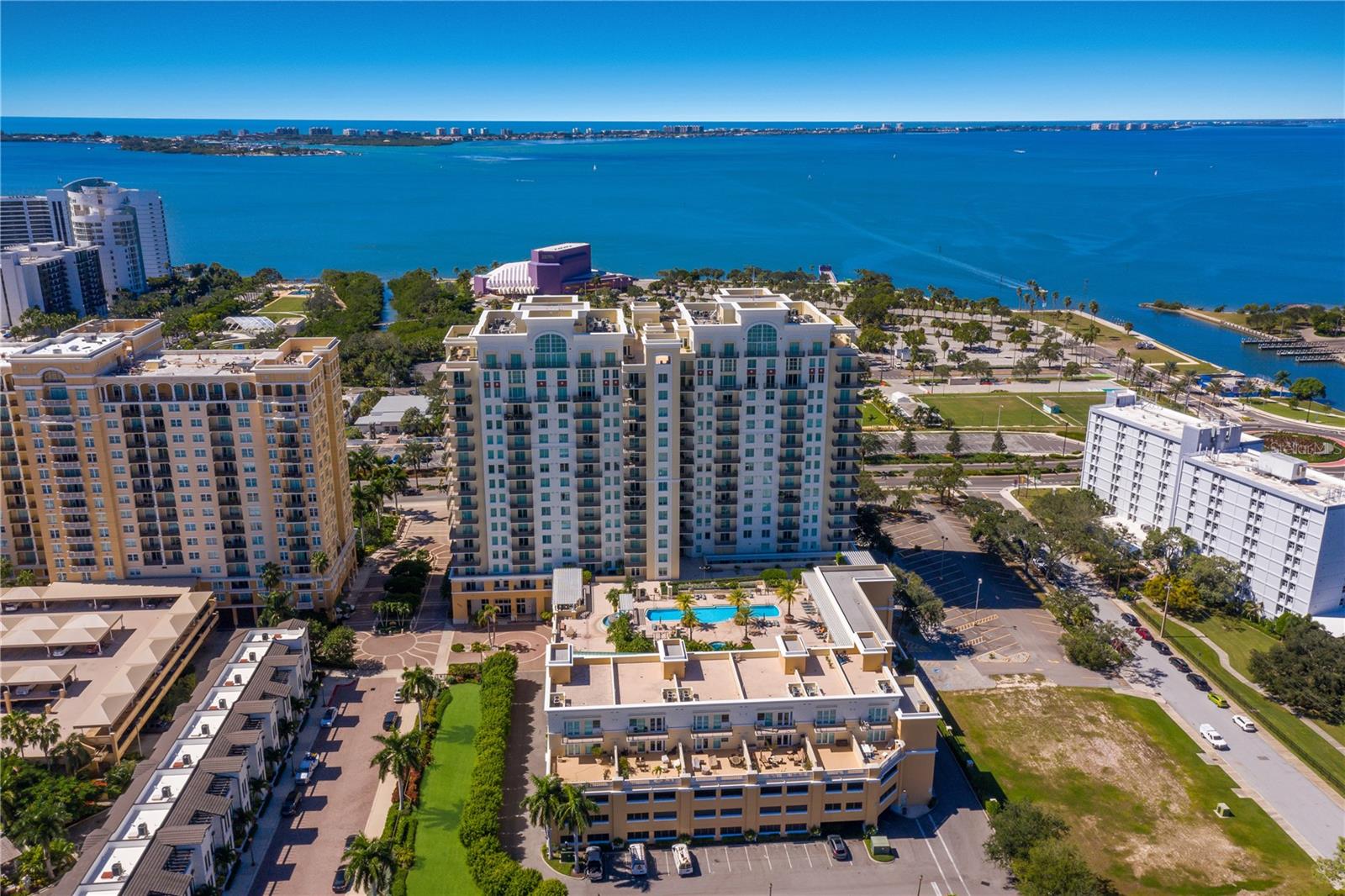 $146,000 price improvement!! Built in 2007, newer construction no engineering assessments. Featuring 10th floor panoramic views, split floor plan, breathtaking resort-style Jr. Olympic swimming pool and cabanas, the largest fitness center in Downtown, 24 hour Concierge and secure garage parking! Also an investor opportunity - tenant occupied through April 2024 at $5,500 per mo. Where expansive windows and high ceilings invite sunlight into every room of this 1,400 total sq. ft., most sought after 'Cellini,' split floor plan, luxury condo. Welcome to this 2 bedroom, 2 bath residence that transcends expectations! Entertain in-style with the open concept living, dining and gourmet kitchen with granite counters and white, coastal modern cabinetry. The spacious primary bedroom features a double vanity en-suite, luxury bath with a separate tub and shower and custom walk-in closet. Amenities include a resort-style 80 ft. Olympic-size, heated, swimming pool and spa with lounges and cabanas, sauna and fitness center, in-house Movie Theater, fun social activities and excursions. The guest bedroom and bath enjoy privacy on the opposite side of the living room. Enjoy a stroll to downtown Sarasota's theaters and fine dining, take a 10 minute trolley ride to beautiful Lido Beach and St. Armands Circle. Plush silk-thread carpeting and ceramic tile flooring. The over-sized, private utility room with full size washer and dryer are a rare pleasure downtown. Whether you need a quiet workspace in the business center, accommodations for guests in the guest suites, wine storage and tasting room, this home offers it all. Across from the famous Van Wezel Performing Arts Hall and close to the Ballet, Opera House, Shopping and our new 'The Bay' 53 acre Bayfront park. https://listing.thehoverbureau.com/ut/800_N_Tamiami_Trail_Unit_1010.html