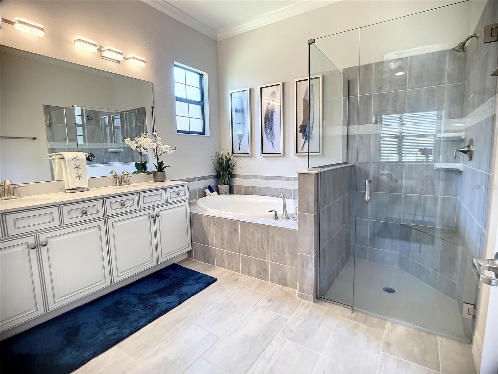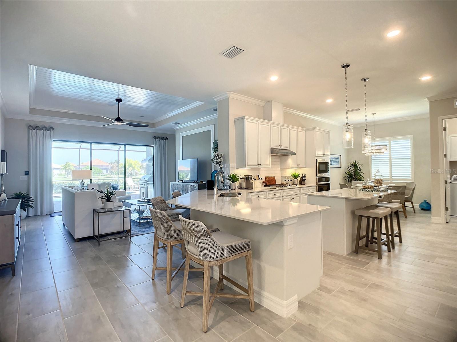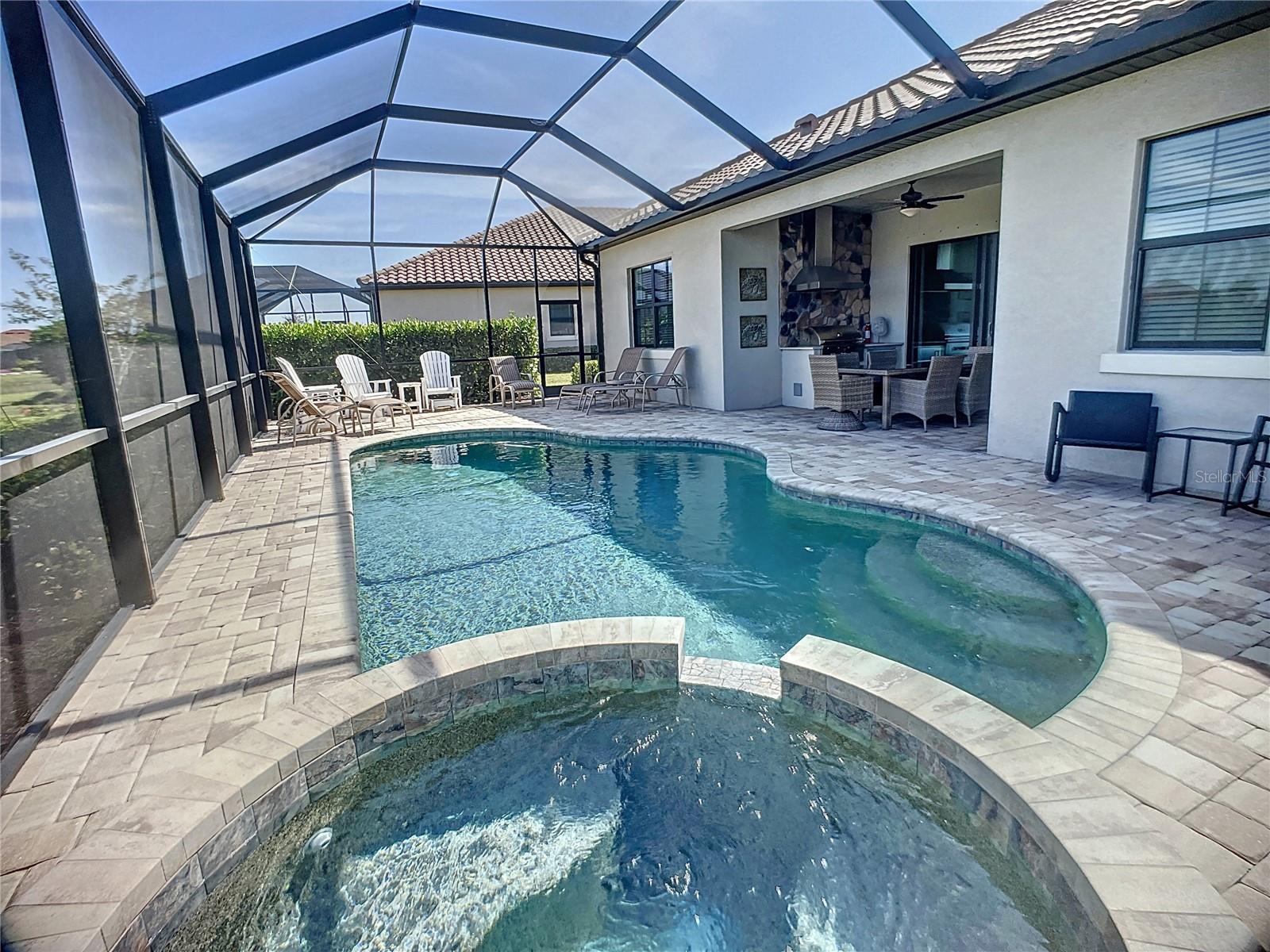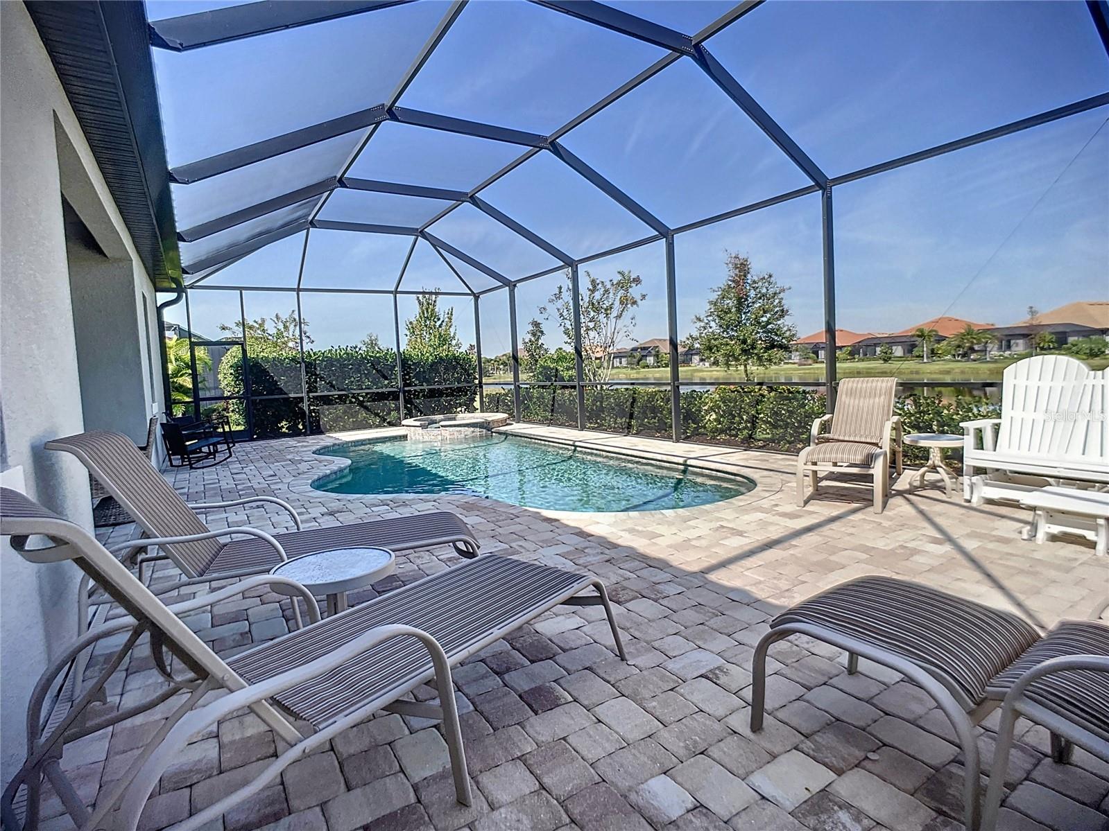 LWR GUARDED GATED Golf Community, HURRICANE INPACT WINDOWS, HEATED POOL W/ SPA, LAKE LOT, CUL-DE-SAC 12,514 SQ FT PREMIUM LOT,2,514 sq ft lot, 3 CAR GARAGE, Outdoor Kitchen, Paver Driveway & Lanai, Tile Roof, Gas Instant Hot Water Heater, Designer Lighting. Home Warranty Included w/ Sale. Nestled within the exclusive gated Golfing, LWR Country Club East stands out as one of the most coveted living destinations. Experience the freedom of MAINTENANCE-FREE living, complemented by stunning curb appeal. Revel in the luxury of a paver driveway, tile roof, and HURRICANE WINDOWS. This impressive 4 BEDROOMS residence features TWO ENSUITES bedrooms and 3 BATHS. Its well-thought-out OPEN FLOOR PLAN effortlessly blends elegance with comfort, and the entire house is adorned with exquisite tile throughout - NO CARPETS here. Situated on a PREMIUM LAKEFRONT LOT at the end of a tranquil CUL-DE-SAC, this property offers more space than most, boasting a generous 12,500 sq ft. lot. The OWNERS ARE PART TIME RESIDENTS, so this house is gently lived in, making it a pristine choice. It's adorned with stunning light fixtures, creating a luxurious ambiance. The kitchen is a chef's dream, featuring QUARTZ COUNTERTOPS, GE PROFILE APPLIANCES, BUILT IN SMART OVEN, 5 BURNER GAS COOKTOP, two eat-at bars, ample counter space, and pendant lighting. It offers plenty of room for both a dining table and casual counter seating. The large island with storage is a focal point, and the lite wood cabinetry, bright design is perfect for entertaining family and friends. Both the living space and the owner's suite have been tastefully upgraded with shiplap ceilings and modern ceiling fans. Step outside to the OVERSIZED PAVER LANAI, the epitome of Florida living. Here, you'll discover a kidney-shaped HEATED POOL WITH SPA, a serene lake view, and a comfortable undercover area with a SUMMER KITCHEN - an idyllic setting for relaxation and entertainment. The owner's suite is a private sanctuary, offering a spacious room with stunning tile, a tray ceiling, and an oversized walk-in closet with wood breathable shelving. The owner's private bath is a haven, featuring quartz counters, dual sinks, a walk-in shower with a frameless custom glass door, a soaking tub, and a linen closet. The front bedroom serves as a perfect guest suite with its private bath and quartz countertop. Owners have updated the landscaping and added additional landscaping for privacy. Your combined annual HOA fees take care of all your landscaping and lawn maintenance, reclaimed water sprinklers, three community pools, a fitness center, a clubhouse, playgrounds, pet parks, and a manned guard gate for added security & peace of mind. The house is not only equipped with a gas cooking system but also features a gas tankless hot water system. Situated in Lakewood Ranch, the #1 best-selling multigenerational community in the country, you'll be close to world-class beaches, dining, exceptional schools, medical facilities, shopping, and theatrical entertainment. Home Warranty Included with Sale. Room Feature: Linen Closet In Bath (Primary Bedroom).