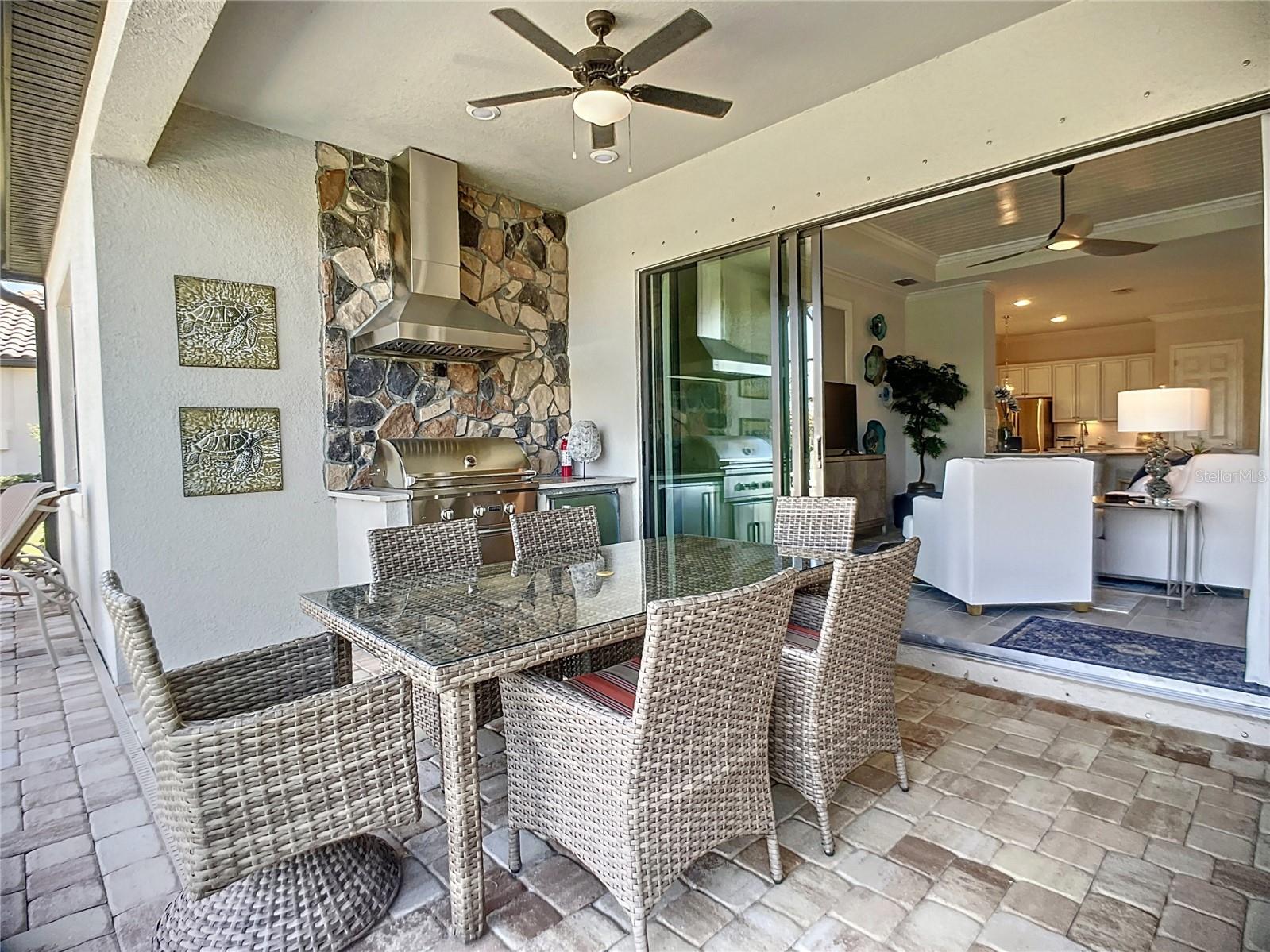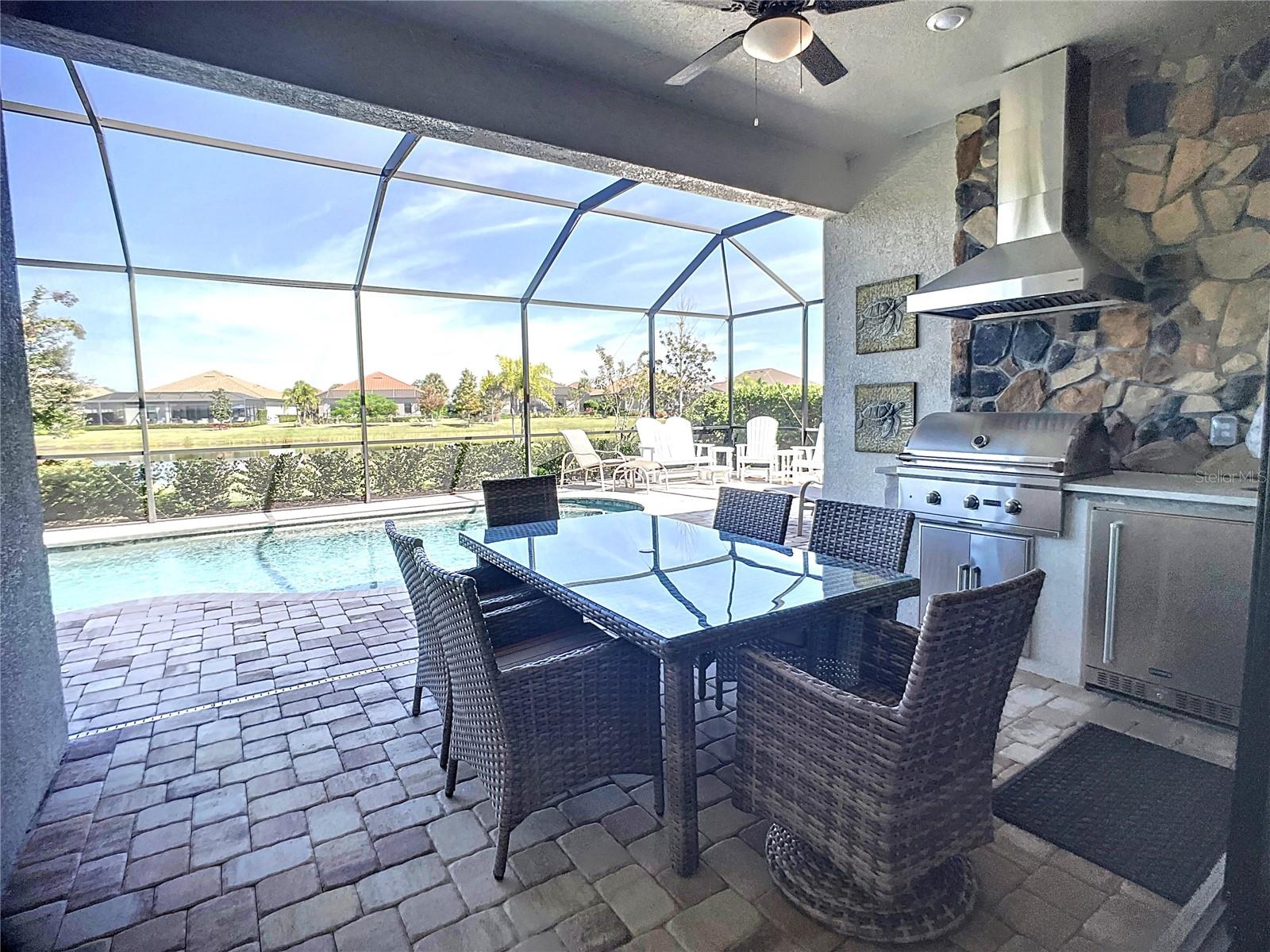 - Exterior: Irrigation System, Lighting, Outdoor Grill, Outdoor Kitchen, Rain Gutters, Sidewalk, Sliding Doors