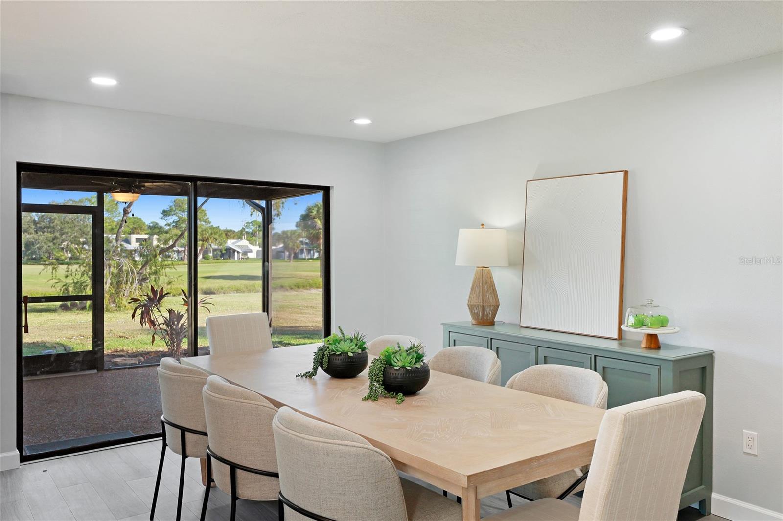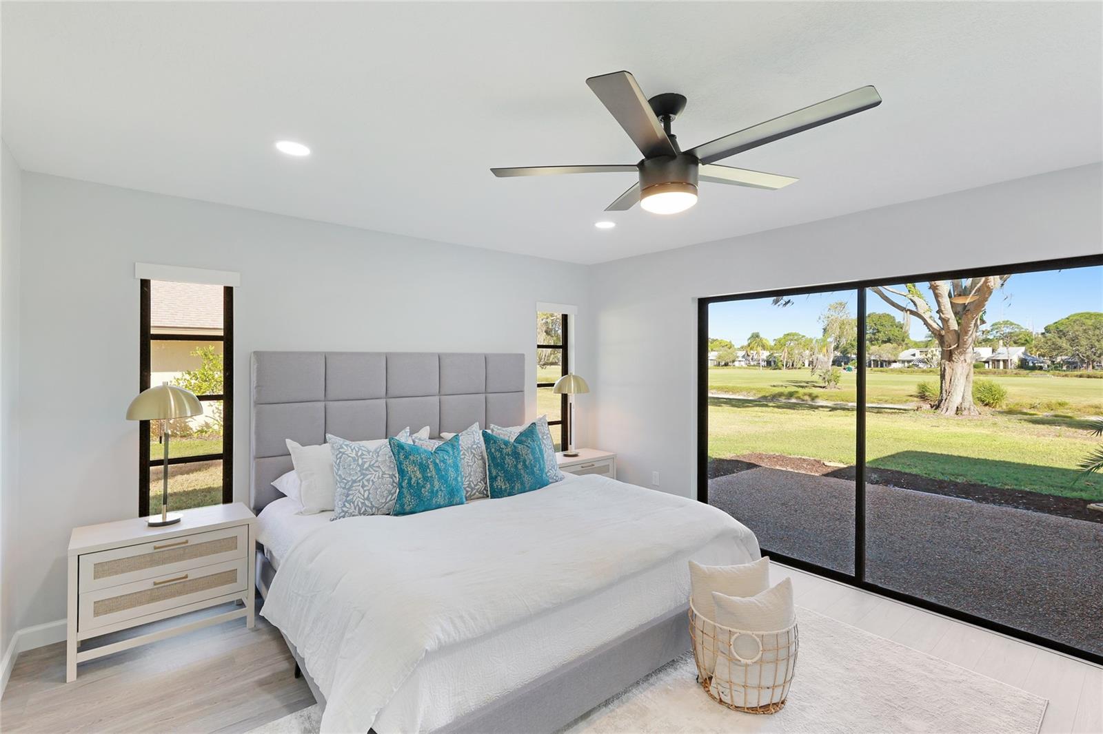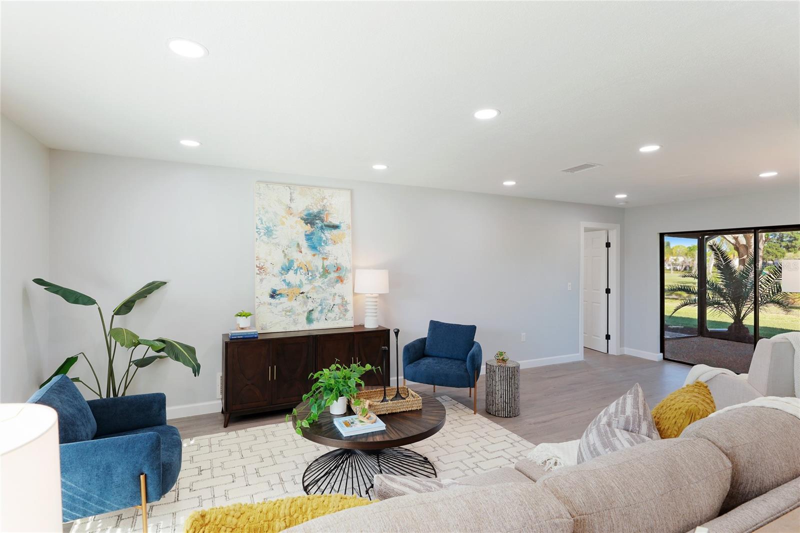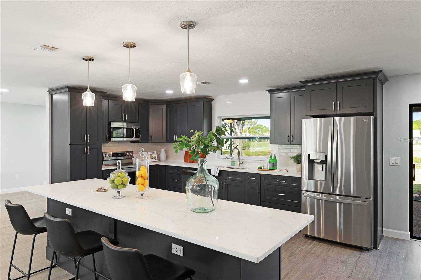 Check out this stunning remodeled home nestled within the picturesque Meadows Country Club. With nearly 2,000 square feet of living space, this 3-bedroom, 2-bathroom, split plan home sits on an almost half-acre lot, with room for a pool, offering panoramic tranquil views of the golf course. Upon entering, you'll be greeted by the open floor plan that seamlessly combines luxury and functionality. Natural light floods the main living area, creating a welcoming ambiance. The heart of this home is the kitchen that boasts brand new stainless steel appliances, elegant quartz countertops, a built-in pantry, and an expansive island with bar seating and lots of cabinet space. Nestled adjacent to the kitchen, the dining room offers a seamless connection to the outdoors. A sliding glass door entices you to step out onto a screened-in lanai, while a larger slider in the living room guarantees a perfect fusion of indoor and outdoor living. The primary suite seamlessly opens to a delightful patio through a sliding door, offering a tranquil spot for unwinding in the evenings or indulging in your morning coffee. Entering the ensuite, you'll discover split dual vanities and a large walk-in shower with a bench. Two more bedrooms share a tastefully updated bathroom, providing ample space for family or guests. As an addition, there is plenty of room for a future pool to be installed, enhancing the outdoor living experience. The Meadows Country Club offers an abundance of amenities to enhance your lifestyle. Members will enjoy exclusive access to 54 holes of golf, 17 har-tru tennis courts, pickleball, a Junior Olympic pool, a 5,000 sq ft. fitness center with a dedicated staff, 2 restaurants, 6 unique event spaces and over 200 events annually. There's something for everyone from social events, educational programs and recreational activities including the 14 miles of oak canopied walking, nature and biking trails that weave through the community. Living in the Meadows offers easy access to I-75, UTC, Nathan Benderson Park, Lakewood Ranch, Sarasota-Bradenton International Airport, as well as a variety of dining and shopping options. With something for everyone, this home is not just a property; it's a lifestyle upgrade. Experience the best of modern living and country club amenities.