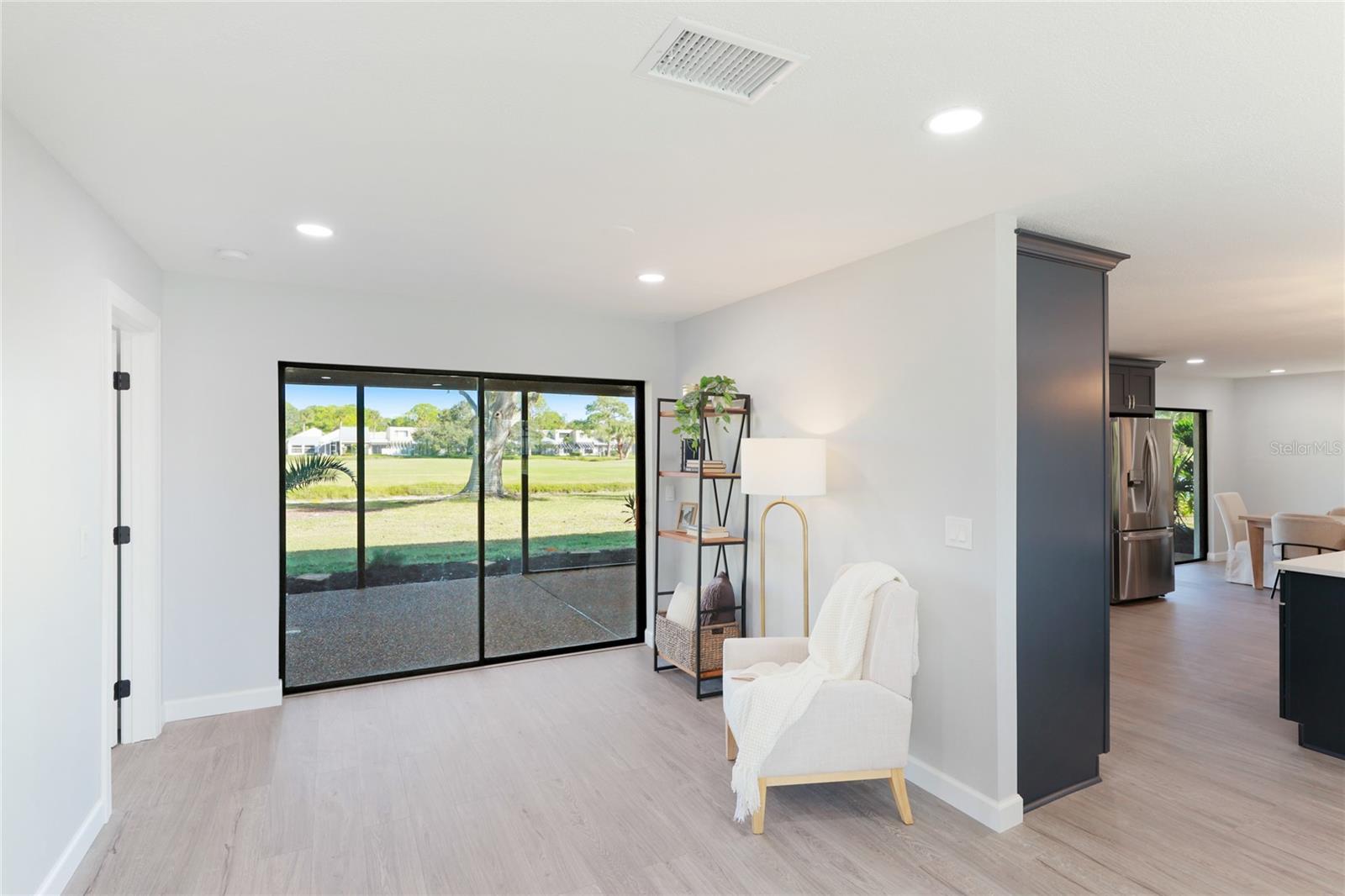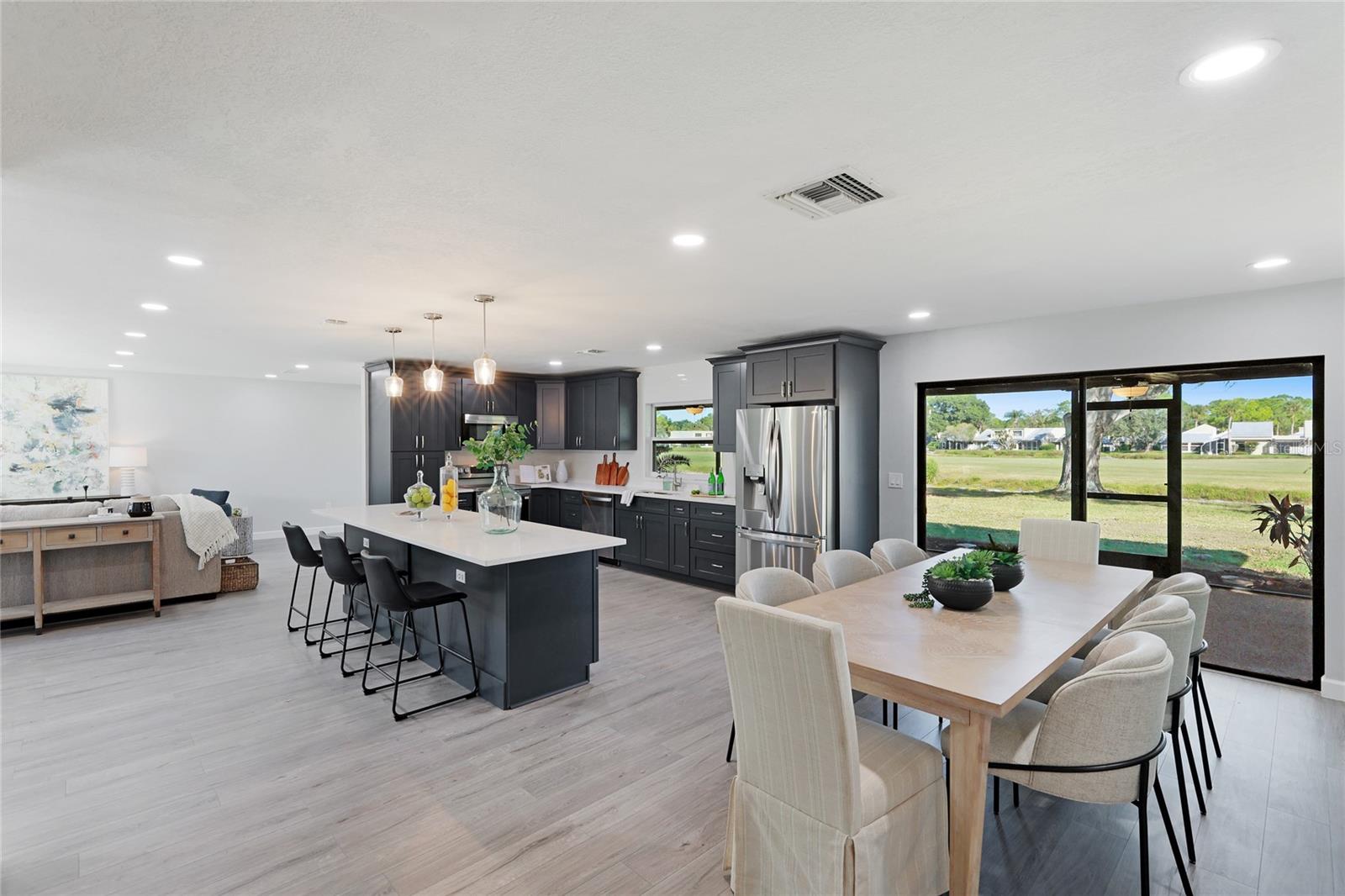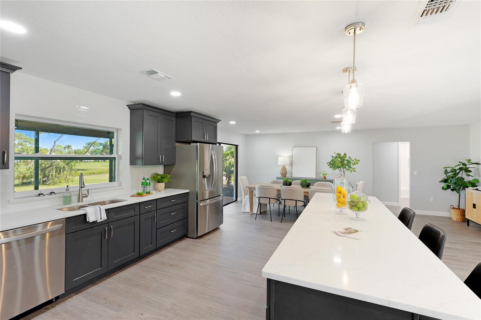 Check out this stunning remodeled home nestled within the picturesque Meadows Country Club. With nearly 2,000 square feet of living space, this 3-bedroom, 2-bathroom, split plan home sits on an almost half-acre lot, with room for a pool, offering panoramic tranquil views of the golf course. Upon entering, you'll be greeted by the open floor plan that seamlessly combines luxury and functionality. Natural light floods the main living area, creating a welcoming ambiance. The heart of this home is the kitchen that boasts brand new stainless steel appliances, elegant quartz countertops, a built-in pantry, and an expansive island with bar seating and lots of cabinet space. Nestled adjacent to the kitchen, the dining room offers a seamless connection to the outdoors. A sliding glass door entices you to step out onto a screened-in lanai, while a larger slider in the living room guarantees a perfect fusion of indoor and outdoor living. The primary suite seamlessly opens to a delightful patio through a sliding door, offering a tranquil spot for unwinding in the evenings or indulging in your morning coffee. Entering the ensuite, you'll discover split dual vanities and a large walk-in shower with a bench. Two more bedrooms share a tastefully updated bathroom, providing ample space for family or guests. As an addition, there is plenty of room for a future pool to be installed, enhancing the outdoor living experience. The Meadows Country Club offers an abundance of amenities to enhance your lifestyle. Members will enjoy exclusive access to 54 holes of golf, 17 har-tru tennis courts, pickleball, a Junior Olympic pool, a 5,000 sq ft. fitness center with a dedicated staff, 2 restaurants, 6 unique event spaces and over 200 events annually. There's something for everyone from social events, educational programs and recreational activities including the 14 miles of oak canopied walking, nature and biking trails that weave through the community. Living in the Meadows offers easy access to I-75, UTC, Nathan Benderson Park, Lakewood Ranch, Sarasota-Bradenton International Airport, as well as a variety of dining and shopping options. With something for everyone, this home is not just a property; it's a lifestyle upgrade. Experience the best of modern living and country club amenities.