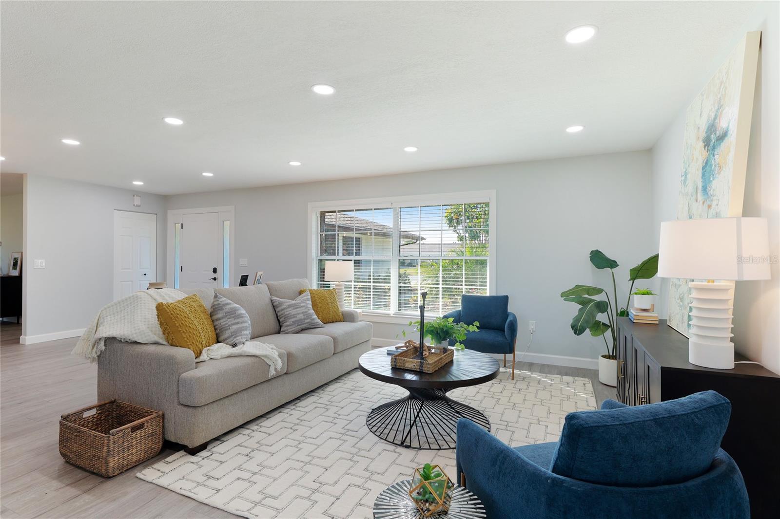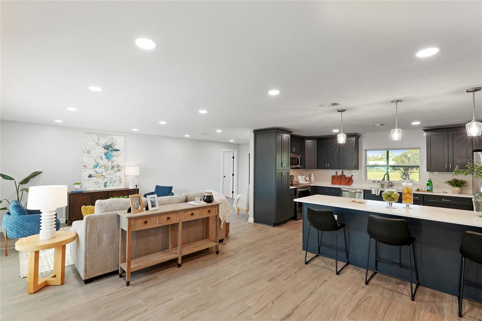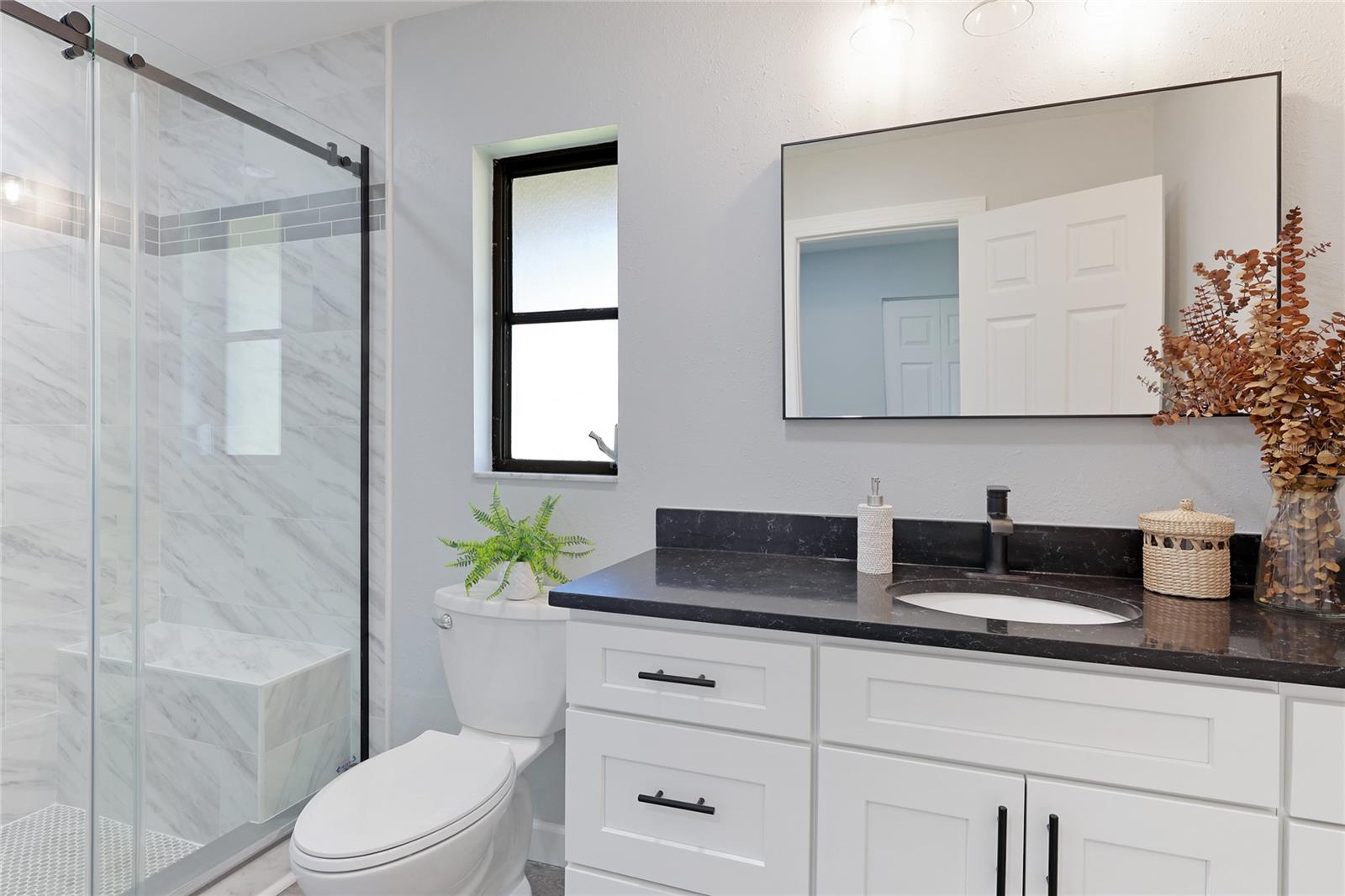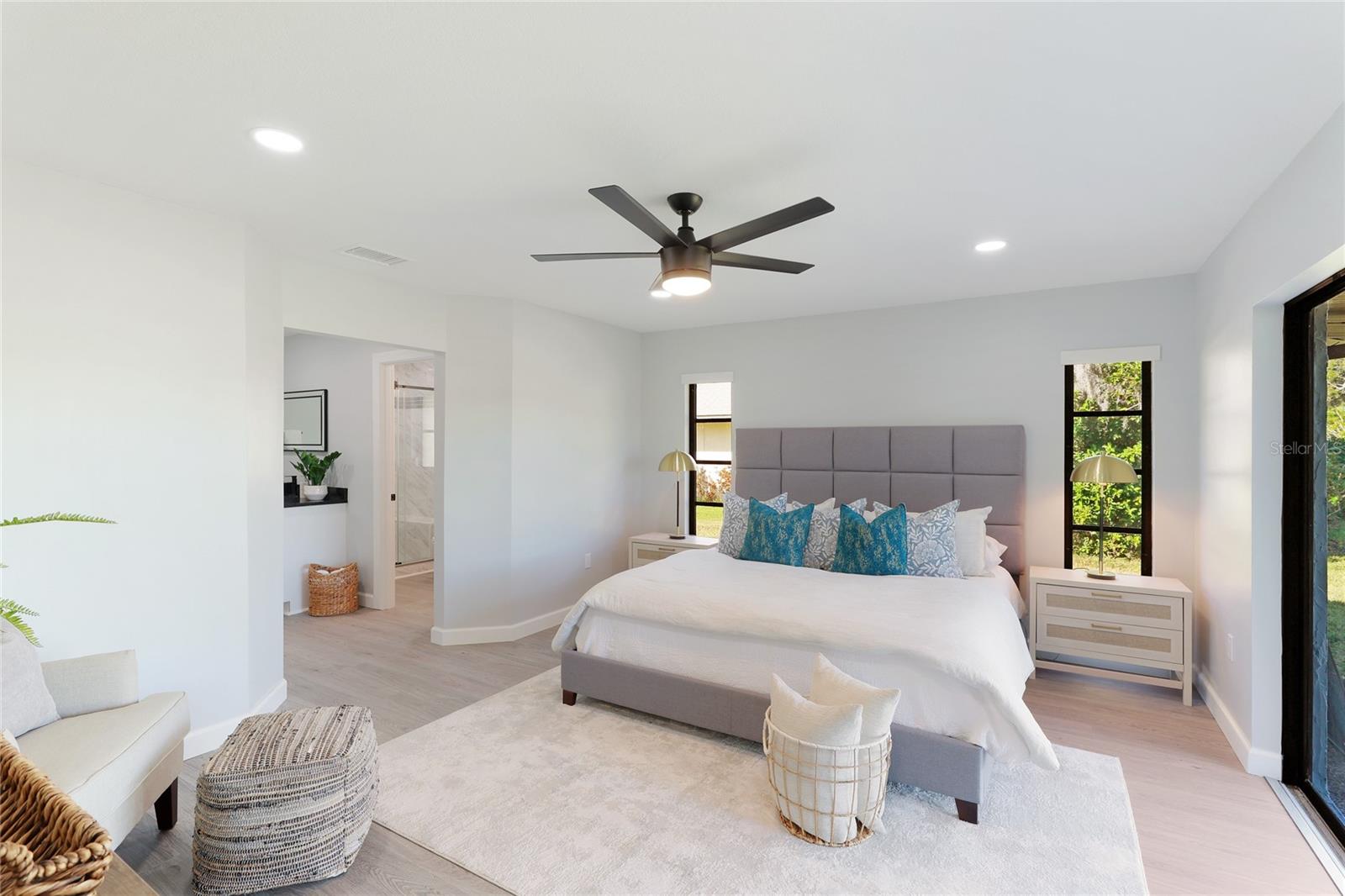 Check out this stunning remodeled home nestled within the picturesque Meadows Country Club. With nearly 2,000 square feet of living space, this 3-bedroom, 2-bathroom, split plan home sits on an almost half-acre lot, with room for a pool, offering panoramic tranquil views of the golf course. Upon entering, you'll be greeted by the open floor plan that seamlessly combines luxury and functionality. Natural light floods the main living area, creating a welcoming ambiance. The heart of this home is the kitchen that boasts brand new stainless steel appliances, elegant quartz countertops, a built-in pantry, and an expansive island with bar seating and lots of cabinet space. Nestled adjacent to the kitchen, the dining room offers a seamless connection to the outdoors. A sliding glass door entices you to step out onto a screened-in lanai, while a larger slider in the living room guarantees a perfect fusion of indoor and outdoor living. The primary suite seamlessly opens to a delightful patio through a sliding door, offering a tranquil spot for unwinding in the evenings or indulging in your morning coffee. Entering the ensuite, you'll discover split dual vanities and a large walk-in shower with a bench. Two more bedrooms share a tastefully updated bathroom, providing ample space for family or guests. As an addition, there is plenty of room for a future pool to be installed, enhancing the outdoor living experience. The Meadows Country Club offers an abundance of amenities to enhance your lifestyle. Members will enjoy exclusive access to 54 holes of golf, 17 har-tru tennis courts, pickleball, a Junior Olympic pool, a 5,000 sq ft. fitness center with a dedicated staff, 2 restaurants, 6 unique event spaces and over 200 events annually. There's something for everyone from social events, educational programs and recreational activities including the 14 miles of oak canopied walking, nature and biking trails that weave through the community. Living in the Meadows offers easy access to I-75, UTC, Nathan Benderson Park, Lakewood Ranch, Sarasota-Bradenton International Airport, as well as a variety of dining and shopping options. With something for everyone, this home is not just a property; it's a lifestyle upgrade. Experience the best of modern living and country club amenities.