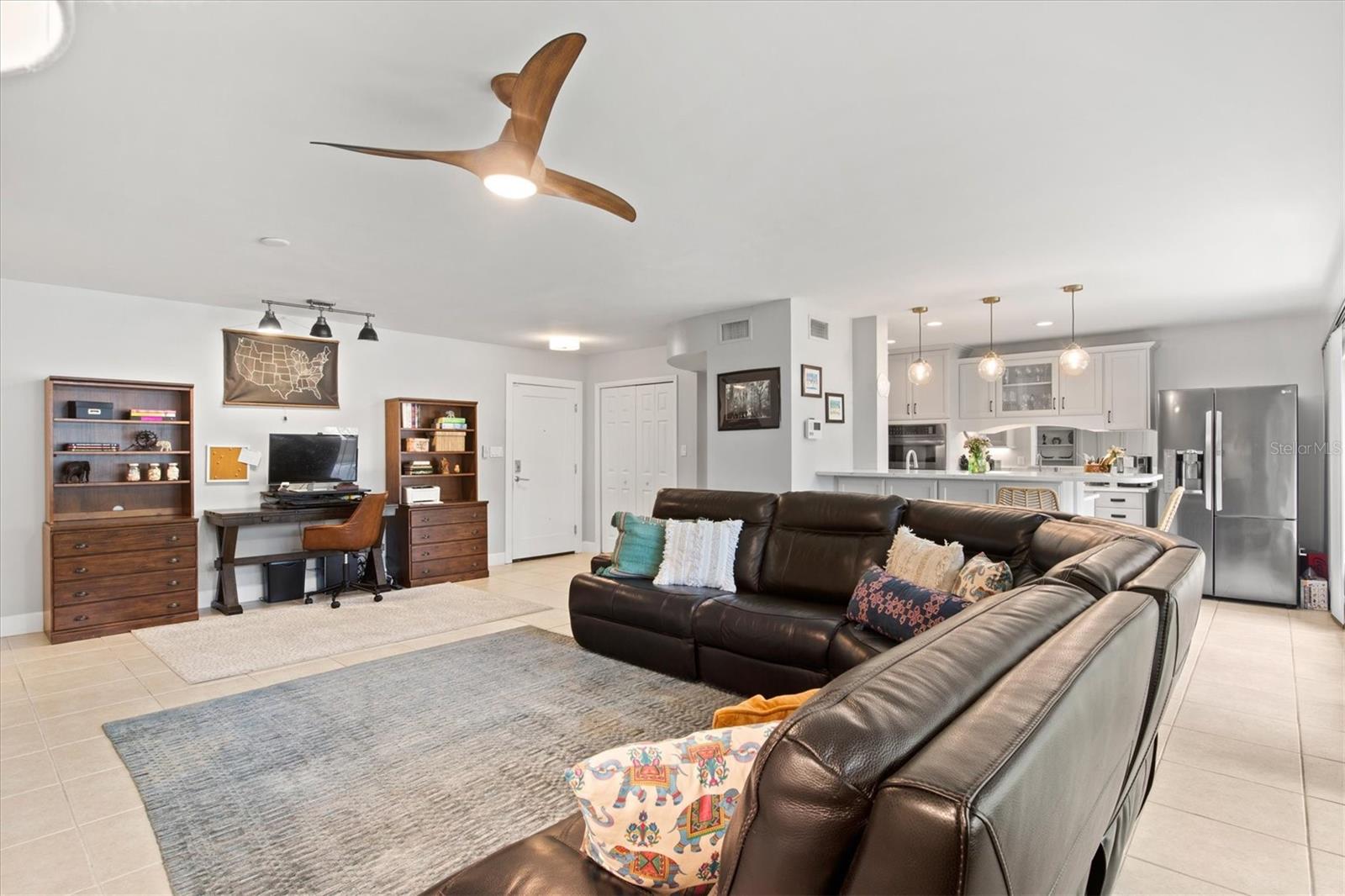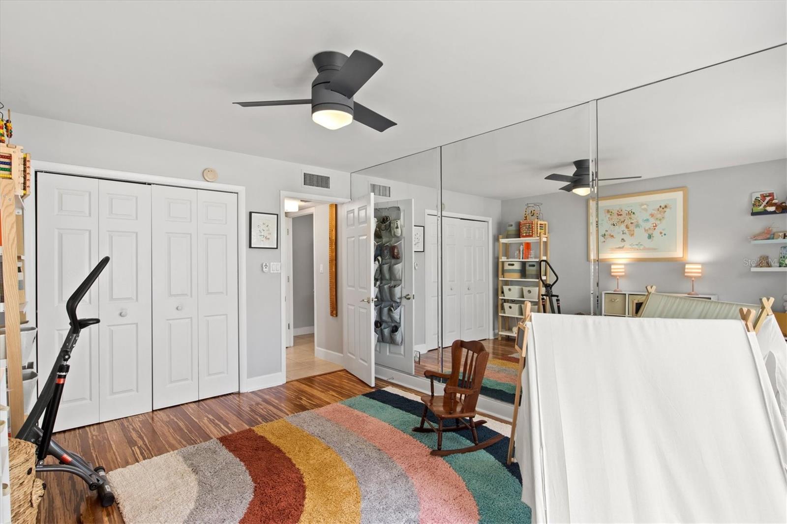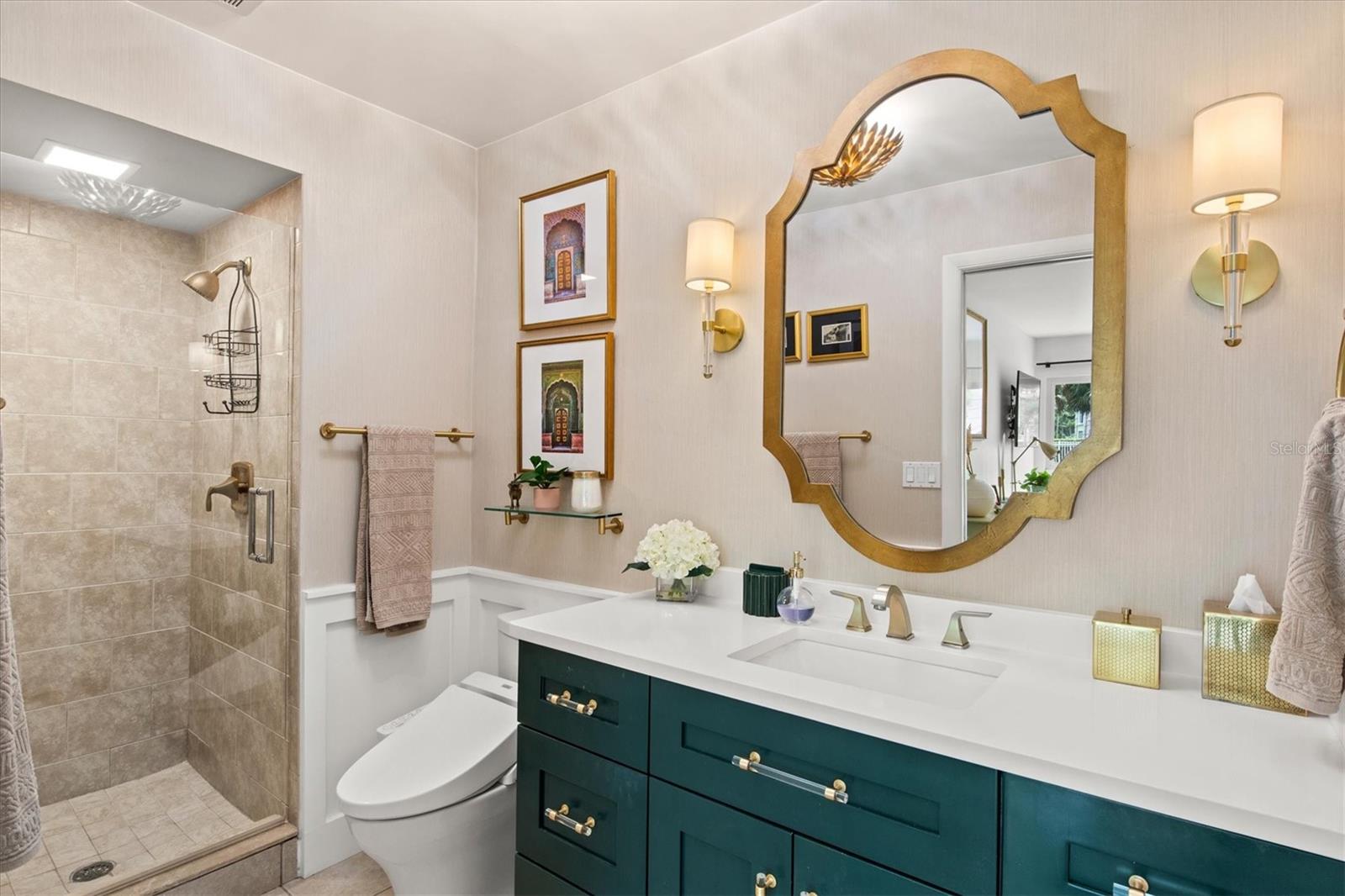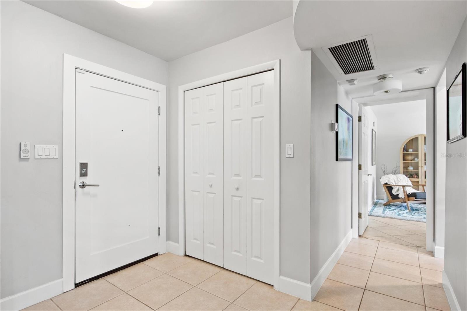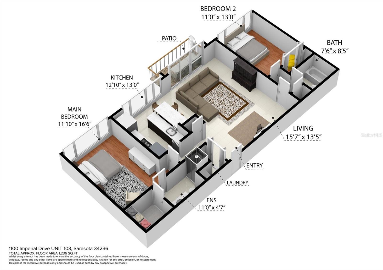 DIRECT BAYFRONT CONDO. FIRST FLOOR with beautiful bay and sunset views. NO elevator needed. Walk right out your door to your lanai, the pool, the bay or to walk your dog. This quiet and peaceful community is located next to a beautiful bayfront park on one side and the Sarasota Bay Club on the other. Sit in the adirondack chairs on the bay and watch the dolphins play, sailboats and the sunset. This MOVE IN READY condo boasts a split floor plan and has been renovated with high end SS kitchen appliances, white shaker cabinets, quartz countertops, breakfast bar and pantry closet. Lots of natural light fills the space. The primary ensuite has a walk-in closet and walk-in tiled shower. The guest bedroom features tiger stripped bamboo floors and a mirrored wall that reflects the water. There is a stackable washer/dryer in the condo. The rarely used heated pool is like having your own private pool. You can even watch the kids or grandkids from your condo or lanai. The impact glass sliders open up to the comfortable screened lanai to increase your living space. A storage cage is available on the same floor. This convenient location is only 1 mile from downtown, 10 minutes to the beach, 3 miles from the airport and a couple of blocks from Publix. In the park next door there is a playground and walking paths to enjoy. No one will ever build in front of this condo and block your view. Architects rendering of new lobby in photos. Seller will consider a "rent to own" agreement.