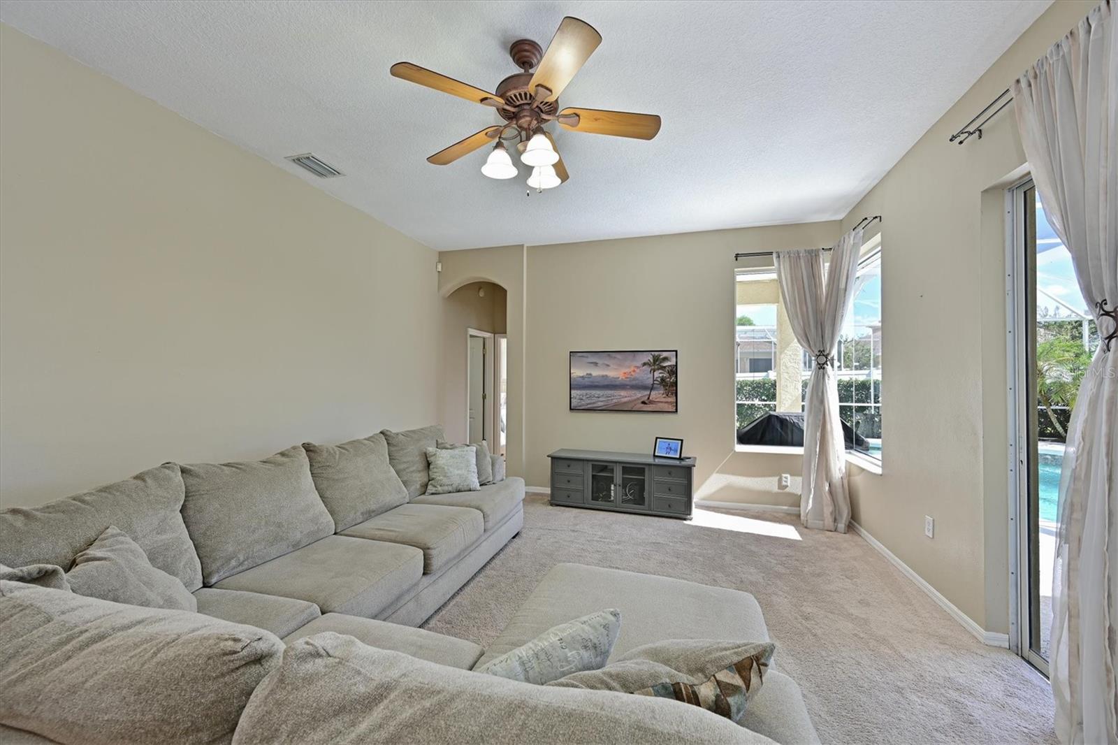 Welcome to the sought after community of Greenbrook Village in beautiful Lakewood Ranch! Great curb appeal as you pull up to this corner lot home with manicured yard and recently resealed driveway. As you enter the home you have your formal living room and dining room space. Master bedroom is to the right with two closets and sliders leading out to enclosed pool area. The bathroom has split sinks, a walk-in shower and tub. The kitchen, with gas stove, overlooks the large family room and dinette area with an aquarium window. Both living room and family room have sliders leading to the lanai. Bedrooms two and three are to the left of the family room with the second bathroom located between them. The fourth bedroom and bonus room are tucked to the back of the home. The third bathroom allows access to the pool. The salt water pool with two covered spaces allows great space for entertaining. Interior of the home just painted! The backyard is already partially fenced. Roof is 2019! You won't want to miss this opportunity!