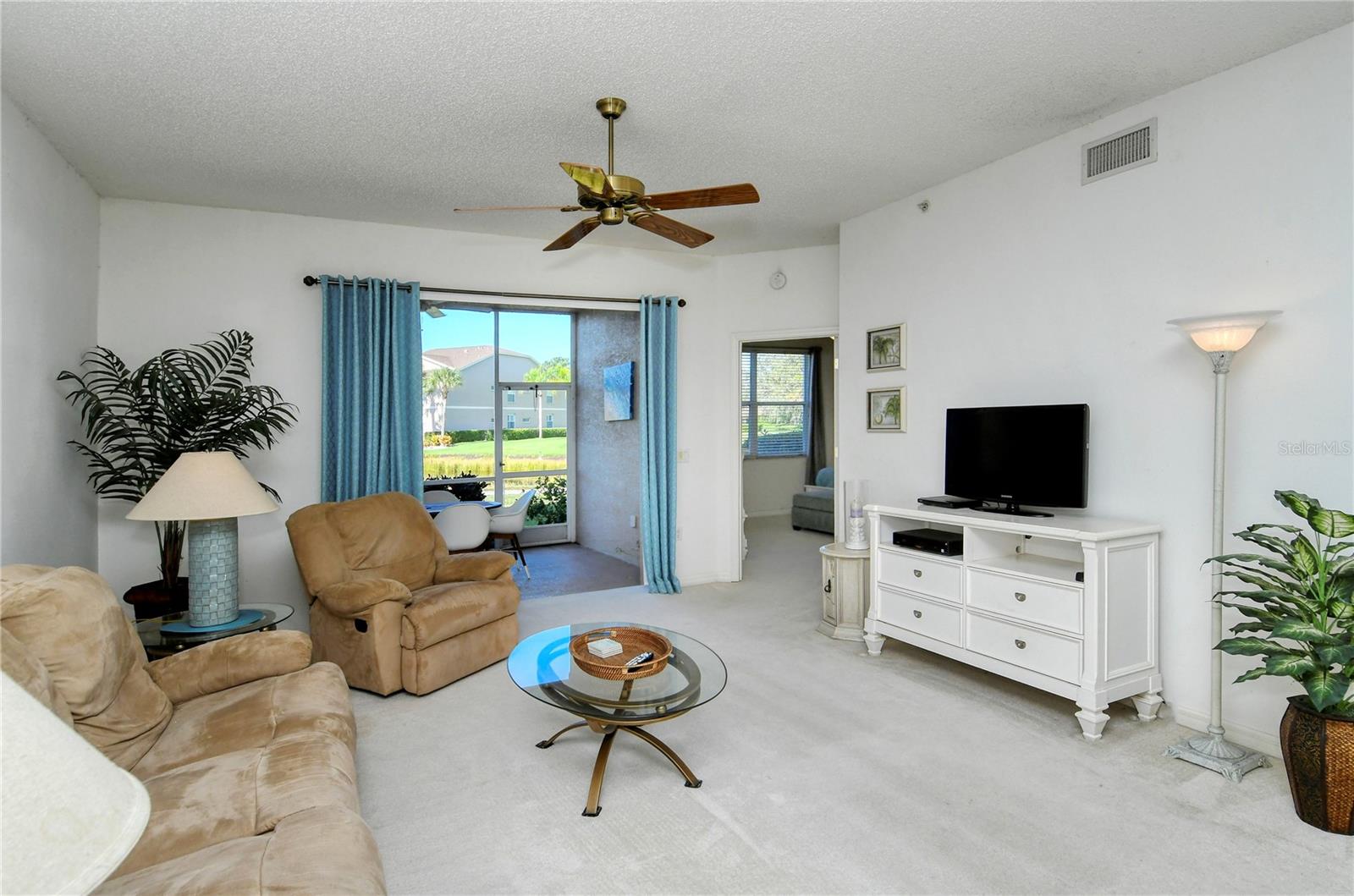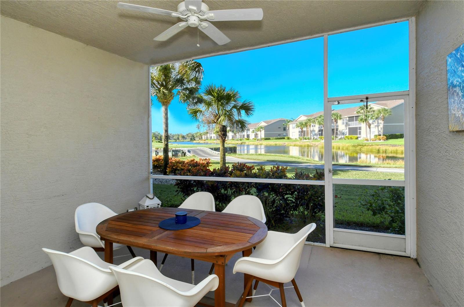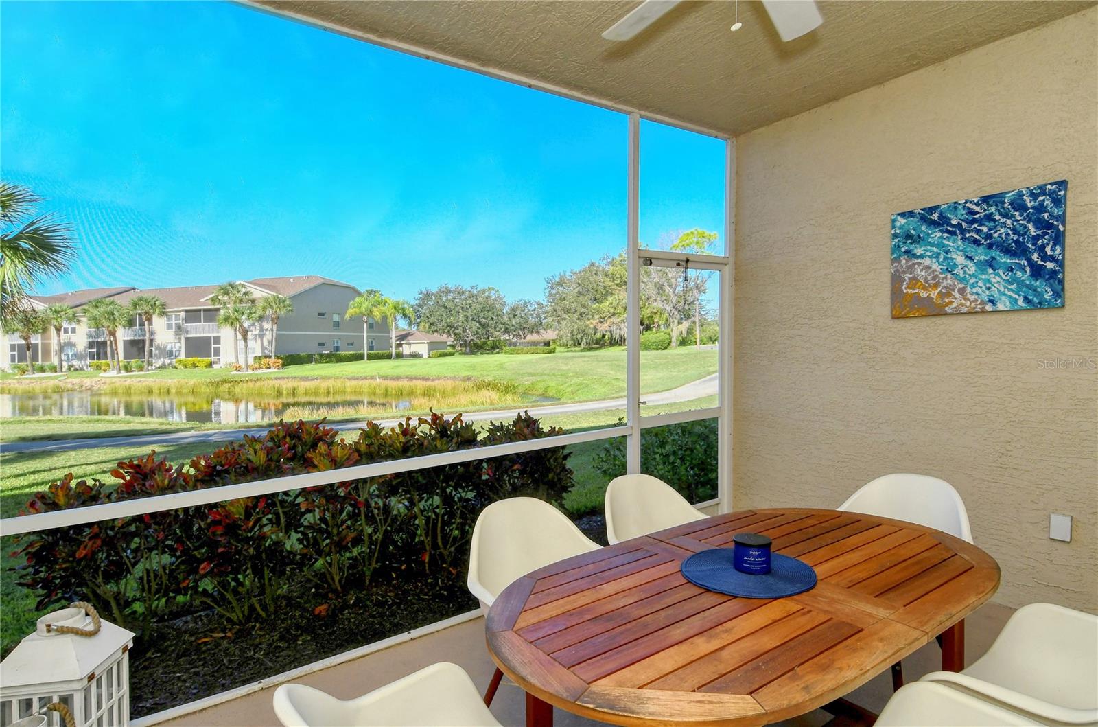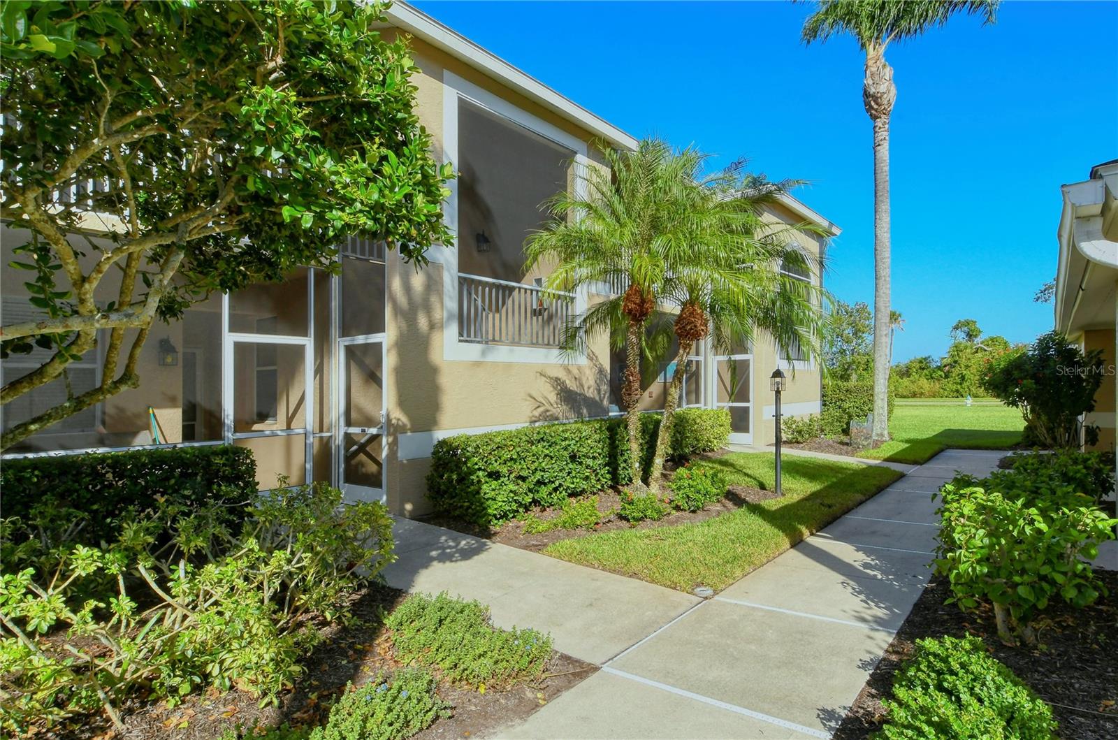 Welcome to Heritage Oaks Golf & Country Club! This wonderful first floor Abbey Veranda unit offers an exceptional blend of comfort and convenience and is being sold Turn-Key Furnished. With 2 bedrooms, 2 bathrooms, and a den/study space, this wonderful property is the largest of the veranda units available in the community and features outstanding views of water and the golf course. The view is truly dynamic and amazing! Step inside to discover an open and inviting living space. The modern kitchen boasts stainless steel appliances, providing a perfect backdrop for entertaining guests and family. The adjacent dining and living areas flow seamlessly, making it an ideal setting for hosting gatherings or enjoying quiet evenings at home. A screened lanai extends the living space, providing a tranquil spot to savor the spectacular Florida sunsets that can be seen from this unit. The primary suite is your personal oasis, complete with walk-in closets and a well-appointed en-suite bathroom. A private second bedroom offers versatility for guests while the den/study can be used as a home office or even as a third bedroom. The den features lovely glass doors and large transom window that provides a ton of natural light while allowing privacy when in use. Beyond the condo's doorstep, Sarasota's world-class beaches and vibrant cultural scene, shopping destinations, and diverse dining options are all within easy reach, offering a rich tapestry of experiences. Heritage Oaks is known for its pristine 18-hole golf course, har-tru tennis courts, fitness center, 24-hour security, an impressive clubhouse with 2 restaurants including the sensational 19th Hole Lounge, 5 heated swimming pools, and a calendar of events packed with activities. This property truly embodies the essence of Sarasota living. Whether you seek a permanent residence or a seasonal escape, this property promises comfort, style, and access to everything this coastal city has to offer. Secure your piece of paradise today!