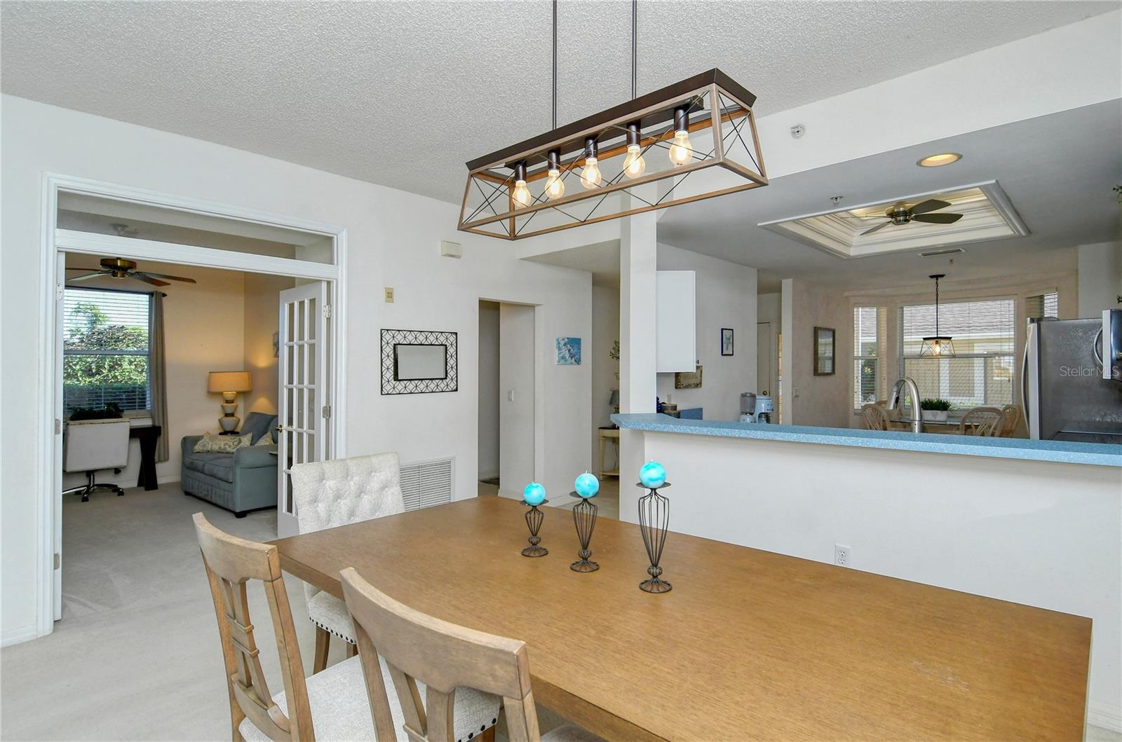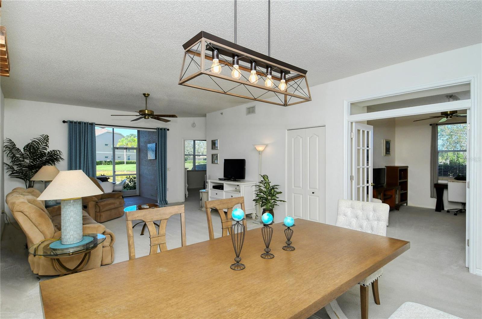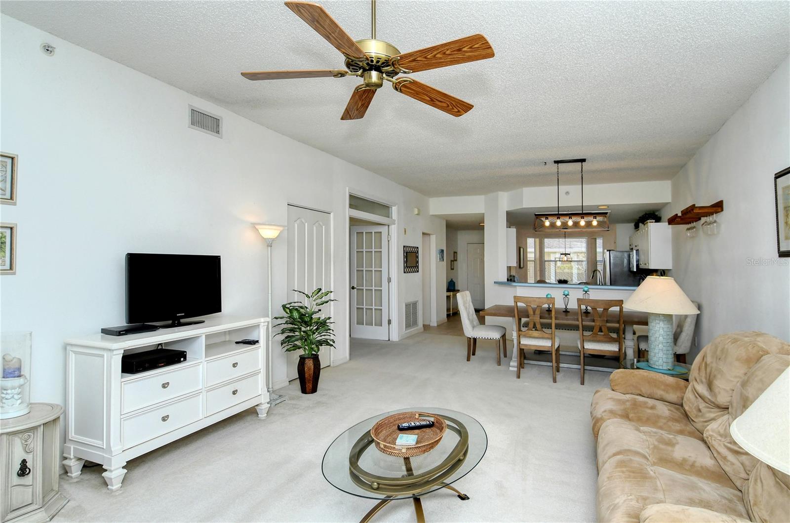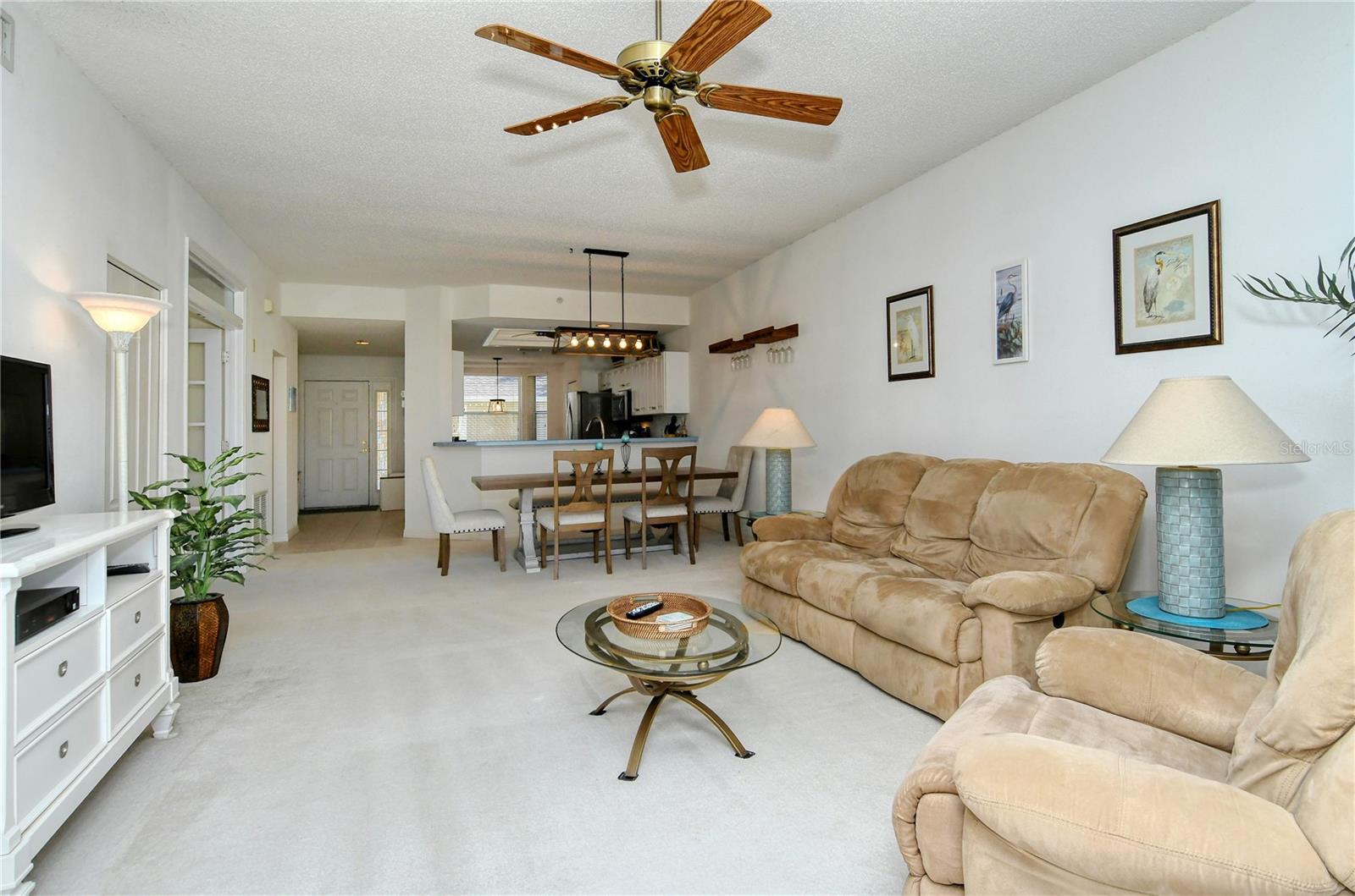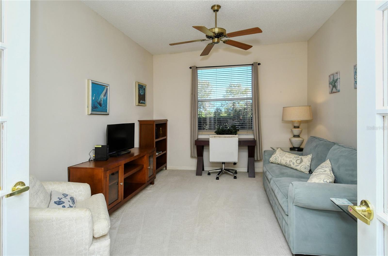 Welcome to Heritage Oaks Golf & Country Club! This wonderful first floor Abbey Veranda unit offers an exceptional blend of comfort and convenience and is being sold Turn-Key Furnished. With 2 bedrooms, 2 bathrooms, and a den/study space, this wonderful property is the largest of the veranda units available in the community and features outstanding views of water and the golf course. The view is truly dynamic and amazing! Step inside to discover an open and inviting living space. The modern kitchen boasts stainless steel appliances, providing a perfect backdrop for entertaining guests and family. The adjacent dining and living areas flow seamlessly, making it an ideal setting for hosting gatherings or enjoying quiet evenings at home. A screened lanai extends the living space, providing a tranquil spot to savor the spectacular Florida sunsets that can be seen from this unit. The primary suite is your personal oasis, complete with walk-in closets and a well-appointed en-suite bathroom. A private second bedroom offers versatility for guests while the den/study can be used as a home office or even as a third bedroom. The den features lovely glass doors and large transom window that provides a ton of natural light while allowing privacy when in use. Beyond the condo's doorstep, Sarasota's world-class beaches and vibrant cultural scene, shopping destinations, and diverse dining options are all within easy reach, offering a rich tapestry of experiences. Heritage Oaks is known for its pristine 18-hole golf course, har-tru tennis courts, fitness center, 24-hour security, an impressive clubhouse with 2 restaurants including the sensational 19th Hole Lounge, 5 heated swimming pools, and a calendar of events packed with activities. This property truly embodies the essence of Sarasota living. Whether you seek a permanent residence or a seasonal escape, this property promises comfort, style, and access to everything this coastal city has to offer. Secure your piece of paradise today!