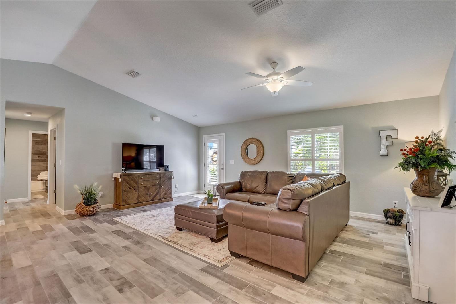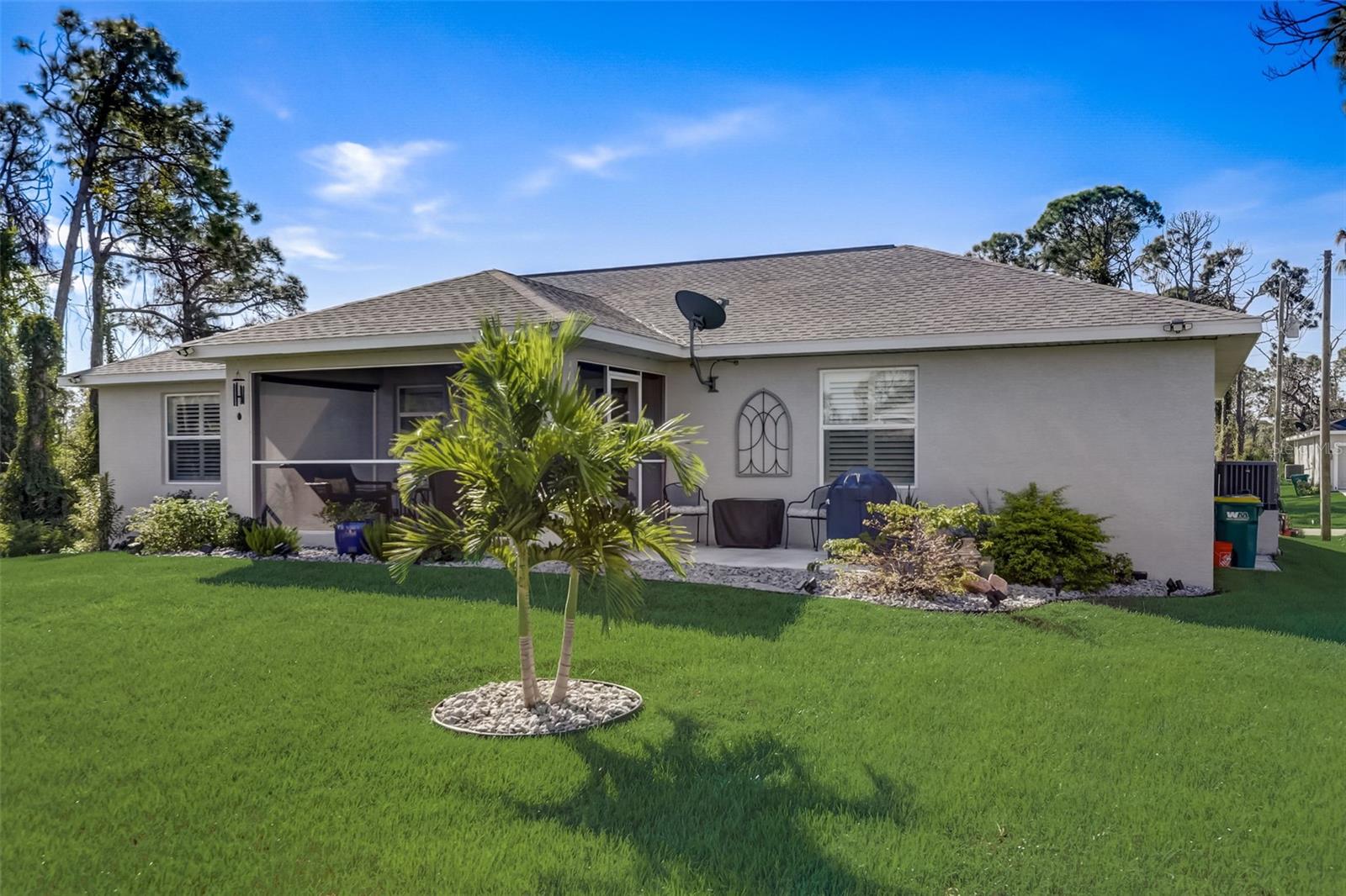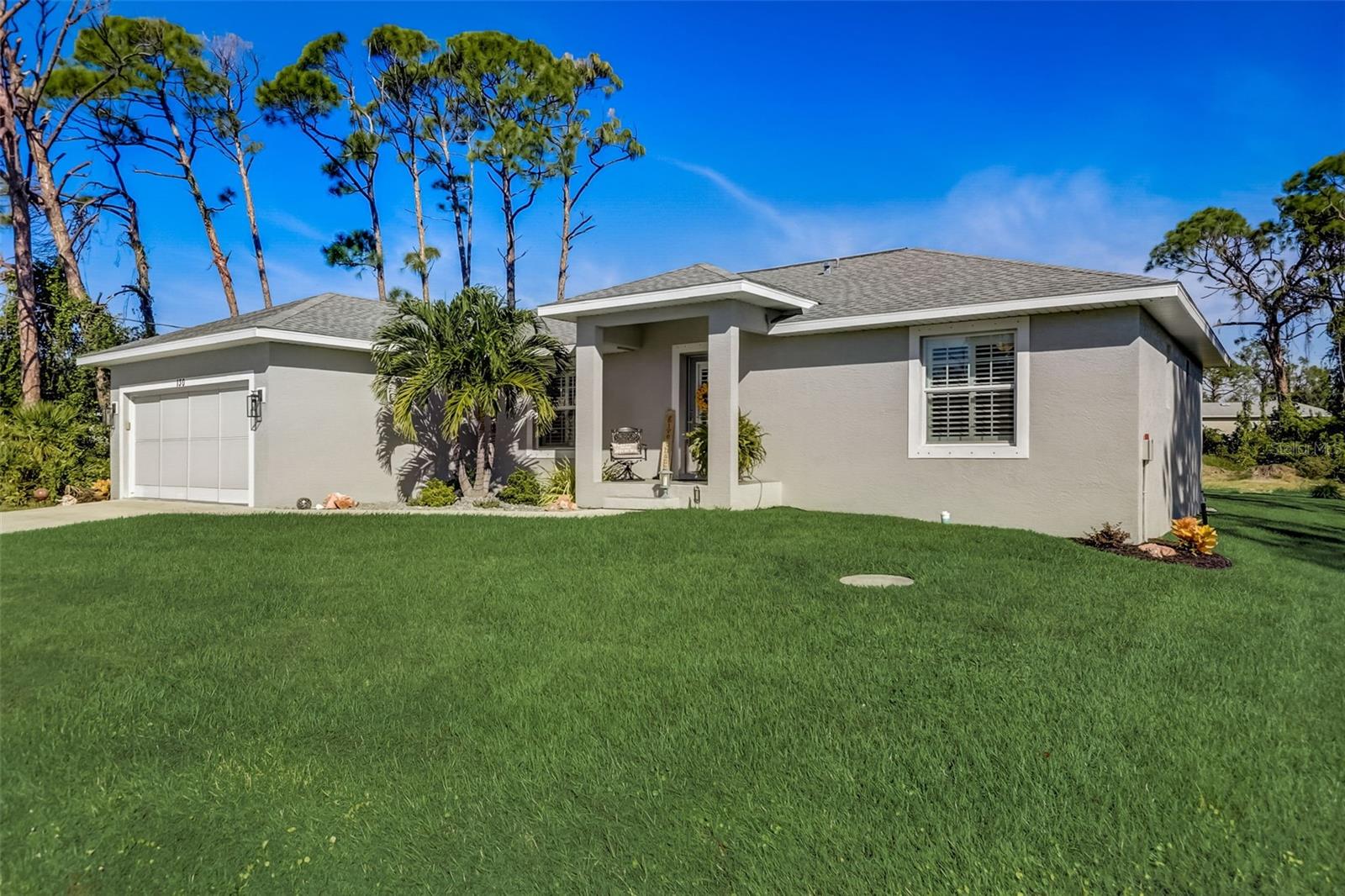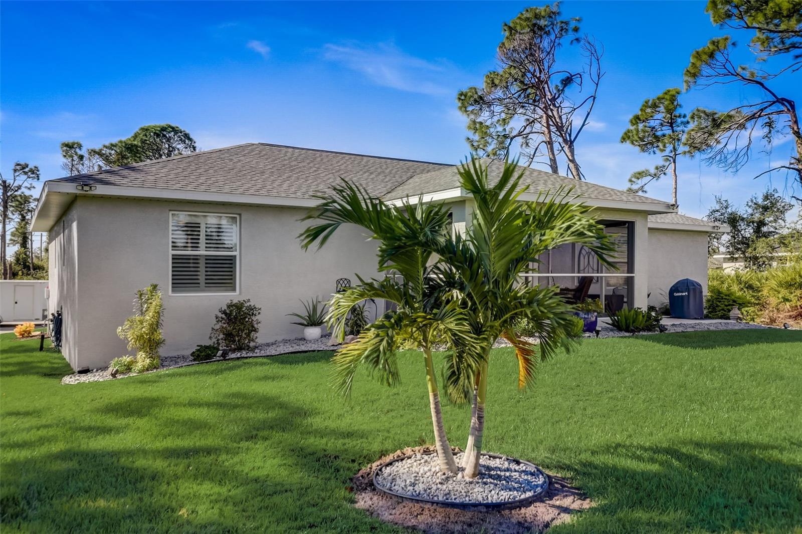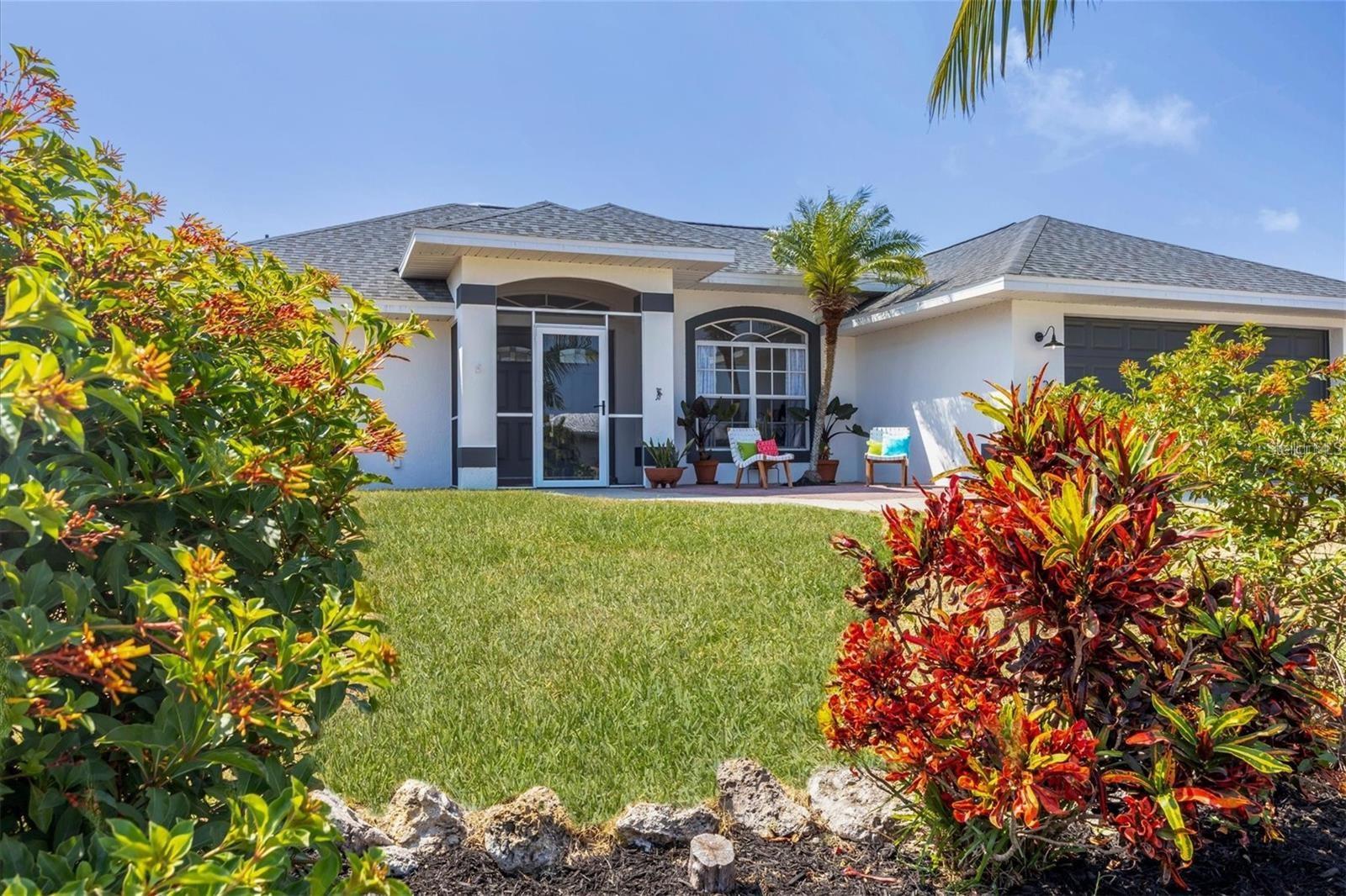 With an Assumable 2.5% VA Loan, this property offers a fantastic opportunity for your next move. Immaculate 3-bedroom, 2-bathroom home with a 2-car garage, built in 2021, offers a modern and spacious living experience. Located on a desirable quiet Cul-De-Sac. The open floor plan with soaring ceilings creates a sense of grandeur, while the ceramic plank tile floors throughout add elegance and durability. Plantation shutters not only provide functional light control but also add a touch of style to the interior.The generously sized bedrooms ensure comfort for your family or guests, and the primary suite features a walk-in closet and a primary bathroom with double vanities and a walk-in shower for added convenience. The Garage also features a dream screen.Outside, the professionally landscaped yard with granite rock adds curb appeal, and the sellers have thoughtfully added a concrete pad for a barbecue area. You can enjoy the Florida lifestyle to the fullest with the screened lanai, perfect for morning coffee and relaxation.This home is not only a sanctuary but also conveniently located near fabulous beaches, fishing spots, boating opportunities, golf courses, and a variety of restaurants. Once you take a personal tour, you'll be packing your bags. Don't miss out on this gorgeous home.