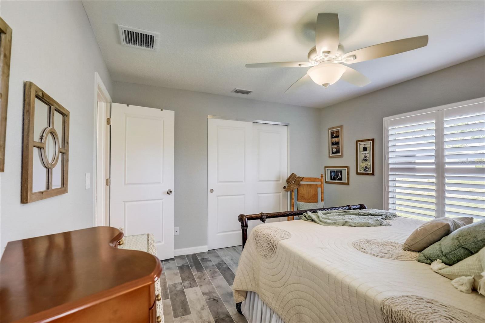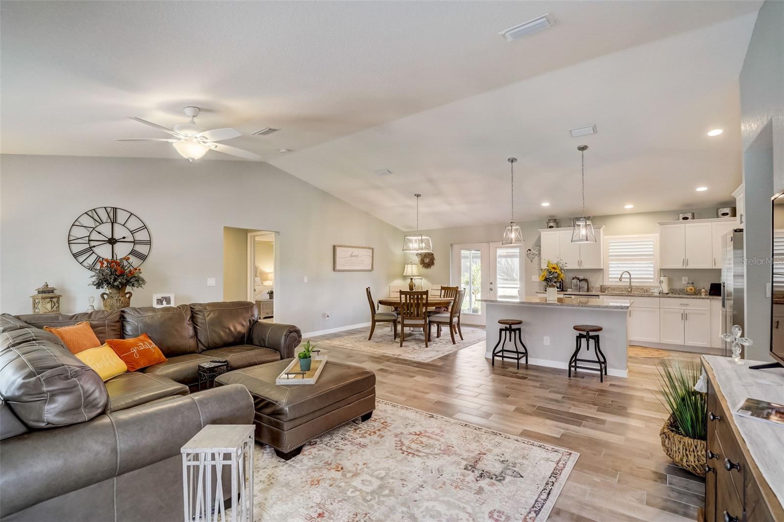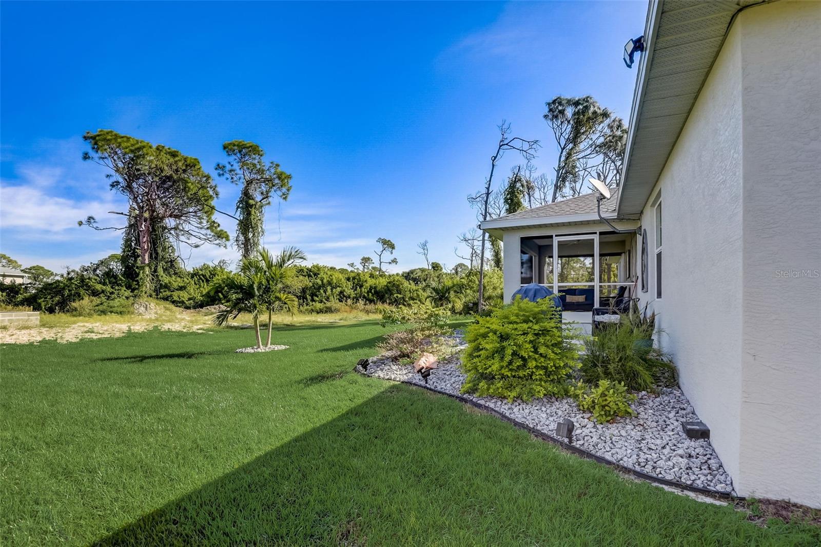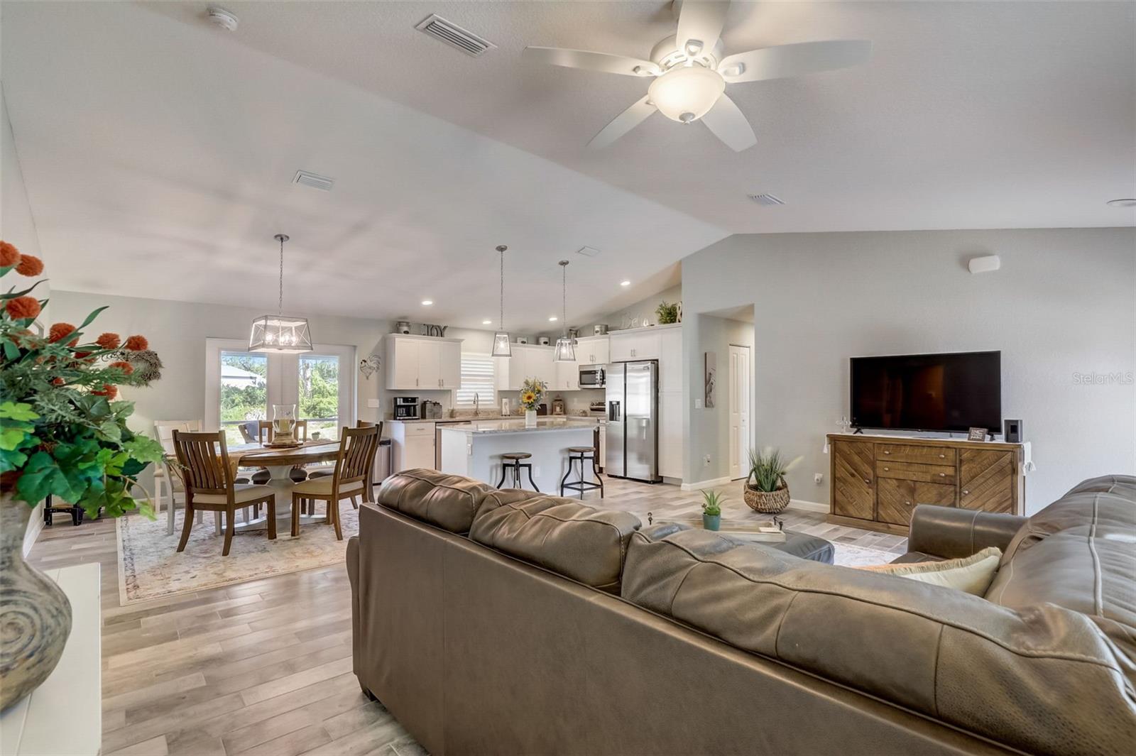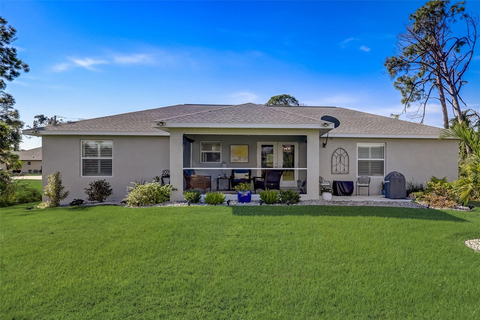 With an Assumable 2.5% VA Loan, this property offers a fantastic opportunity for your next move. Immaculate 3-bedroom, 2-bathroom home with a 2-car garage, built in 2021, offers a modern and spacious living experience. Located on a desirable quiet Cul-De-Sac. The open floor plan with soaring ceilings creates a sense of grandeur, while the ceramic plank tile floors throughout add elegance and durability. Plantation shutters not only provide functional light control but also add a touch of style to the interior.The generously sized bedrooms ensure comfort for your family or guests, and the primary suite features a walk-in closet and a primary bathroom with double vanities and a walk-in shower for added convenience. The Garage also features a dream screen.Outside, the professionally landscaped yard with granite rock adds curb appeal, and the sellers have thoughtfully added a concrete pad for a barbecue area. You can enjoy the Florida lifestyle to the fullest with the screened lanai, perfect for morning coffee and relaxation.This home is not only a sanctuary but also conveniently located near fabulous beaches, fishing spots, boating opportunities, golf courses, and a variety of restaurants. Once you take a personal tour, you'll be packing your bags. Don't miss out on this gorgeous home.