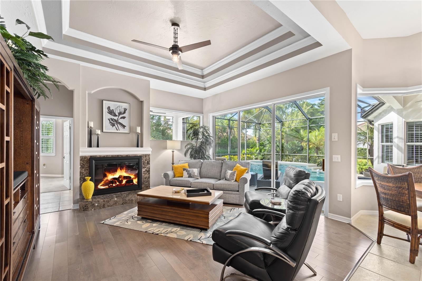 Welcome to Silver Oak on Palmer Ranch, one of Sarasota's flagship gated communities. This fine home offers all the right spaces, is well appointed, and is situated on a beautifully landscaped lot with sunny southerly exposure. With loads of curb appeal, your entry into the front of the home features a pavered walkway flanked by beautiful oaks. Entering through the double glass front doors, you'll find a foyer, dining room, and living room all framed with a nice pool view in the background. The open kitchen features lovely wooden cabinets, granite countertops and stainless steel appliances. The owner's retreat features dual walk-in closets with built-ins, a spa-like bathroom with oversized shower and soaking tub, and room for a work area or desk. With a total of 5 potential bedrooms and 4.5 bathrooms this home offers ample space for nearly any living situation. The second story features a great room, and full suite for guess if so desired. On the pool deck, you'll find covered seating areas and a heated pool and spa for your enjoyment, and well as a built-in outdoor kitchen for enjoying the good life. Hunt Club Way is a peaceful and quiet street located near the back of the subdivision and ends in a cul-de-sac for low traffic. The Silver Oak community is well located with easy access to all of Sarasota's great amenities such as the Legacy Trail, Gulf Beaches, and plenty of shopping and retail very close by. This lovingly cared for home is ready for new owners, schedule your private showing today.