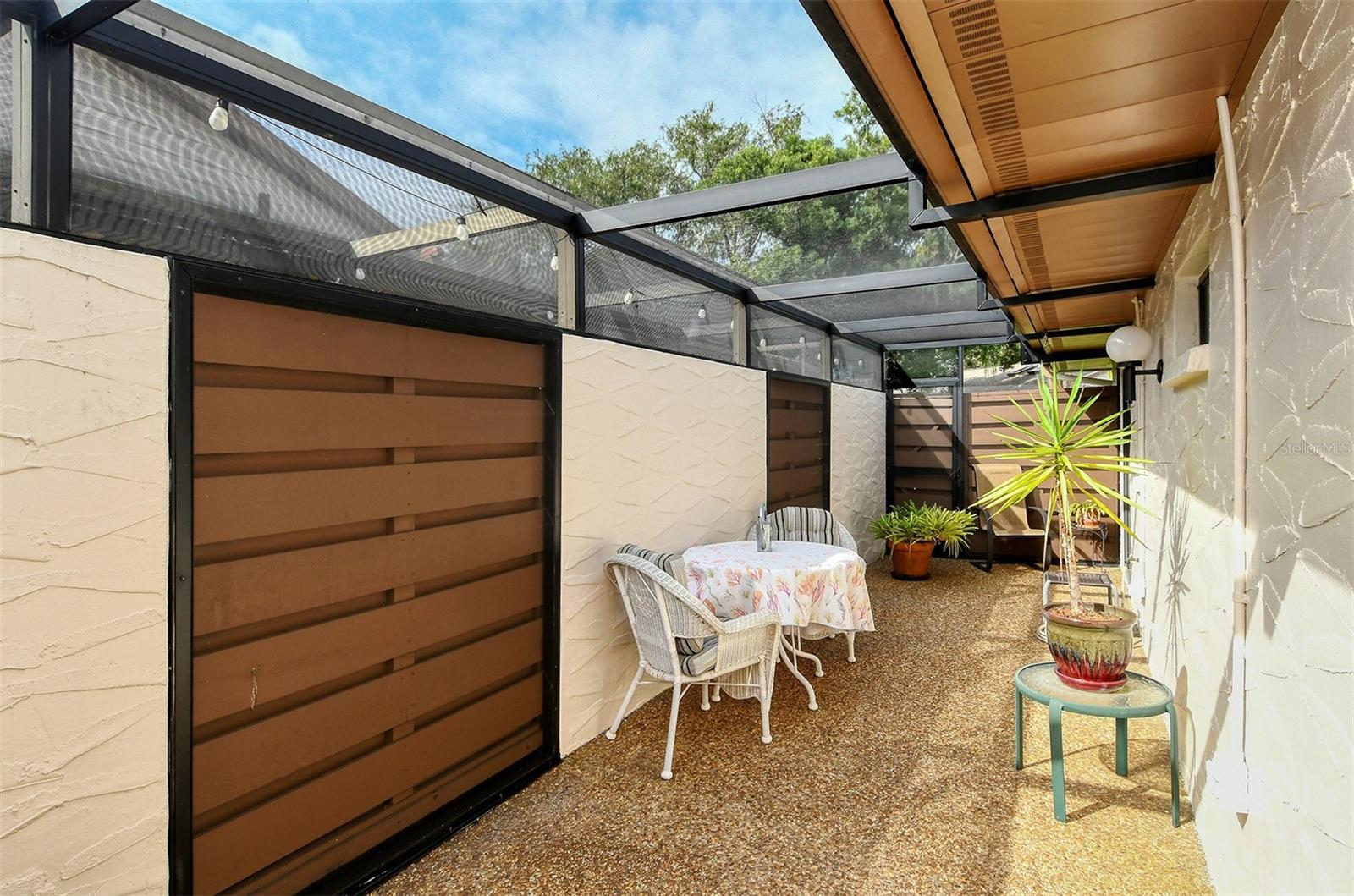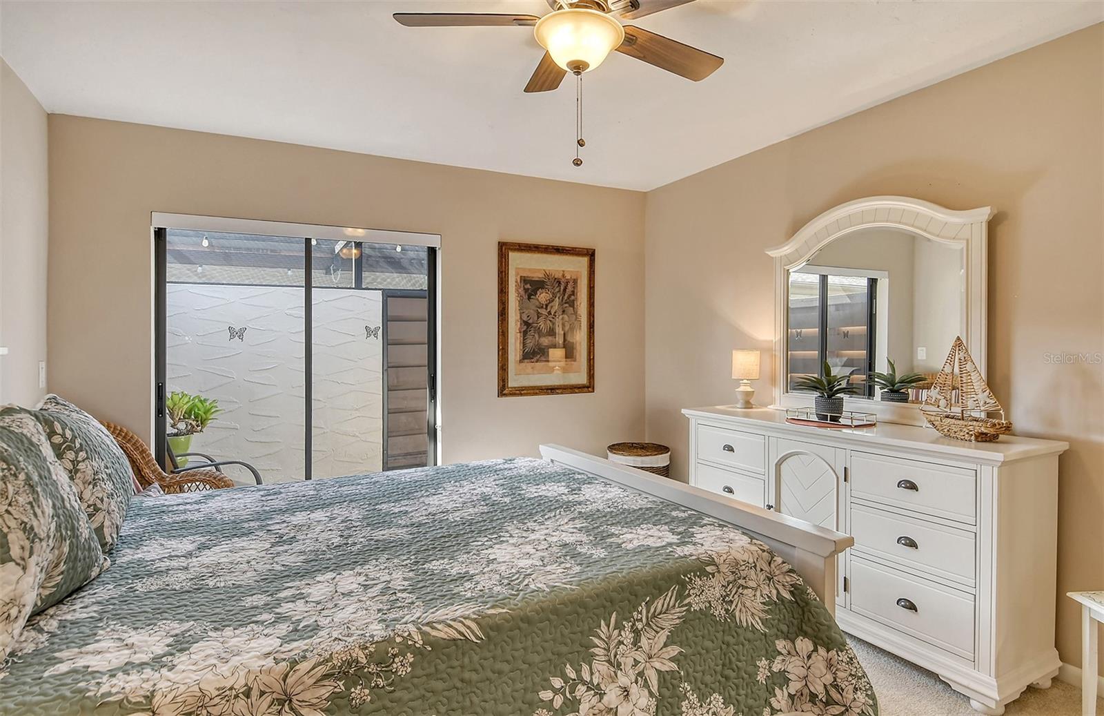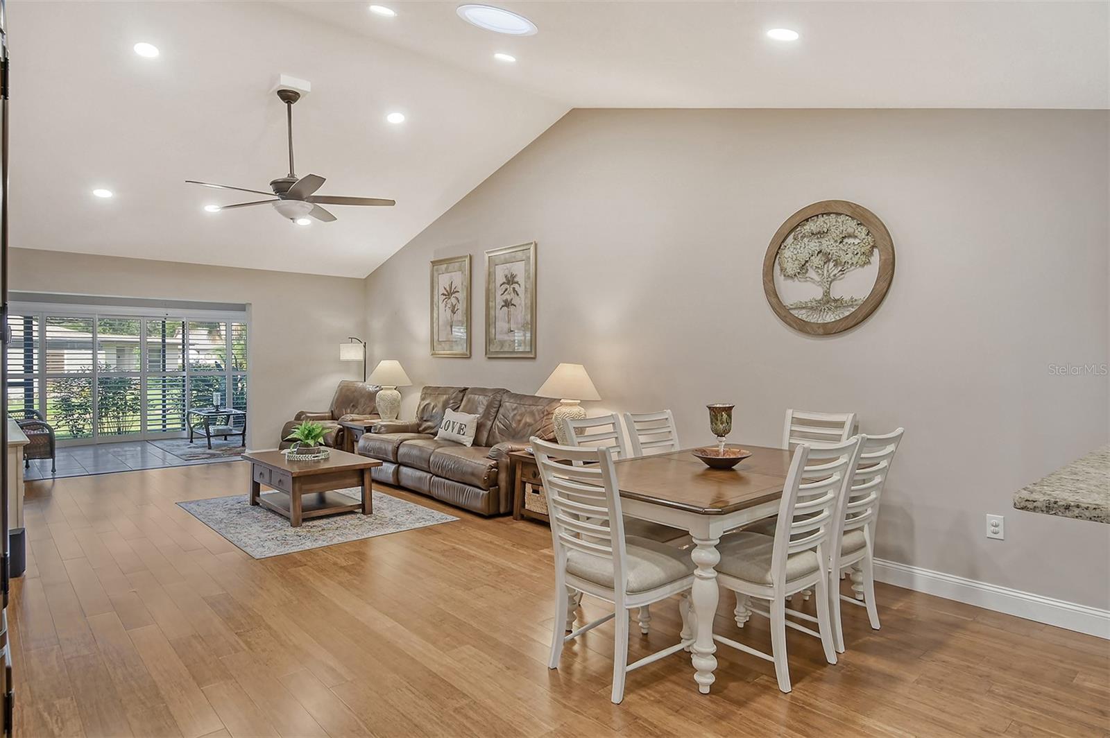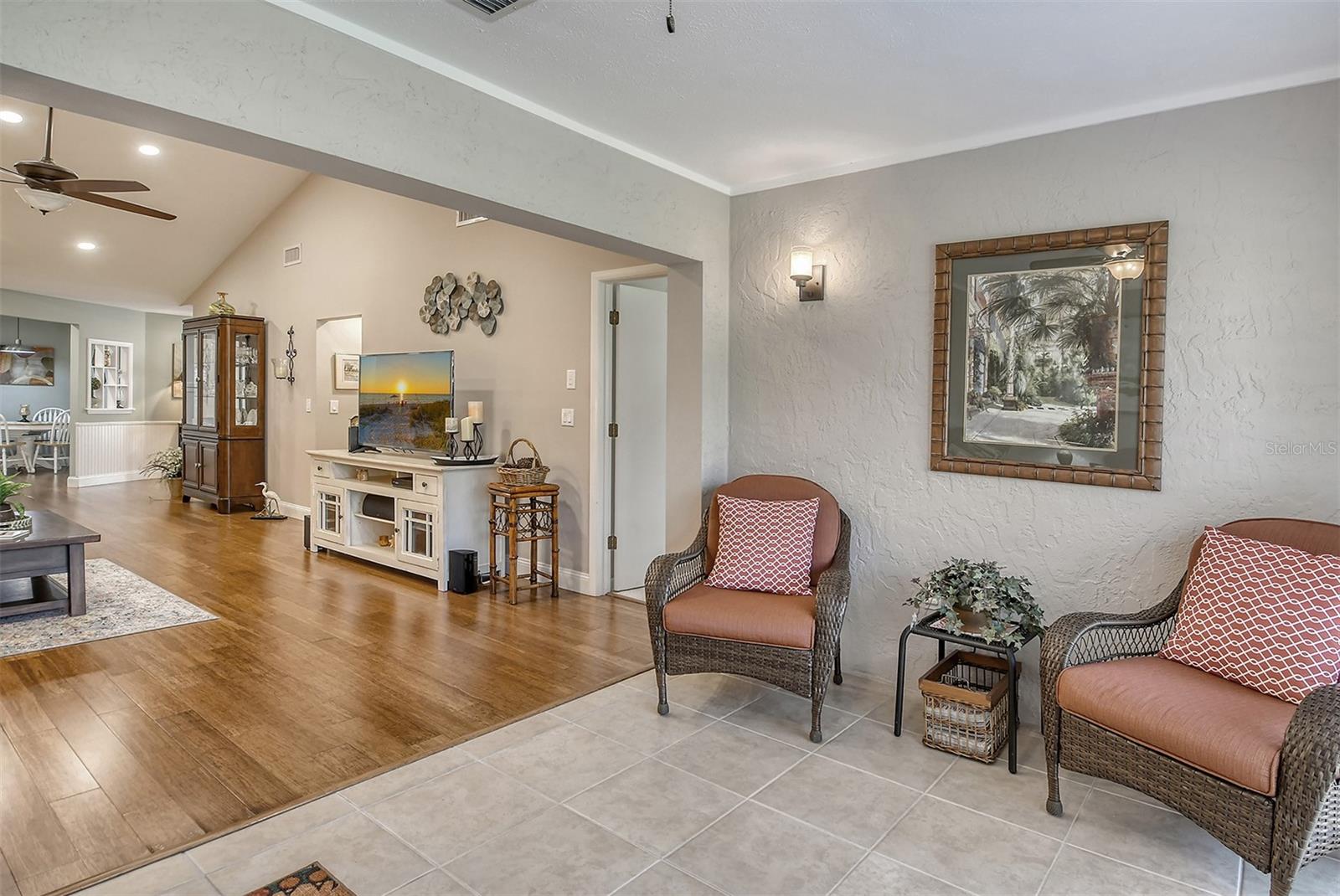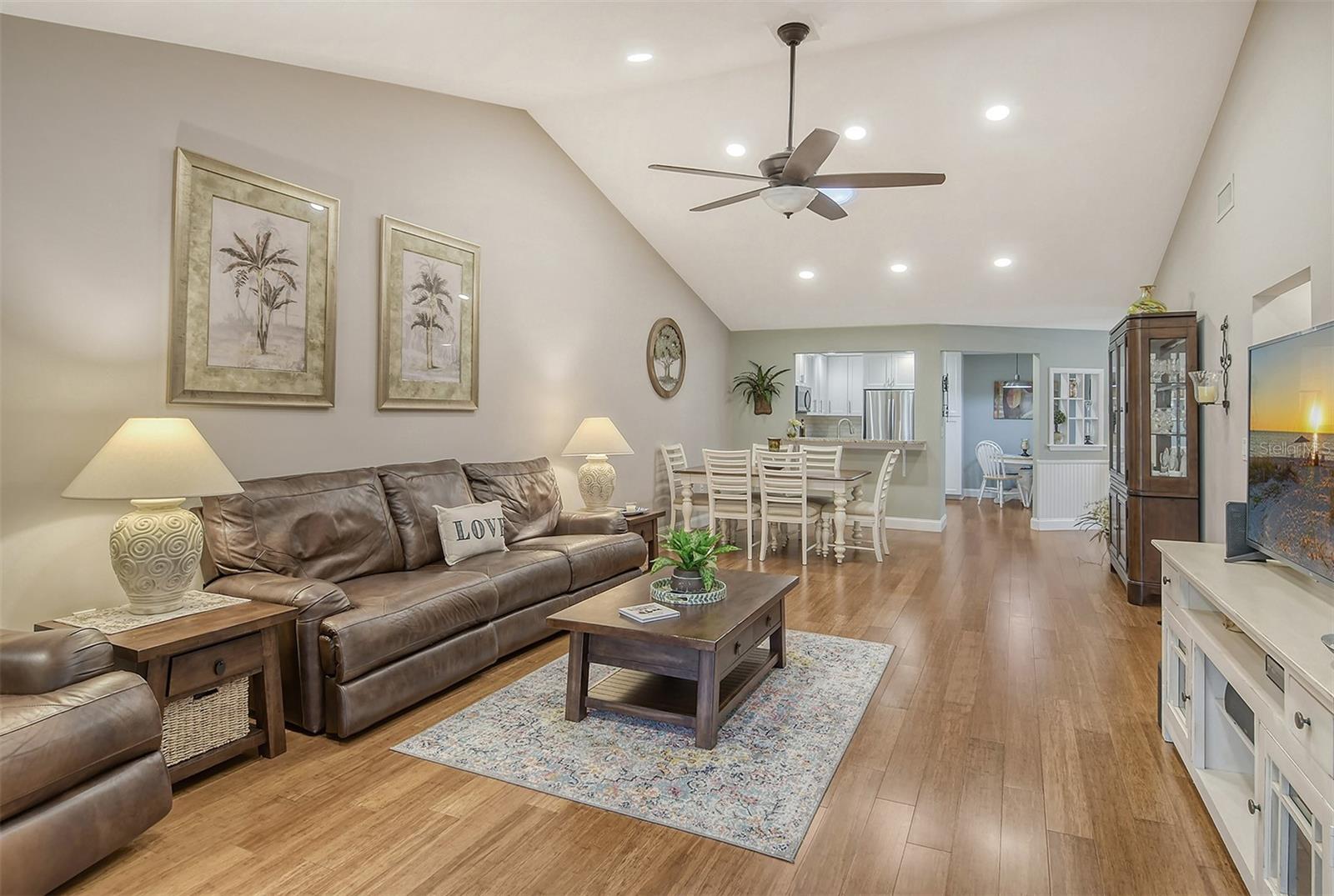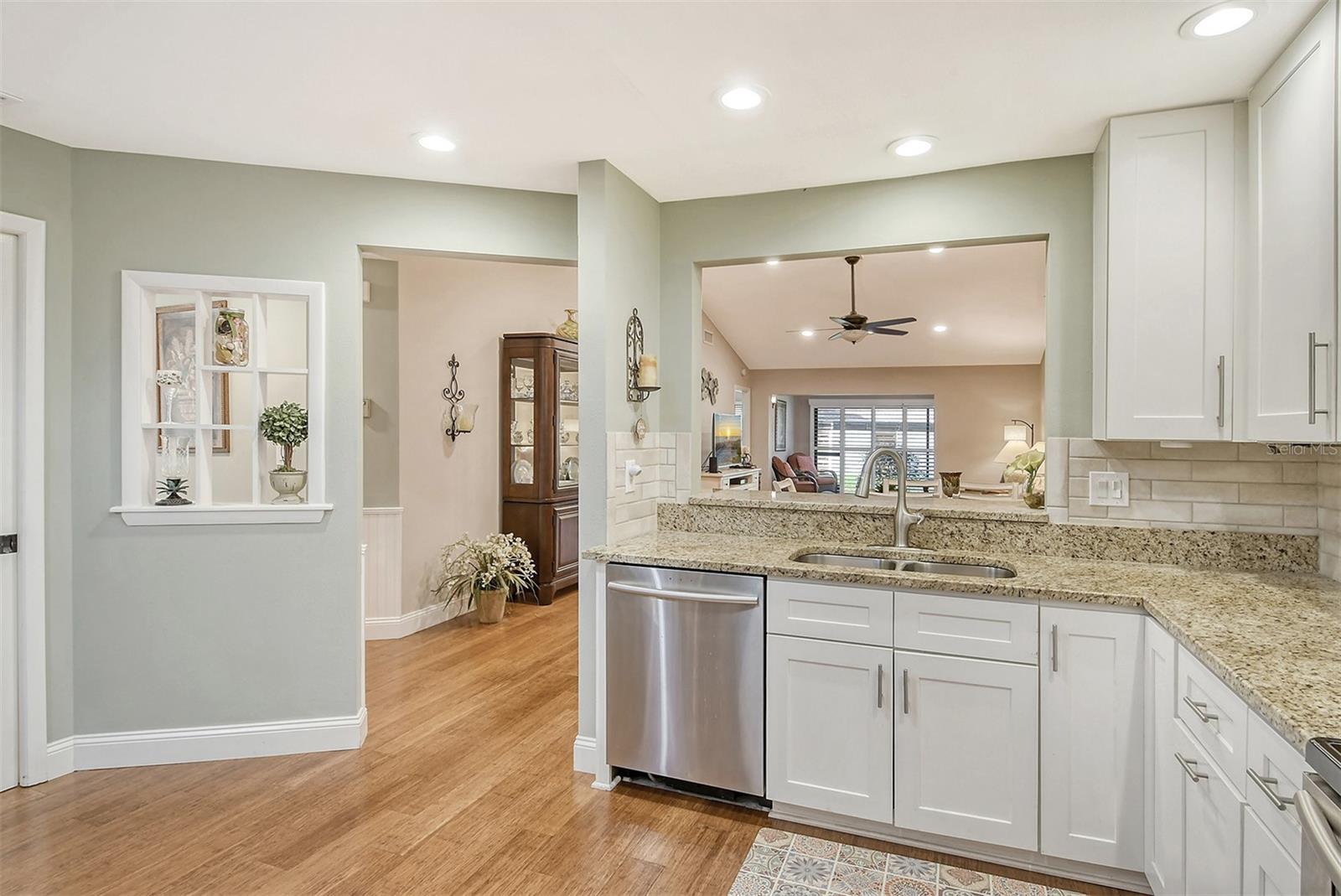 Enjoy the Florida lifestyle in this well presented, fully updated villa that lives like a single family home. The living area features a vaulted ceiling and is open to a screened and glass enclosed Florida room for year-round enjoyment. Renovated eat-in kitchen features shaker style cabinets with soft-close drawers, granite countertops and stainless steel appliances. Same cabinets installed in the laundry room. The spacious master bedroom has sliding doors to the courtyard, and a fully updated bathroom. Bedroom 2 also enjoys direct courtyard access. Bedroom 3 overlooks the front of the property and is currently used as an office/den. 2 car garage with recently installed epoxy flooring and "baseboards" for easy clean. Enclosed, walled and screened courtyard. New roof and skylights 2023, new garage door 2023, new A/C 2018. Whole house replumbed and new water heater in 2014. Engineered bamboo floors, plantation shutters and much more. Short walk to the community pool. This desirable, well kept, Center Gate 55+ community is perfectly located for easy access to shopping, restaurants and I-75. Don't miss this opportunity!