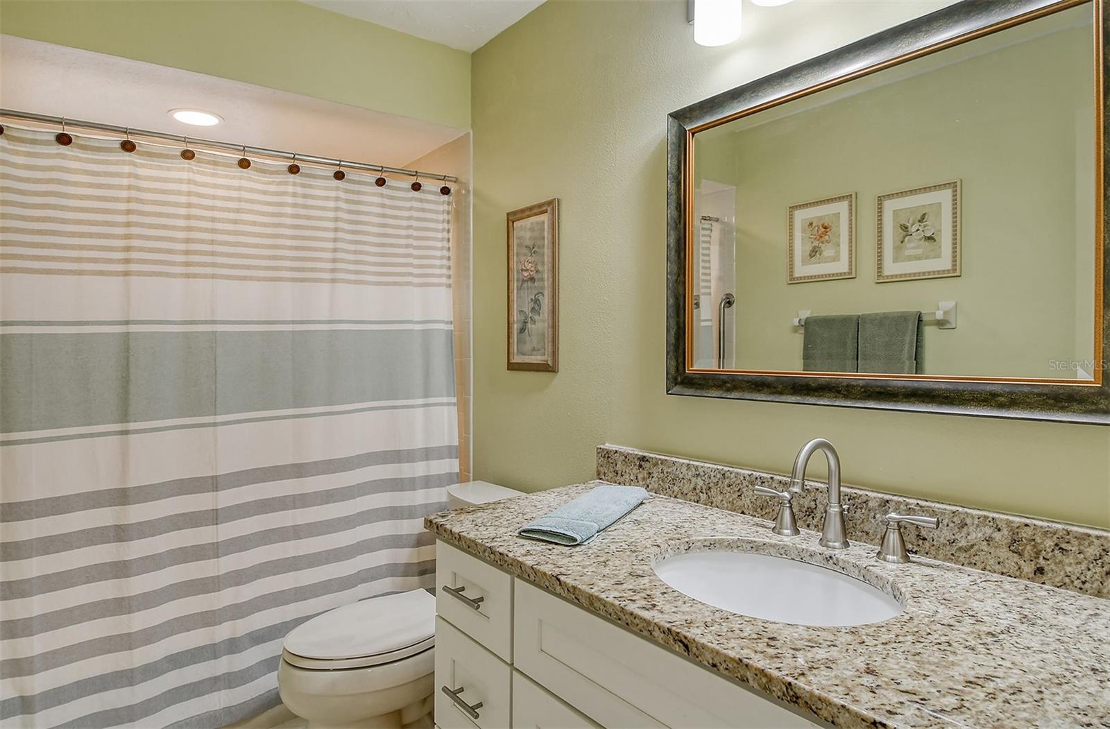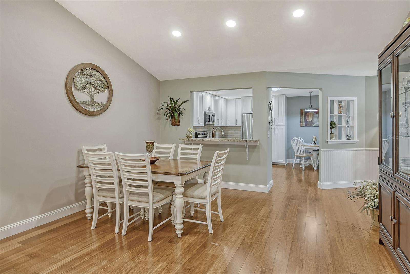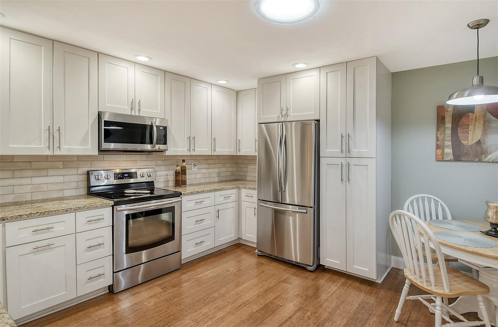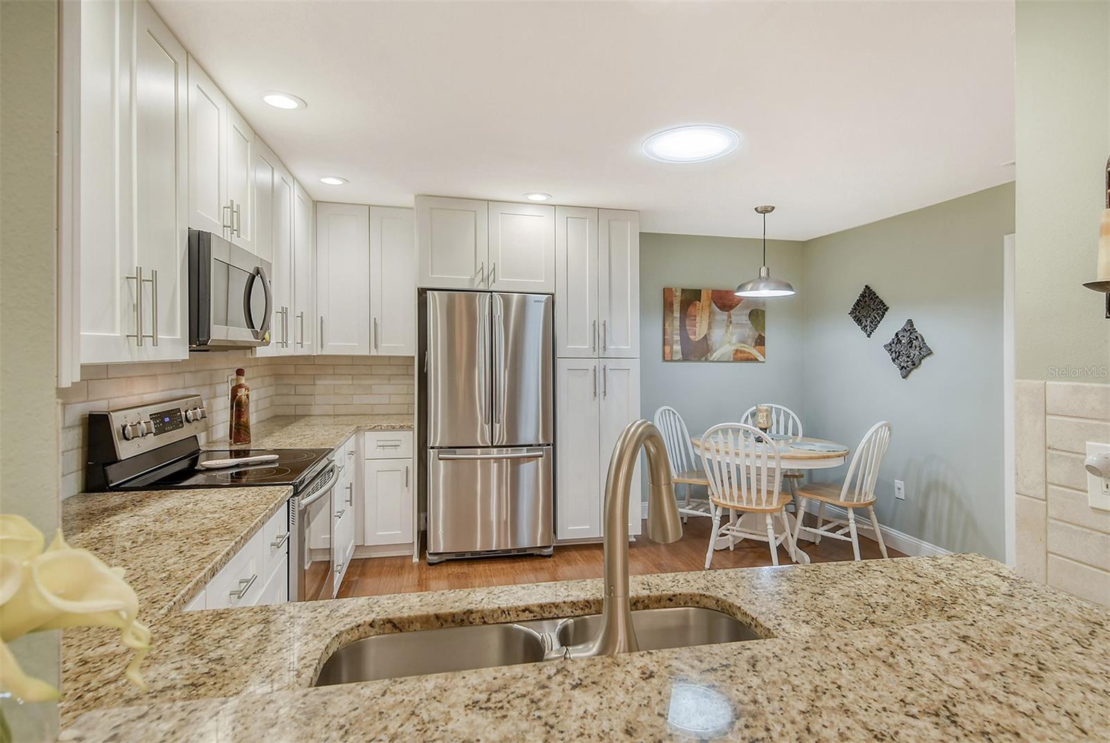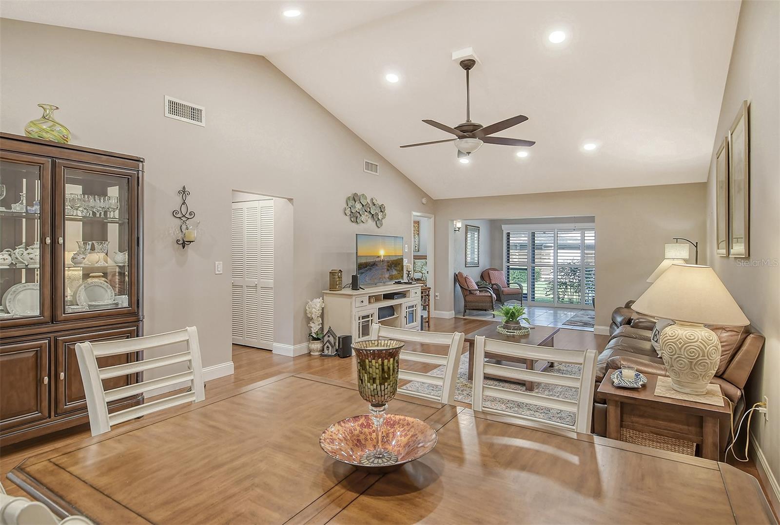 Enjoy the Florida lifestyle in this well presented, fully updated villa that lives like a single family home. The living area features a vaulted ceiling and is open to a screened and glass enclosed Florida room for year-round enjoyment. Renovated eat-in kitchen features shaker style cabinets with soft-close drawers, granite countertops and stainless steel appliances. Same cabinets installed in the laundry room. The spacious master bedroom has sliding doors to the courtyard, and a fully updated bathroom. Bedroom 2 also enjoys direct courtyard access. Bedroom 3 overlooks the front of the property and is currently used as an office/den. 2 car garage with recently installed epoxy flooring and "baseboards" for easy clean. Enclosed, walled and screened courtyard. New roof and skylights 2023, new garage door 2023, new A/C 2018. Whole house replumbed and new water heater in 2014. Engineered bamboo floors, plantation shutters and much more. Short walk to the community pool. This desirable, well kept, Center Gate 55+ community is perfectly located for easy access to shopping, restaurants and I-75. Don't miss this opportunity!