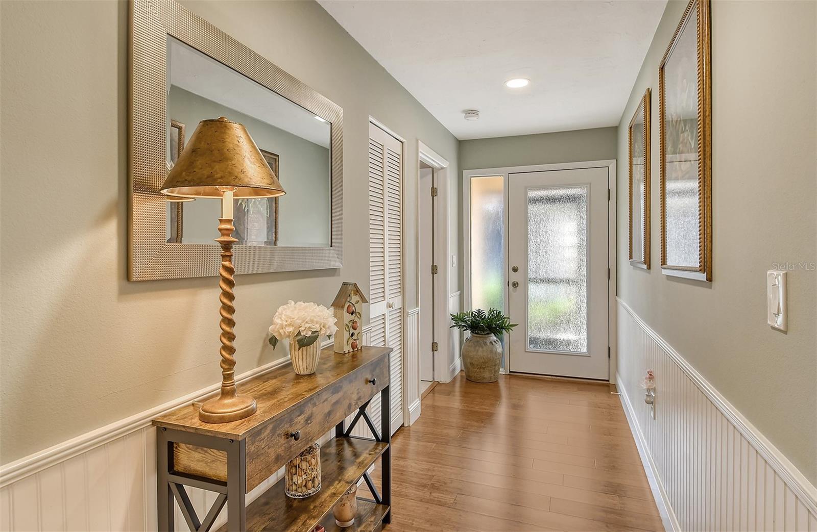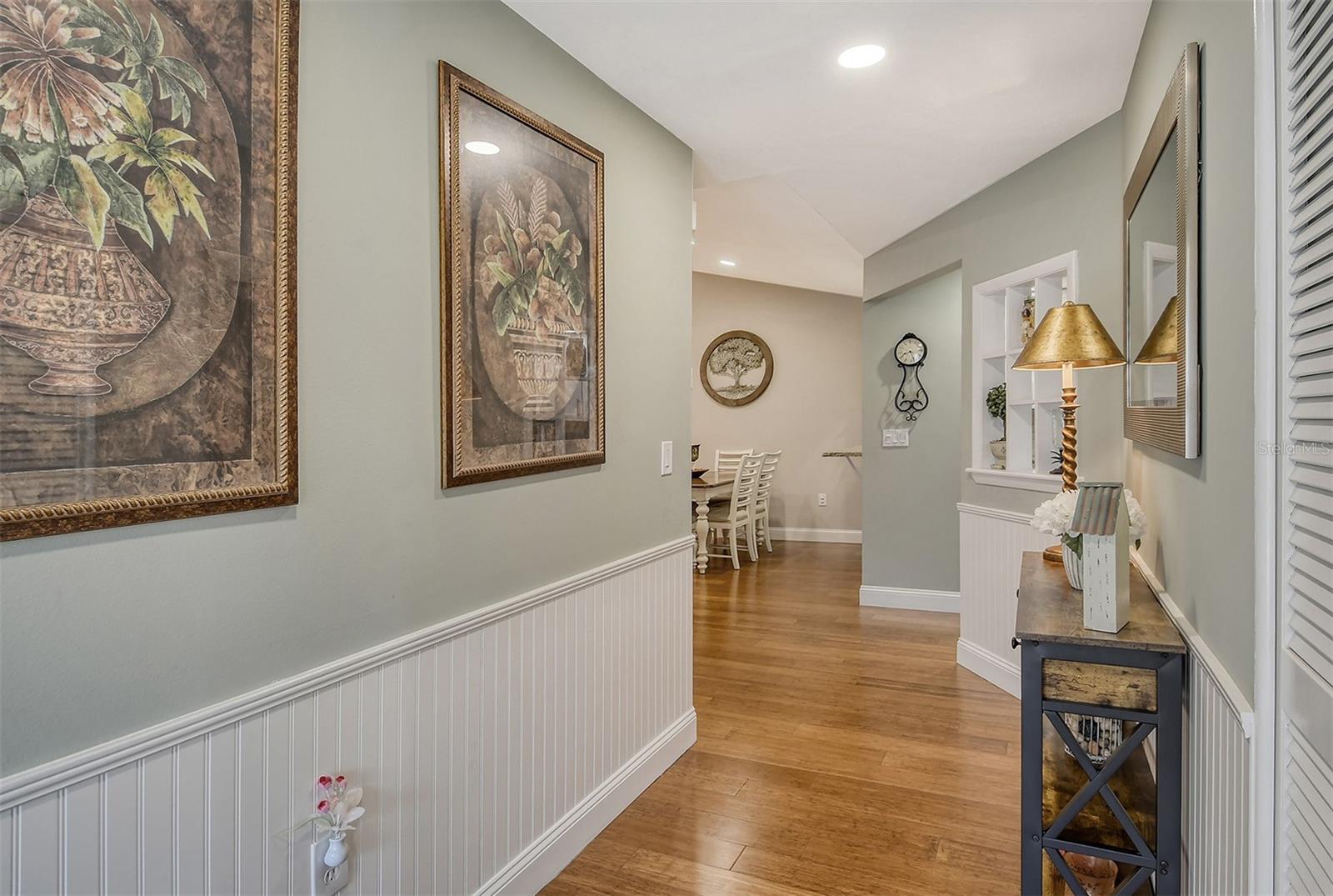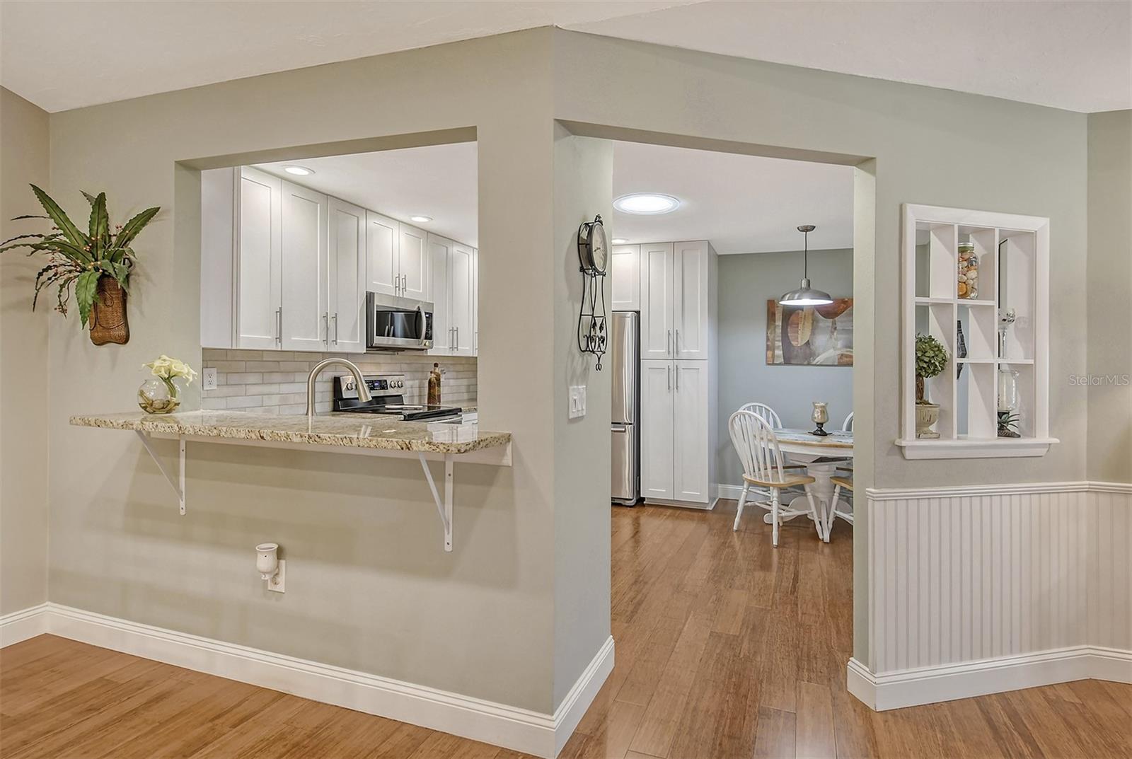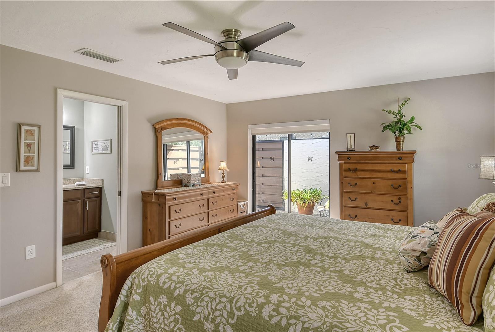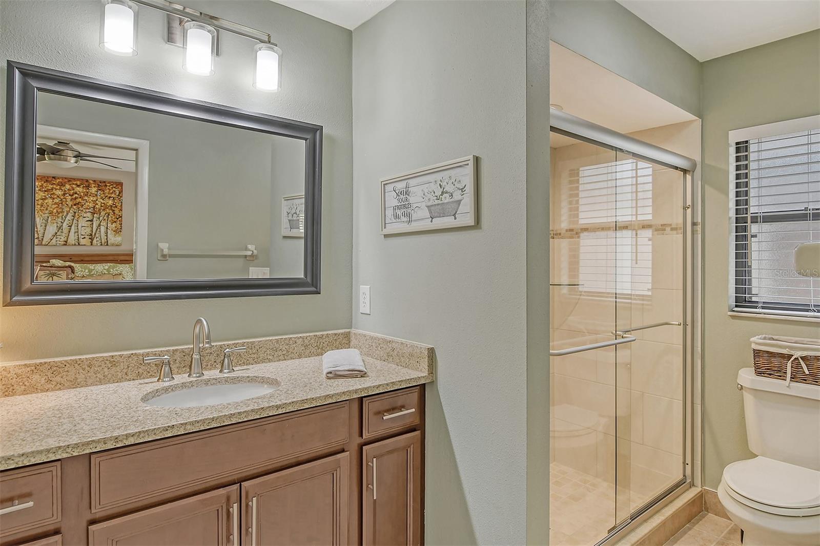 Enjoy the Florida lifestyle in this well presented, fully updated villa that lives like a single family home. The living area features a vaulted ceiling and is open to a screened and glass enclosed Florida room for year-round enjoyment. Renovated eat-in kitchen features shaker style cabinets with soft-close drawers, granite countertops and stainless steel appliances. Same cabinets installed in the laundry room. The spacious master bedroom has sliding doors to the courtyard, and a fully updated bathroom. Bedroom 2 also enjoys direct courtyard access. Bedroom 3 overlooks the front of the property and is currently used as an office/den. 2 car garage with recently installed epoxy flooring and "baseboards" for easy clean. Enclosed, walled and screened courtyard. New roof and skylights 2023, new garage door 2023, new A/C 2018. Whole house replumbed and new water heater in 2014. Engineered bamboo floors, plantation shutters and much more. Short walk to the community pool. This desirable, well kept, Center Gate 55+ community is perfectly located for easy access to shopping, restaurants and I-75. Don't miss this opportunity!