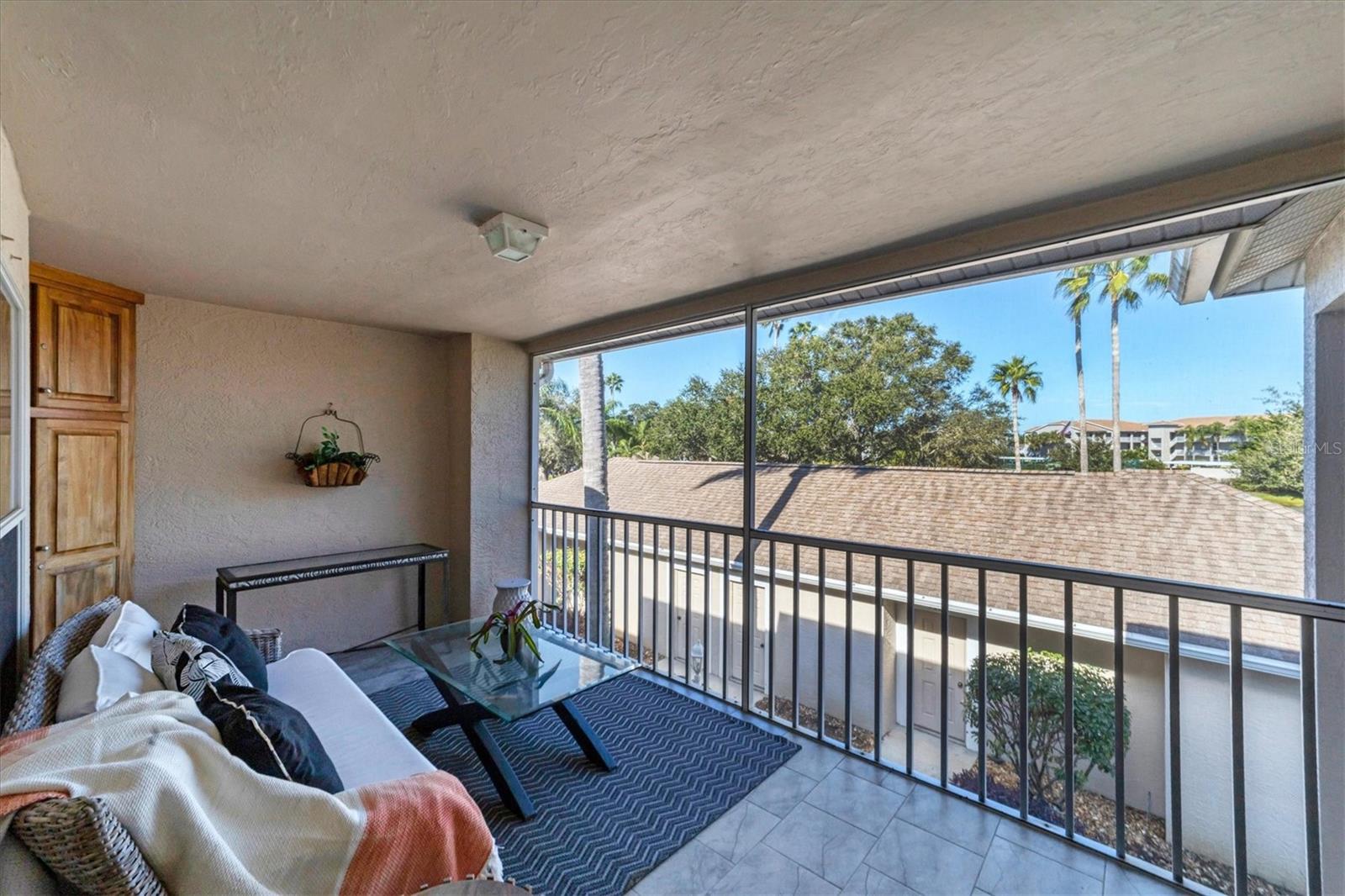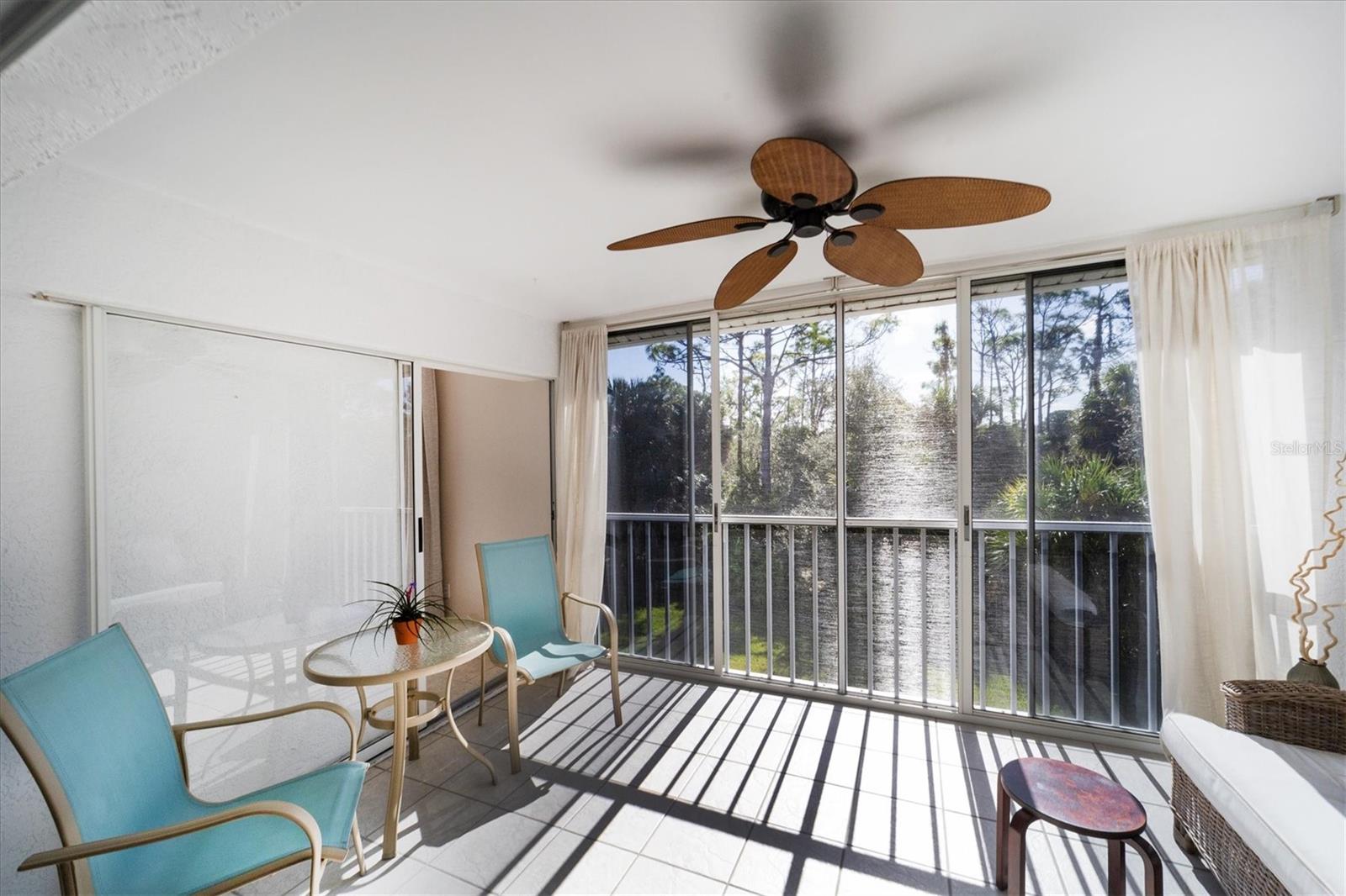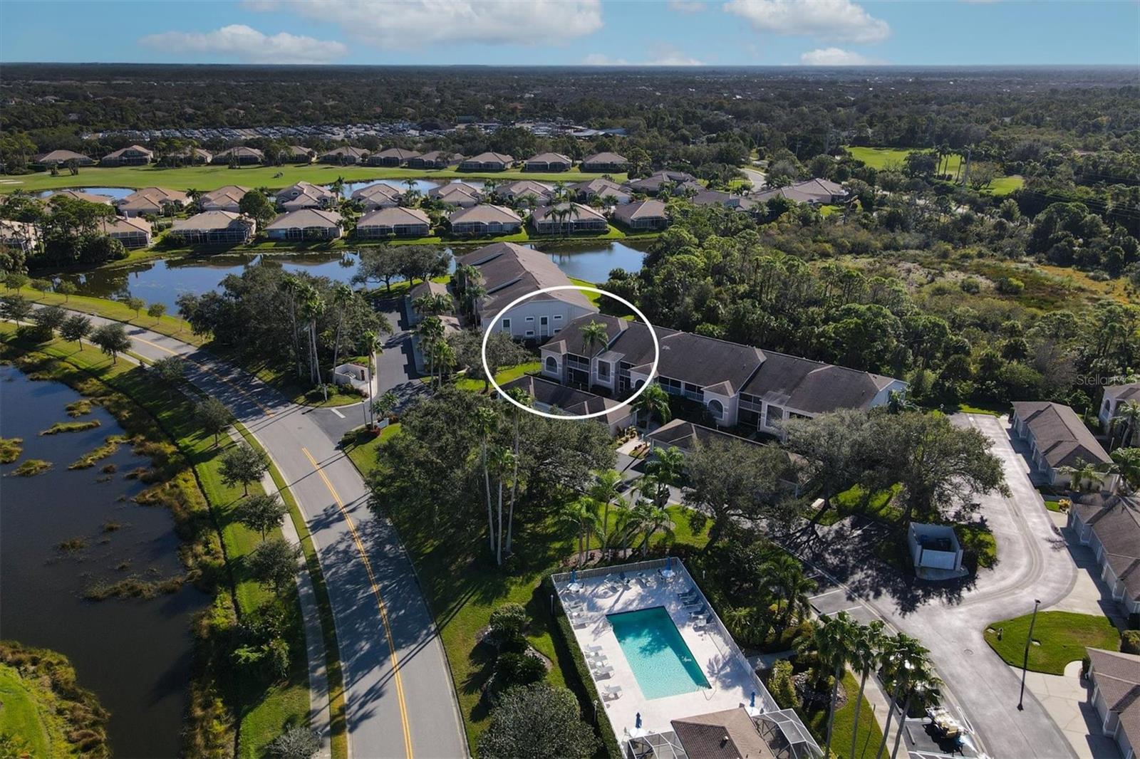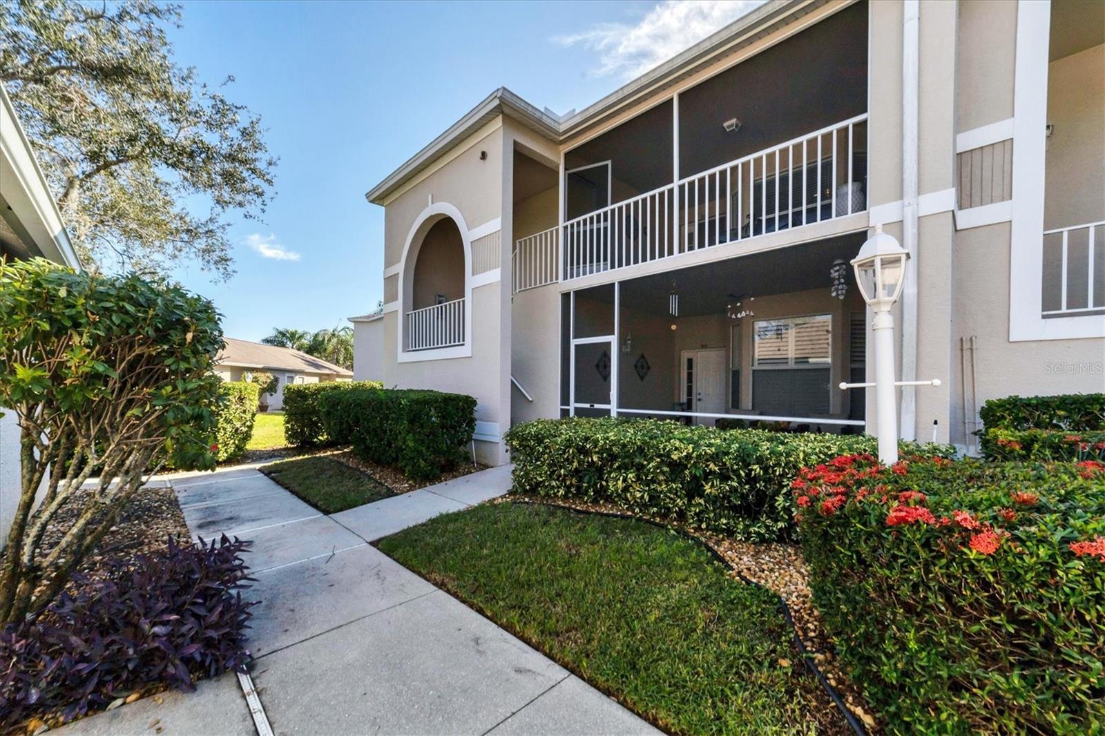 This DESIRABLE and SOUGHT after 2nd floor Abbey model in gated Stoneybrook Golf and Country Club.. NOW can be yours! This is the largest model available featuring 2 bedrooms, 2 baths with a roomy DEN that is sure to please with loads of natural light through-out as there are windows in every room, and is situated at the end of the building! Front screened lanai is newly tiled and has a built-in corner cabinet for extra storage. Kitchen is updated with quartz counters, a dry bar, SS appliances, subway tile backsplash and charming ship lap details. Condo is tiled throughout for easy living, updated lighting, ceiling fans and 5 1/2 inch baseboards tie this impressive condo together. Master en-suite bathroom is an inviting retreat with an updated, expansive tiled walk-in shower, quartz dual sink vanity and linen closet. Master bedroom enjoys 2 walk-in closets and a glass sliding door to yet another lanai that is glassed in for extra living space all year round! Bask in the peaceful, and PRIVATE view of the preserve and all the abundant nature. Great room is airy with vaulted ceilings and a designer barn door with a hidden extra closet. Den/office is a valuable flex space that can be used for guests, craft room.. you decide! 2nd full bath enjoys an exquisite wood and stone raised vanity and tub/shower combo. Guest bedroom boasts another walk-in closet for more storage. There is a dedicated laundry room with shelving and full size washer/dryer. Condo has a deeded 1 car garage with plenty of room for your car, beach toys and sports gear. Walk out your front door to your own heated community pool and screened in deck area to visit with neighbors and enjoy the sunshine. Stoneybrook Golf and Country Club is an established community with top-notch amenities that include an 18 hole Arthur Hills designed golf course, lighted Har Tru tennis/pickleball facilities, well-stocked pro-shop, bocce court, an additional heated pool and spa, full service restaurant/bar/meeting rooms, well-equipped fitness center, yoga/dance room, sharing library, walking/biking trails, fishing spots, and loads of planned activities! Stoneybrook is a prime location close to the Legacy Trail, minutes to area beaches, shopping, the arts, restaurants and all Sarasota and Venice has to offer! Come and discover Florida living at its finest!