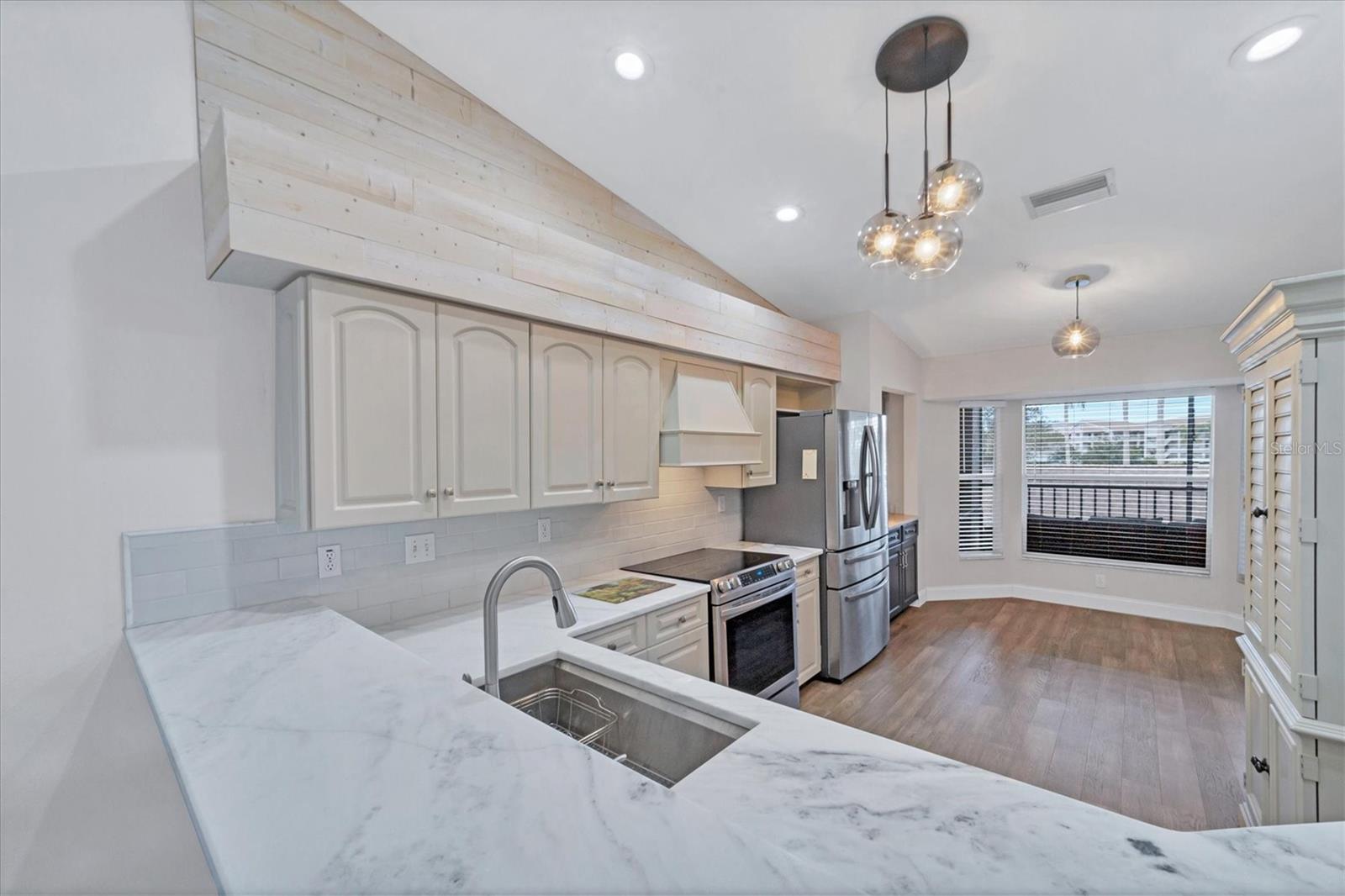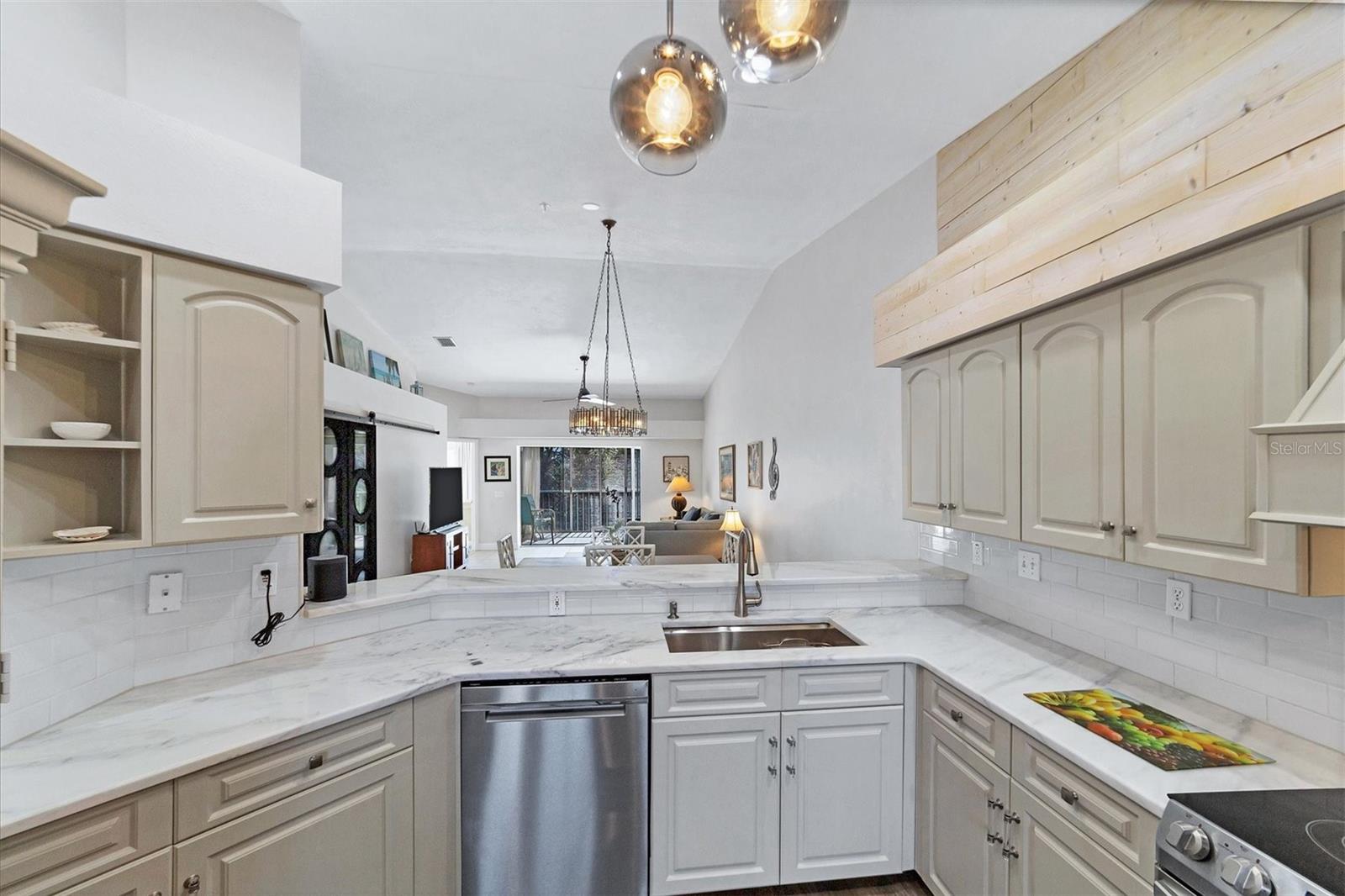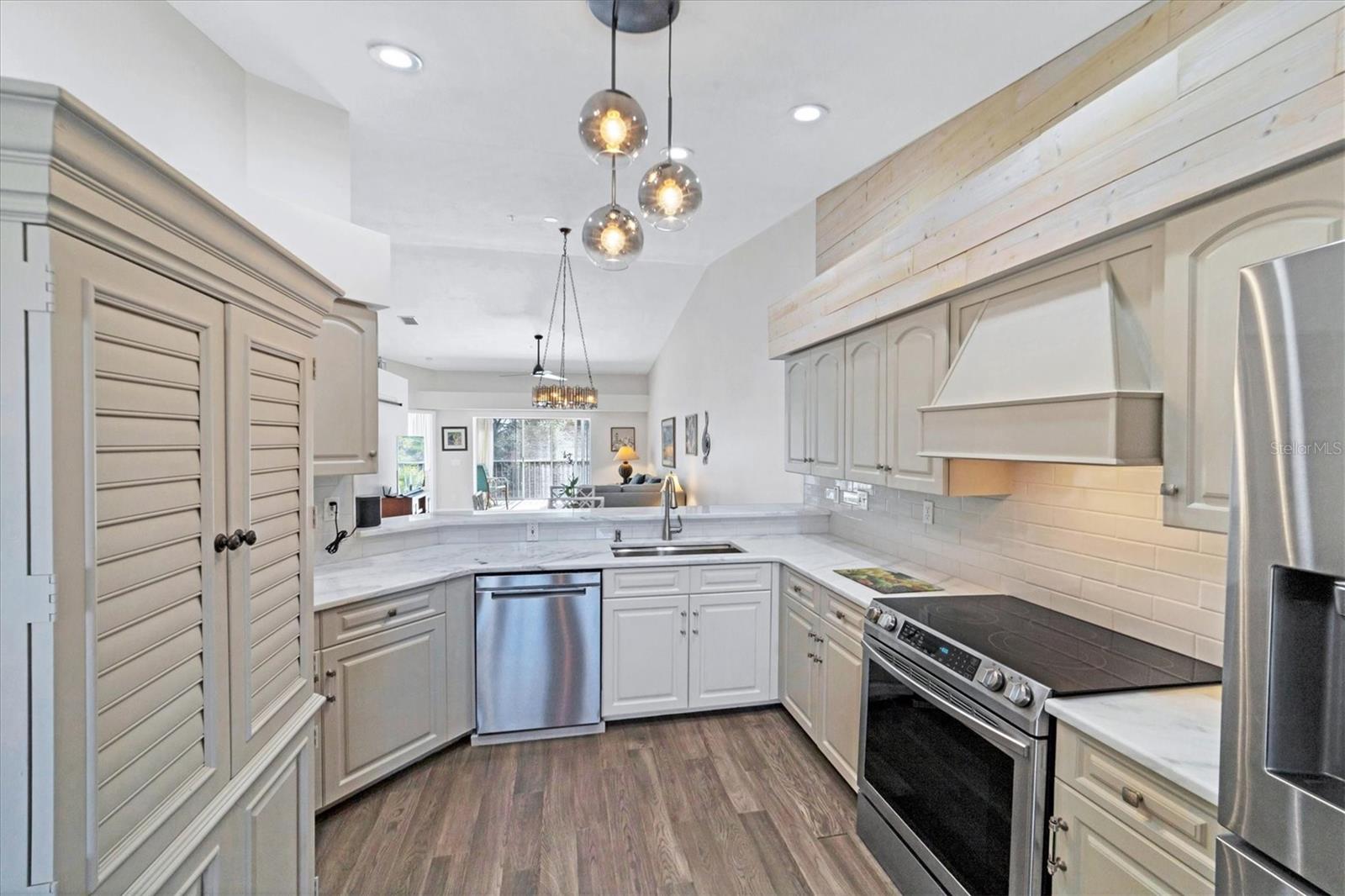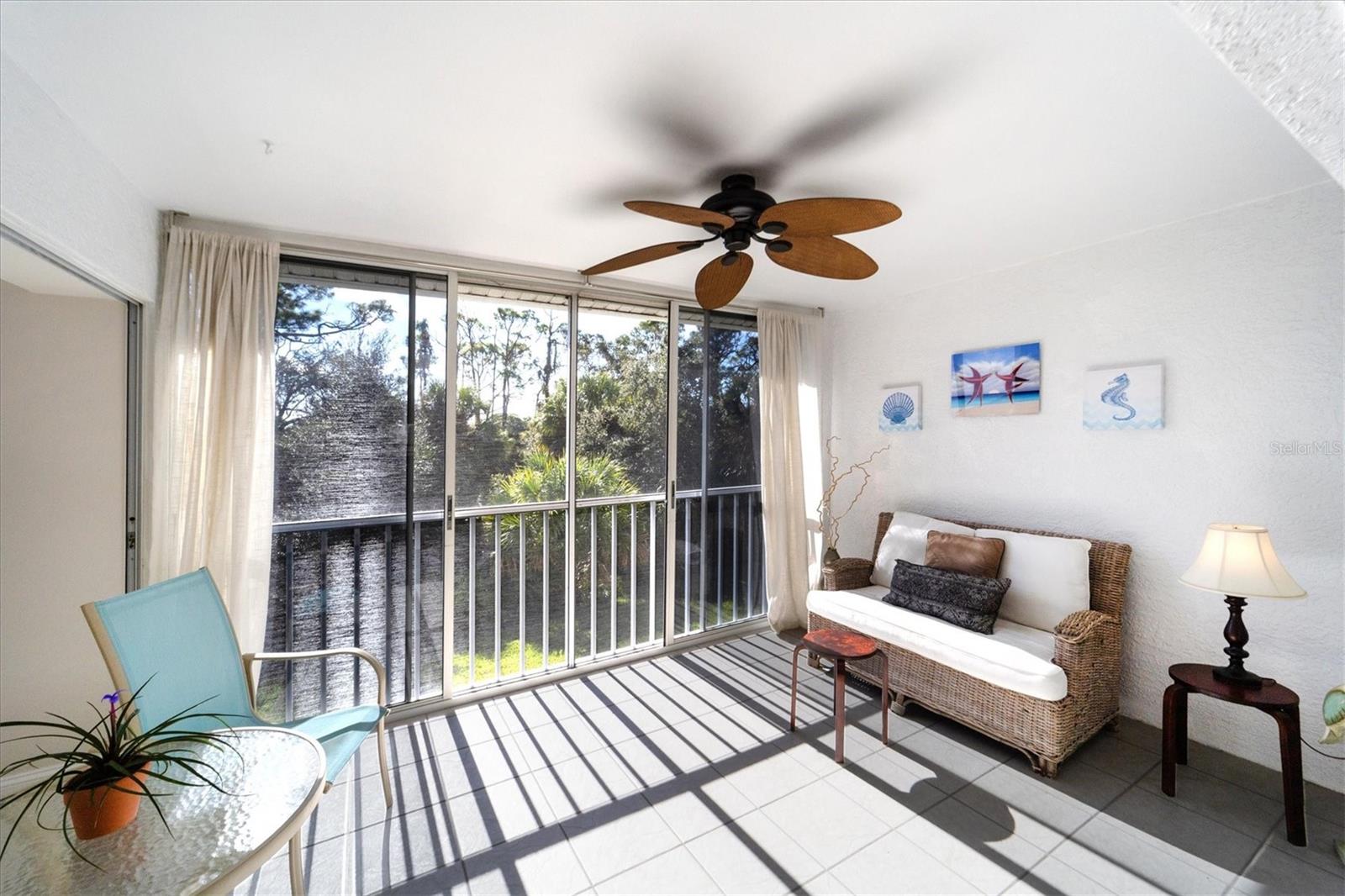 This DESIRABLE and SOUGHT after 2nd floor Abbey model in gated Stoneybrook Golf and Country Club.. NOW can be yours! This is the largest model available featuring 2 bedrooms, 2 baths with a roomy DEN that is sure to please with loads of natural light through-out as there are windows in every room, and is situated at the end of the building! Front screened lanai is newly tiled and has a built-in corner cabinet for extra storage. Kitchen is updated with quartz counters, a dry bar, SS appliances, subway tile backsplash and charming ship lap details. Condo is tiled throughout for easy living, updated lighting, ceiling fans and 5 1/2 inch baseboards tie this impressive condo together. Master en-suite bathroom is an inviting retreat with an updated, expansive tiled walk-in shower, quartz dual sink vanity and linen closet. Master bedroom enjoys 2 walk-in closets and a glass sliding door to yet another lanai that is glassed in for extra living space all year round! Bask in the peaceful, and PRIVATE view of the preserve and all the abundant nature. Great room is airy with vaulted ceilings and a designer barn door with a hidden extra closet. Den/office is a valuable flex space that can be used for guests, craft room.. you decide! 2nd full bath enjoys an exquisite wood and stone raised vanity and tub/shower combo. Guest bedroom boasts another walk-in closet for more storage. There is a dedicated laundry room with shelving and full size washer/dryer. Condo has a deeded 1 car garage with plenty of room for your car, beach toys and sports gear. Walk out your front door to your own heated community pool and screened in deck area to visit with neighbors and enjoy the sunshine. Stoneybrook Golf and Country Club is an established community with top-notch amenities that include an 18 hole Arthur Hills designed golf course, lighted Har Tru tennis/pickleball facilities, well-stocked pro-shop, bocce court, an additional heated pool and spa, full service restaurant/bar/meeting rooms, well-equipped fitness center, yoga/dance room, sharing library, walking/biking trails, fishing spots, and loads of planned activities! Stoneybrook is a prime location close to the Legacy Trail, minutes to area beaches, shopping, the arts, restaurants and all Sarasota and Venice has to offer! Come and discover Florida living at its finest!