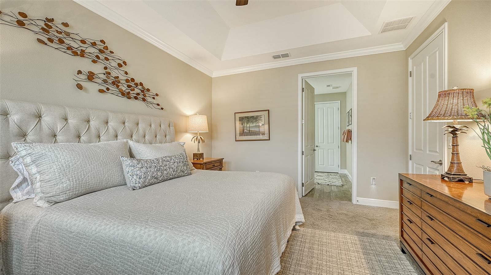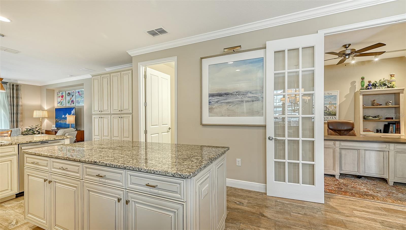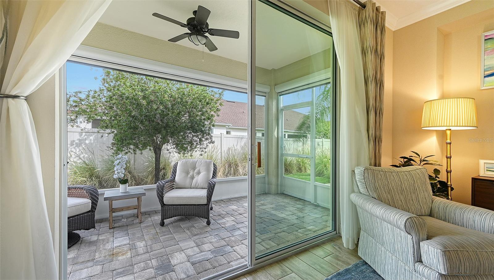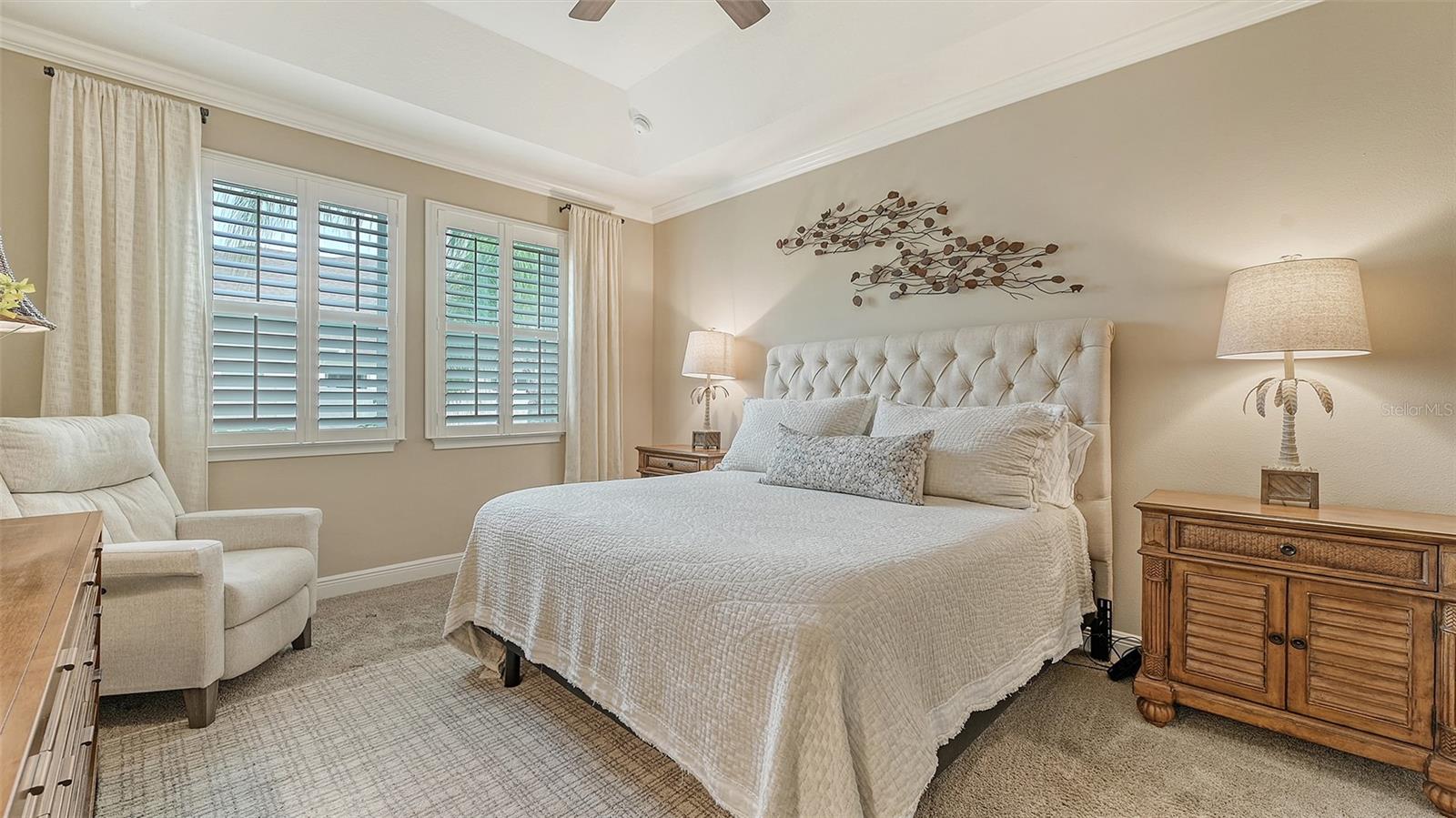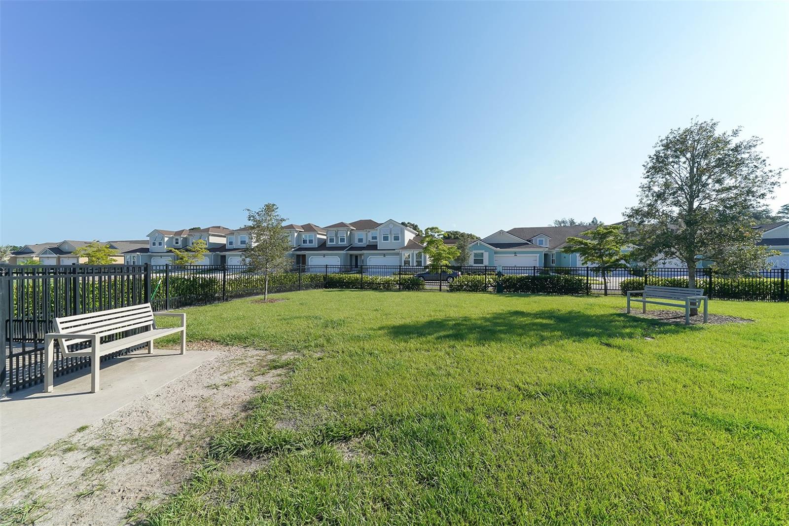 This tastefully furnished single-story townhouse has 2 bedrooms, an office, and 2 baths. Everything is on one level, so there are no stairs to navigate, and lots of windows and natural light in this end-unit home. The interior has 9' ceilings, 8' paneled doors, decorative moldings, granite countertops, plantation shutters, & plank tile flooring. The kitchen has wood cabinets, a large island, granite worksurfaces, glass tile backsplash, newer stainless appliances, breakfast bar, and a pantry. The dining area features an alcove with 3 large windows, adding space & light. The office has French doors, tile flooring, and track lighting. The great room has sliding glass doors to the screened lanai, both perfect places to relax with friends and family. The lanai also includes remote control roll down see-through vinyl panels. The primary bedroom with its high tray ceiling and carpeted flooring and an en suite bath that includes a walk-in closet, linen closet and water closet, along with a walk-in shower, wood vanity, granite counters, and dual sinks. The guest bedroom is located at the front of the home alongside the guest bathroom. The laundry room is conveniently located just off the kitchen. And the 2-car garage has a utility sink, attic access, and epoxy flooring. This delightful home is one of only 162 homes in the gated, maintenance-free community of Enclave at Forest Lakes, which offers a heated community pool, poolside pavilion and a bark park! Worry-free, "lock and leave" living is the reality here. You'll live within walking or biking distance of Palms Golf Club, restaurants, shops and the Legacy Trail, an 18+ mile bike/walk path that extends from North Sarasota to Venice. Sarasota is home to a myriad of recreational activities, cultural events, golf, watersports, shopping, natural beauty, and any number of world-class Gulf beaches. Year round or seasonally, this is a wonderful place to call home.