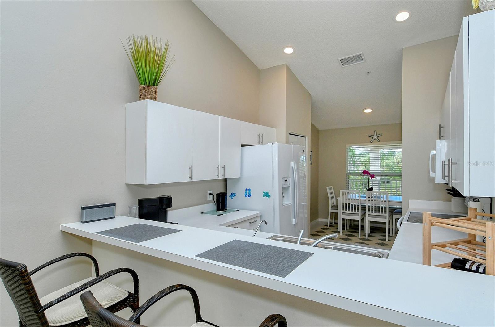Fresh and bright, turn-key furnished, 2 Bedroom plus Den Condo awaits your arrival. Seldom on the market unit with vaulted ceilings, designer paint colors, bright, crisp, kitchen, updated AC and an open floor plan. Tastefully decorated, the living space opens up to the enclosed Lanai overlooking the private preserves, Master bedroom with bay windows and their own slider to the lanai, twin walk-in closets, updated vanity and shower door for the walk-in shower. Guest quarters boasts an updated walk-in shower and the 2nd bedroom has neutral tiled floor. Ceilings in the condo have been redone to a smooth finish. Carport and great storage closet for the owners and additional guest parking. Community pool and tennis court right in the condo complex. Stoneybrook Country Club social membership comes with property. Har-Tru tennis facility, well-equipped fitness center and additional club pool and spa and bocce ball court. Full-service clubhouse restaurant and grill room with meeting areas, very social club. Stoneybrook of Sarasota is only a short distance from Siesta Key, offers easy access to shopping and borders the Legacy Trail. Downtown Sarasota is a short drive, as is downtown Venice.