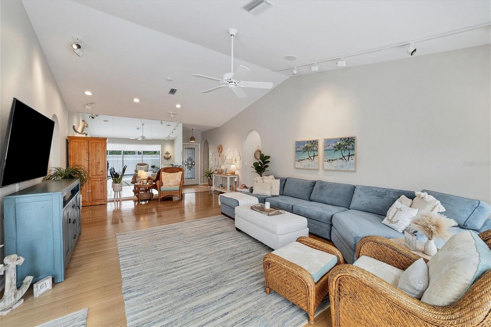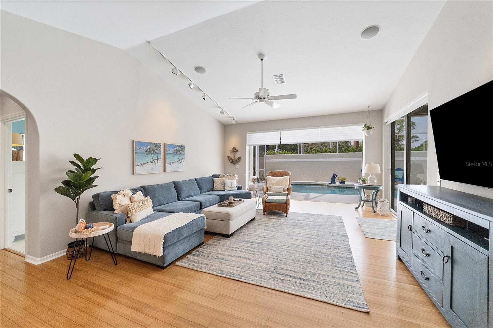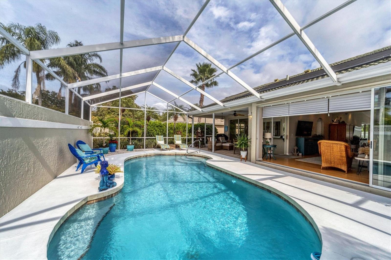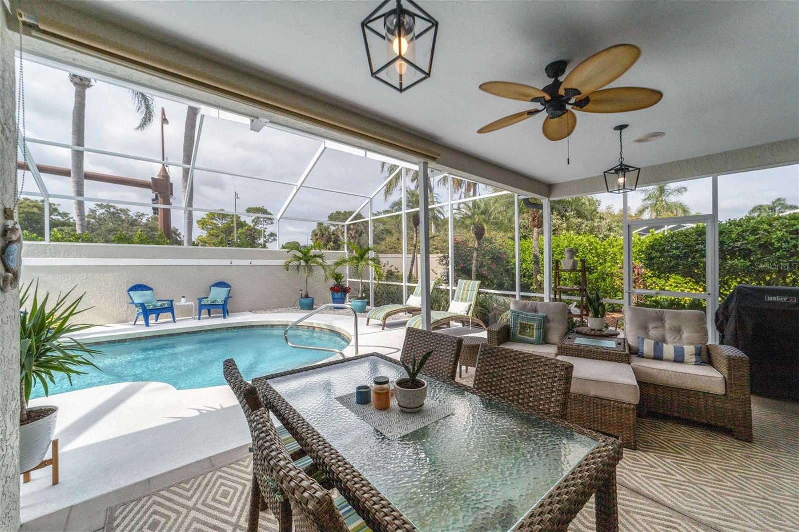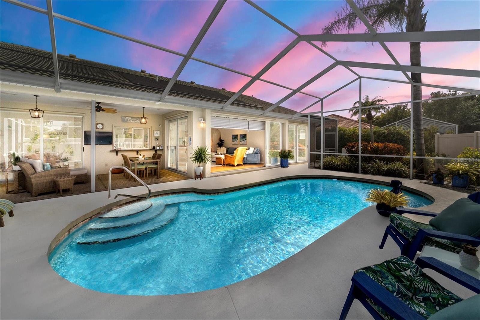 Welcome to Devonshire Place in The Meadows. This is an amazing 2 bedroom PLUS den (currently used as a third bedroom) single family POOL home located in a quaint cul-de-sac with no drive-through traffic. The lush landscaping and fresh exterior paint will impress you as you approach this impeccable property. With all living space located on one floor, the square footage lives large with high ceilings, bamboo and tile flooring, and walls of sliders across the entire back of the home overlooking the pool oasis. The coastal interior, attractive archways, newly painted walls, and updated lighting create such a supreme atmosphere of comfort that you will feel like you are on vacation every day. Updates and amenities of the home include; Solar heated pool, beautiful etched glass front door, separate laundry room with additional cabinets recently installed for extra storage, lawn irrigation on private well, no carpet, rescreened and repainted lanai pool cage, newer stainless steel appliances, insulated garage door with new garage door opener, plantation shutters and blinds, new bathroom vanity in guest bath, a laundry sink located in the garage, and a paver driveway. The primary bedroom offers an immaculate escape with high ceilings, glass slider doors to the pool, walk-in closet, double sink vanity, a garden tub and separate shower. The pool was resurfaced in 2014 and the water heater replaced in 2019. Home can be sold completely FURNISHED, with agreeable contract terms. Breathtaking home in a majestic community- The Meadows is a fantastic place to call home, whether primary, second/vacation home or investment property! With very low HOA fees, the amenities include: a dog park, playground, pickleball courts, tennis courts (tennis with additional membership), walking/biking trails, basketball court, gardens, fishing, restaurants, shopping, brand-new fitness and wellness center, community events and activities, 3 golf courses, clubhouse, and a farmer's market during winter months. The unbeatable Meadows location offers easy access to beaches, Downtown Sarasota, University Town Center, Downtown Lakewood Ranch, I-75, Nathan Benderson aquatic Center, Mote Marine Aquarium and the white sandy beaches and gulf waters. The Village Shops located within the Meadows provides a convenience store, restaurants, pre-school, and a multitude of other conveniences. The Meadows is very pet-friendly so bring your fur-baby too. Membership to the Meadows Country Club is optional for additional benefits.