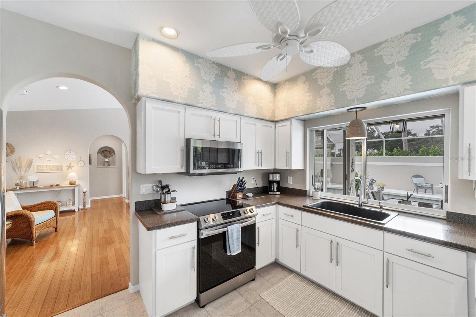 - Exterior: Irrigation System, Lighting, Rain Gutters, Sidewalk, Sliding Doors