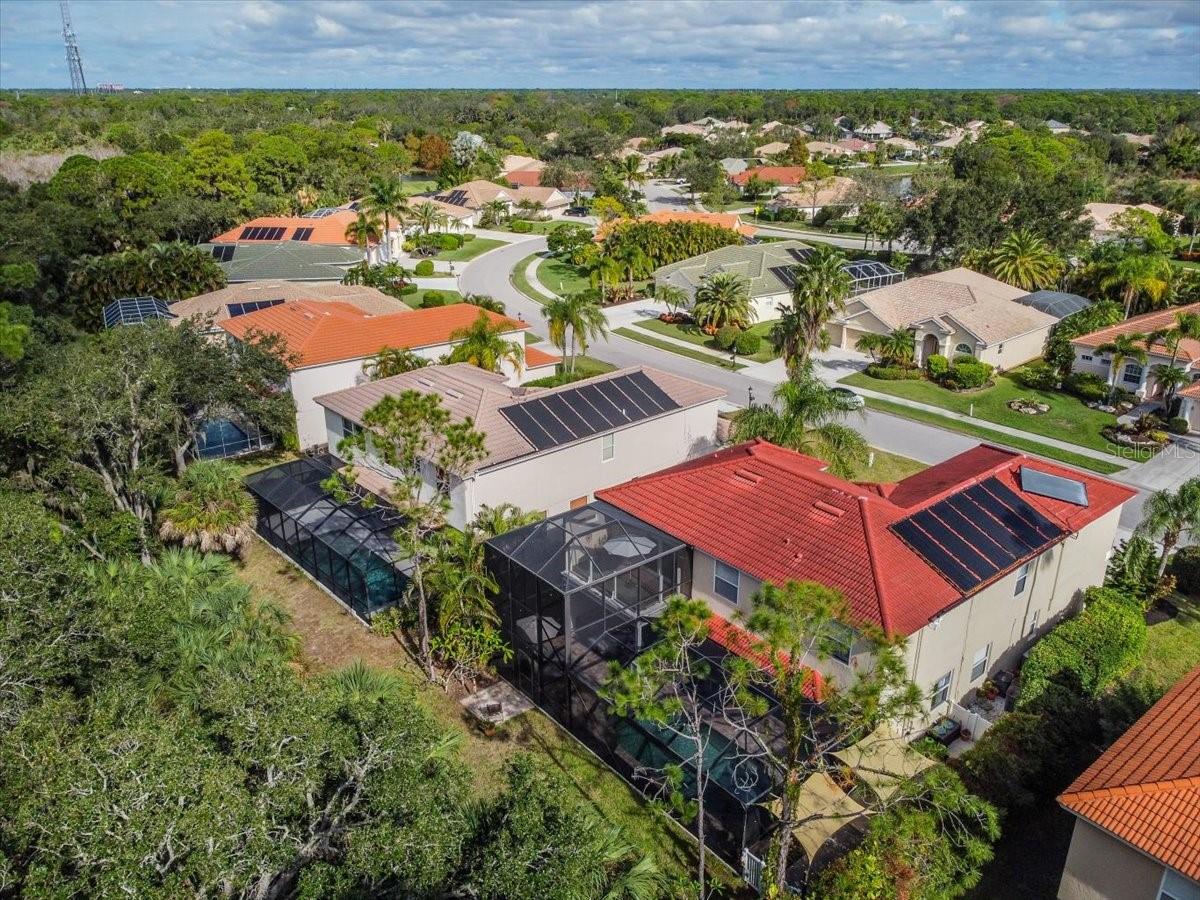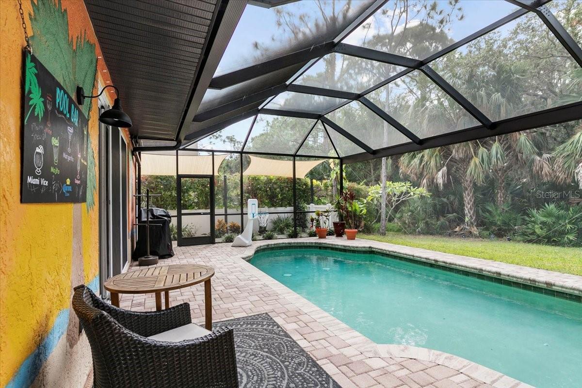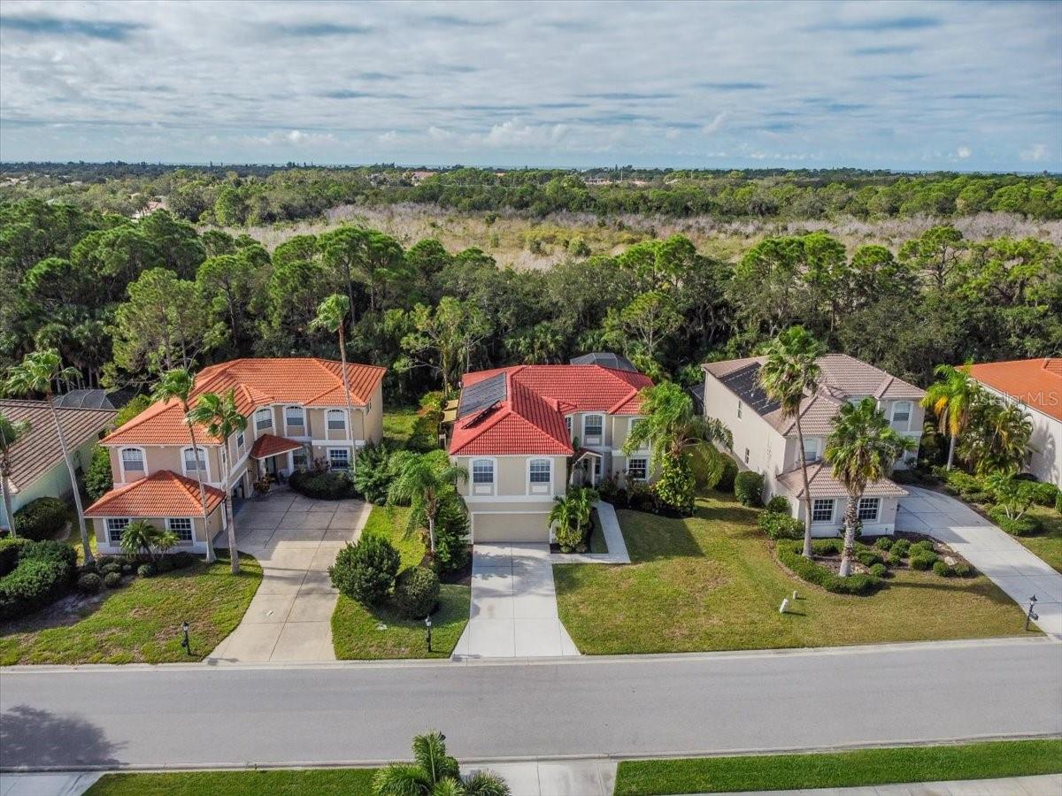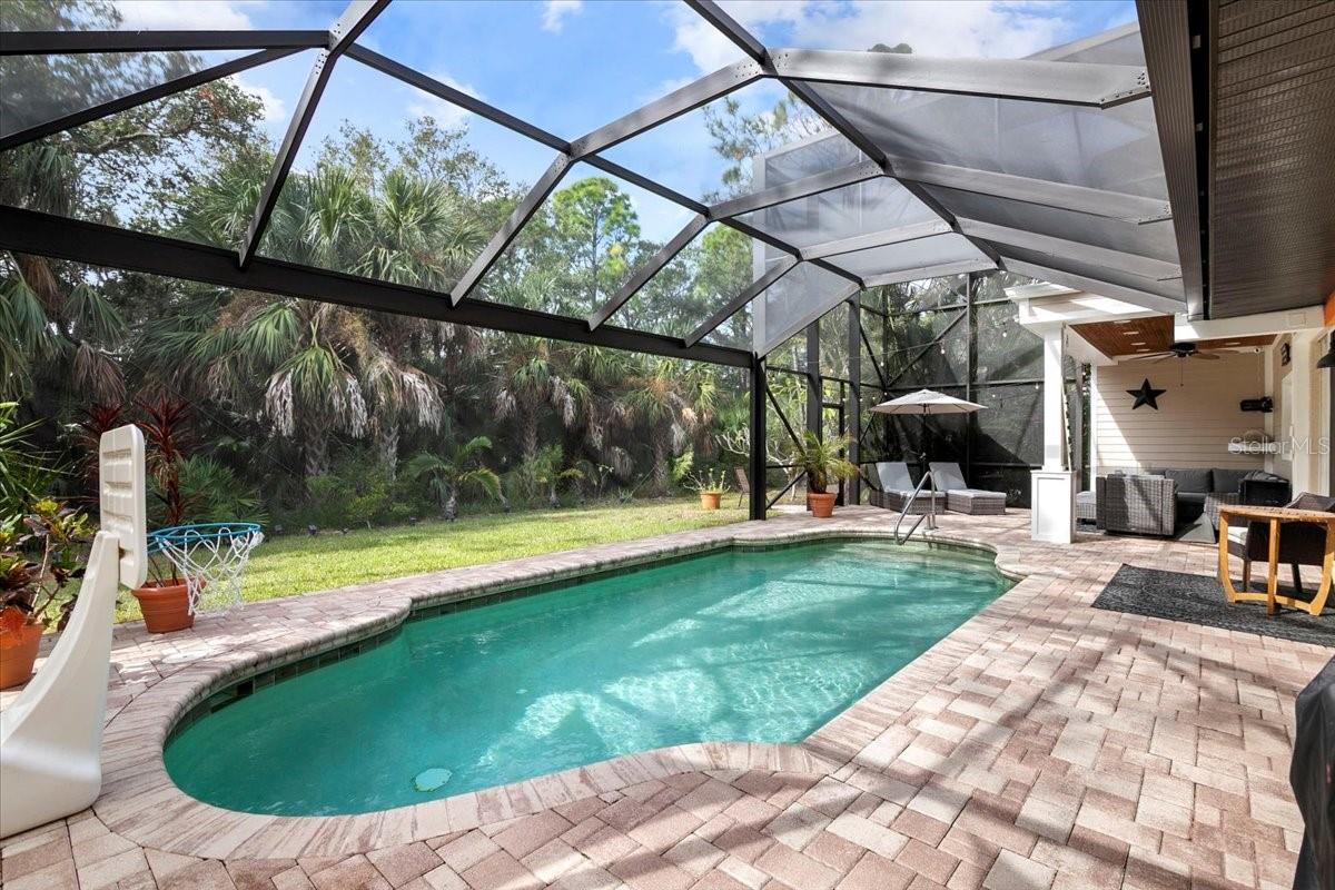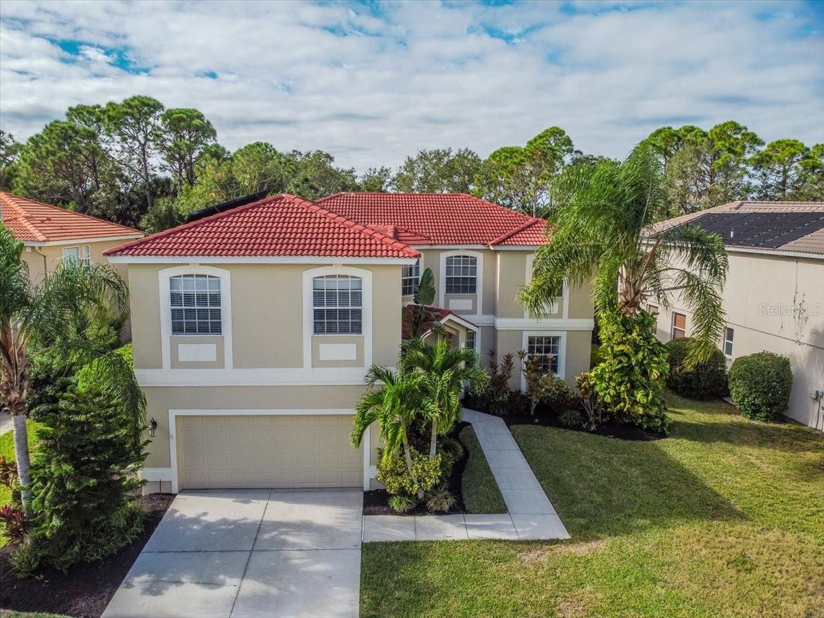 This welcoming residence, surrounded by a pristine preserve, harmoniously blends comfort and natural beauty. The Woodlands at Rivendell community is dedicated to preserving its natural charm, offering residents a picturesque sanctuary.The home underwent a transformative 2021 renovation, featuring new tile flooring on the first floor for a seamless, low-maintenance foundation. The open-concept design enhances continuity between living spaces, creating a sense of spaciousness. Upstairs, sleek vinyl flooring extends into bathrooms, while plush carpeting adorns the five bedrooms.The in-law suite shower boasts contemporary re-tiling, and the entire home flaunts a fresh, modern color palette. Stylish details, from new hardware to chic light fixtures, showcase thoughtful design.The kitchen, a functional and stylish focal point, boasts three spacious pantries, ample cabinet space, and two granite-topped islands. Stainless appliances, a new electric stove, and dishwasher add to the upgraded features.Step into the outdoor oasis with a private pool and lanai, blending seamlessly with the natural preserve. The solar-heated pool, surrounded by stone pavers, invites relaxation and entertainment. The lanai, with newly painted bronze metal frames, offers a bug-free barrier and picturesque views.The master suite exudes comfort and luxury, featuring a spa-like ensuite with modern fixtures, a deep soaking tub, and a 10x12 walk-in closet. The private balcony provides breathtaking views of the pool and preserve.The bonus room is an entertainment haven, furnished with plush theater seats for optimal comfort. A dog run adds convenience to this move-in-ready residence.Located near A+-rated Pine View School, shopping centers, beaches, and more, this home offers convenience. A new hot water heater, updated 2 zone a/c unit, and Kevlar window screens enhance energy efficiency and hurricane defense.This residence is a testament to meticulous care, combining modern convenience with warmth and comfort in an extraordinary Osprey locale