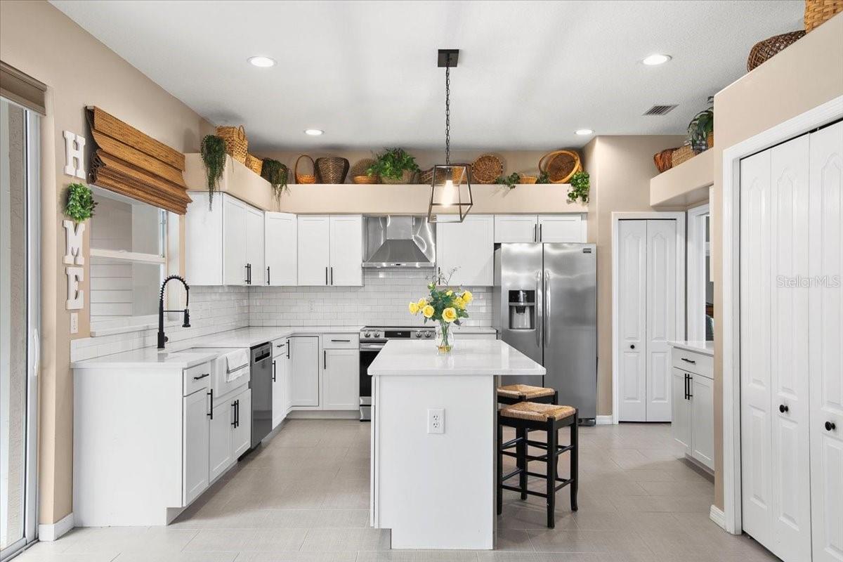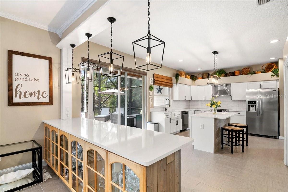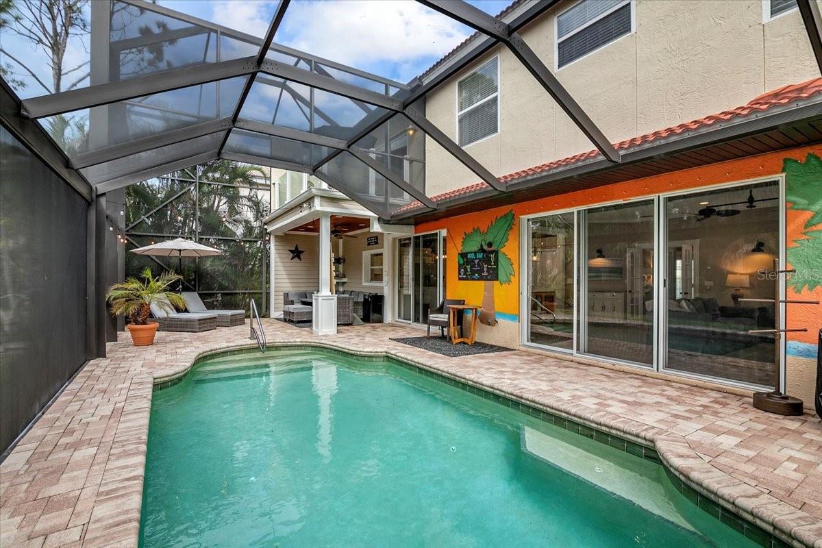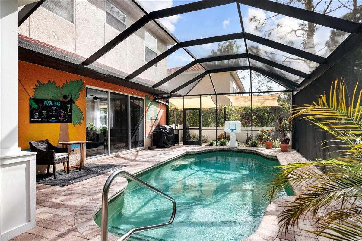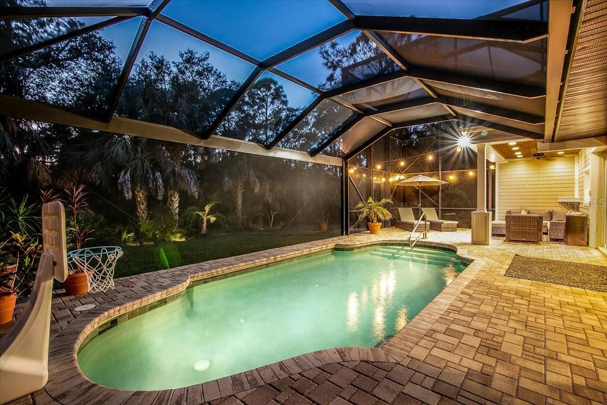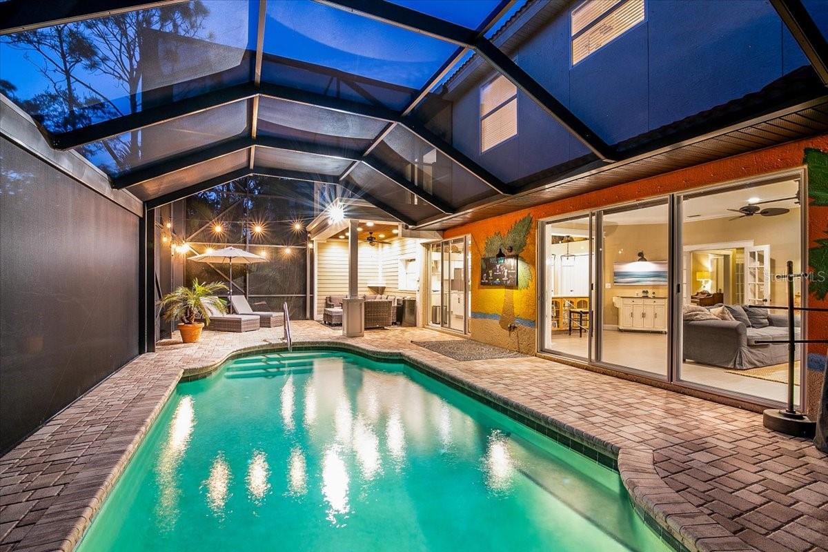 This welcoming residence, surrounded by a pristine preserve, harmoniously blends comfort and natural beauty. The Woodlands at Rivendell community is dedicated to preserving its natural charm, offering residents a picturesque sanctuary.The home underwent a transformative 2021 renovation, featuring new tile flooring on the first floor for a seamless, low-maintenance foundation. The open-concept design enhances continuity between living spaces, creating a sense of spaciousness. Upstairs, sleek vinyl flooring extends into bathrooms, while plush carpeting adorns the five bedrooms.The in-law suite shower boasts contemporary re-tiling, and the entire home flaunts a fresh, modern color palette. Stylish details, from new hardware to chic light fixtures, showcase thoughtful design.The kitchen, a functional and stylish focal point, boasts three spacious pantries, ample cabinet space, and two granite-topped islands. Stainless appliances, a new electric stove, and dishwasher add to the upgraded features.Step into the outdoor oasis with a private pool and lanai, blending seamlessly with the natural preserve. The solar-heated pool, surrounded by stone pavers, invites relaxation and entertainment. The lanai, with newly painted bronze metal frames, offers a bug-free barrier and picturesque views.The master suite exudes comfort and luxury, featuring a spa-like ensuite with modern fixtures, a deep soaking tub, and a 10x12 walk-in closet. The private balcony provides breathtaking views of the pool and preserve.The bonus room is an entertainment haven, furnished with plush theater seats for optimal comfort. A dog run adds convenience to this move-in-ready residence.Located near A+-rated Pine View School, shopping centers, beaches, and more, this home offers convenience. A new hot water heater, updated 2 zone a/c unit, and Kevlar window screens enhance energy efficiency and hurricane defense.This residence is a testament to meticulous care, combining modern convenience with warmth and comfort in an extraordinary Osprey locale