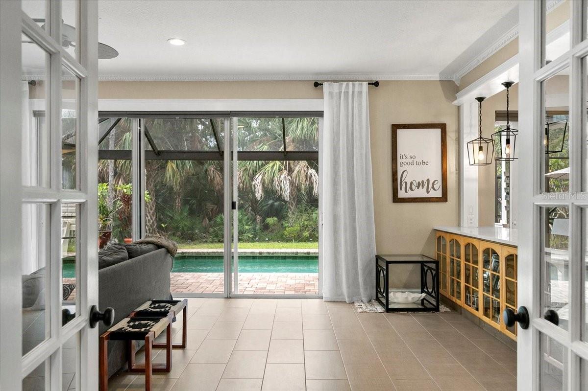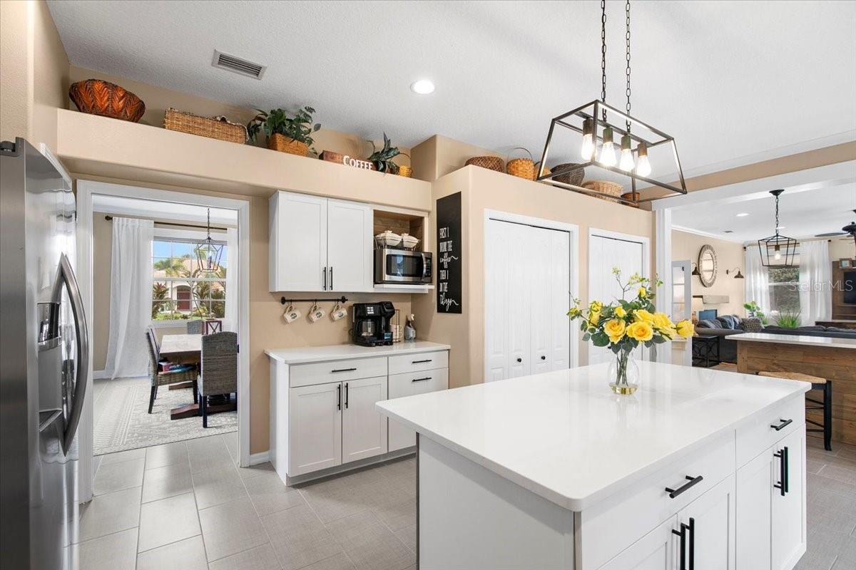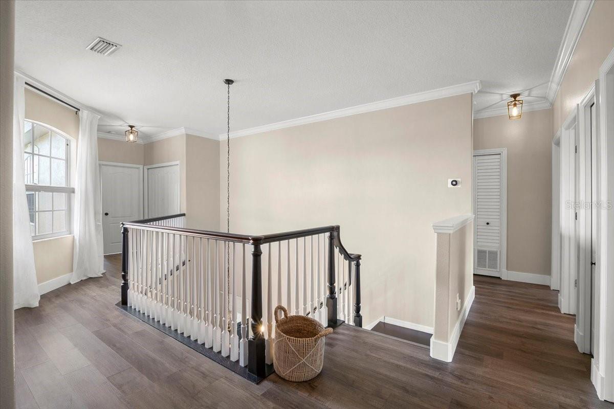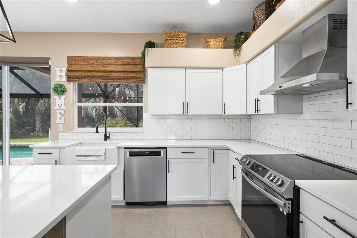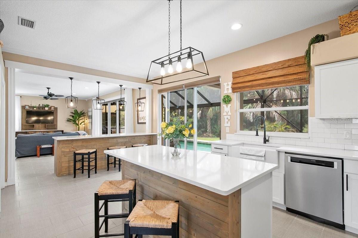 This welcoming residence, surrounded by a pristine preserve, harmoniously blends comfort and natural beauty. The Woodlands at Rivendell community is dedicated to preserving its natural charm, offering residents a picturesque sanctuary.The home underwent a transformative 2021 renovation, featuring new tile flooring on the first floor for a seamless, low-maintenance foundation. The open-concept design enhances continuity between living spaces, creating a sense of spaciousness. Upstairs, sleek vinyl flooring extends into bathrooms, while plush carpeting adorns the five bedrooms.The in-law suite shower boasts contemporary re-tiling, and the entire home flaunts a fresh, modern color palette. Stylish details, from new hardware to chic light fixtures, showcase thoughtful design.The kitchen, a functional and stylish focal point, boasts three spacious pantries, ample cabinet space, and two granite-topped islands. Stainless appliances, a new electric stove, and dishwasher add to the upgraded features.Step into the outdoor oasis with a private pool and lanai, blending seamlessly with the natural preserve. The solar-heated pool, surrounded by stone pavers, invites relaxation and entertainment. The lanai, with newly painted bronze metal frames, offers a bug-free barrier and picturesque views.The master suite exudes comfort and luxury, featuring a spa-like ensuite with modern fixtures, a deep soaking tub, and a 10x12 walk-in closet. The private balcony provides breathtaking views of the pool and preserve.The bonus room is an entertainment haven, furnished with plush theater seats for optimal comfort. A dog run adds convenience to this move-in-ready residence.Located near A+-rated Pine View School, shopping centers, beaches, and more, this home offers convenience. A new hot water heater, updated 2 zone a/c unit, and Kevlar window screens enhance energy efficiency and hurricane defense.This residence is a testament to meticulous care, combining modern convenience with warmth and comfort in an extraordinary Osprey locale