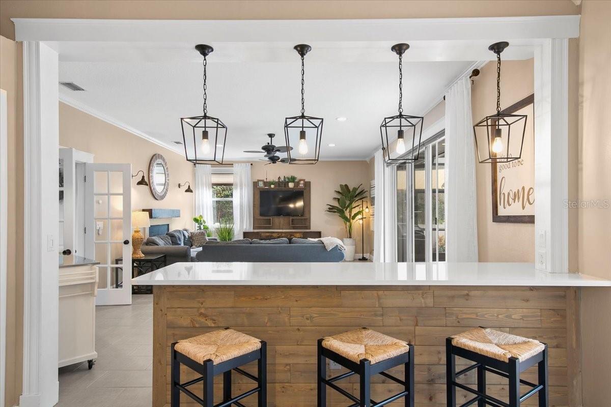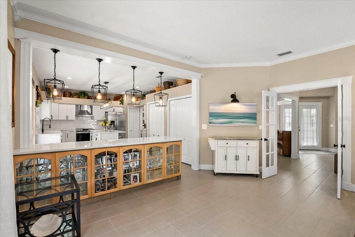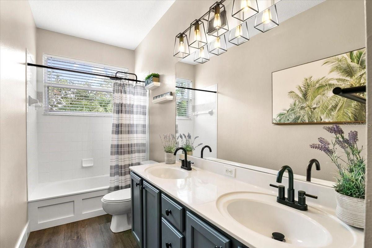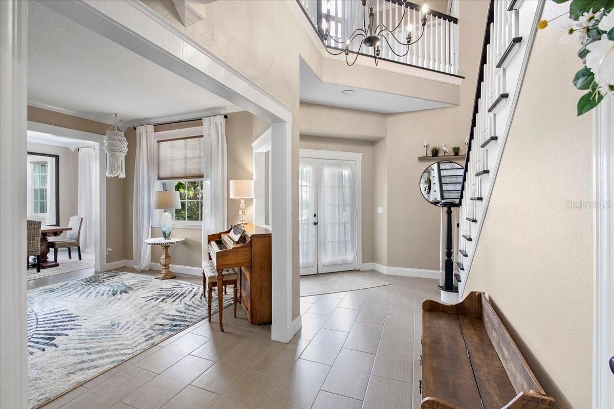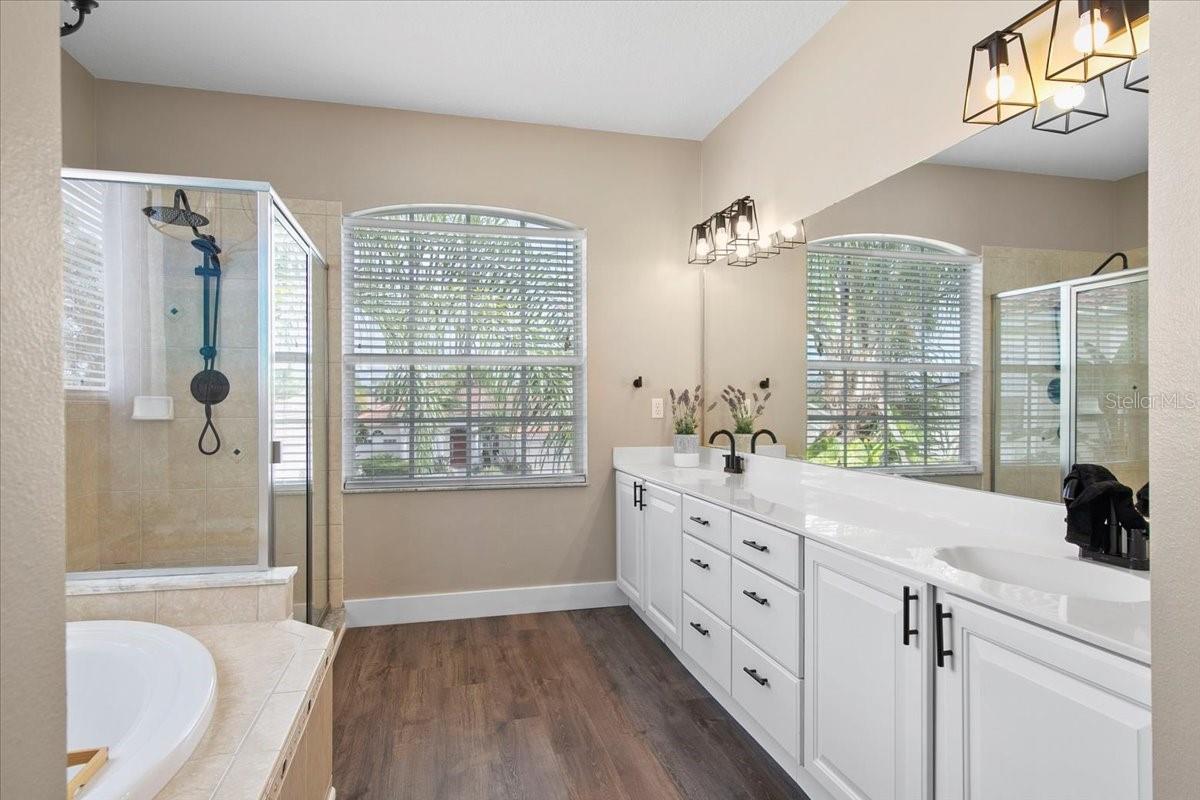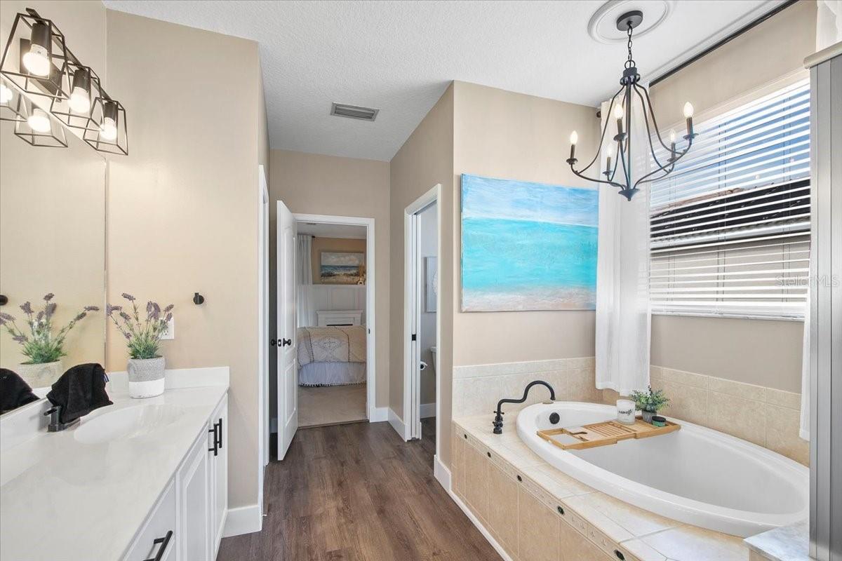 This welcoming residence, surrounded by a pristine preserve, harmoniously blends comfort and natural beauty. The Woodlands at Rivendell community is dedicated to preserving its natural charm, offering residents a picturesque sanctuary.The home underwent a transformative 2021 renovation, featuring new tile flooring on the first floor for a seamless, low-maintenance foundation. The open-concept design enhances continuity between living spaces, creating a sense of spaciousness. Upstairs, sleek vinyl flooring extends into bathrooms, while plush carpeting adorns the five bedrooms.The in-law suite shower boasts contemporary re-tiling, and the entire home flaunts a fresh, modern color palette. Stylish details, from new hardware to chic light fixtures, showcase thoughtful design.The kitchen, a functional and stylish focal point, boasts three spacious pantries, ample cabinet space, and two granite-topped islands. Stainless appliances, a new electric stove, and dishwasher add to the upgraded features.Step into the outdoor oasis with a private pool and lanai, blending seamlessly with the natural preserve. The solar-heated pool, surrounded by stone pavers, invites relaxation and entertainment. The lanai, with newly painted bronze metal frames, offers a bug-free barrier and picturesque views.The master suite exudes comfort and luxury, featuring a spa-like ensuite with modern fixtures, a deep soaking tub, and a 10x12 walk-in closet. The private balcony provides breathtaking views of the pool and preserve.The bonus room is an entertainment haven, furnished with plush theater seats for optimal comfort. A dog run adds convenience to this move-in-ready residence.Located near A+-rated Pine View School, shopping centers, beaches, and more, this home offers convenience. A new hot water heater, updated 2 zone a/c unit, and Kevlar window screens enhance energy efficiency and hurricane defense.This residence is a testament to meticulous care, combining modern convenience with warmth and comfort in an extraordinary Osprey locale