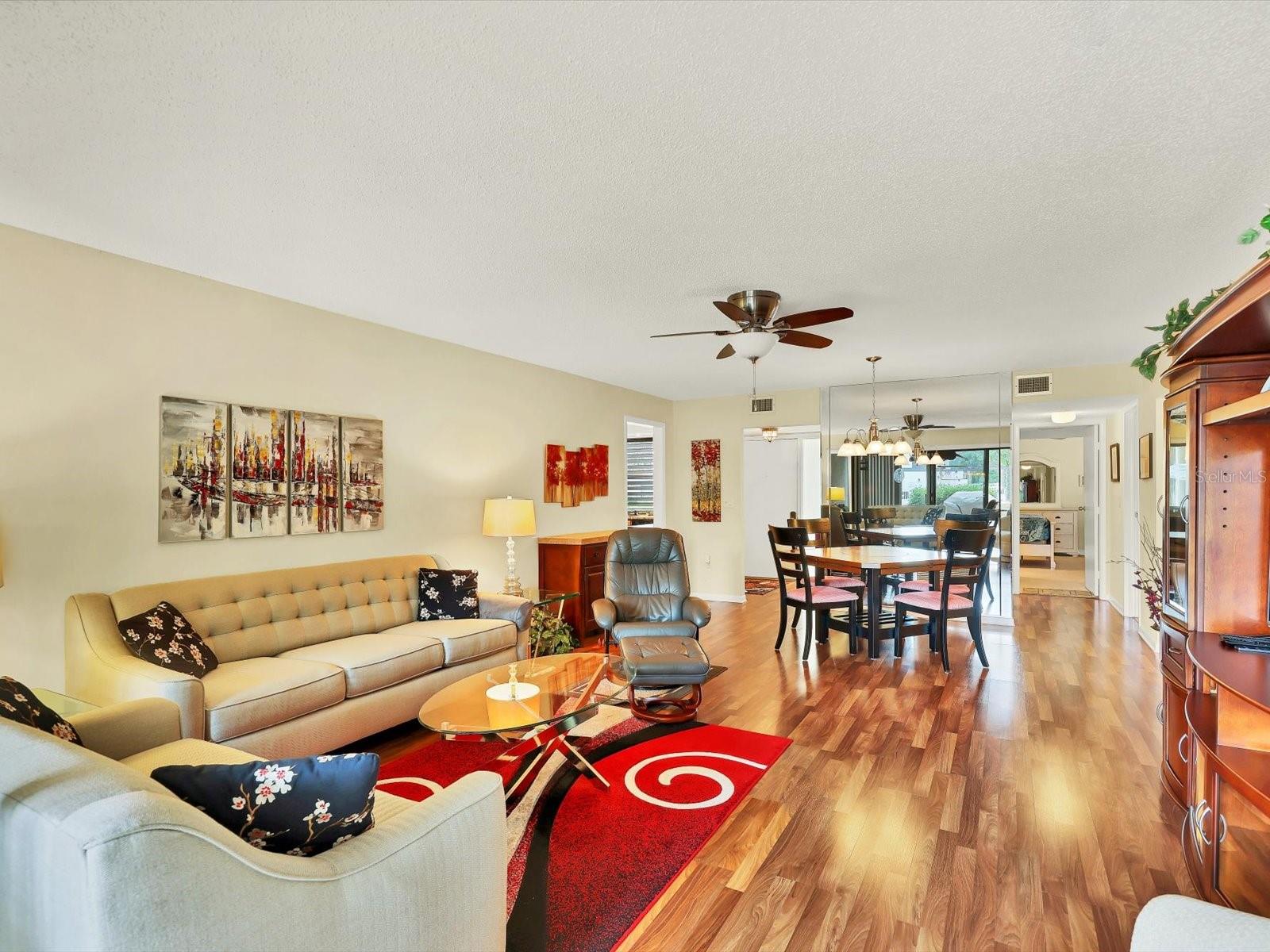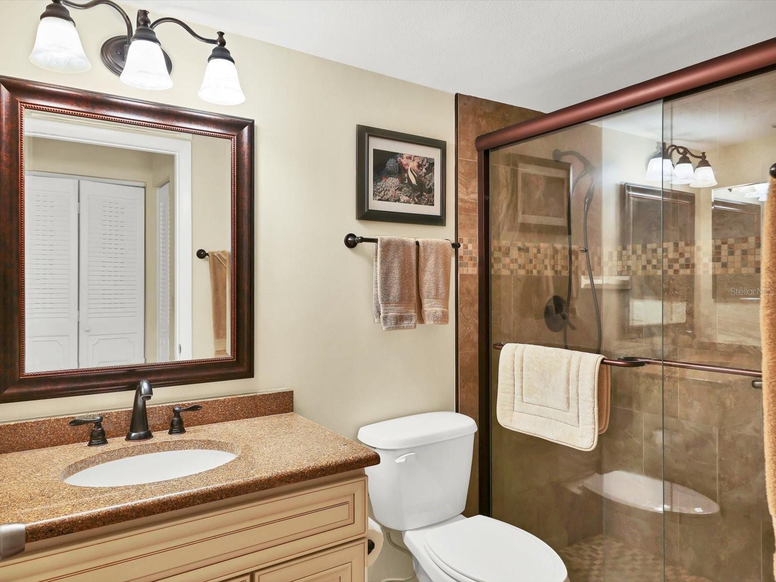 IDEAL LOCATION! IMMACULATE FULLY FURNISHED/TURNKEY 1st FLOOR CONDO, with 3 BEDROOMS, 2 BATHS + CARPORT WITH STORAGE (room for your bikes and beach chairs) NEW A/C installed 5/2023, NEW HOT WATER 09/2023, 100% UPDATED, MOVE IN READY! UNIQUE TO HERONMERE THIS CONDO OFFERS AN OVERSIZE OUTDOOR PATIO WITH CLOSET FOR STORATE as well as a glassed/screened indoor lanai, so no matter the weather, you are covered! Make this your new Oasis with courtyard views of the tropical landscaping and blue sunny skies only steps from the community heated pool. The Brazilian Cherry laminate floors are in the main living area and master suite. NEW 11/2023 light beige rugs in the 2nd and 3rd bedrooms. The updated kitchen offers wood cabinets, with some pullouts, easy close drawers, granite countertops, an under-mount sink with garbage disposal, and newer appliances (2-door Frigidaire fridge, Whirlpool Bake/Convection oven, BOSH silence Plus 50 dBA Dishwasher). Off the kitchen, you have a walk-in laundry/pantry closet with a washer & dryer, hot water tank, and pantry storage. The Master Bath and 2nd Bath are updated with new tile, fixtures, and lighting. The large Master Suite has a 5 x 6 walk-in closet + 2 linen closets. Heronmere Condo Association updated pipes, new roof, and exterior paint in 2014-15. You are within walking distance of The Meadows PUB and Shopping Center. As an owner, you have The Meadows Country Club access to the Renaissance program, allowing the use of the fitness center, Jr. Olympic pool, pickleball, dining venues, and pay-to-play golf and tennis. Separate GOLF/TENNIS/SOCIAL Club Memberships for the County Club are Optional. Only 6-8 miles to downtown Sarasota shops and restaurants, theaters, and the Van Wezel Performing Arts Center, bridges to our award-winning beaches. 1.5 miles to the new Mote Aquarium, University Town Center Mall, Whole Foods, Fresh Market, and now Trader Joe's. This unit won't last long! This could be your little piece of Paradise, get out of the cold and spend your winter with us! Call for a showing today! Room Feature: Linen Closet In Bath (Primary Bedroom).