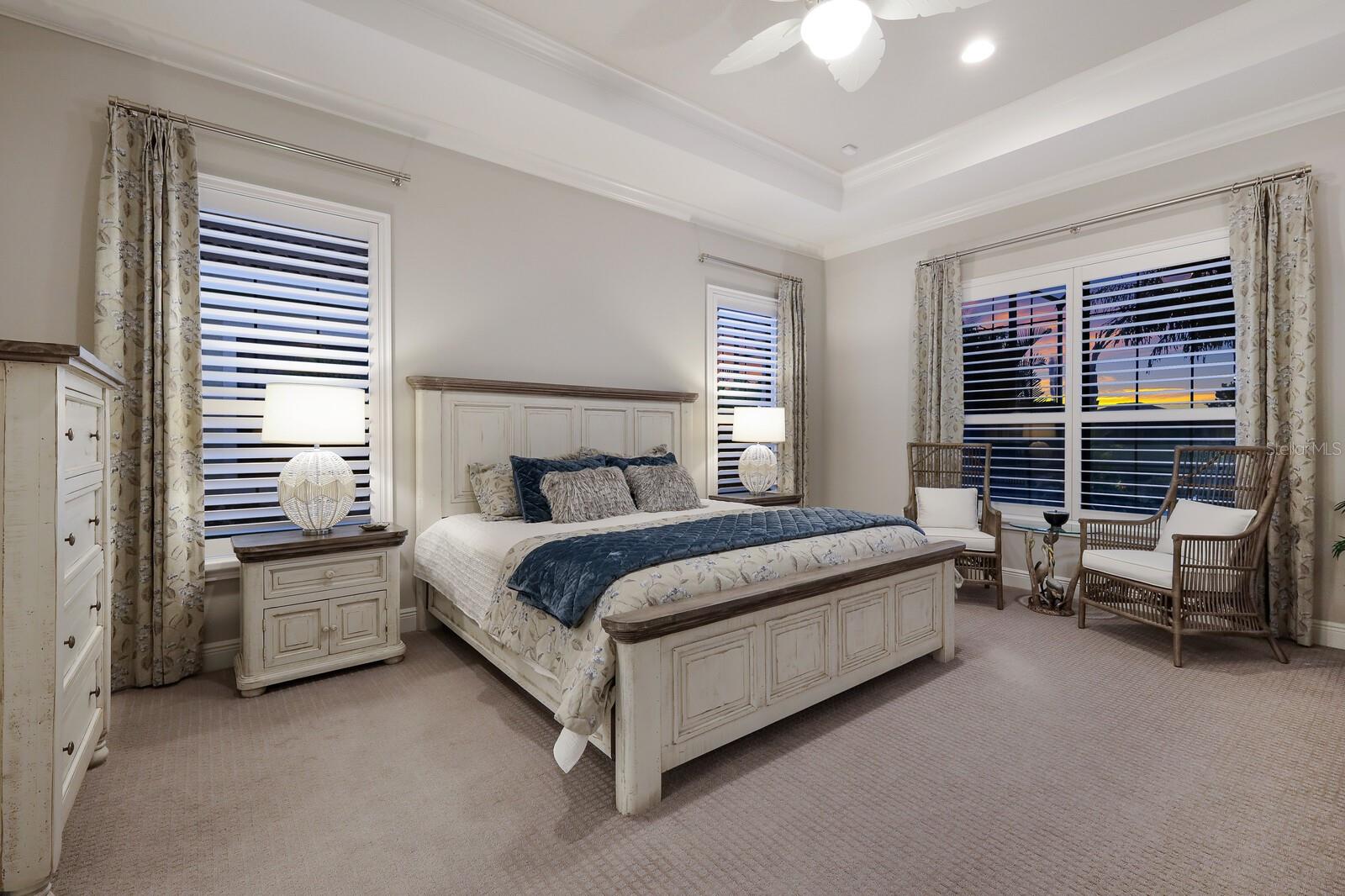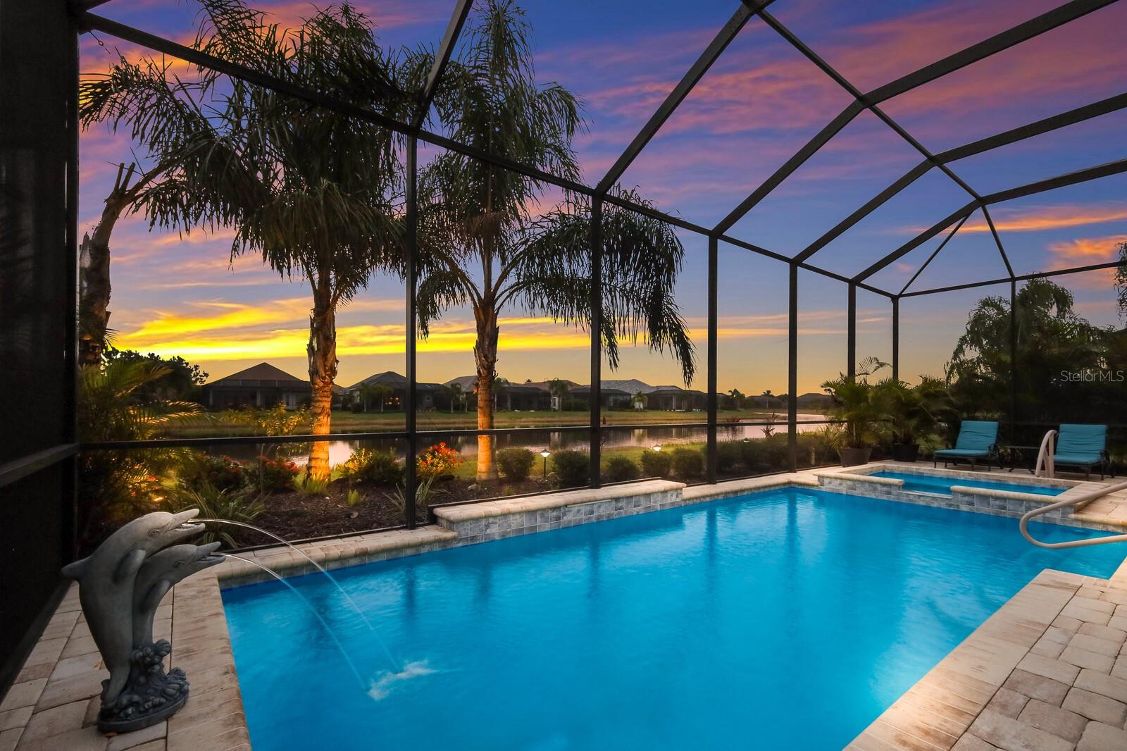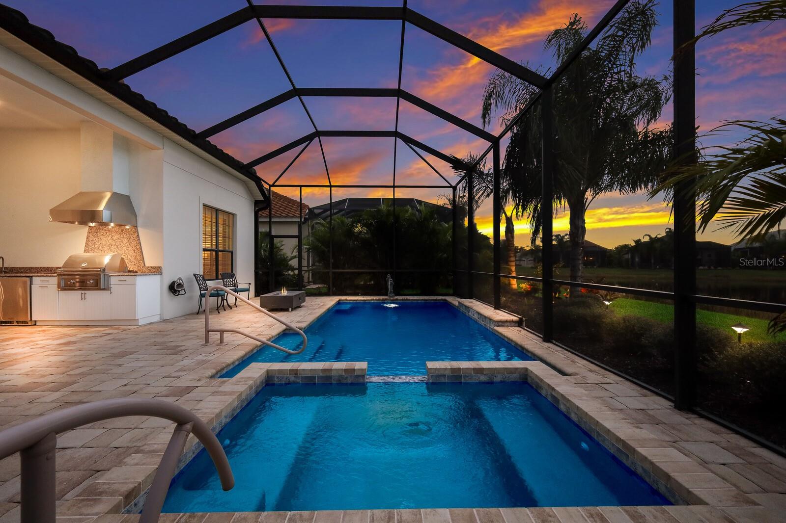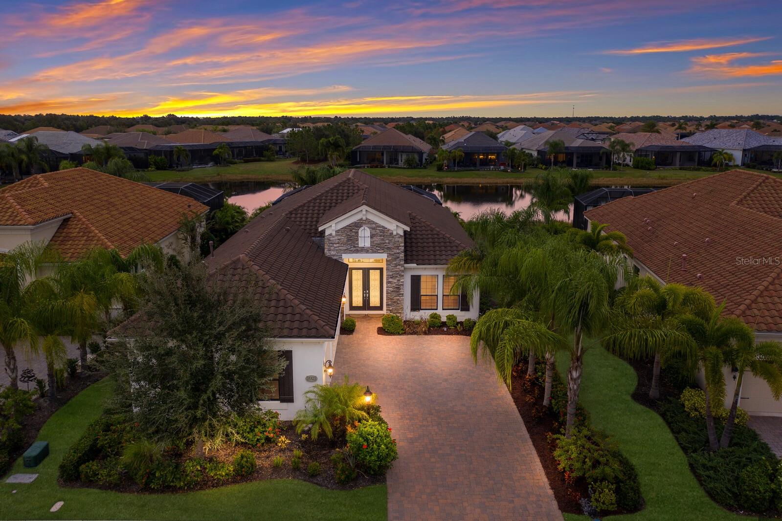 Located in the gated, amenity-rich community of Country Club East, this well-appointed three bedroom,two and half bathroom home offers a relaxing, luxury lifestyle. The highly desirable floorplan by one ofLakewood Ranch's premier custom builder shows like a model with an on trend soothing neutral colorpalette and abundance of custom features. One step in, and you will be taken with the water views andlovely pool as it sets the stage for the rest of the elegant residence. The gourmet kitchen offers GE Cafappliances with built-in oven, oversized island, quartz countertops, gas cooktop and upgraded cabinetry.The inviting, comfortable great room flows seamlessly to your private oasis through the disappearing sliding doors where you will enjoy serene water views from the covered paver lanai with outdoor kitchen and sparkling heated pool/spa. The master suite is generous with an abundance of windows,custom drapes, plantation shutters, tray ceiling, two walk-in closets, double vanity and large roman walk in shower. The split floorplan provides privacy for you and your guest with two inviting guest bedroomsfeaturing custom drapes and plantation shutters. The stylish den is spacious with wood floors and anabundance of natural light. The main living spaces boast 12-foot ceilings adorned with crown moldingand tray ceilings. The formal dining area and oversized foyer are flanked with architectural arches andcolumns. Other standout highlights include plantation shutters throughout, designer custom windowtreatments, exterior landscape lighting and three car garage with epoxy painted floor. The laundry room isequipped with built-in cabinets and soaking sink. Country Club East offers a large resort style pool andtwo other community pools along with a clubhouse and fitness center. An optional Lakewood RanchCountry Club membership may be available for golf, pickleball, dining and social events all located withinCountry Club East at The Lodge. Just a short drive away is the new Waterside Place town center, whereyou'll have easy access to shopping, dining, weekly cultural events with food trucks, farmers markets andlive music. If you're up for a little adventure, catch a nearby polo match, or hop on I-75 for an easycommute to the Orlando Theme Parks, indulge in retail therapy at UTC Mall, catch a flight at SRQ Airport,or take a stroll on our beautiful sugary white sand beaches. All this makes for a vibrant, enjoyable FloridaLifestyle!