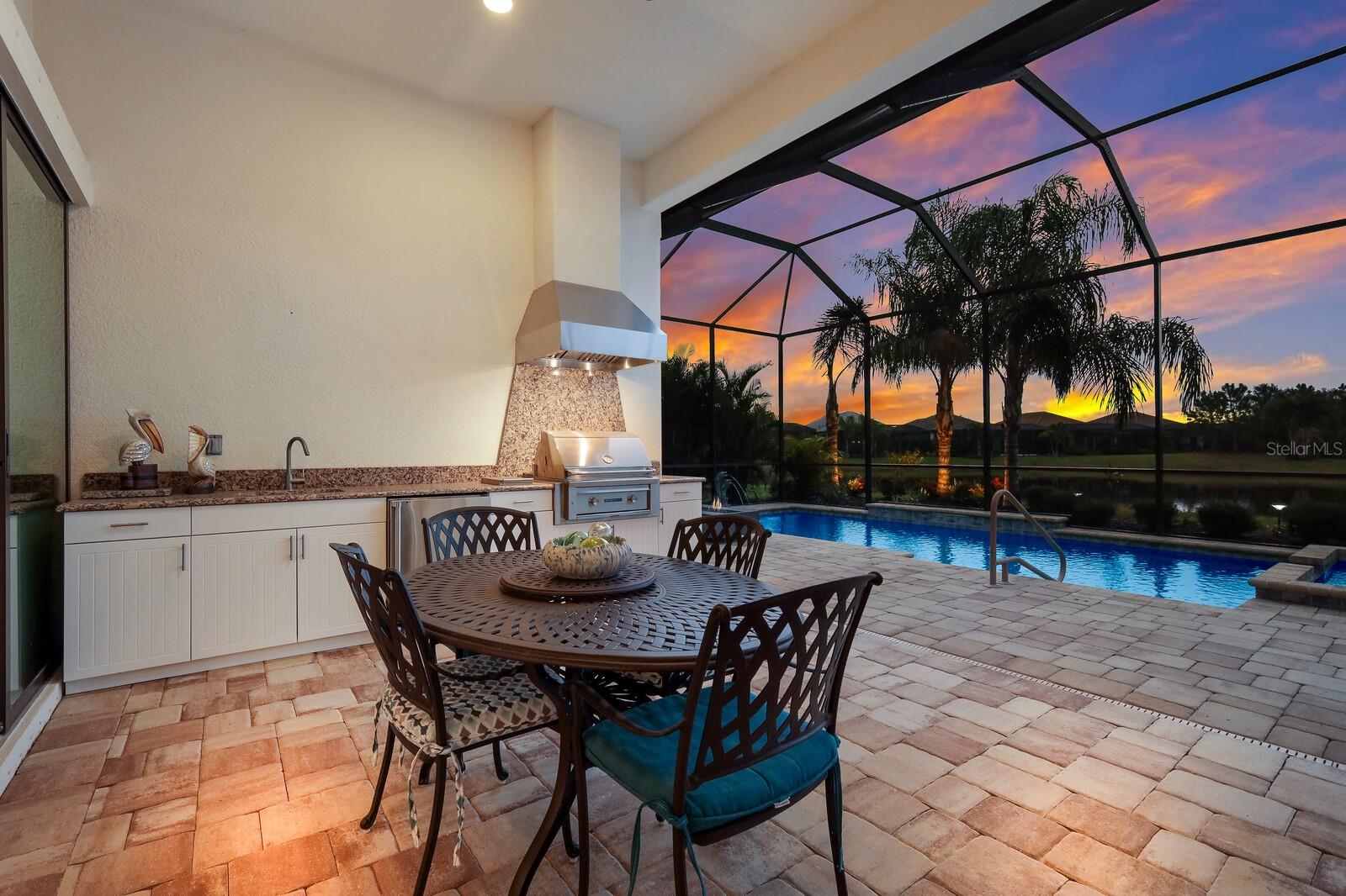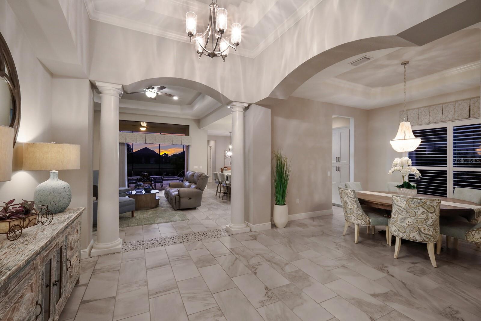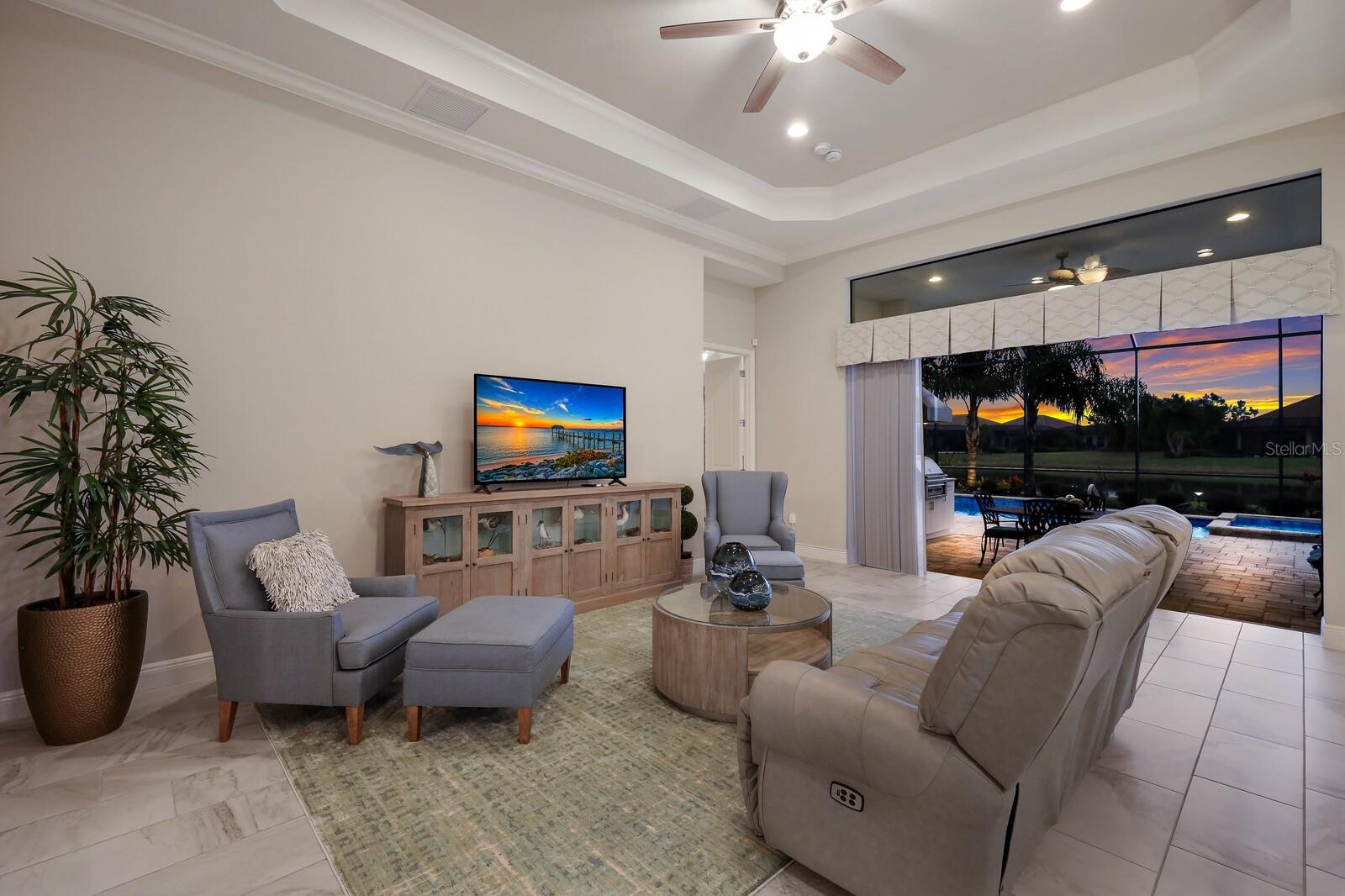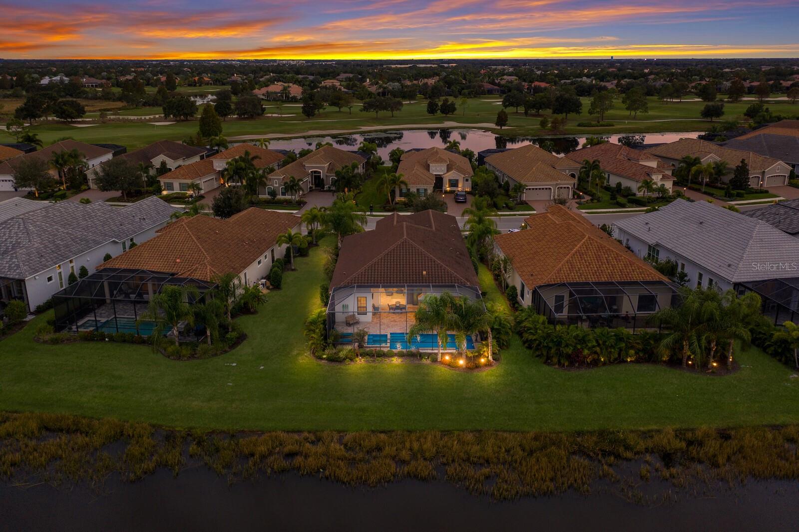 Located in the gated, amenity-rich community of Country Club East, this well-appointed three bedroom,two and half bathroom home offers a relaxing, luxury lifestyle. The highly desirable floorplan by one ofLakewood Ranch's premier custom builder shows like a model with an on trend soothing neutral colorpalette and abundance of custom features. One step in, and you will be taken with the water views andlovely pool as it sets the stage for the rest of the elegant residence. The gourmet kitchen offers GE Cafappliances with built-in oven, oversized island, quartz countertops, gas cooktop and upgraded cabinetry.The inviting, comfortable great room flows seamlessly to your private oasis through the disappearing sliding doors where you will enjoy serene water views from the covered paver lanai with outdoor kitchen and sparkling heated pool/spa. The master suite is generous with an abundance of windows,custom drapes, plantation shutters, tray ceiling, two walk-in closets, double vanity and large roman walk in shower. The split floorplan provides privacy for you and your guest with two inviting guest bedroomsfeaturing custom drapes and plantation shutters. The stylish den is spacious with wood floors and anabundance of natural light. The main living spaces boast 12-foot ceilings adorned with crown moldingand tray ceilings. The formal dining area and oversized foyer are flanked with architectural arches andcolumns. Other standout highlights include plantation shutters throughout, designer custom windowtreatments, exterior landscape lighting and three car garage with epoxy painted floor. The laundry room isequipped with built-in cabinets and soaking sink. Country Club East offers a large resort style pool andtwo other community pools along with a clubhouse and fitness center. An optional Lakewood RanchCountry Club membership may be available for golf, pickleball, dining and social events all located withinCountry Club East at The Lodge. Just a short drive away is the new Waterside Place town center, whereyou'll have easy access to shopping, dining, weekly cultural events with food trucks, farmers markets andlive music. If you're up for a little adventure, catch a nearby polo match, or hop on I-75 for an easycommute to the Orlando Theme Parks, indulge in retail therapy at UTC Mall, catch a flight at SRQ Airport,or take a stroll on our beautiful sugary white sand beaches. All this makes for a vibrant, enjoyable FloridaLifestyle!