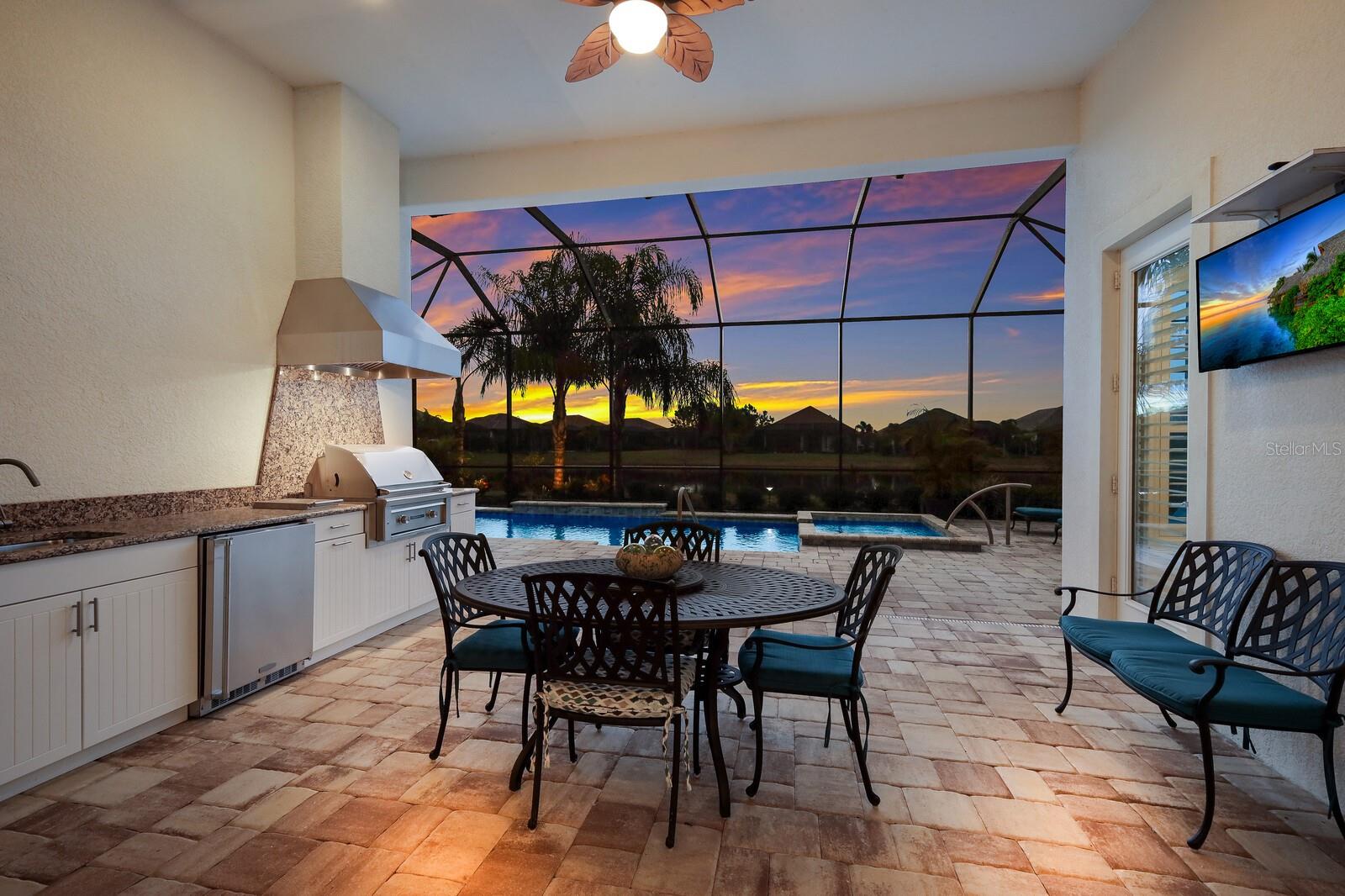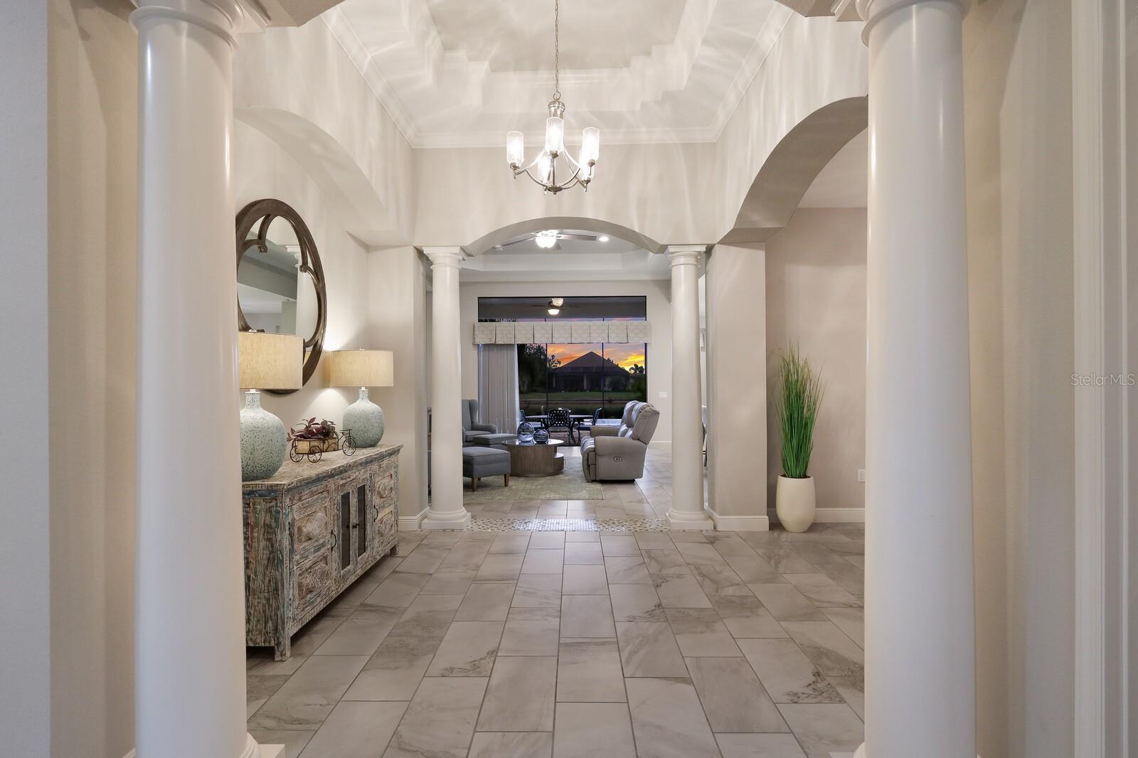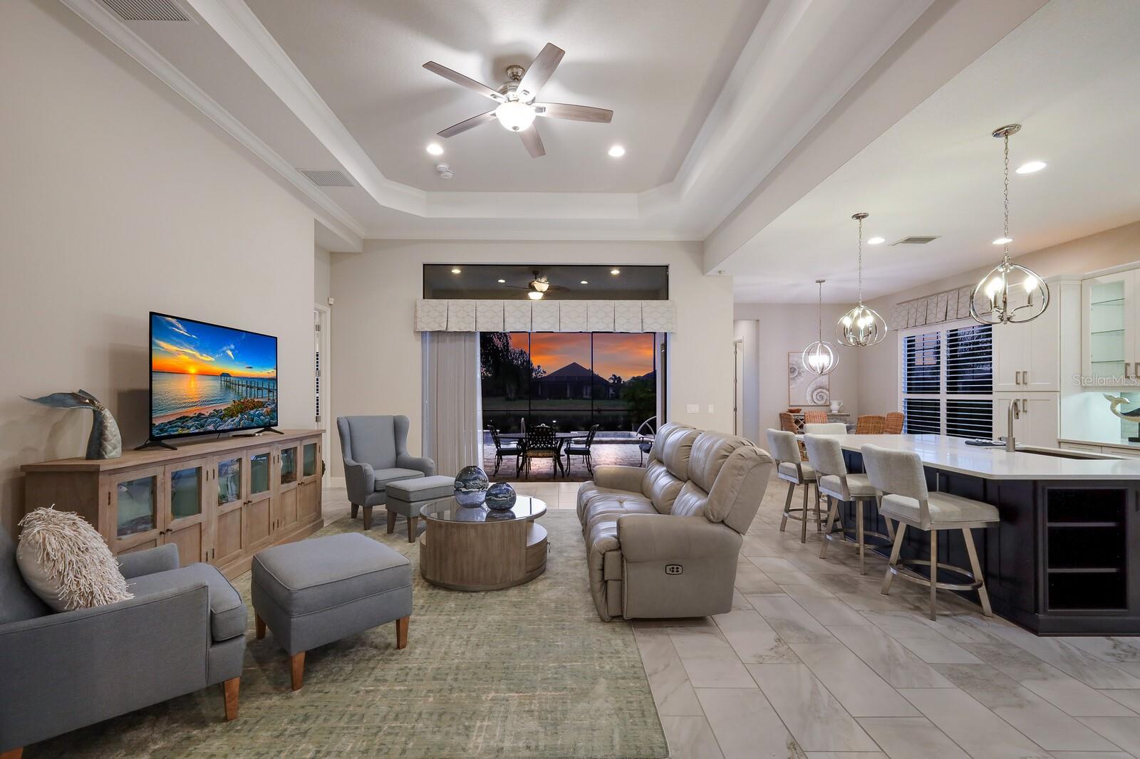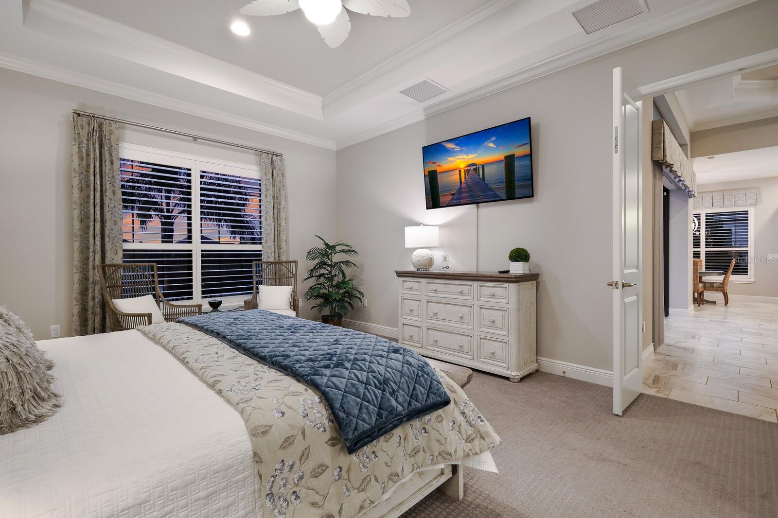 Located in the gated, amenity-rich community of Country Club East, this well-appointed three bedroom,two and half bathroom home offers a relaxing, luxury lifestyle. The highly desirable floorplan by one ofLakewood Ranch's premier custom builder shows like a model with an on trend soothing neutral colorpalette and abundance of custom features. One step in, and you will be taken with the water views andlovely pool as it sets the stage for the rest of the elegant residence. The gourmet kitchen offers GE Cafappliances with built-in oven, oversized island, quartz countertops, gas cooktop and upgraded cabinetry.The inviting, comfortable great room flows seamlessly to your private oasis through the disappearing sliding doors where you will enjoy serene water views from the covered paver lanai with outdoor kitchen and sparkling heated pool/spa. The master suite is generous with an abundance of windows,custom drapes, plantation shutters, tray ceiling, two walk-in closets, double vanity and large roman walk in shower. The split floorplan provides privacy for you and your guest with two inviting guest bedroomsfeaturing custom drapes and plantation shutters. The stylish den is spacious with wood floors and anabundance of natural light. The main living spaces boast 12-foot ceilings adorned with crown moldingand tray ceilings. The formal dining area and oversized foyer are flanked with architectural arches andcolumns. Other standout highlights include plantation shutters throughout, designer custom windowtreatments, exterior landscape lighting and three car garage with epoxy painted floor. The laundry room isequipped with built-in cabinets and soaking sink. Country Club East offers a large resort style pool andtwo other community pools along with a clubhouse and fitness center. An optional Lakewood RanchCountry Club membership may be available for golf, pickleball, dining and social events all located withinCountry Club East at The Lodge. Just a short drive away is the new Waterside Place town center, whereyou'll have easy access to shopping, dining, weekly cultural events with food trucks, farmers markets andlive music. If you're up for a little adventure, catch a nearby polo match, or hop on I-75 for an easycommute to the Orlando Theme Parks, indulge in retail therapy at UTC Mall, catch a flight at SRQ Airport,or take a stroll on our beautiful sugary white sand beaches. All this makes for a vibrant, enjoyable FloridaLifestyle!