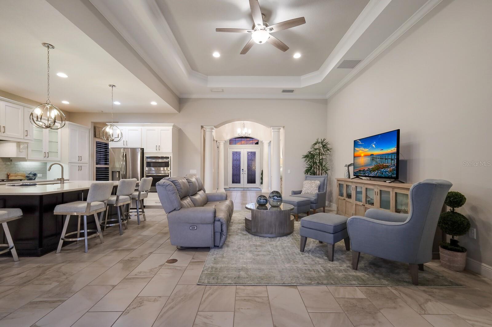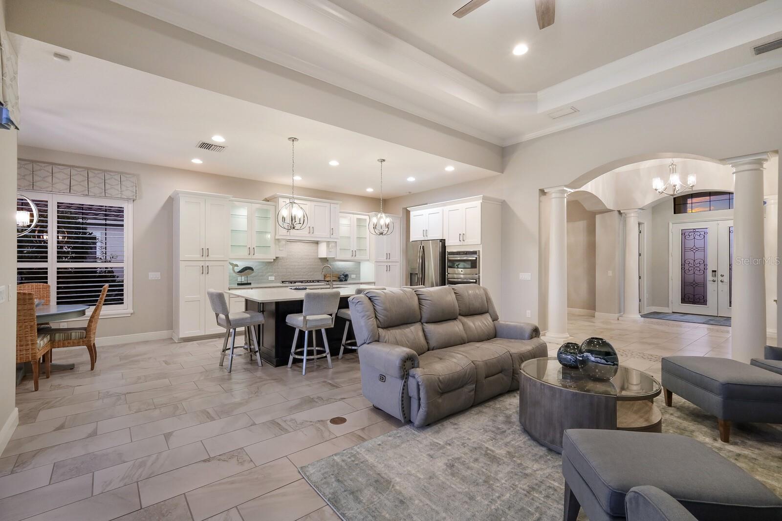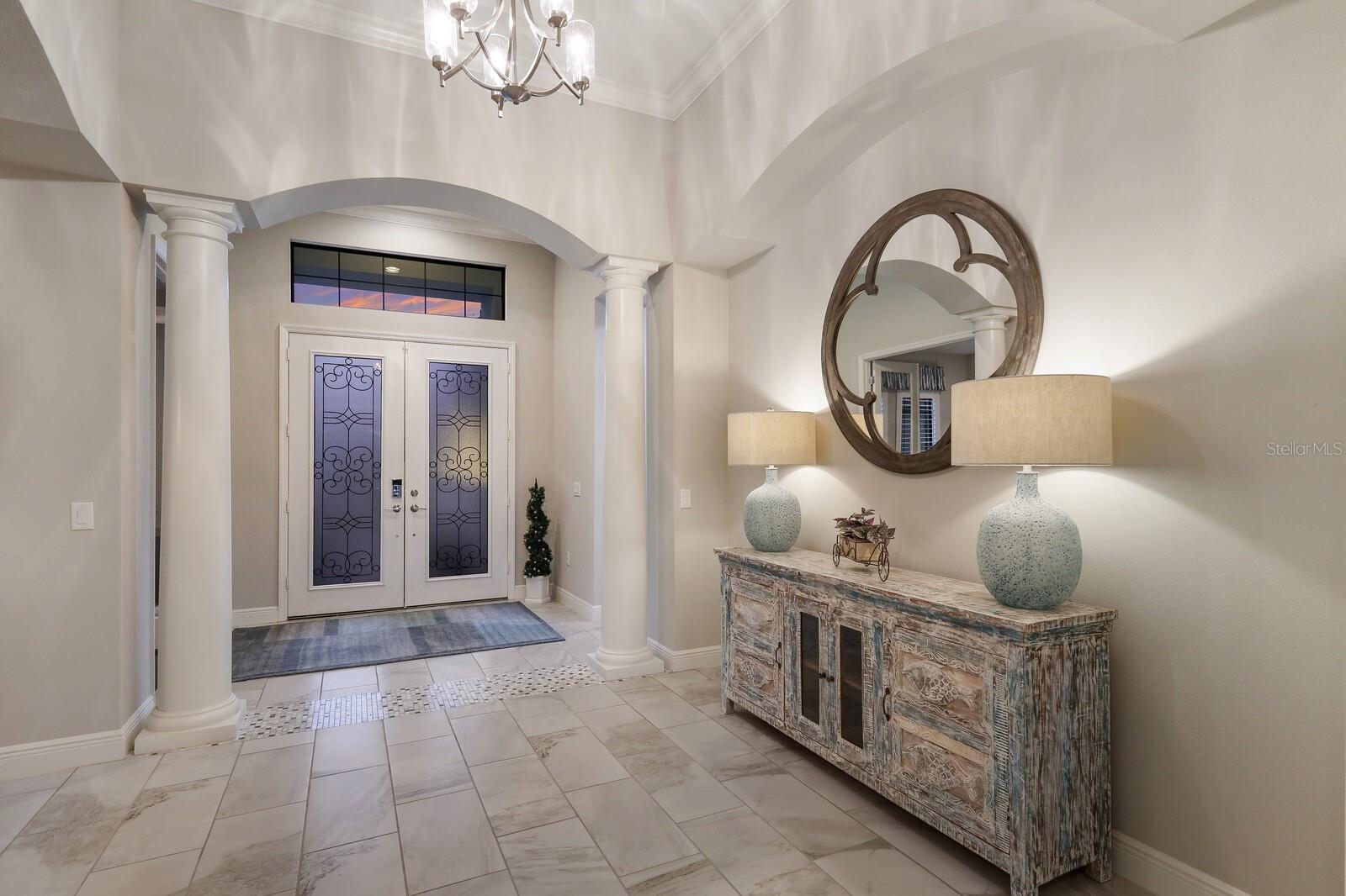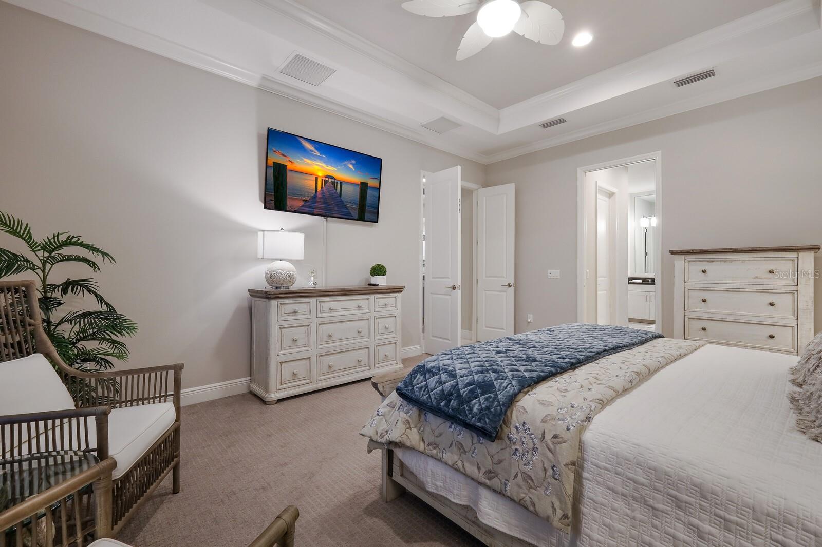 Located in the gated, amenity-rich community of Country Club East, this well-appointed three bedroom,two and half bathroom home offers a relaxing, luxury lifestyle. The highly desirable floorplan by one ofLakewood Ranch's premier custom builder shows like a model with an on trend soothing neutral colorpalette and abundance of custom features. One step in, and you will be taken with the water views andlovely pool as it sets the stage for the rest of the elegant residence. The gourmet kitchen offers GE Cafappliances with built-in oven, oversized island, quartz countertops, gas cooktop and upgraded cabinetry.The inviting, comfortable great room flows seamlessly to your private oasis through the disappearing sliding doors where you will enjoy serene water views from the covered paver lanai with outdoor kitchen and sparkling heated pool/spa. The master suite is generous with an abundance of windows,custom drapes, plantation shutters, tray ceiling, two walk-in closets, double vanity and large roman walk in shower. The split floorplan provides privacy for you and your guest with two inviting guest bedroomsfeaturing custom drapes and plantation shutters. The stylish den is spacious with wood floors and anabundance of natural light. The main living spaces boast 12-foot ceilings adorned with crown moldingand tray ceilings. The formal dining area and oversized foyer are flanked with architectural arches andcolumns. Other standout highlights include plantation shutters throughout, designer custom windowtreatments, exterior landscape lighting and three car garage with epoxy painted floor. The laundry room isequipped with built-in cabinets and soaking sink. Country Club East offers a large resort style pool andtwo other community pools along with a clubhouse and fitness center. An optional Lakewood RanchCountry Club membership may be available for golf, pickleball, dining and social events all located withinCountry Club East at The Lodge. Just a short drive away is the new Waterside Place town center, whereyou'll have easy access to shopping, dining, weekly cultural events with food trucks, farmers markets andlive music. If you're up for a little adventure, catch a nearby polo match, or hop on I-75 for an easycommute to the Orlando Theme Parks, indulge in retail therapy at UTC Mall, catch a flight at SRQ Airport,or take a stroll on our beautiful sugary white sand beaches. All this makes for a vibrant, enjoyable FloridaLifestyle!