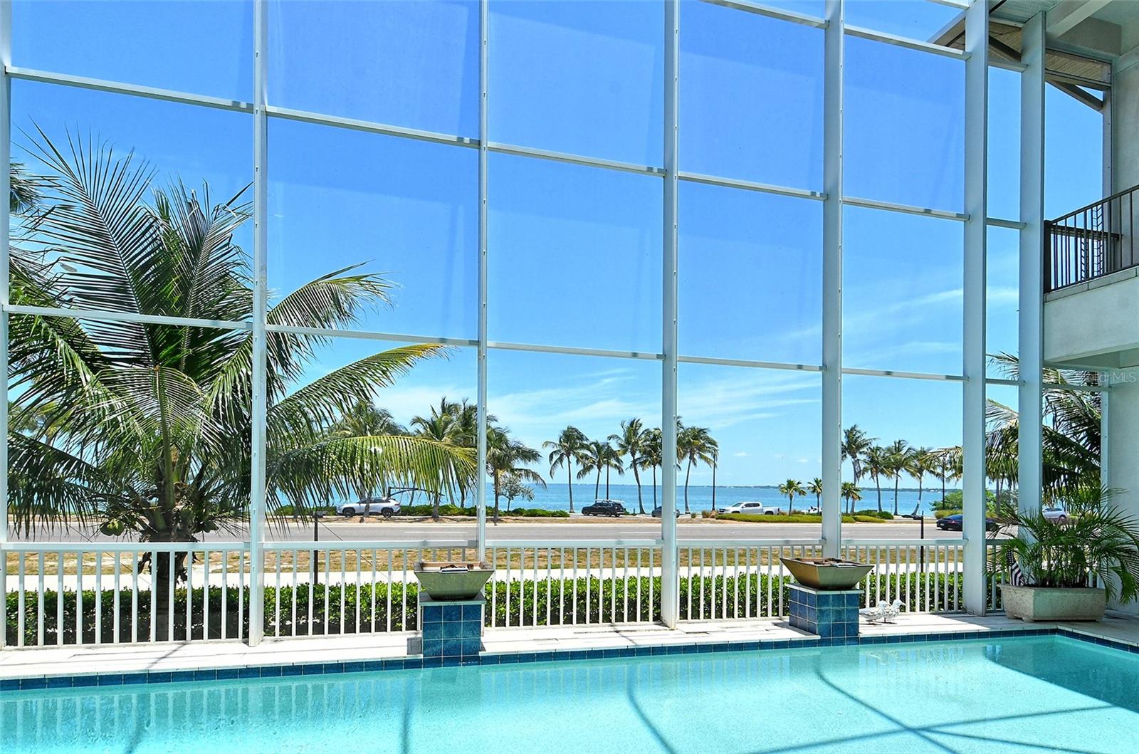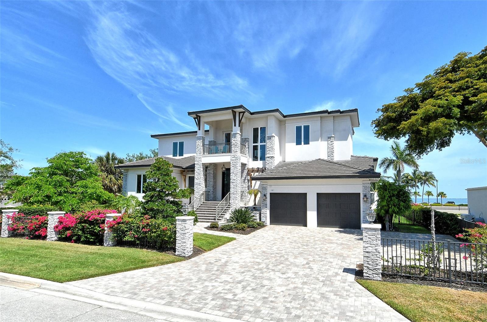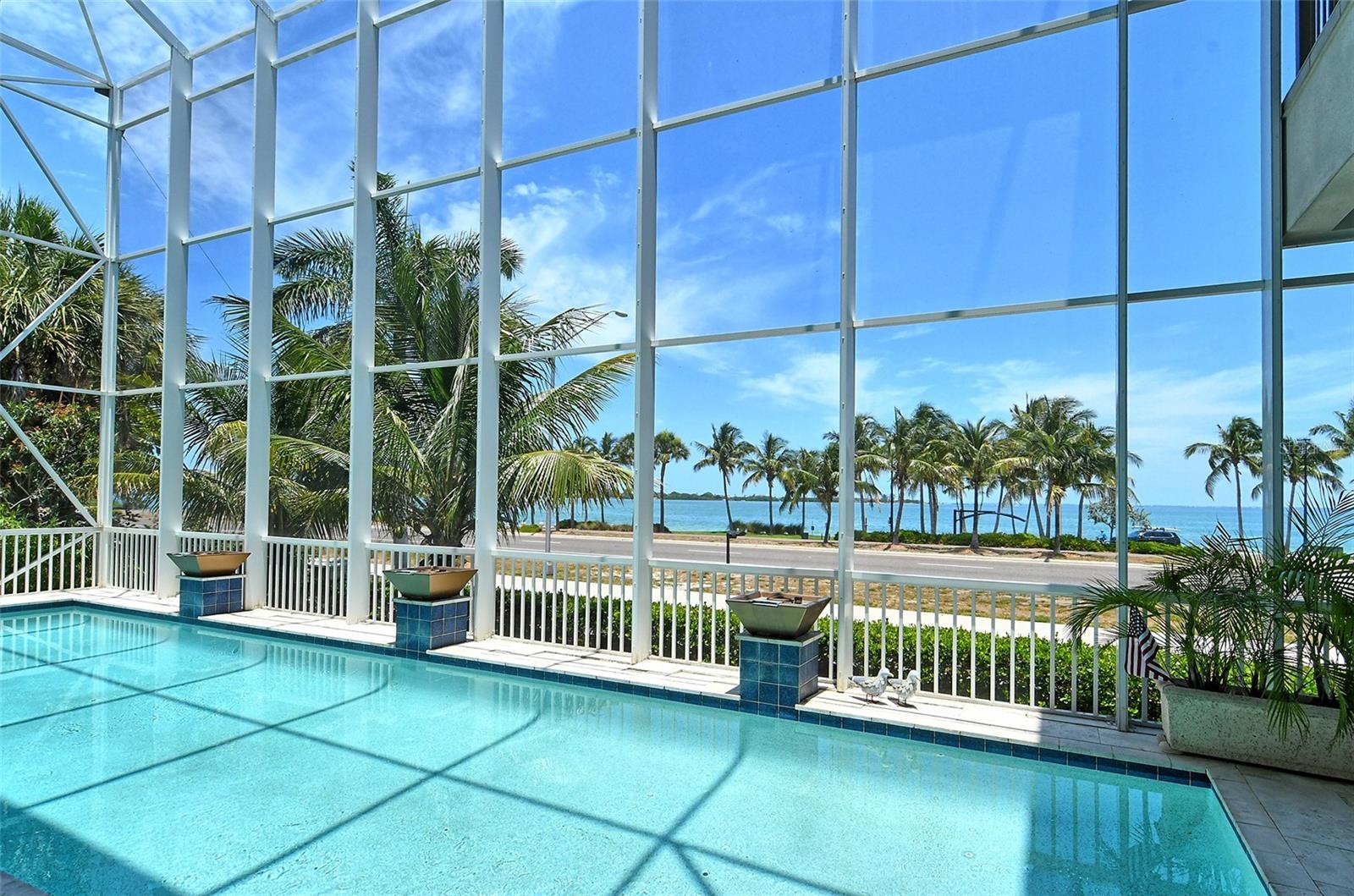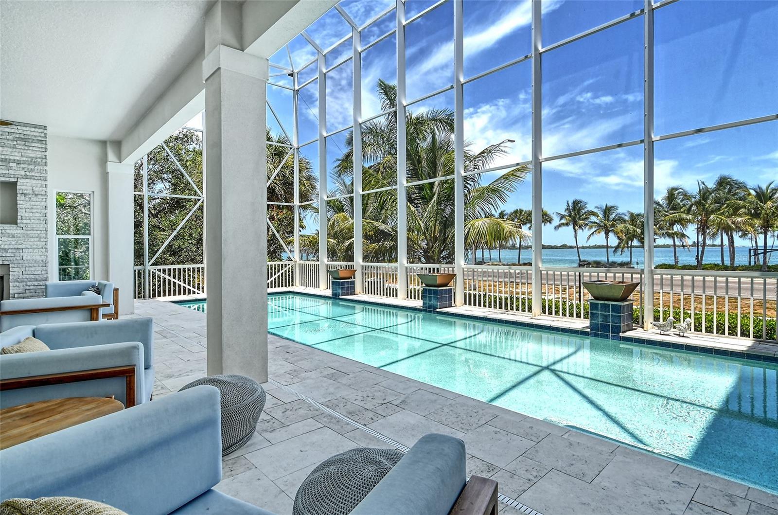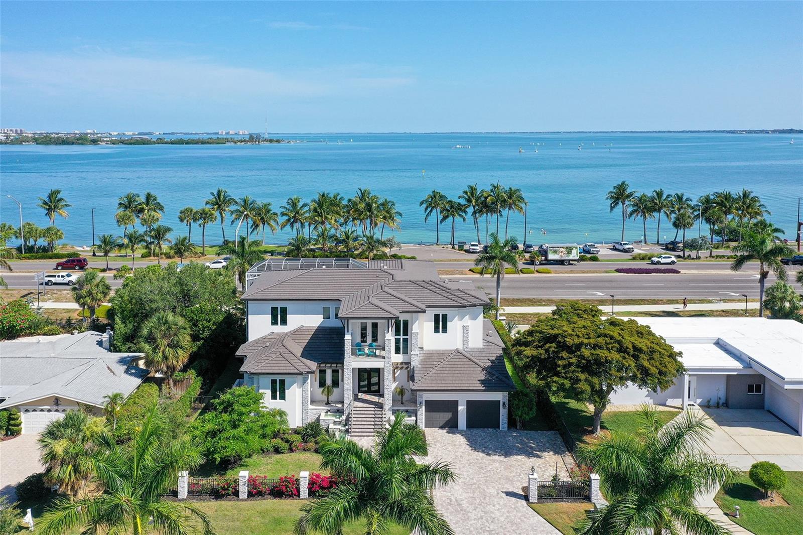 Luxurious Living Redefined on Bird Key! Welcome to the epitome of modern elegance! Step into this custom-designed "smart home" by John Cannon Homes, where beauty, simplicity, and sophistication converge to offer you the ultimate lifestyle experience. As you approach, be greeted by a mesmerizing cascading waterfall feature and enter through grand custom glass double doors into a marble foyer adorned with a contemporary chandelier. Towering 11'4" ceilings adorned with custom crown moldings guide you through the sleek marble floors of the first floor, leading seamlessly to an outdoor oasis boasting breathtaking views of Sarasota Bay. Indulge your culinary desires in the gourmet kitchen, equipped with top-of-the-line Viking appliances including a 48" Tuscany Range and a spacious quartz island perfect for family breakfasts or entertaining guests. Transition effortlessly to the expansive outdoor living space featuring two covered balconies, a two-story enclosed pool, and a fully equipped outdoor kitchen ideal for al fresco dining. This home is designed for relaxation and entertainment with spacious guest rooms offering tranquil retreats flooded with natural light. Upstairs, discover a second-floor great room with hardwood floors, wet bar, and balcony access, offering panoramic views of the bay and heated lap pool below. Unwind in the luxurious master suite featuring a personal spa area with a Kohler soaking tub, custom-tiled shower, and ample walk-in closets. With a second bedroom boasting an ensuite bathroom and balcony access, every corner of this home exudes comfort and style. Embrace the future with this technologically advanced smart home, granting you control of lighting, music, security, and more directly from your phone, no matter where you are in the world. Conveniently located just moments from St. Armand's Circle and Downtown Sarasota, indulge in the vibrant arts scene, epicurean delights, and pristine beaches that define life on Bird Key. Don't miss your chance to elevate your lifestyle and start living your best life in paradise. Schedule your private tour today and experience modern living redefined!