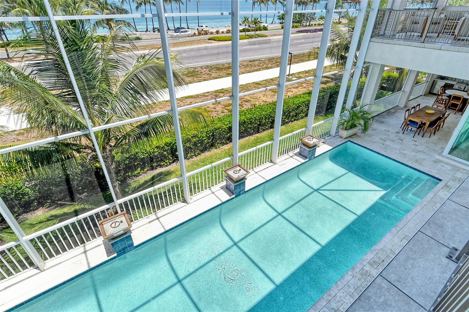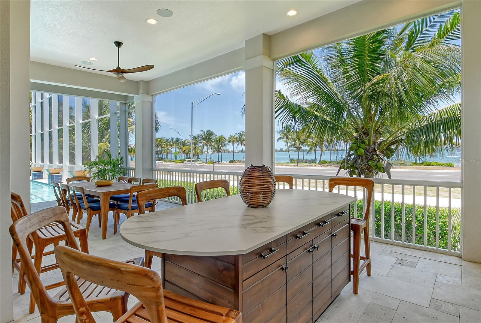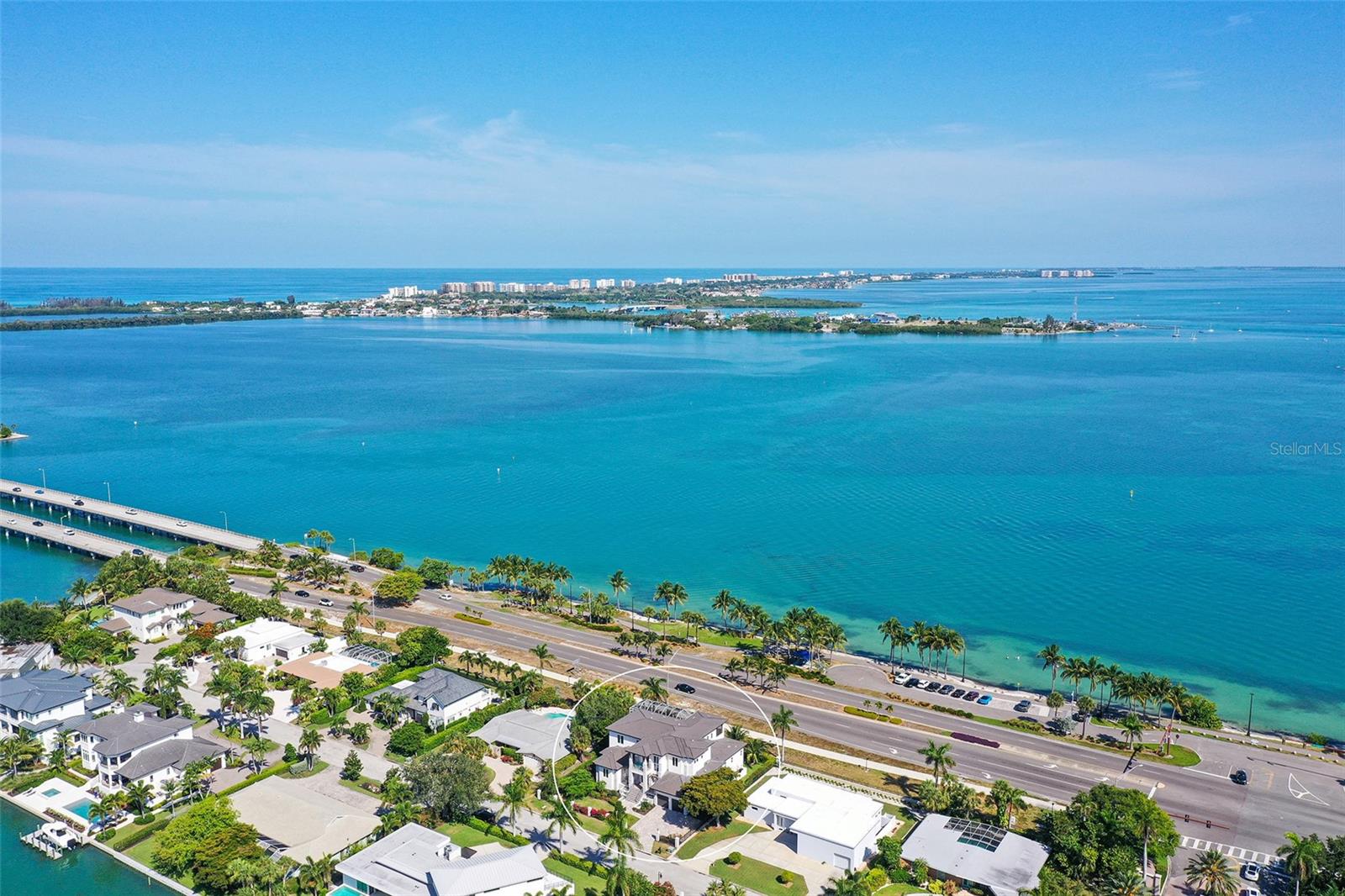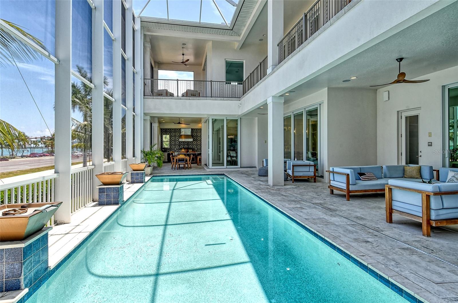 Luxurious Living Redefined on Bird Key! Welcome to the epitome of modern elegance! Step into this custom-designed "smart home" by John Cannon Homes, where beauty, simplicity, and sophistication converge to offer you the ultimate lifestyle experience. As you approach, be greeted by a mesmerizing cascading waterfall feature and enter through grand custom glass double doors into a marble foyer adorned with a contemporary chandelier. Towering 11'4" ceilings adorned with custom crown moldings guide you through the sleek marble floors of the first floor, leading seamlessly to an outdoor oasis boasting breathtaking views of Sarasota Bay. Indulge your culinary desires in the gourmet kitchen, equipped with top-of-the-line Viking appliances including a 48" Tuscany Range and a spacious quartz island perfect for family breakfasts or entertaining guests. Transition effortlessly to the expansive outdoor living space featuring two covered balconies, a two-story enclosed pool, and a fully equipped outdoor kitchen ideal for al fresco dining. This home is designed for relaxation and entertainment with spacious guest rooms offering tranquil retreats flooded with natural light. Upstairs, discover a second-floor great room with hardwood floors, wet bar, and balcony access, offering panoramic views of the bay and heated lap pool below. Unwind in the luxurious master suite featuring a personal spa area with a Kohler soaking tub, custom-tiled shower, and ample walk-in closets. With a second bedroom boasting an ensuite bathroom and balcony access, every corner of this home exudes comfort and style. Embrace the future with this technologically advanced smart home, granting you control of lighting, music, security, and more directly from your phone, no matter where you are in the world. Conveniently located just moments from St. Armand's Circle and Downtown Sarasota, indulge in the vibrant arts scene, epicurean delights, and pristine beaches that define life on Bird Key. Don't miss your chance to elevate your lifestyle and start living your best life in paradise. Schedule your private tour today and experience modern living redefined!