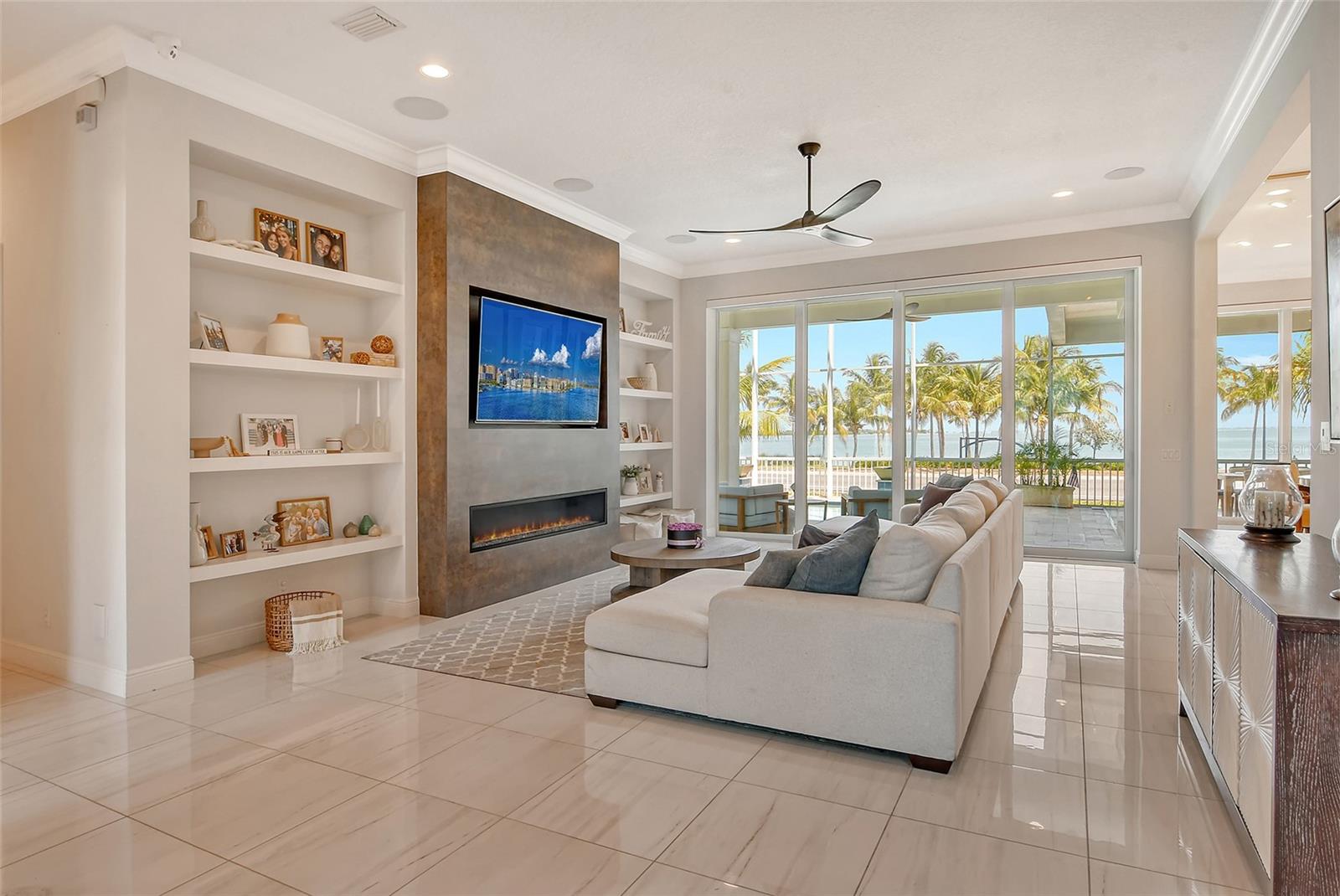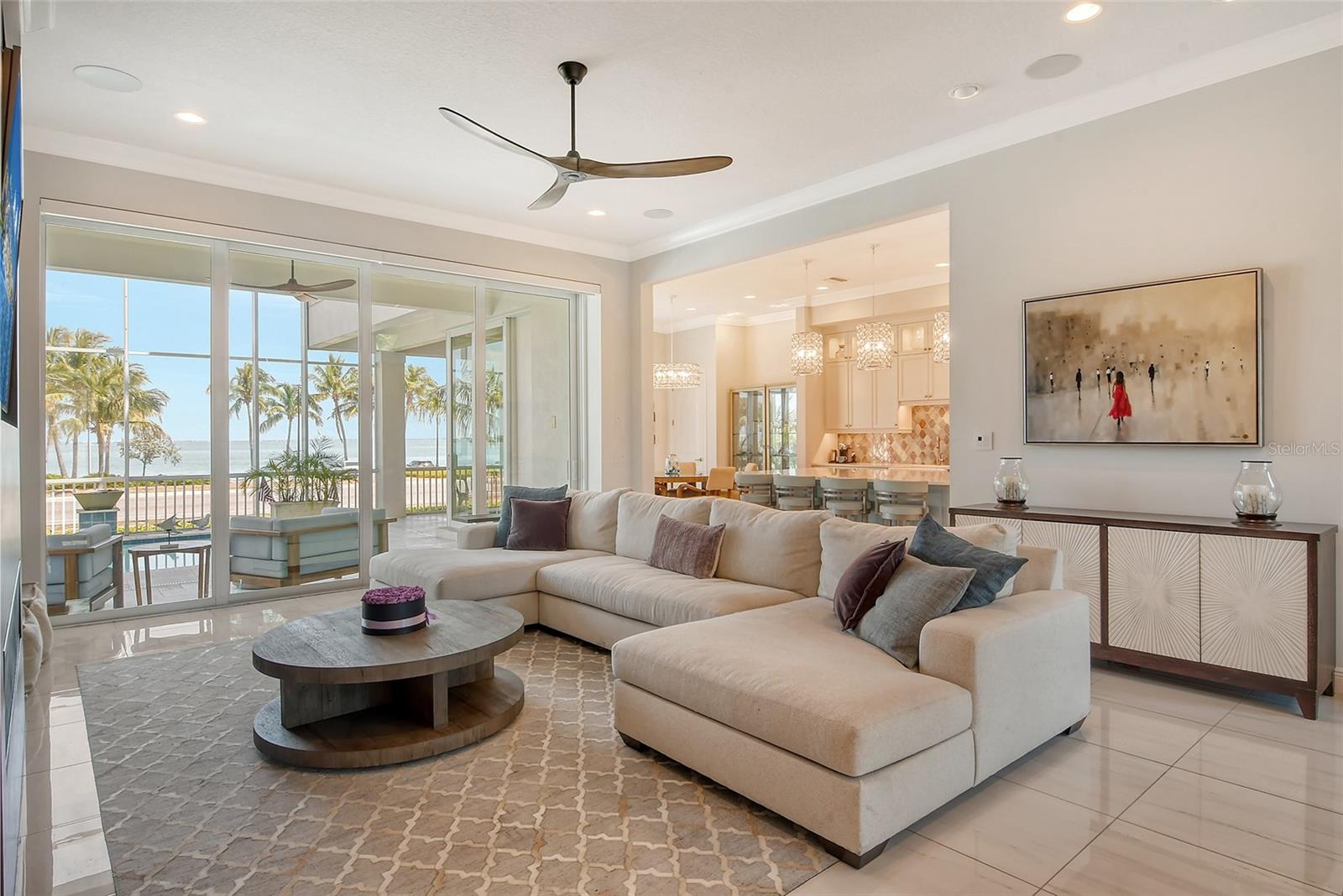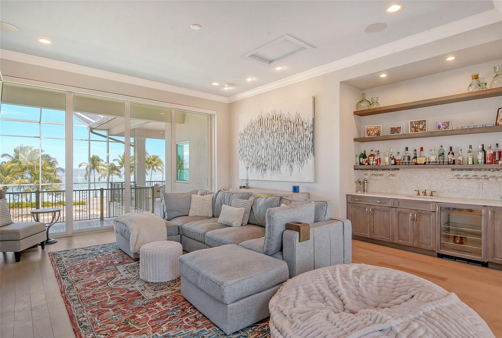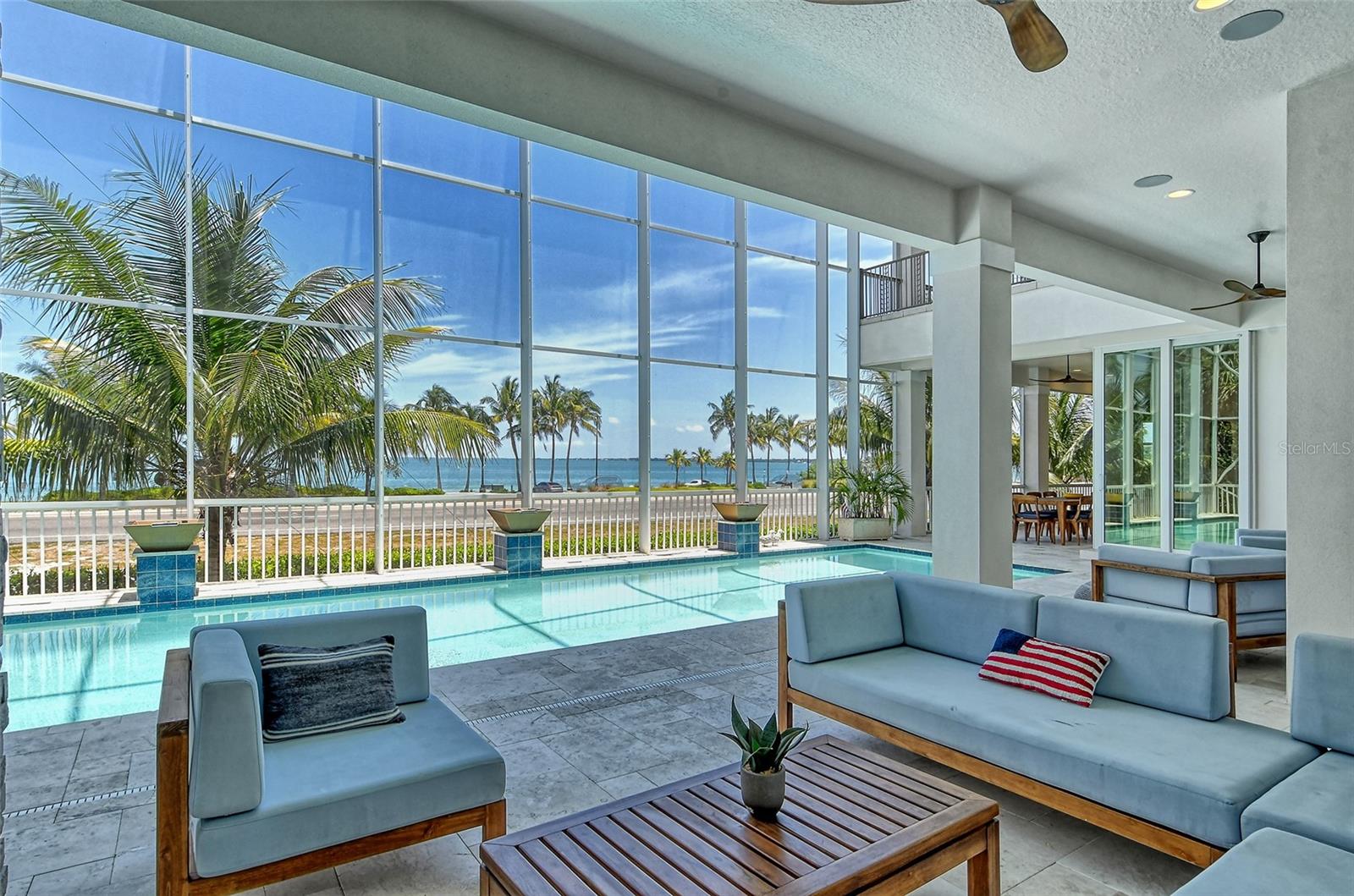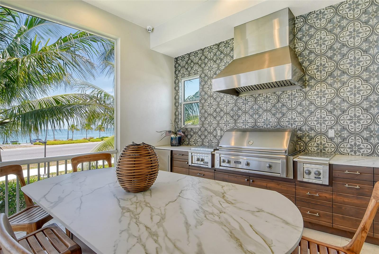 Luxurious Living Redefined on Bird Key! Welcome to the epitome of modern elegance! Step into this custom-designed "smart home" by John Cannon Homes, where beauty, simplicity, and sophistication converge to offer you the ultimate lifestyle experience. As you approach, be greeted by a mesmerizing cascading waterfall feature and enter through grand custom glass double doors into a marble foyer adorned with a contemporary chandelier. Towering 11'4" ceilings adorned with custom crown moldings guide you through the sleek marble floors of the first floor, leading seamlessly to an outdoor oasis boasting breathtaking views of Sarasota Bay. Indulge your culinary desires in the gourmet kitchen, equipped with top-of-the-line Viking appliances including a 48" Tuscany Range and a spacious quartz island perfect for family breakfasts or entertaining guests. Transition effortlessly to the expansive outdoor living space featuring two covered balconies, a two-story enclosed pool, and a fully equipped outdoor kitchen ideal for al fresco dining. This home is designed for relaxation and entertainment with spacious guest rooms offering tranquil retreats flooded with natural light. Upstairs, discover a second-floor great room with hardwood floors, wet bar, and balcony access, offering panoramic views of the bay and heated lap pool below. Unwind in the luxurious master suite featuring a personal spa area with a Kohler soaking tub, custom-tiled shower, and ample walk-in closets. With a second bedroom boasting an ensuite bathroom and balcony access, every corner of this home exudes comfort and style. Embrace the future with this technologically advanced smart home, granting you control of lighting, music, security, and more directly from your phone, no matter where you are in the world. Conveniently located just moments from St. Armand's Circle and Downtown Sarasota, indulge in the vibrant arts scene, epicurean delights, and pristine beaches that define life on Bird Key. Don't miss your chance to elevate your lifestyle and start living your best life in paradise. Schedule your private tour today and experience modern living redefined!