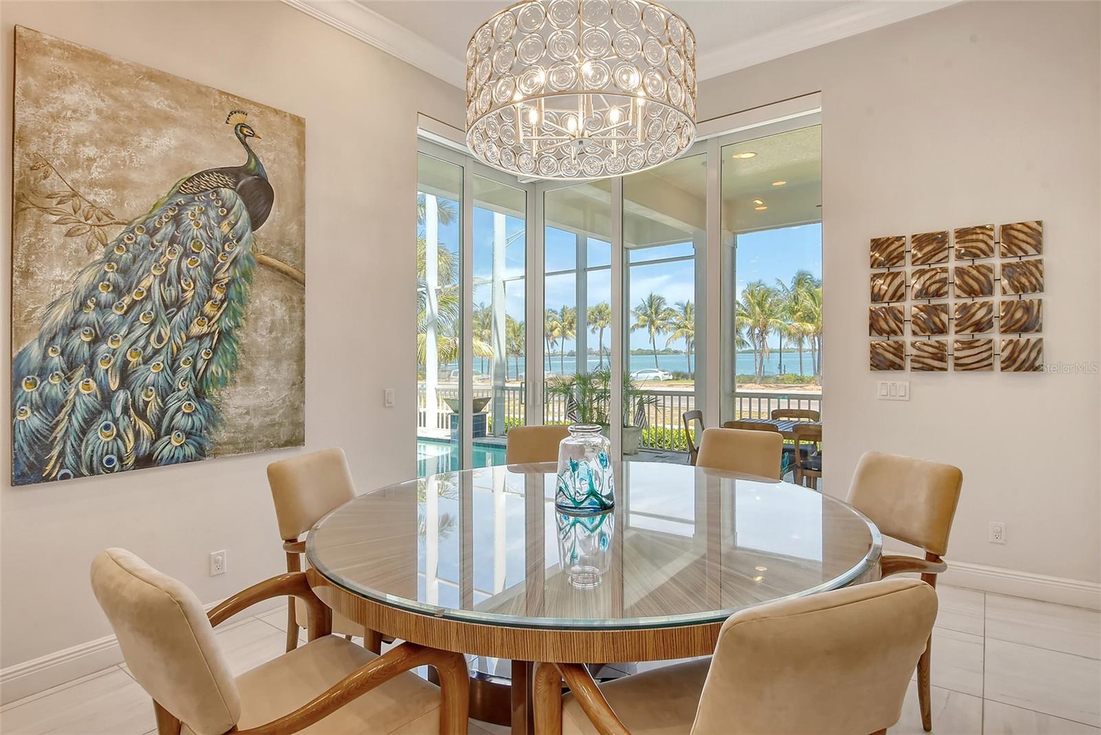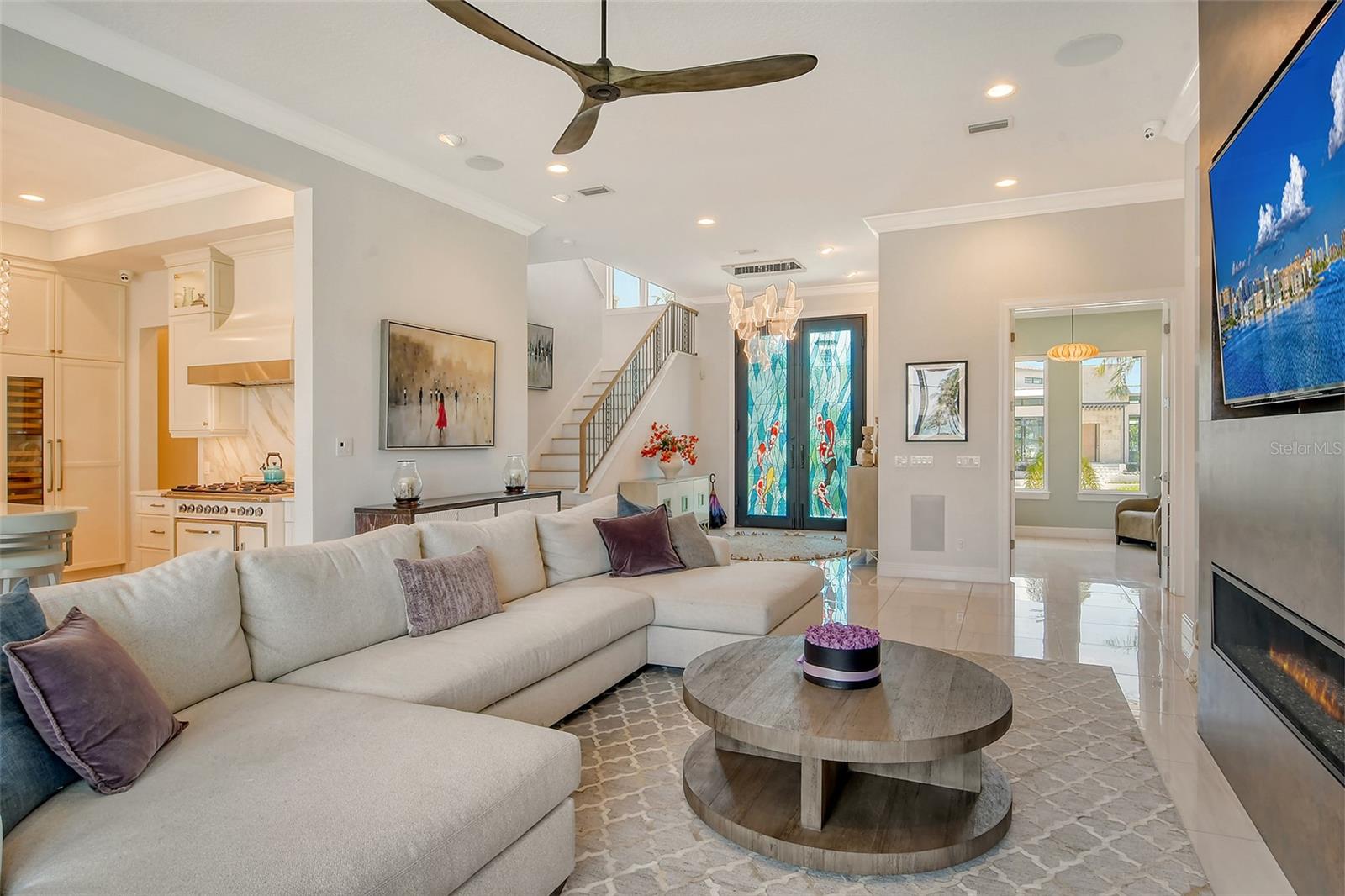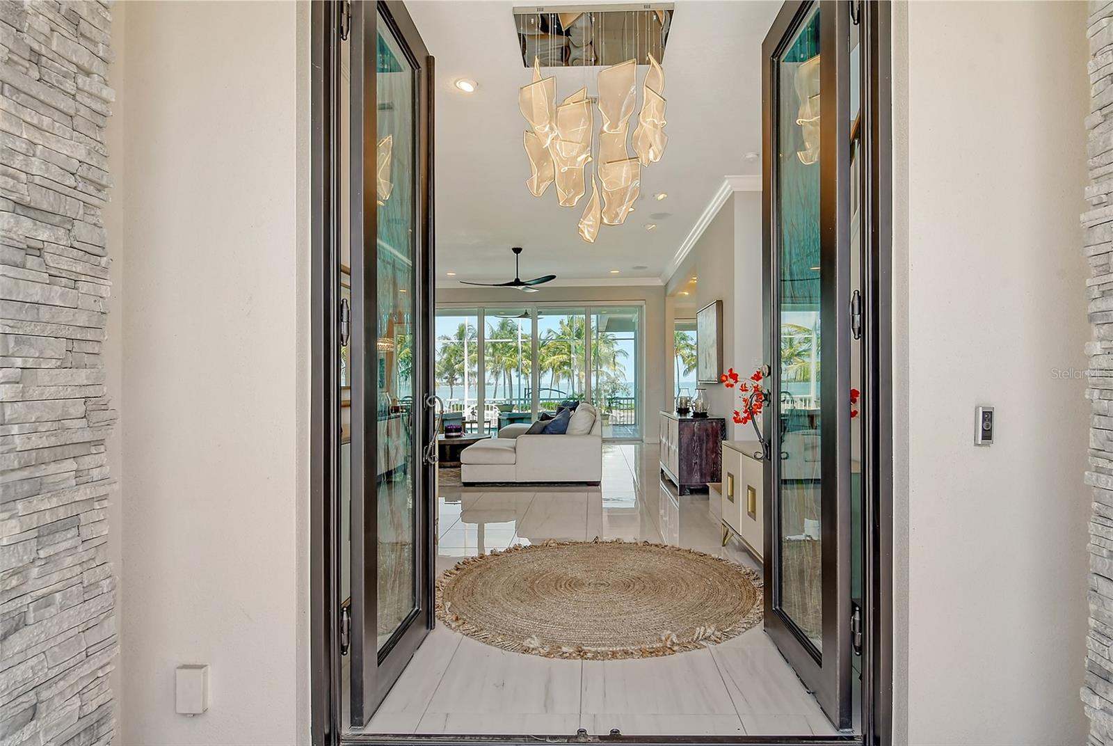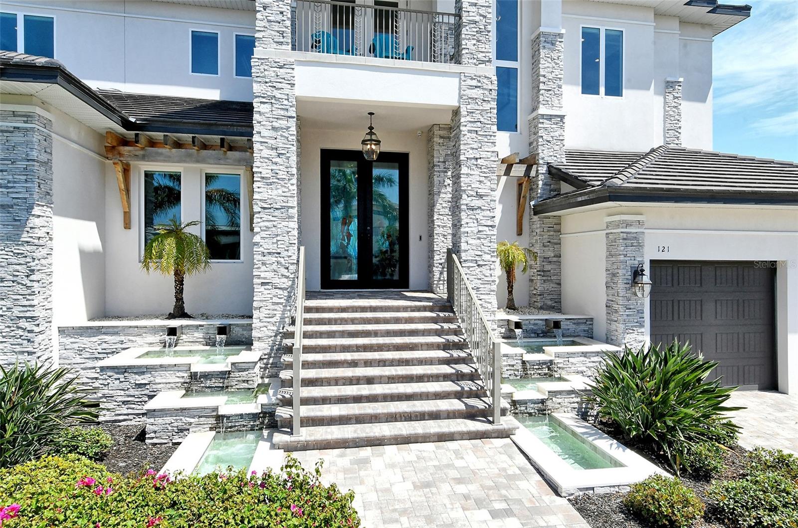 Luxurious Living Redefined on Bird Key! Welcome to the epitome of modern elegance! Step into this custom-designed "smart home" by John Cannon Homes, where beauty, simplicity, and sophistication converge to offer you the ultimate lifestyle experience. As you approach, be greeted by a mesmerizing cascading waterfall feature and enter through grand custom glass double doors into a marble foyer adorned with a contemporary chandelier. Towering 11'4" ceilings adorned with custom crown moldings guide you through the sleek marble floors of the first floor, leading seamlessly to an outdoor oasis boasting breathtaking views of Sarasota Bay. Indulge your culinary desires in the gourmet kitchen, equipped with top-of-the-line Viking appliances including a 48" Tuscany Range and a spacious quartz island perfect for family breakfasts or entertaining guests. Transition effortlessly to the expansive outdoor living space featuring two covered balconies, a two-story enclosed pool, and a fully equipped outdoor kitchen ideal for al fresco dining. This home is designed for relaxation and entertainment with spacious guest rooms offering tranquil retreats flooded with natural light. Upstairs, discover a second-floor great room with hardwood floors, wet bar, and balcony access, offering panoramic views of the bay and heated lap pool below. Unwind in the luxurious master suite featuring a personal spa area with a Kohler soaking tub, custom-tiled shower, and ample walk-in closets. With a second bedroom boasting an ensuite bathroom and balcony access, every corner of this home exudes comfort and style. Embrace the future with this technologically advanced smart home, granting you control of lighting, music, security, and more directly from your phone, no matter where you are in the world. Conveniently located just moments from St. Armand's Circle and Downtown Sarasota, indulge in the vibrant arts scene, epicurean delights, and pristine beaches that define life on Bird Key. Don't miss your chance to elevate your lifestyle and start living your best life in paradise. Schedule your private tour today and experience modern living redefined!