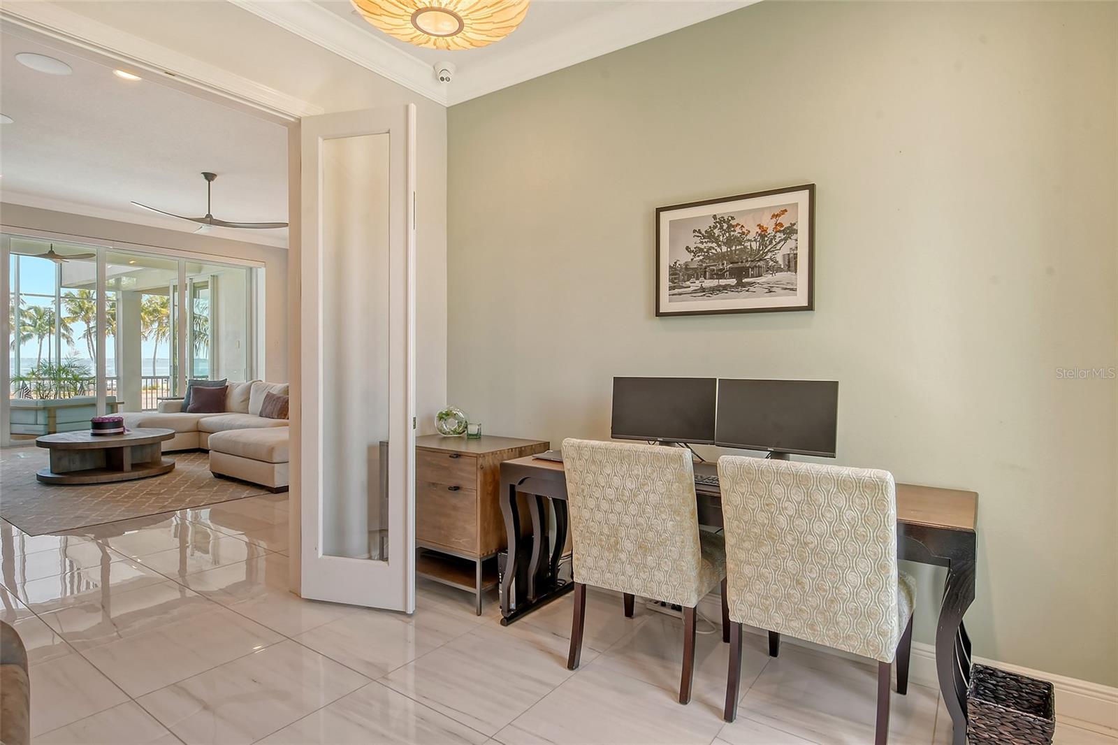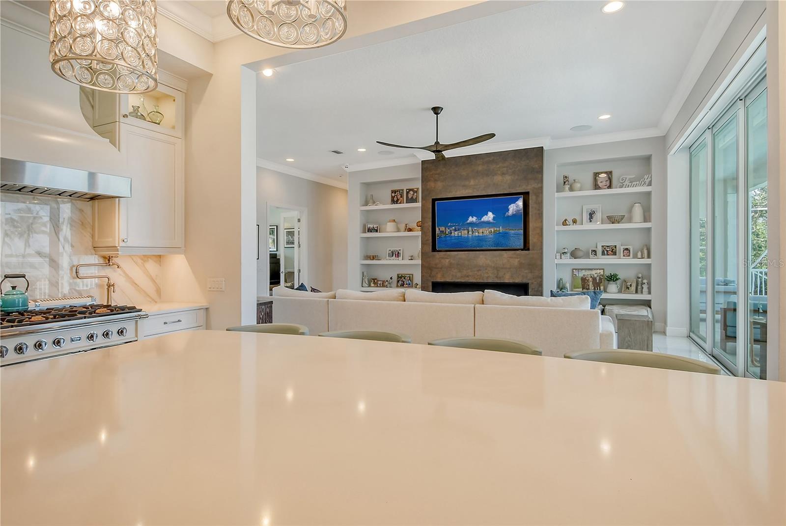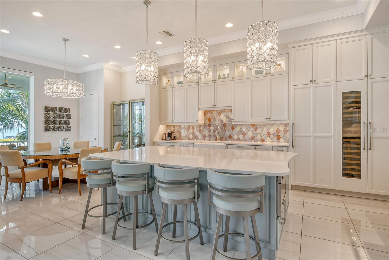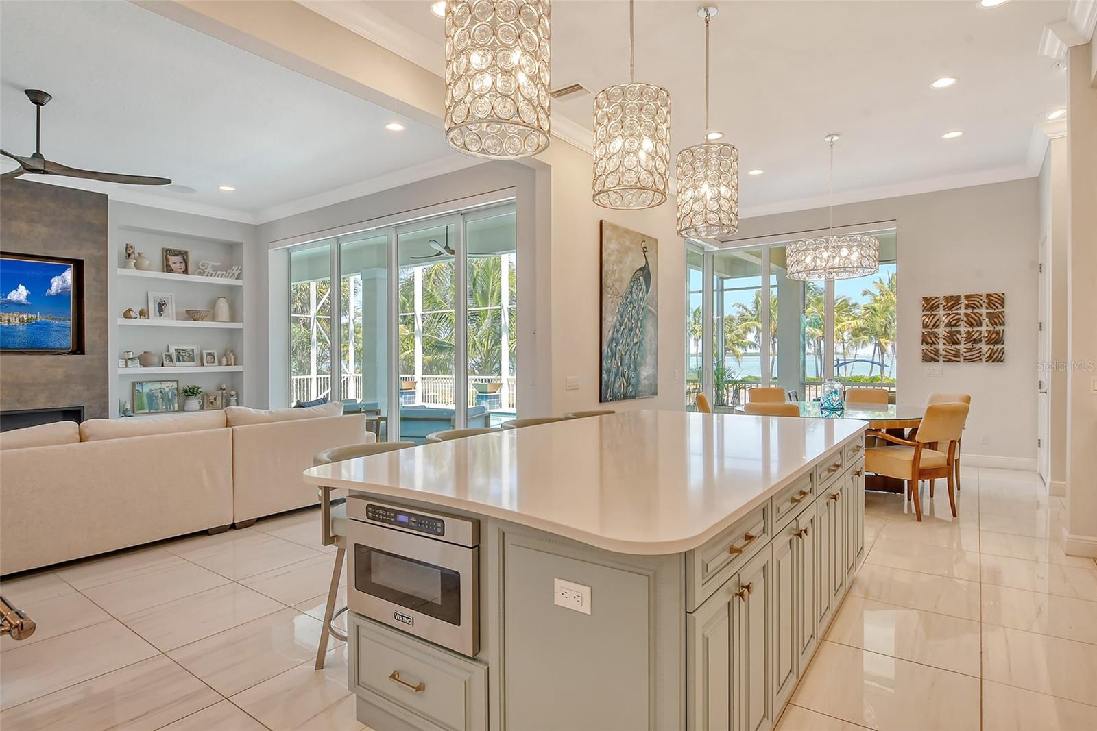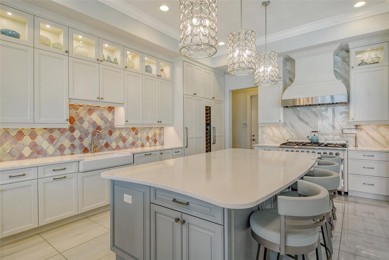 Luxurious Living Redefined on Bird Key! Welcome to the epitome of modern elegance! Step into this custom-designed "smart home" by John Cannon Homes, where beauty, simplicity, and sophistication converge to offer you the ultimate lifestyle experience. As you approach, be greeted by a mesmerizing cascading waterfall feature and enter through grand custom glass double doors into a marble foyer adorned with a contemporary chandelier. Towering 11'4" ceilings adorned with custom crown moldings guide you through the sleek marble floors of the first floor, leading seamlessly to an outdoor oasis boasting breathtaking views of Sarasota Bay. Indulge your culinary desires in the gourmet kitchen, equipped with top-of-the-line Viking appliances including a 48" Tuscany Range and a spacious quartz island perfect for family breakfasts or entertaining guests. Transition effortlessly to the expansive outdoor living space featuring two covered balconies, a two-story enclosed pool, and a fully equipped outdoor kitchen ideal for al fresco dining. This home is designed for relaxation and entertainment with spacious guest rooms offering tranquil retreats flooded with natural light. Upstairs, discover a second-floor great room with hardwood floors, wet bar, and balcony access, offering panoramic views of the bay and heated lap pool below. Unwind in the luxurious master suite featuring a personal spa area with a Kohler soaking tub, custom-tiled shower, and ample walk-in closets. With a second bedroom boasting an ensuite bathroom and balcony access, every corner of this home exudes comfort and style. Embrace the future with this technologically advanced smart home, granting you control of lighting, music, security, and more directly from your phone, no matter where you are in the world. Conveniently located just moments from St. Armand's Circle and Downtown Sarasota, indulge in the vibrant arts scene, epicurean delights, and pristine beaches that define life on Bird Key. Don't miss your chance to elevate your lifestyle and start living your best life in paradise. Schedule your private tour today and experience modern living redefined!