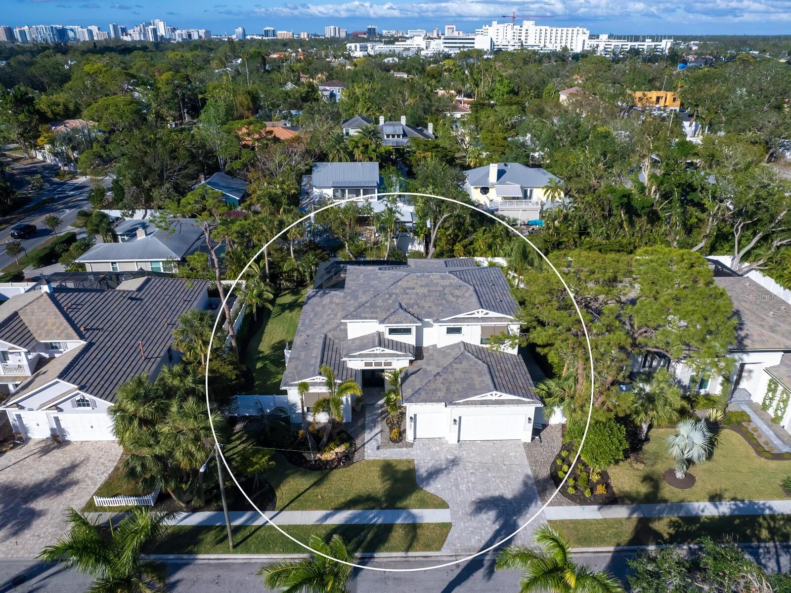 The "St. Michael" is Allegra Homes' award-winning 2025 model home, ideally situated just south of downtown Sarasota's cultural hub in the highly coveted West of Trail area, where residents truly appreciate the exceptional community they call home. Prepare to be captivated by the seamless fusion of modern design, artful nuances, and stylish sophistication. Every detail has been curated to create an inviting ambiance of gracious family living for years to come. This Coastal 4 bedroom, 4.5 bath luxury property spans 3,970 sq. ft. of open living offering unrivaled comfort and tranquility. Giving the home a feeling of expansiveness, the grand foyer opens to reveal the great room's 2-story wood-beamed ceiling highlighted by a gorgeous chandelier. Clerestory windows fill this room with natural light and 2 glass sliders frames the alluring outdoor living area, inviting the outside in. The entire back of the home is dedicated to the screen enclosed space offering a heated saltwater pool/spa, covered dining and lounging areas with large screen TV, and year-round kitchen with deluxe cooking amenities. While enjoying a glass of wine, the evening sky hosts unforgettable sunsets painted in vibrant hues of yellow, red and orange. This fascinating oasis is accessible through a wall of glass sliders from the bonus room offering a wet bar and pool bath. The backyard is fenced for privacy and safety, and the lush landscape has been professionally designed and executed to perfection. An elaborate island kitchen is specially-equipped with the best in luxury appliances and will satisfy every desire of your home chef. The aptly sized dining room with a built-in buffet and lovely pool view will become a favorite spot to savor time spent with family and friends. The primary suite with adjoining study is a true retreat from the ordinary with an amazing drop tray tongue-and-grove ceiling, relaxed sitting area, direct access to the pool, expansive walk-in closet, separate double vanities, and a tastefully tiled stall encompassing both a rainfall shower and glamorous soaking tub within its 8 ft. glass walls. The elegant staircase with floating steps and glass railing takes you to a second bonus room, 2 additional bedrooms and a bath. So many other great features are included like a 3-car garage, custom light fixtures and fan, hurricane impact Low-E windows and sliding doors, stone faced TV wall in great room flanked on both sides with beautifully lit glass shelves, separate A/C system for the owner's wing, optional elevator shaft or wine room, paver drive and walks, hidden pantry and irrigation system. For families with elementary age children, it's just a short walk or bike ride to top-ranked Southside School. Their exemplary academic achievements have garnered them as a National Blue Ribbon School. You'll love to explore nearby Southside Village, a stroll-around shopping district where you'll discover an eclectic blend of galleries, trendy boutiques, a popular gourmet market, and restaurants and taverns with sidewalk seating. This fresh and newly built residence is the outstanding creativity and vision of Sarasota's premier custom builder, Allegra Homes. 1827 Morris Street is truly a unique opportunity among Sarasota's new luxury home market and must be experienced in person to be fully appreciated.