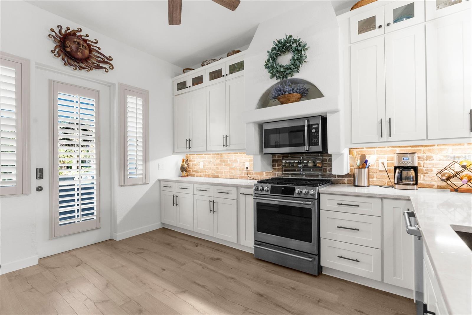 - Exterior: Hurricane Shutters, Lighting, Outdoor Grill, Private Mailbox, Rain Gutters, Sidewalk, Sliding Doors