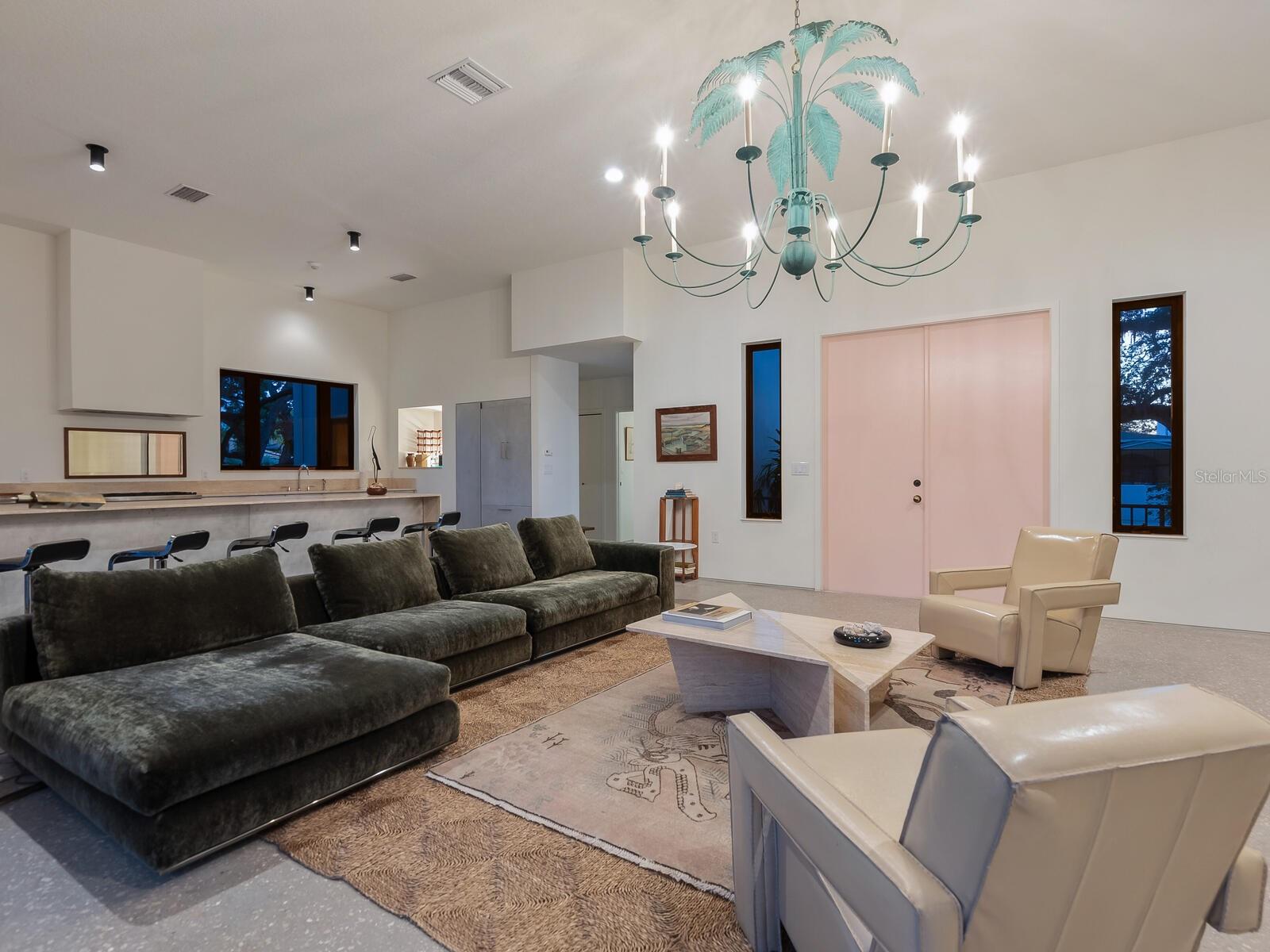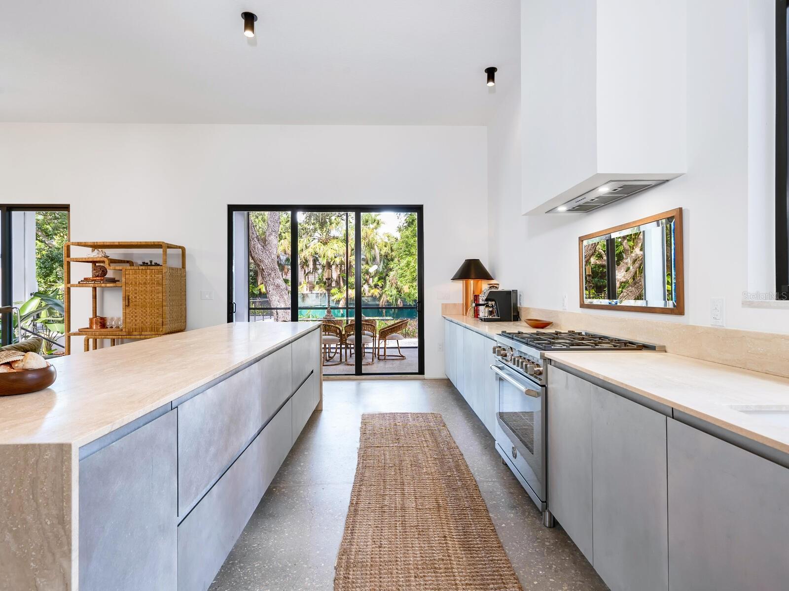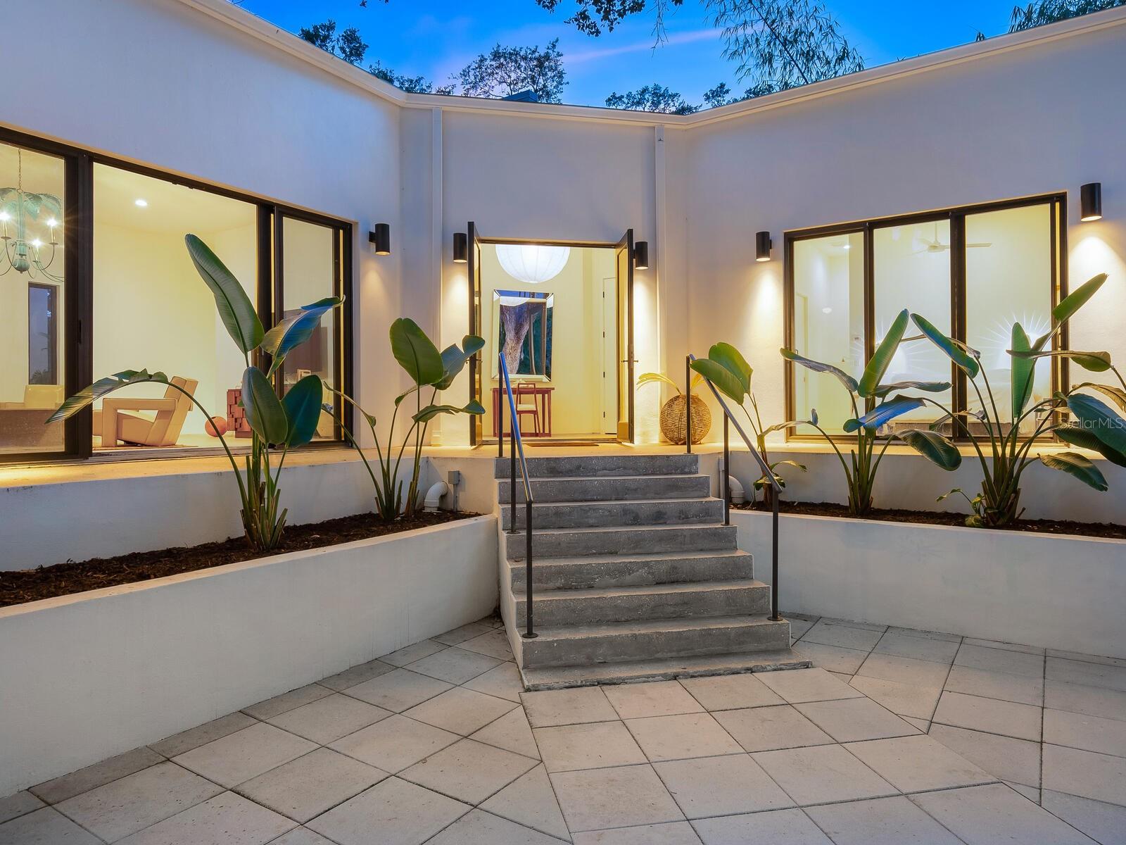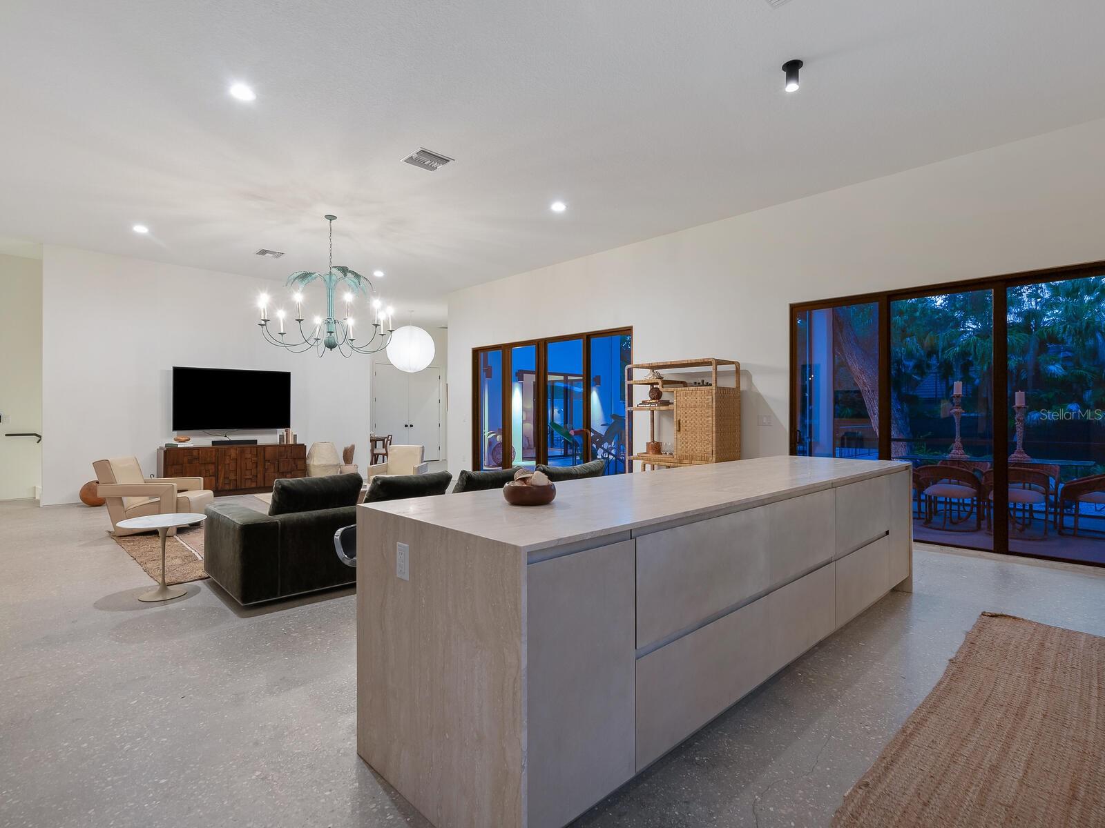Villa Coquina is a luxurious, modern residence in the exclusive Oyster Bay neighborhood. Built in 2006 by architect Jack Jetton, one of the original members of the Sarasota School of Architecture, it blends the iconic Sarasota School style with modern construction, featuring steel reinforced concrete walls, hurricane impact windows, and a raised/ventilated foundation. The fenced and gated property spans almost half an acre and includes tropical landscaping, ancient live oaks, and a heated salt-water pool creating your own private tropical modern resort. This home offers nearly 3,400 sq ft of space, including 2,400 sq feet of interior space, with 3 bedrooms, 3 bathrooms, and an open floor plan designed to bring the outdoors in, with 12' ceilings and walls of glass. The home was fully renovated in 2023 by architect Daniel Lear, with updates to electrical, plumbing, HVAC, cabinetry, counters, roof, and the addition of a third bedroom and bathroom. Interiors by designer Blair Moritz feature high-end finishes like Water Works plumbing, Bertazzoni appliances, Italian travertine counters, Reform European Cabinetry, and vintage lighting. Every single detail was completed with the highest quality craftsmanship, perhaps especially the original seashell concrete floors which were lovingly restored to enhance the properties midcentury modern roots.The property also allows for future expansion, including the potential for a third-story ocean-view deck already engineered into the 2nd story. Villa Coquina offers a rare combination of modern luxury, climate proof construction, architectural history, and a prime Sarasota location near shopping, schools, beaches, and nightlife.