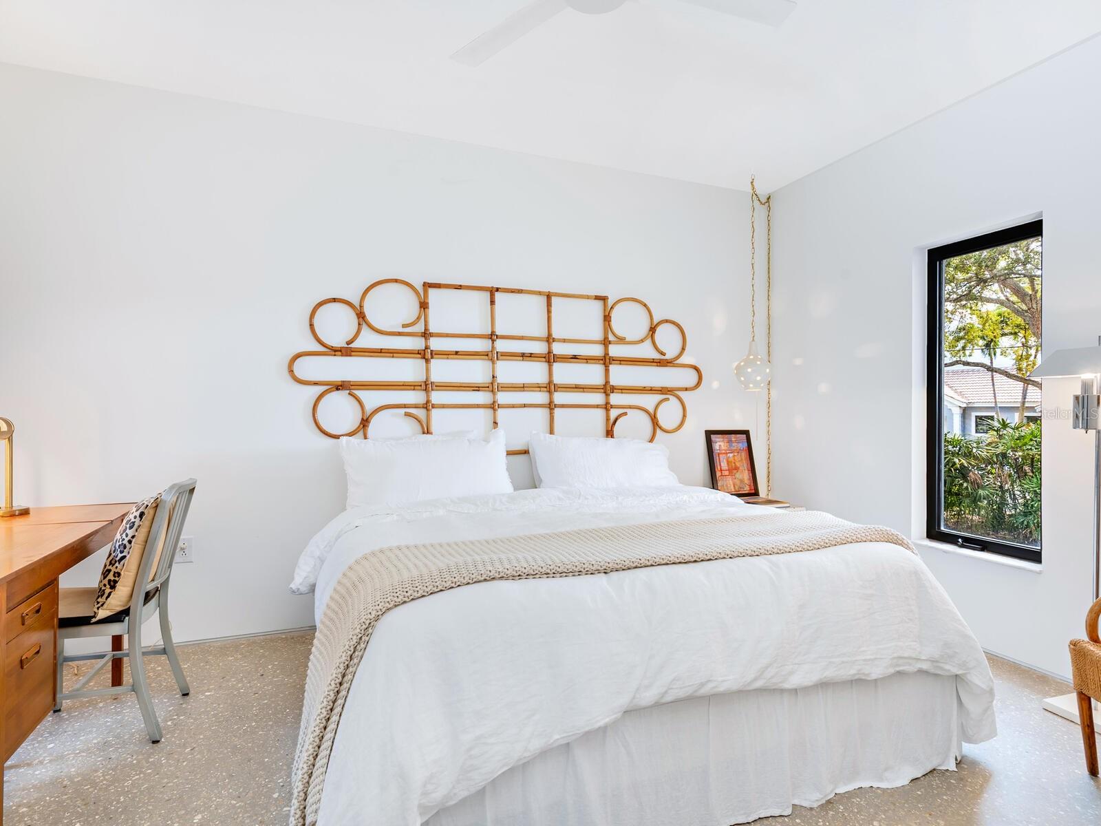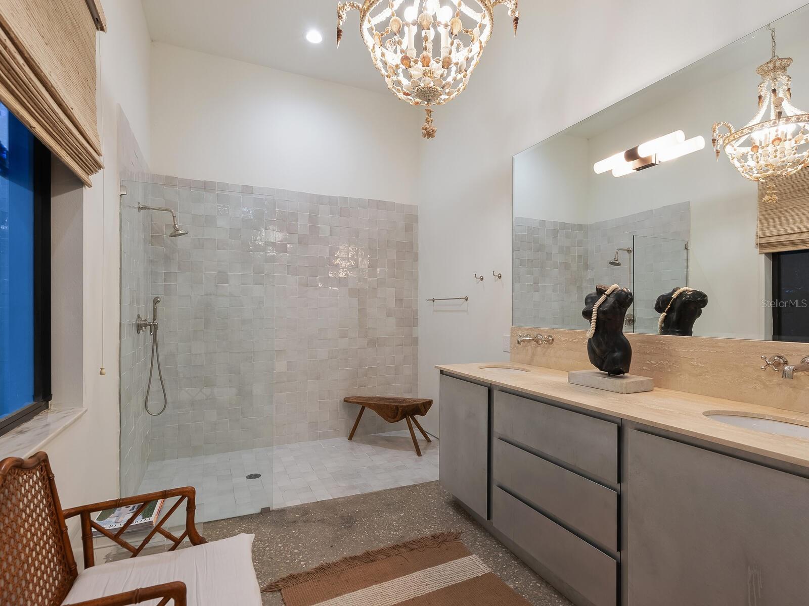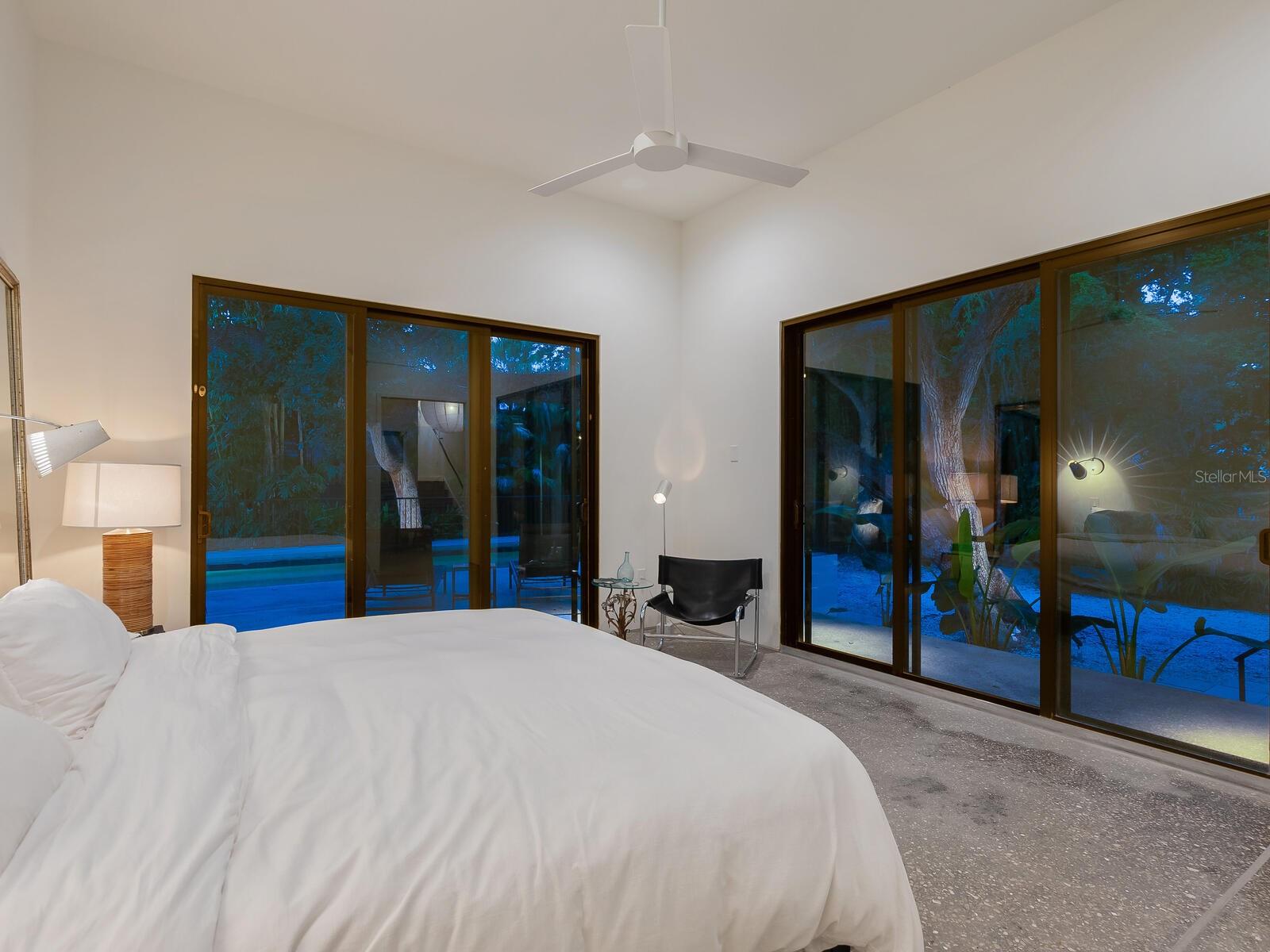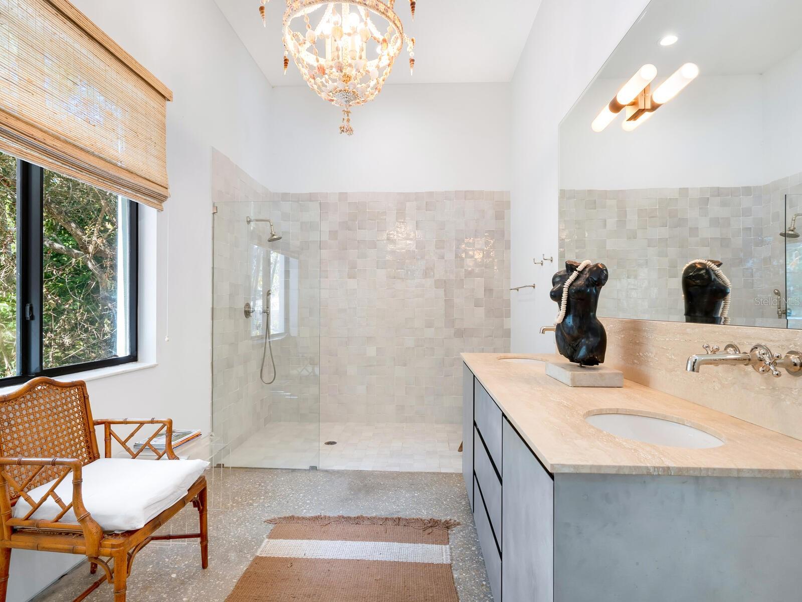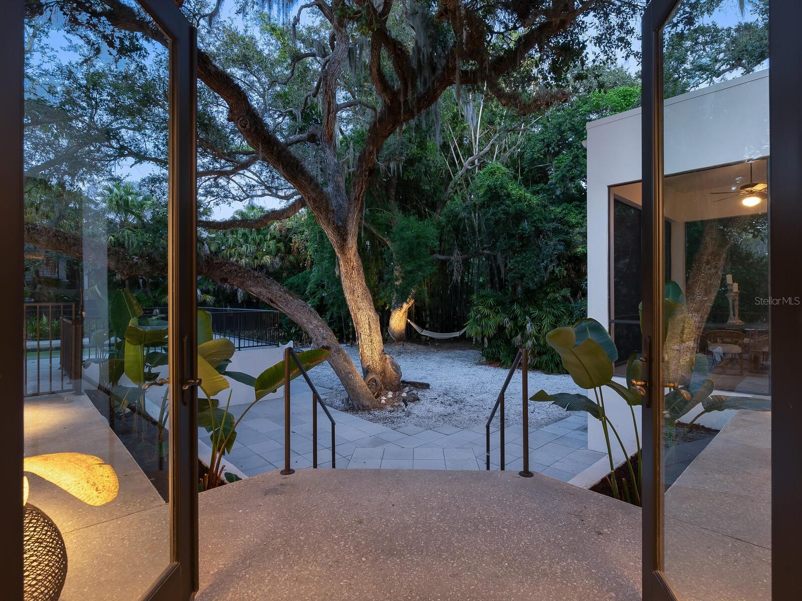 Villa Coquina is a luxurious, modern residence in the exclusive Oyster Bay neighborhood. Built in 2006 by architect Jack Jetton, one of the original members of the Sarasota School of Architecture, it blends the iconic Sarasota School style with modern construction, featuring steel reinforced concrete walls, hurricane impact windows, and a raised/ventilated foundation. The fenced and gated property spans almost half an acre and includes tropical landscaping, ancient live oaks, and a heated salt-water pool creating your own private tropical modern resort. This home offers nearly 3,400 sq ft of space, including 2,400 sq feet of interior space, with 3 bedrooms, 3 bathrooms, and an open floor plan designed to bring the outdoors in, with 12' ceilings and walls of glass. The home was fully renovated in 2023 by architect Daniel Lear, with updates to electrical, plumbing, HVAC, cabinetry, counters, roof, and the addition of a third bedroom and bathroom. Interiors by designer Blair Moritz feature high-end finishes like Water Works plumbing, Bertazzoni appliances, Italian travertine counters, Reform European Cabinetry, and vintage lighting. Every single detail was completed with the highest quality craftsmanship, perhaps especially the original seashell concrete floors which were lovingly restored to enhance the properties midcentury modern roots.The property also allows for future expansion, including the potential for a third-story ocean-view deck already engineered into the 2nd story. Villa Coquina offers a rare combination of modern luxury, climate proof construction, architectural history, and a prime Sarasota location near shopping, schools, beaches, and nightlife.