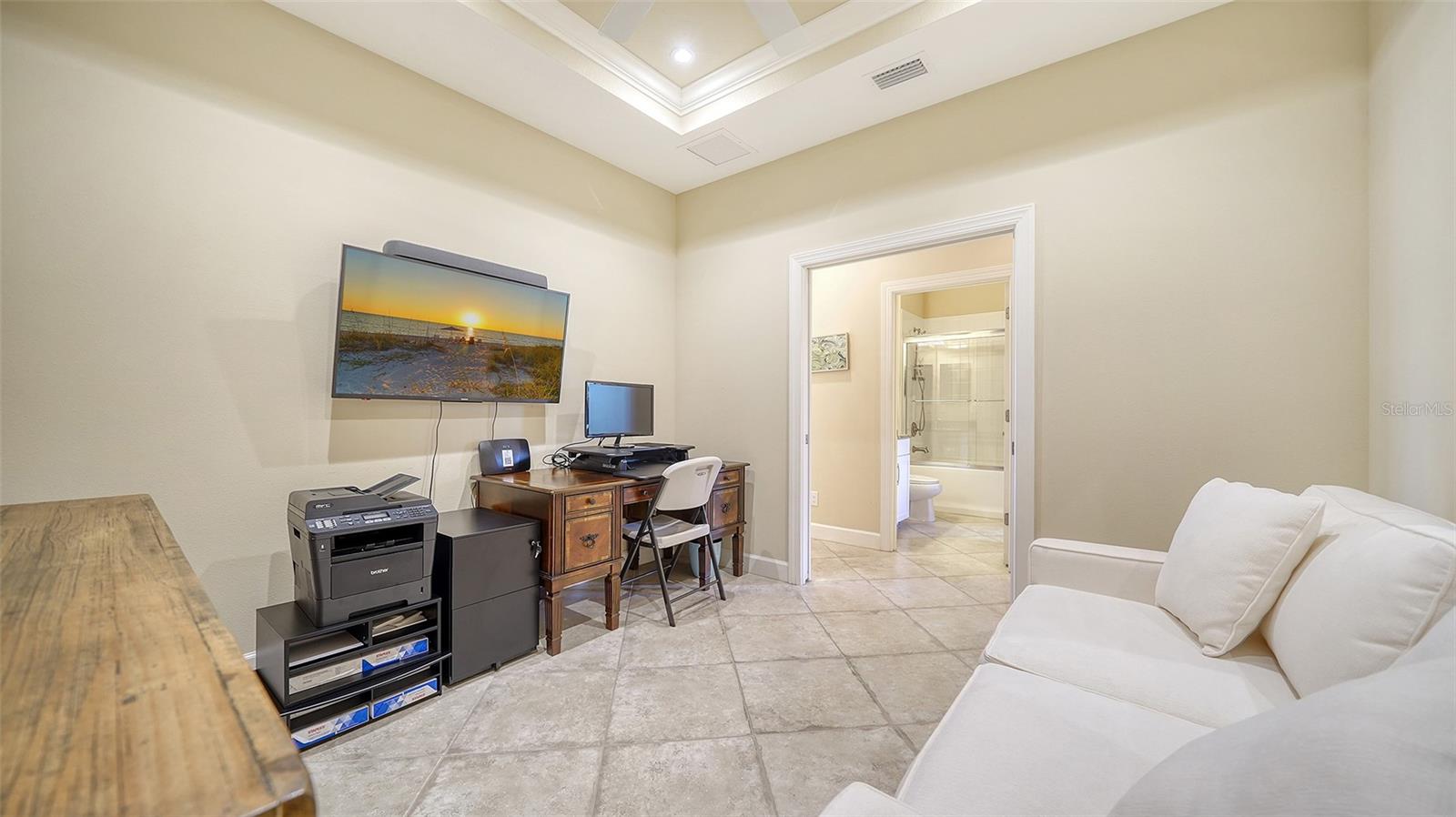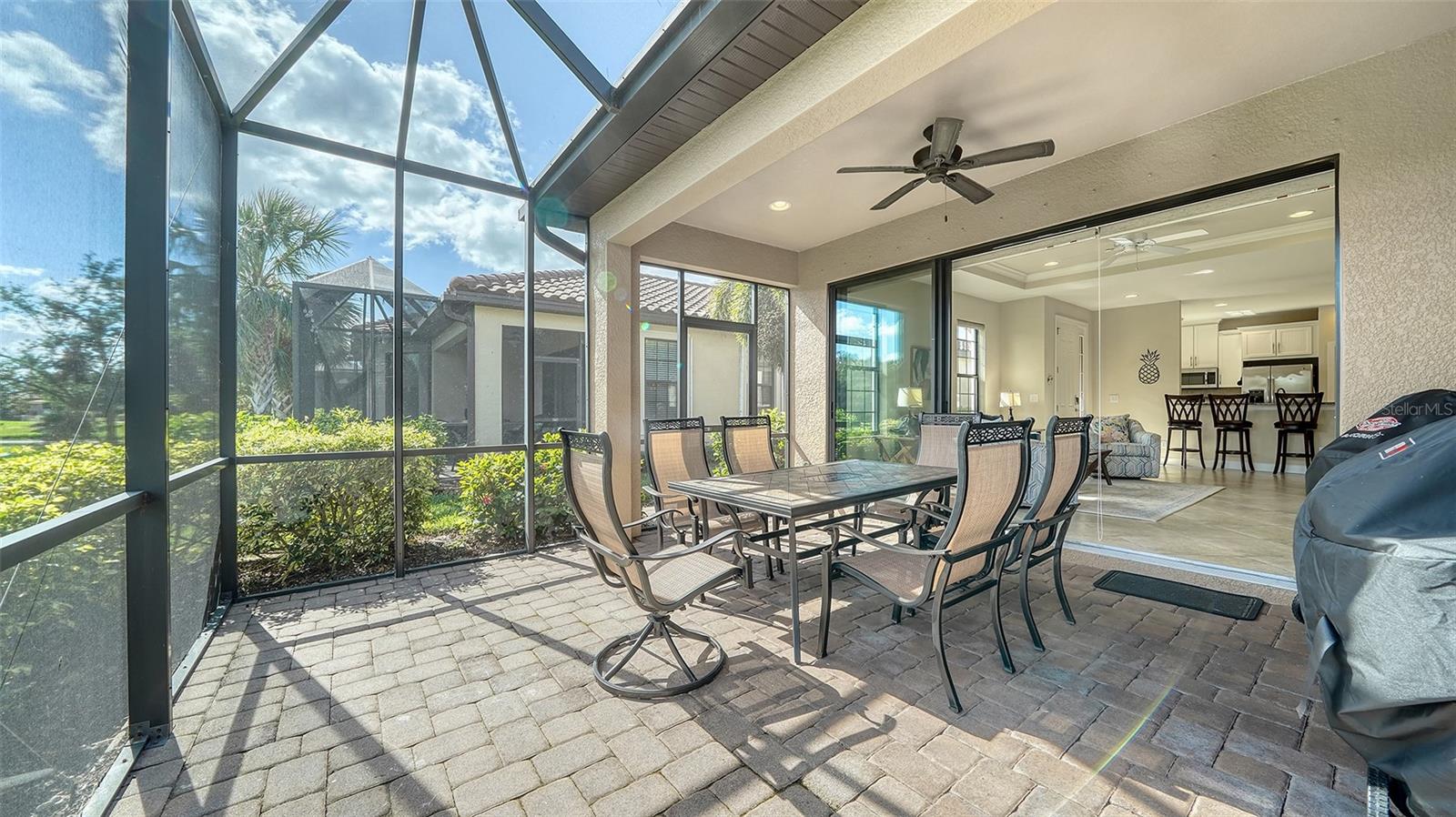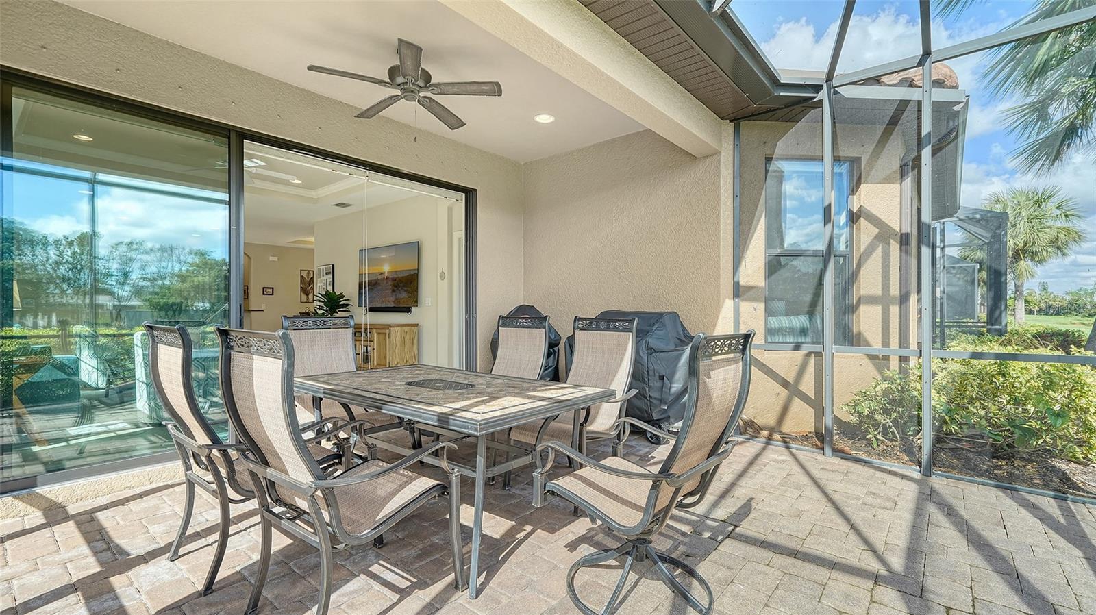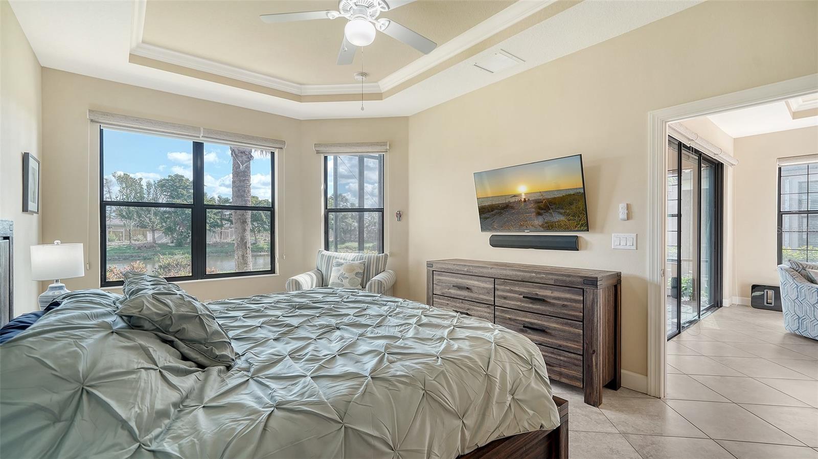 Welcome to the coveted Esplanade by Siesta Key, where convenience meets luxury living. This comfortable maintenance-free villa offers pond views and an extended lanai, providing the perfect space for outdoor relaxation and entertaining. With tile floors throughout and a thoughtfully designed layout, this home offers both functionality and style. This villa includes two generously sized bedrooms with walk-in closets and designated bathrooms. Additionally, a den provides versatile space that could easily serve as an office or a third bedroom, accommodating your lifestyle needs. The chef in you will appreciate the well-equipped kitchen, featuring a gas range with double ovens, a well-sized breakfast bar, and ample cabinetry for all your culinary needs. The home includes a two-car garage with epoxy flooring, offering both durability and easy maintenance. Enjoy peace of mind with hurricane shutters, solid construction, and a low-maintenance lifestyle. This villa is designed for "lock and leave" convenience, making it the perfect retreat or second home. The Esplanade is an active, gated community with only 250 homes, creating a close-knit and welcoming atmosphere. The community's amenity center is top-notch, featuring a state-of-the-art gym, social spaces, resort-style pool, relaxing spa, tennis court, pickleball court, bocce ball and a Paw Park. Whether you're seeking an active lifestyle or simply enjoying time with friends and neighbors, the amenities cater to all. Centrally located, this home is just minutes from shopping, restaurants, and the world-famous Siesta Key Beach. This villa offers the ideal blend of comfort, convenience, and luxury, with easy access to everything Siesta Key and the surrounding area provides. Whether you're enjoying the quiet pond views, engaging in recreational activities, or exploring nearby attractions, this home is designed to complement an effortless, enjoyable lifestyle.